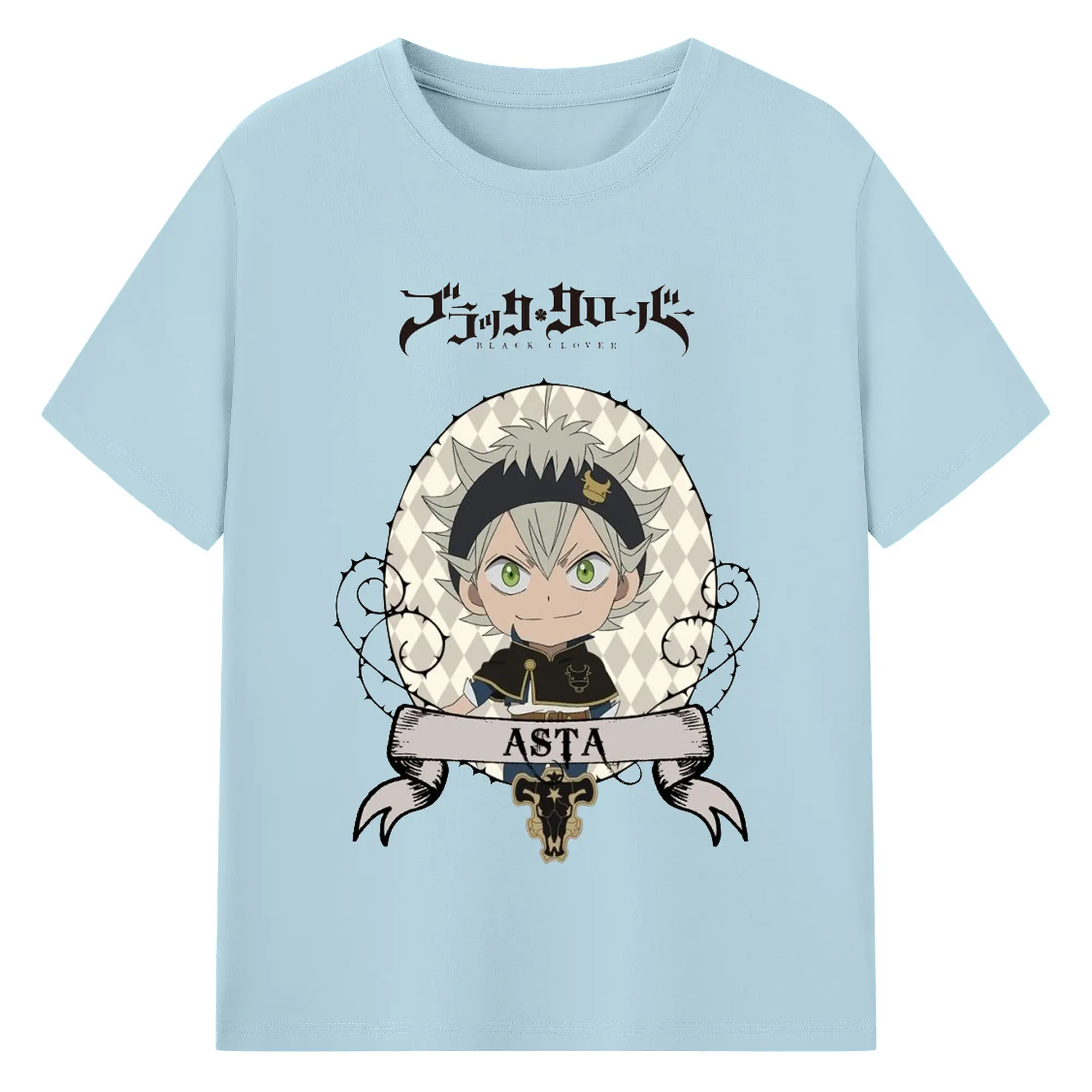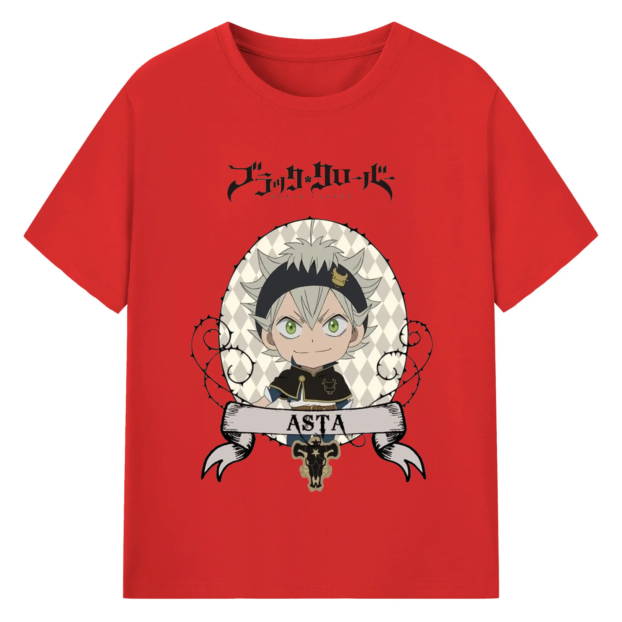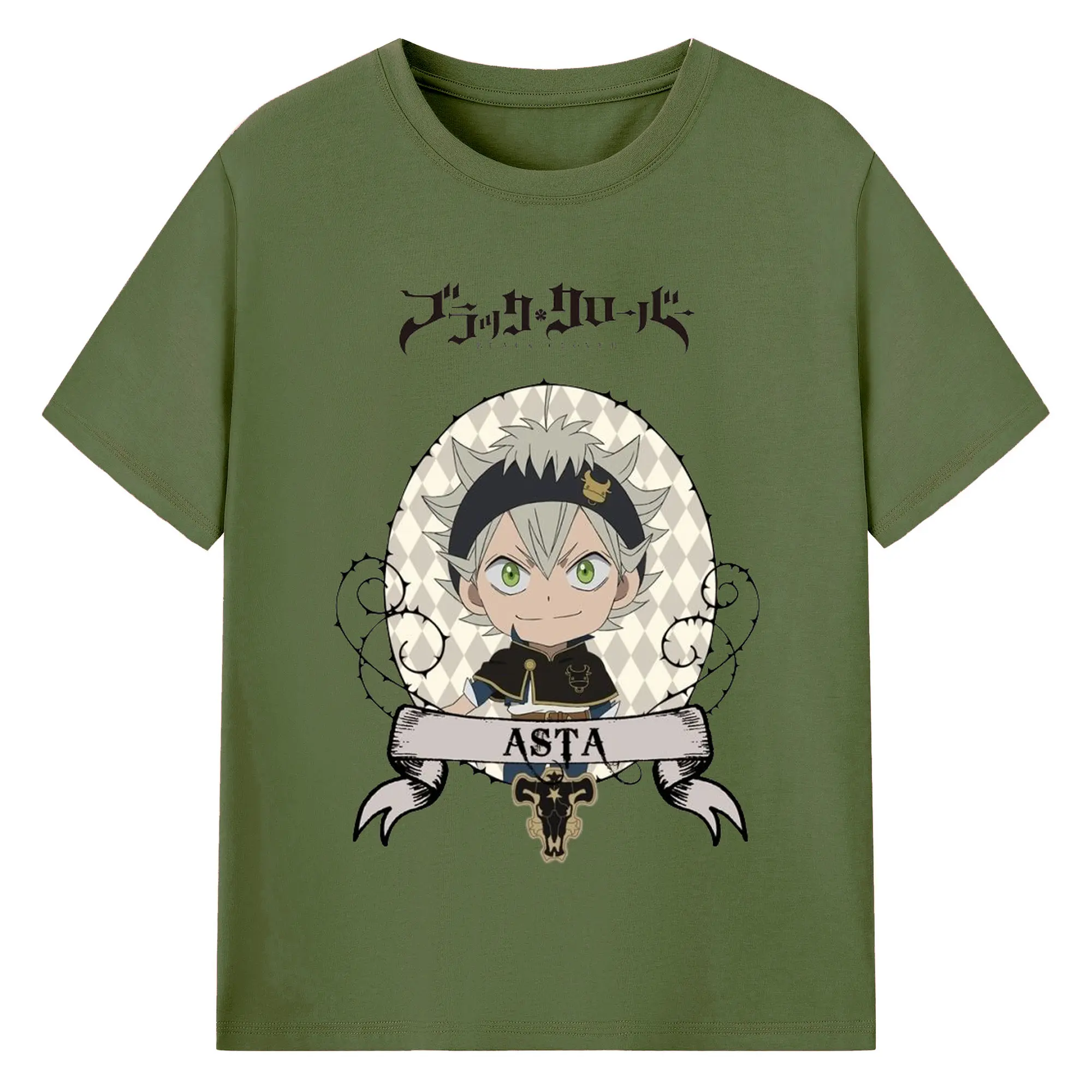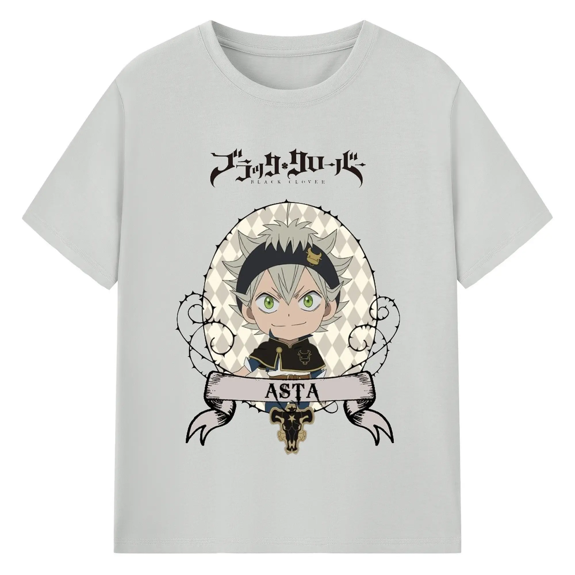 ブラッククローバー デフォルメキャラ - 綿100% ヴィンテージ風 半袖Tシャツ ・ フロントプリント ・ 柔らか肌触り ・ 通気性 快適 ・ スポーツ カジュアル 外出用