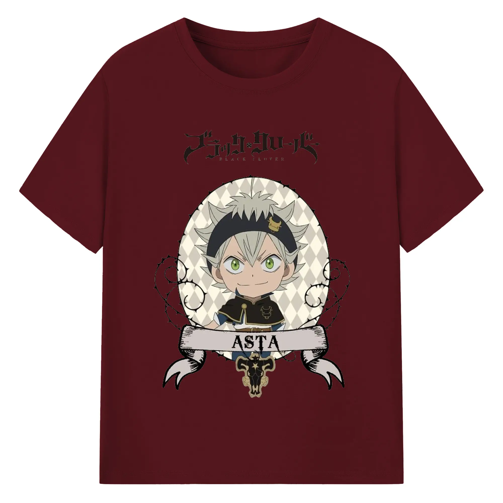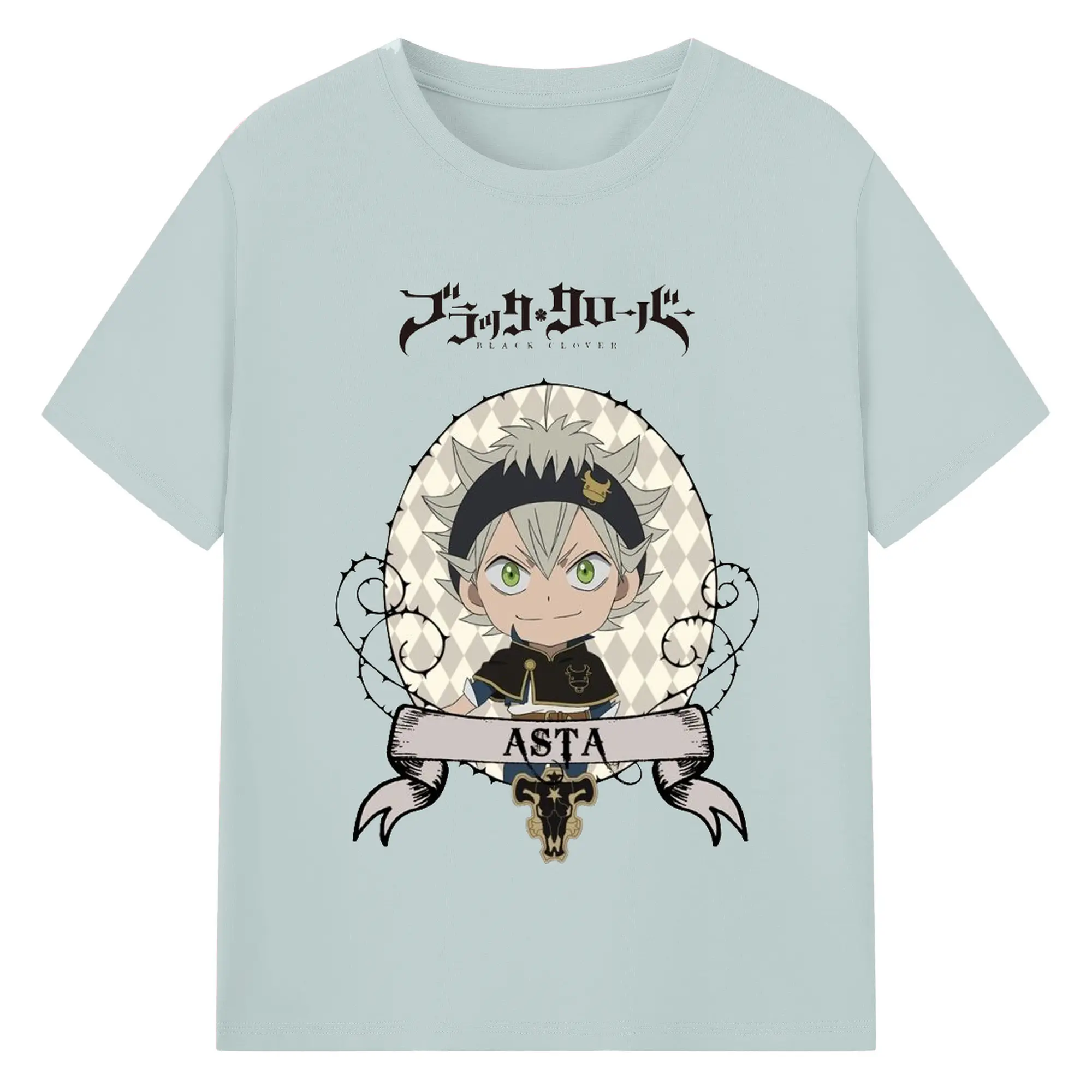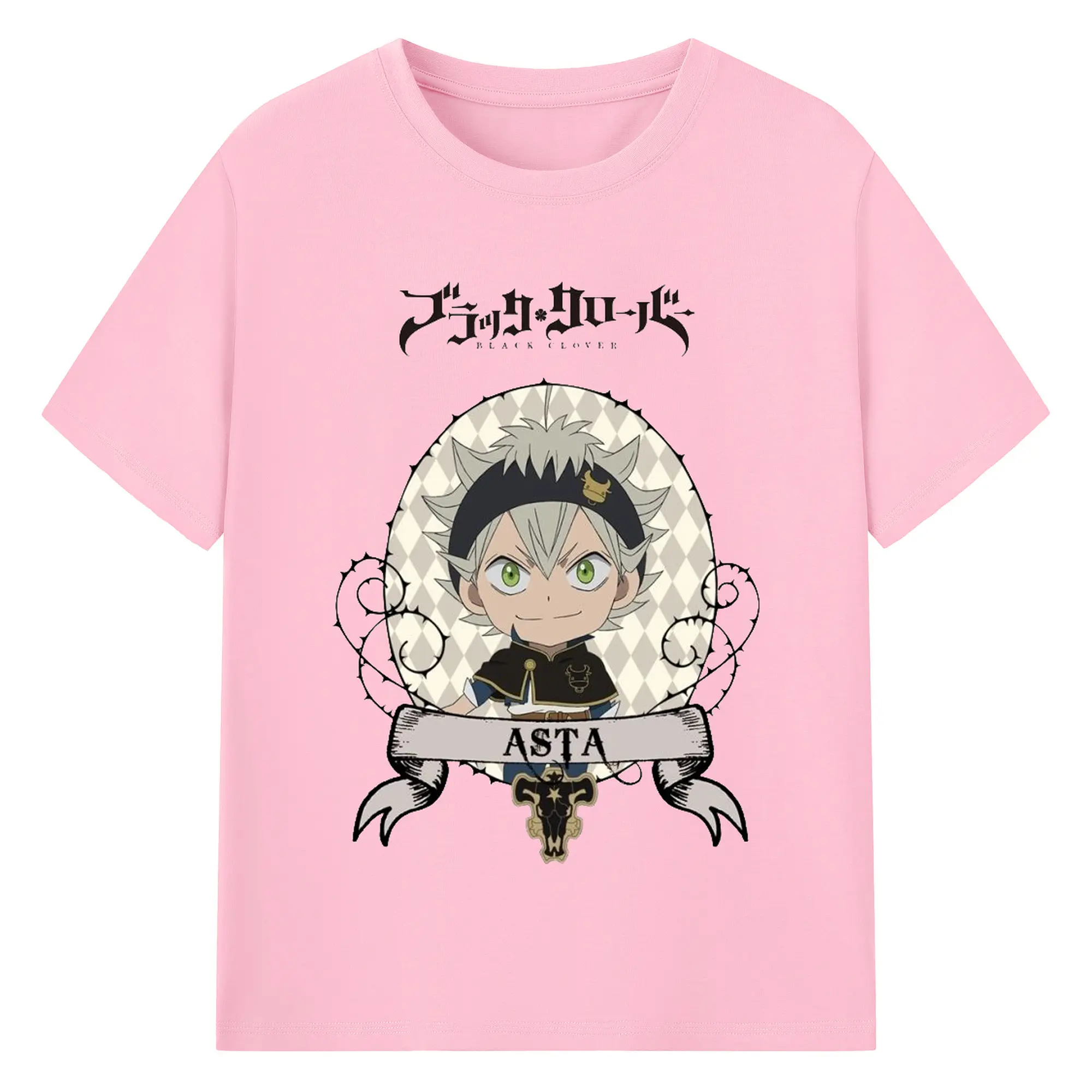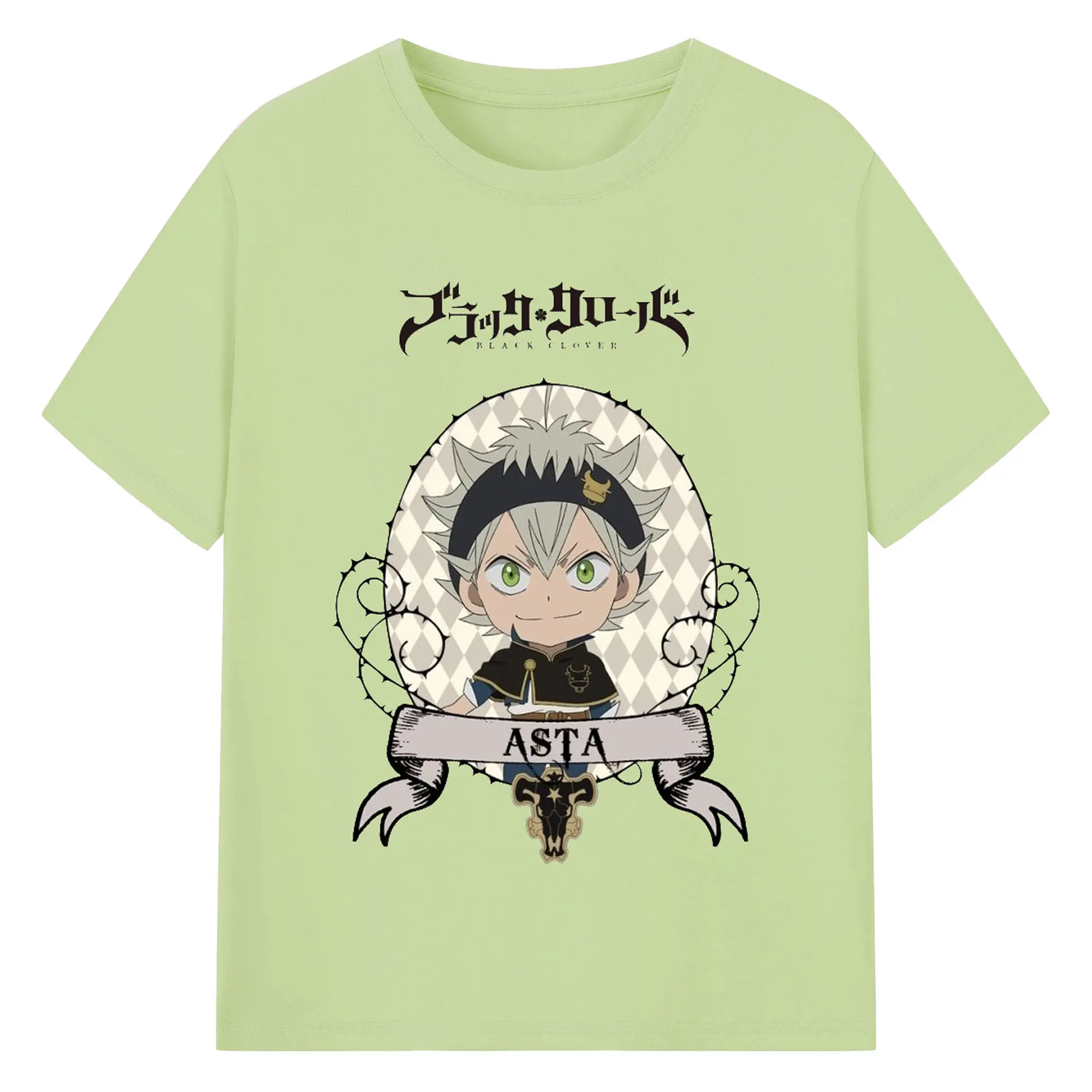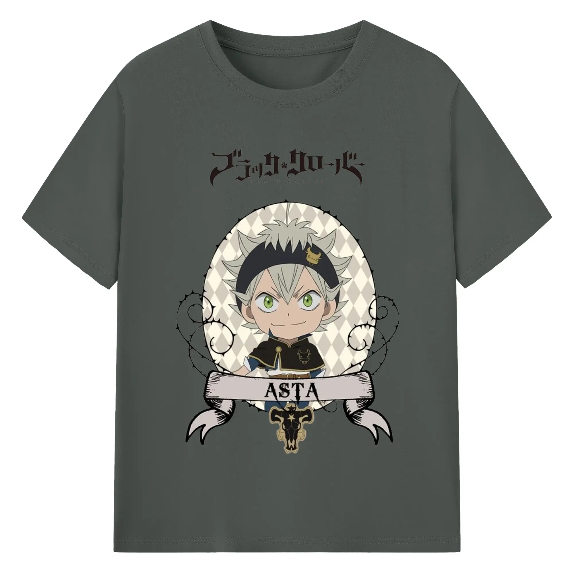 ブラッククローバー デフォルメキャラ - 綿100% ヴィンテージ風 半袖Tシャツ ・ フロントプリント ・ 柔らか肌触り ・ 通気性 快適 ・ スポーツ カジュアル 外出用