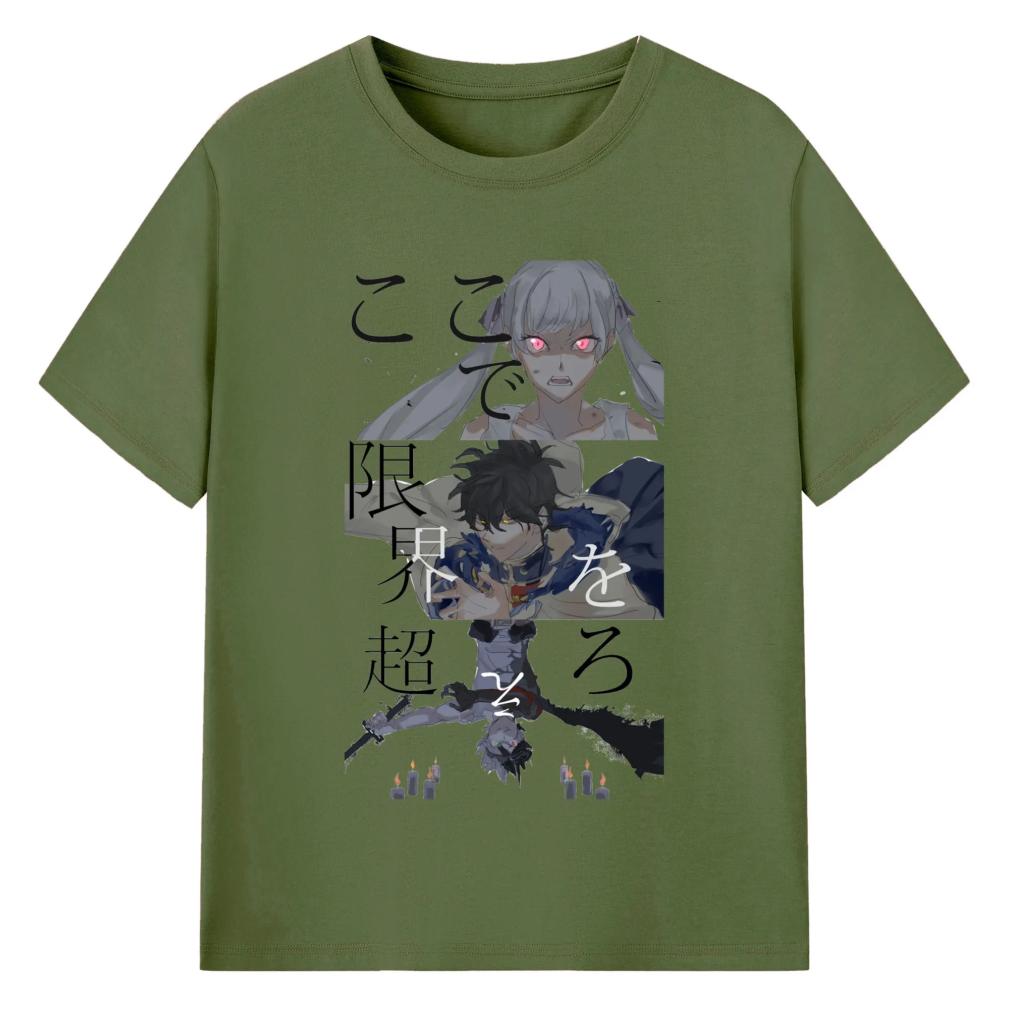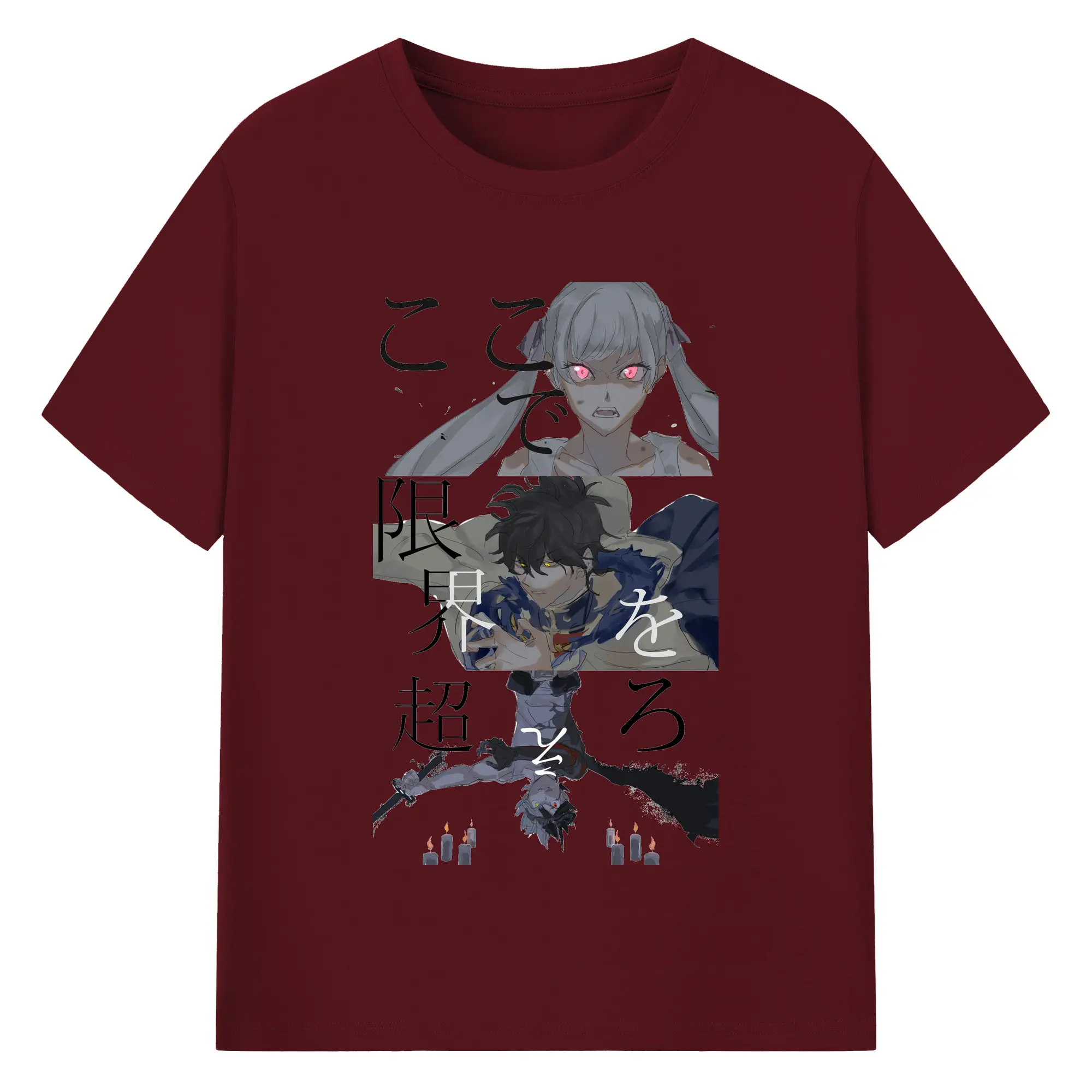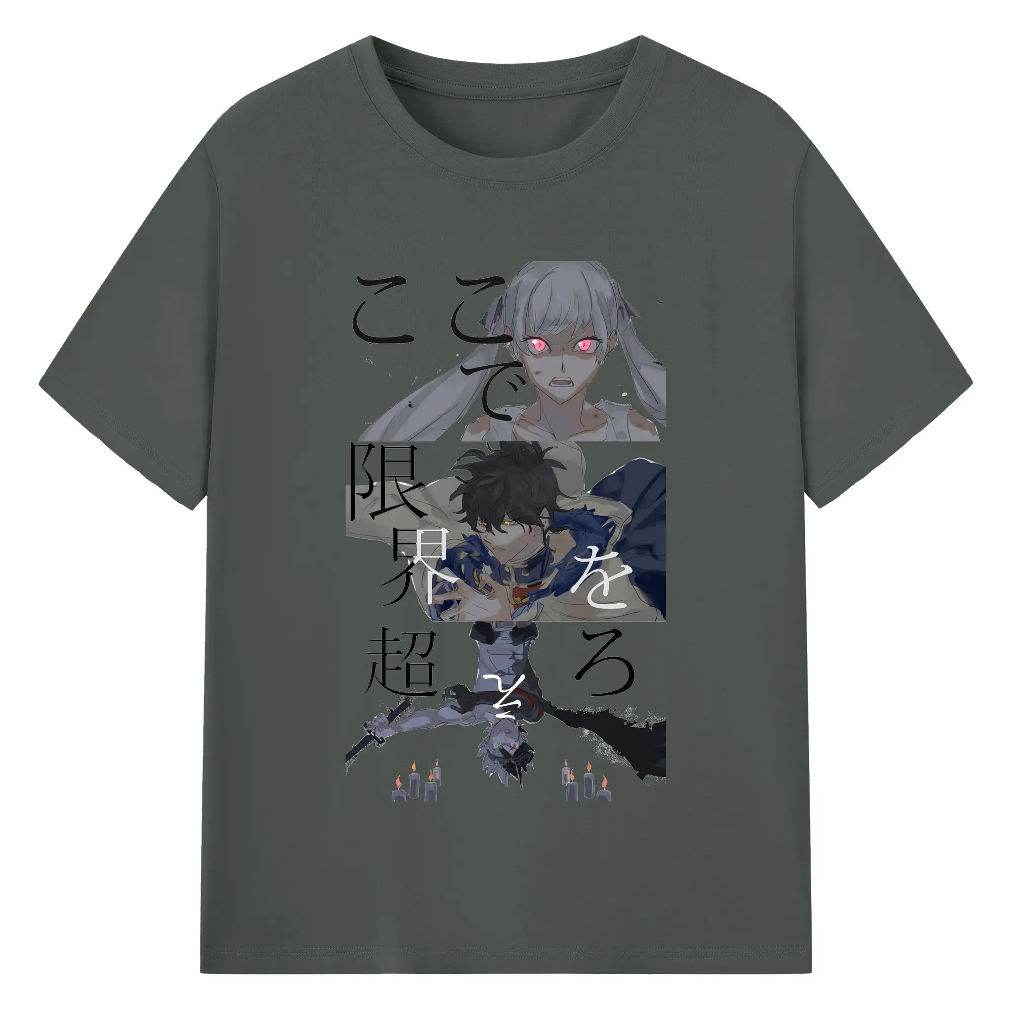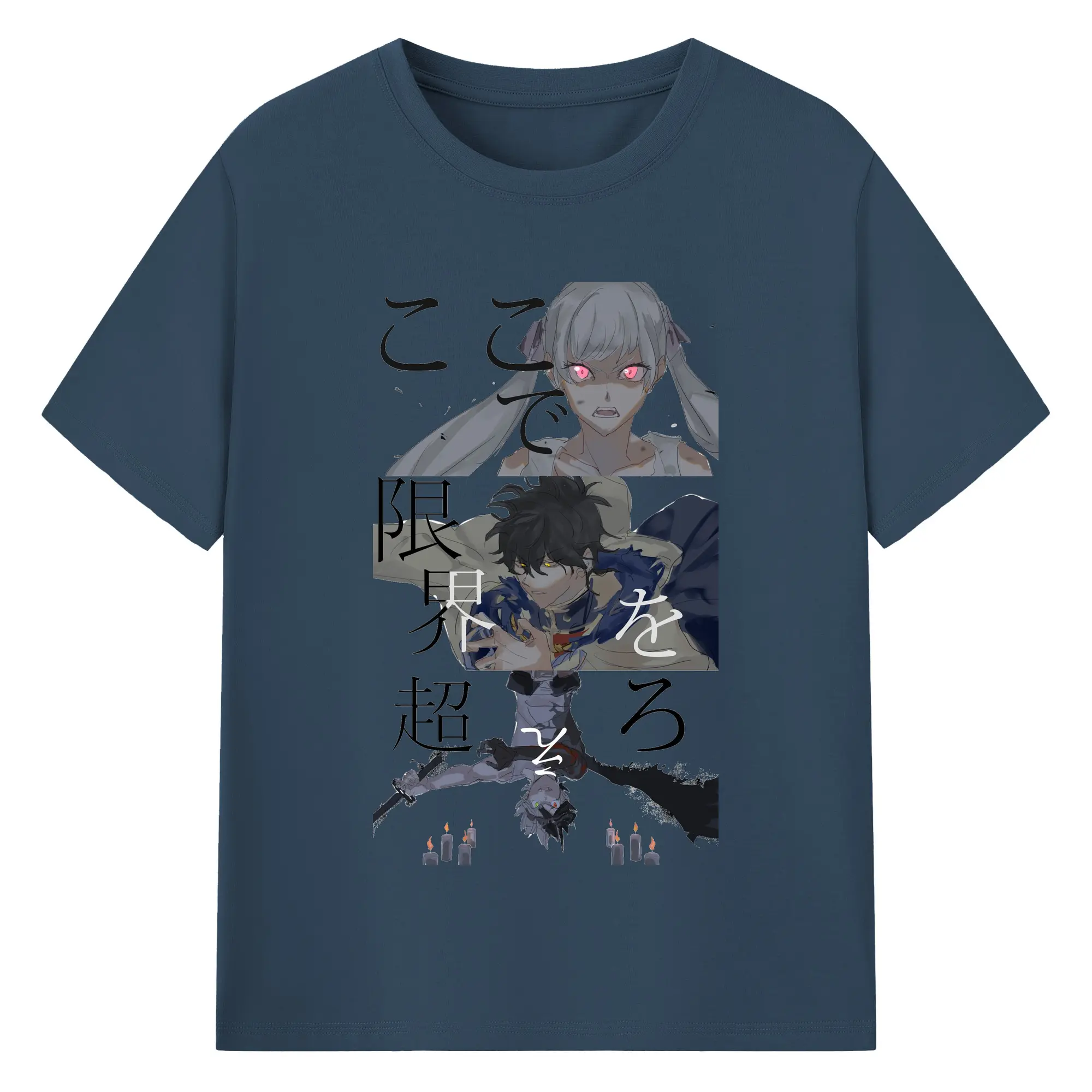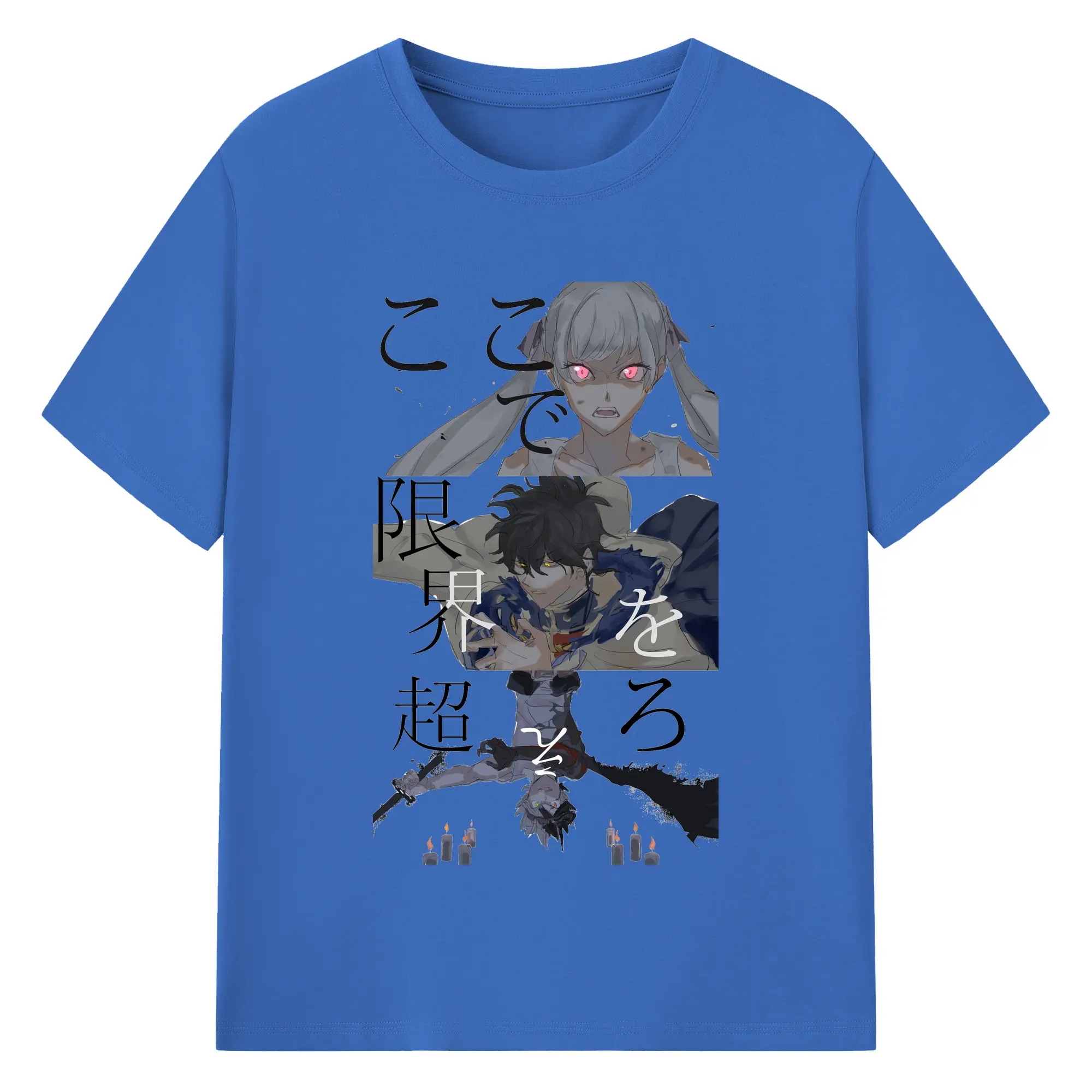 ブラッククローバー ここで限界お越えろ - 綿100% ヴィンテージ風 半袖Tシャツ ・ フロントプリント ・ 柔らか肌触り ・ 通気性 快適 ・ スポーツ カジュアル 外出用