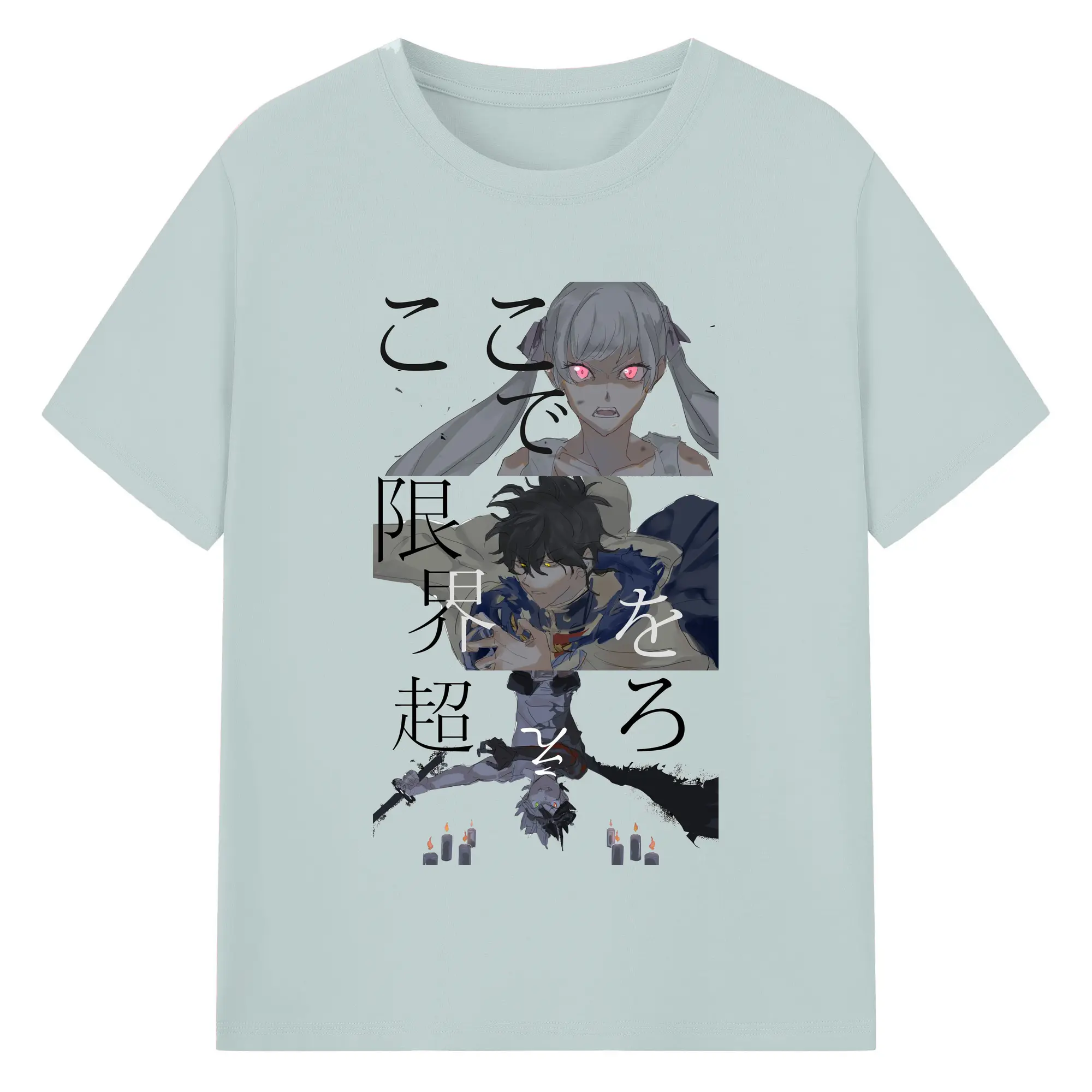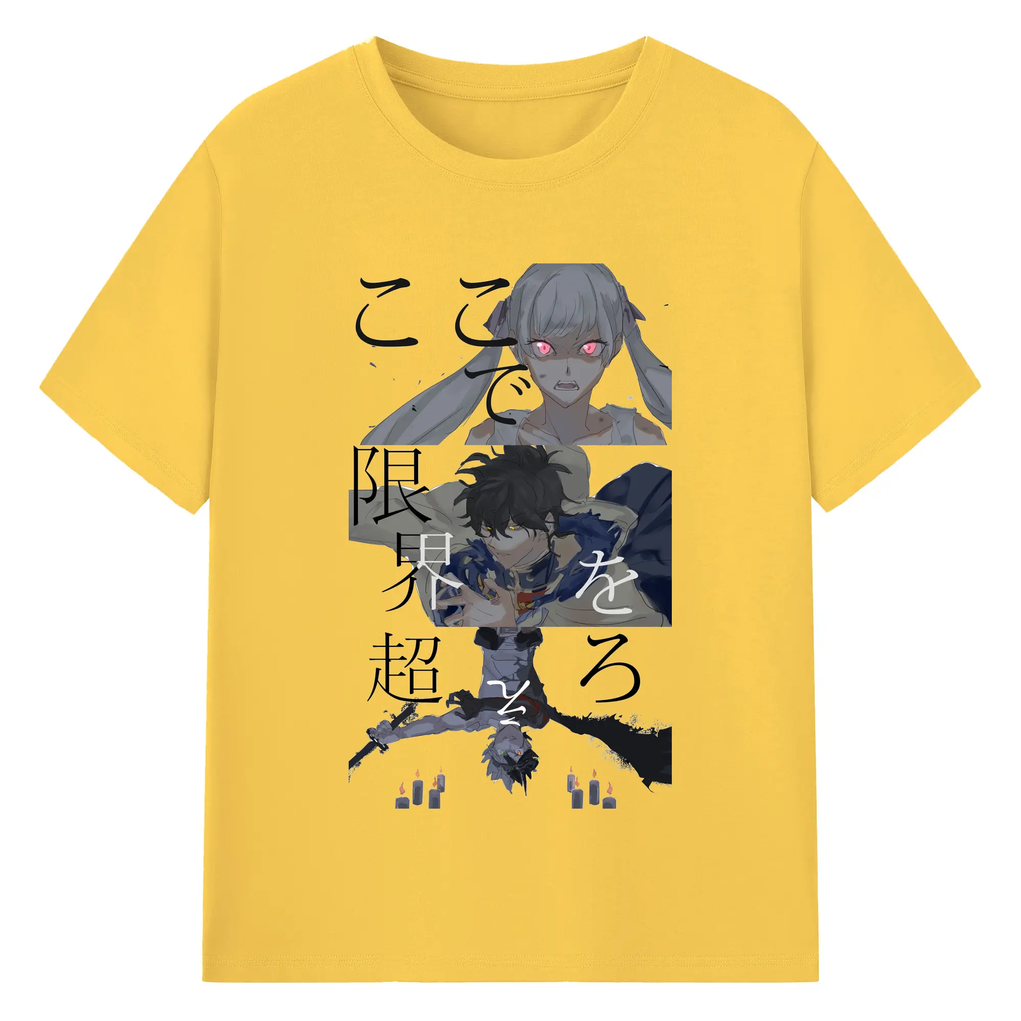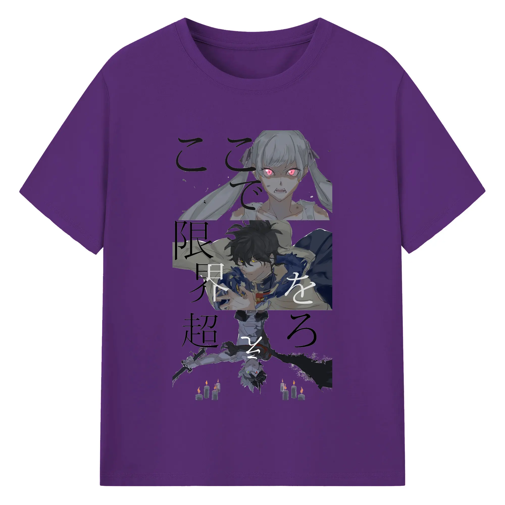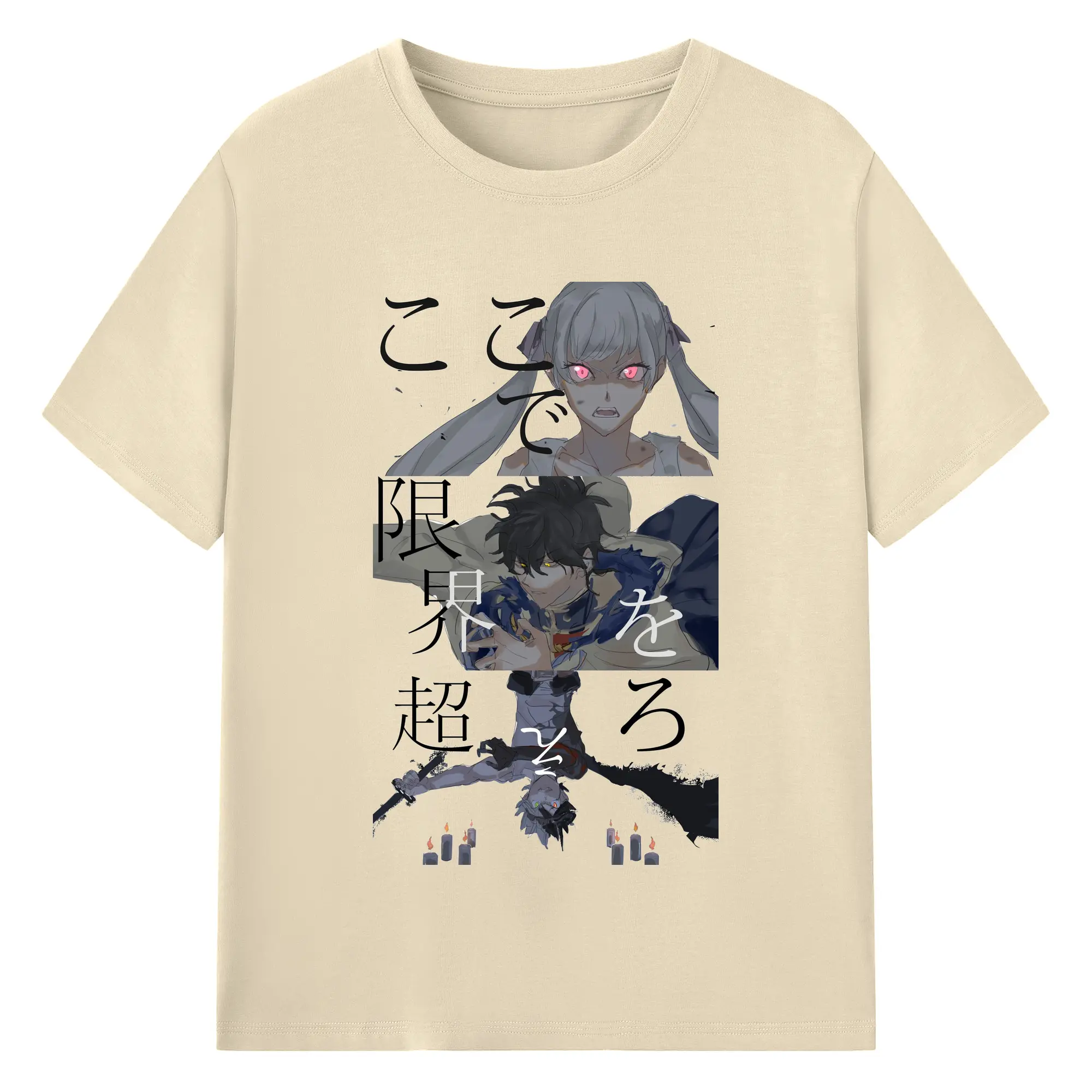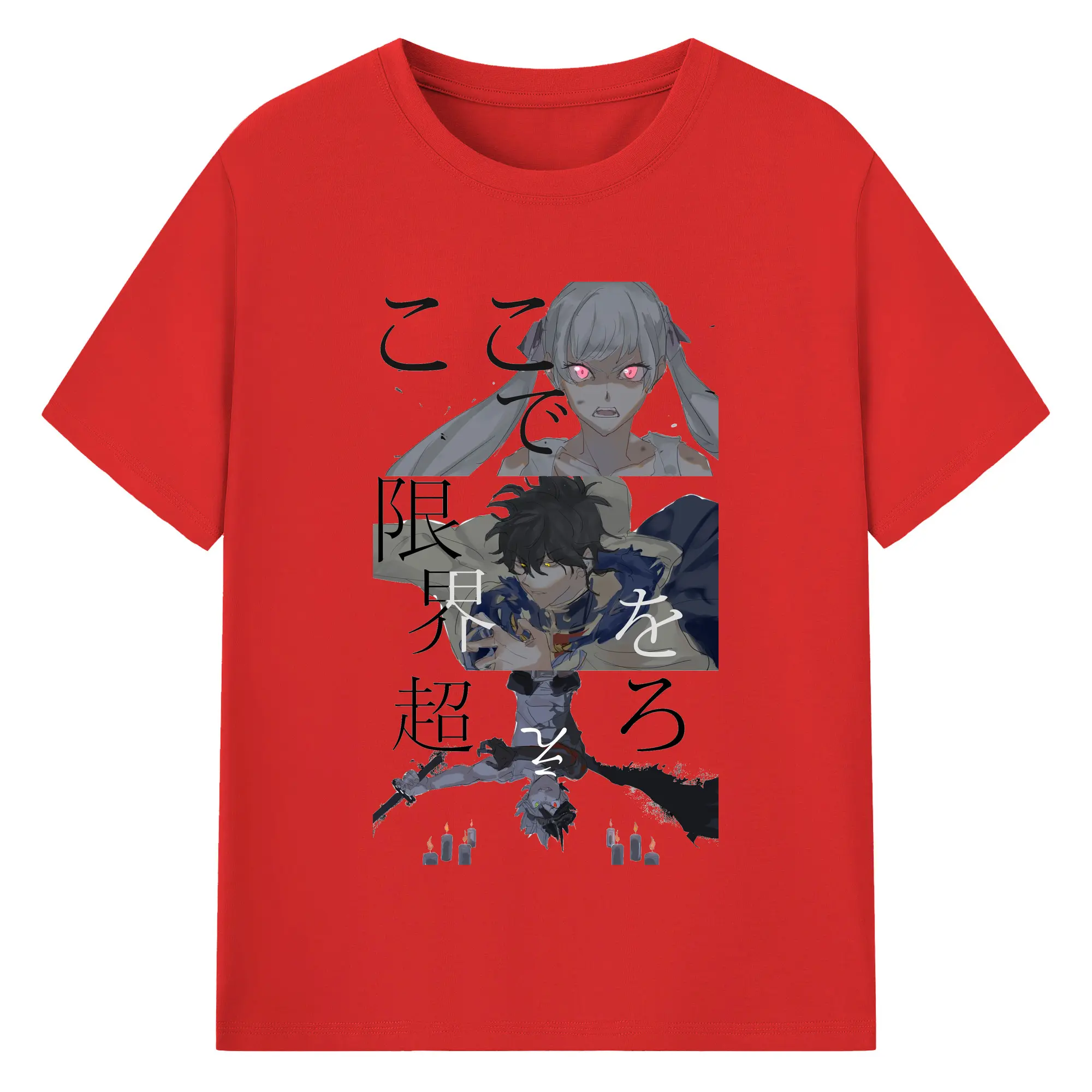 ブラッククローバー ここで限界お越えろ - 綿100% ヴィンテージ風 半袖Tシャツ ・ フロントプリント ・ 柔らか肌触り ・ 通気性 快適 ・ スポーツ カジュアル 外出用