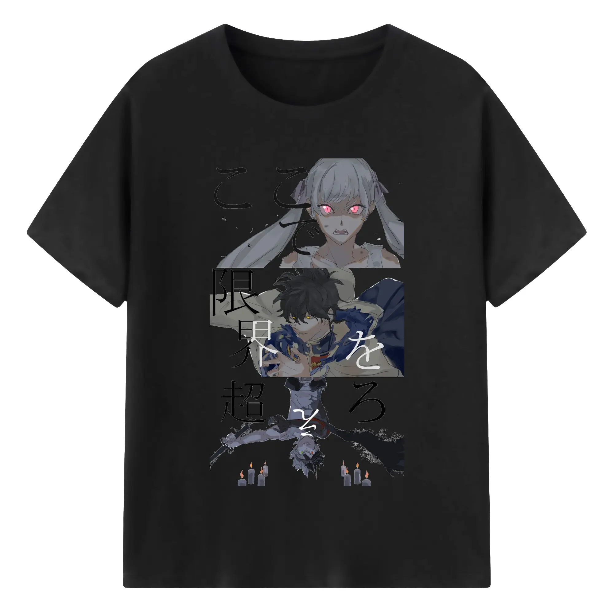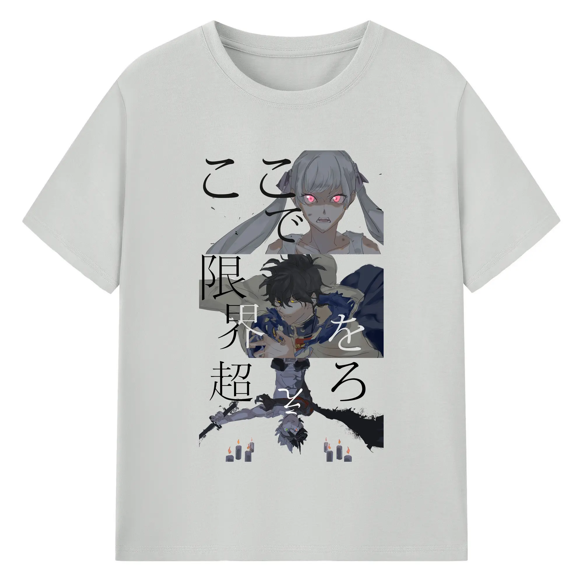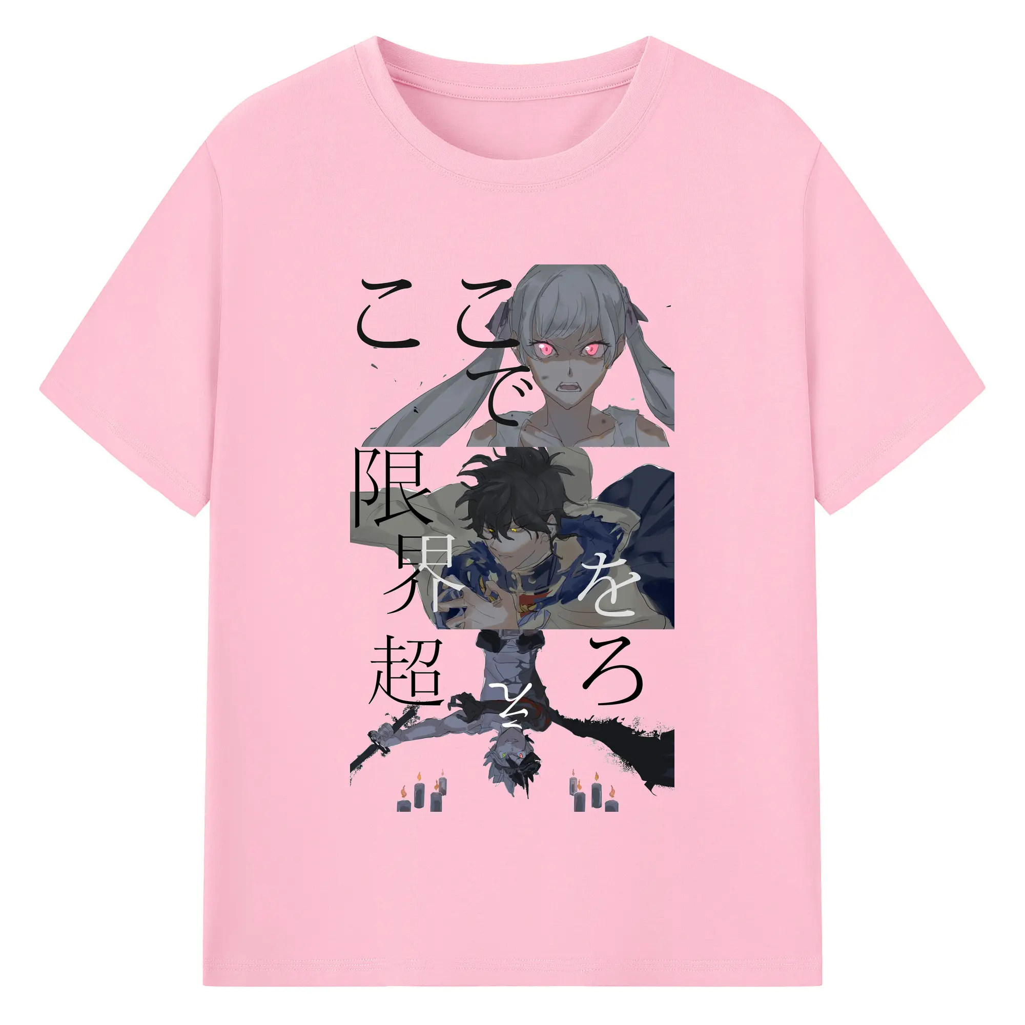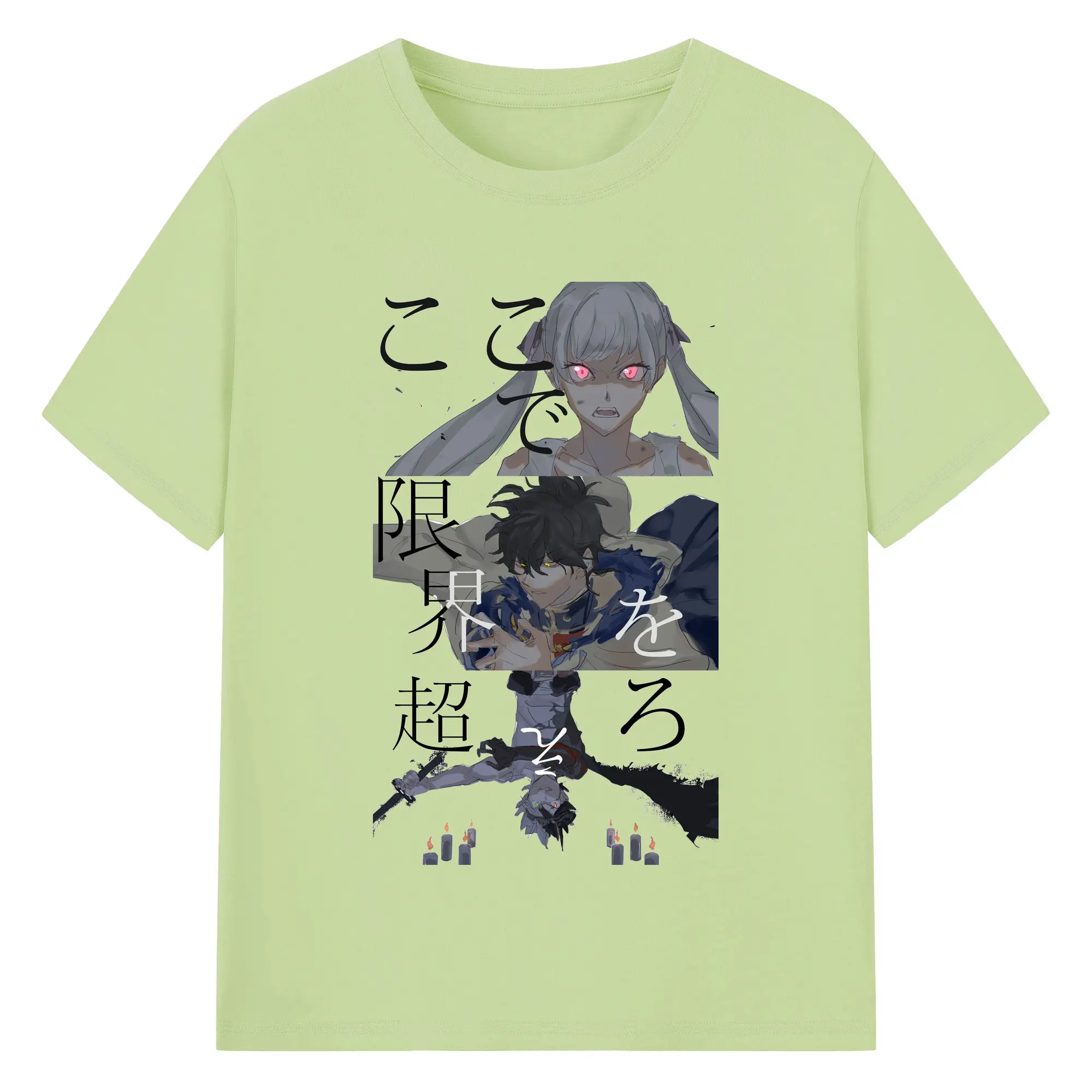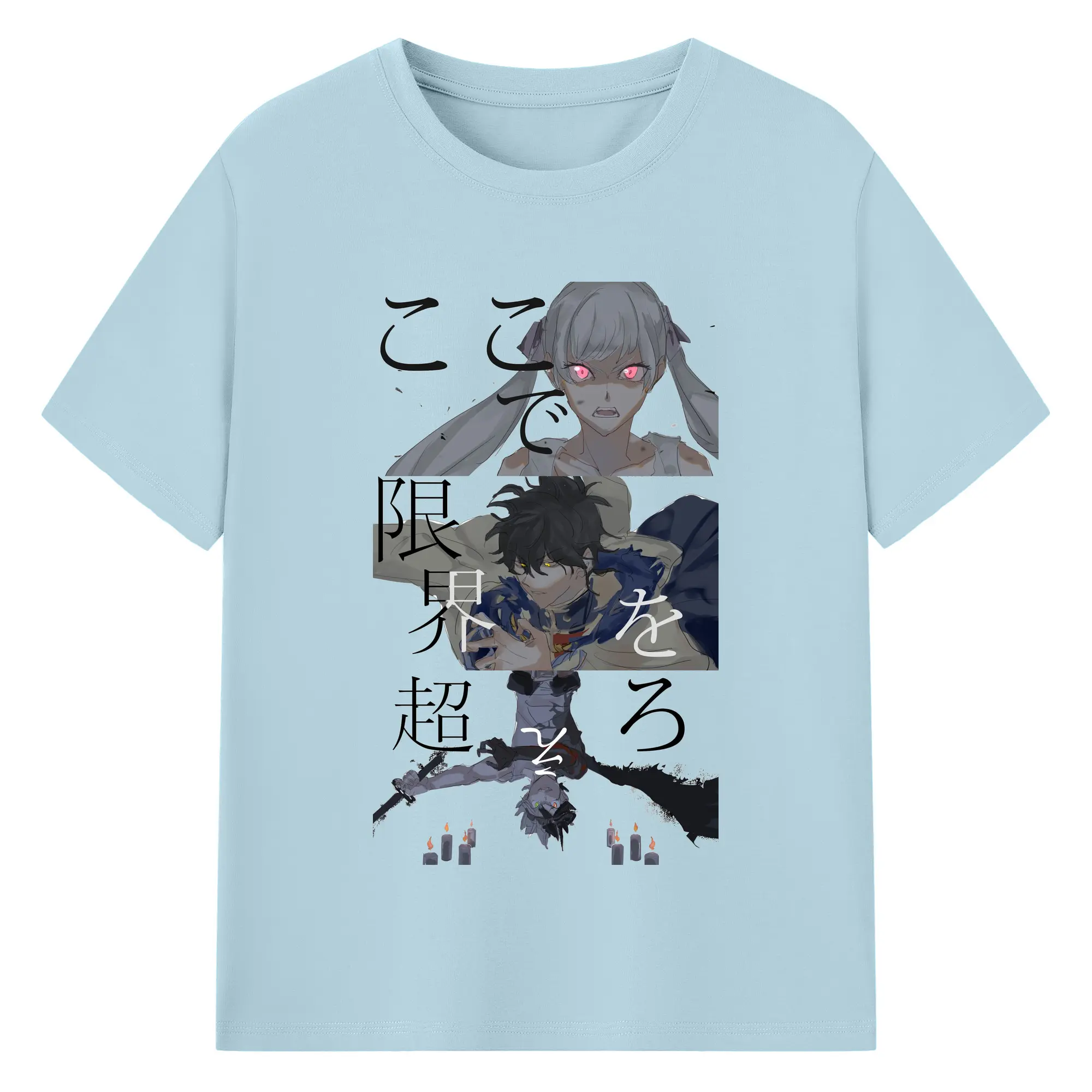 ブラッククローバー ここで限界お越えろ - 綿100% ヴィンテージ風 半袖Tシャツ ・ フロントプリント ・ 柔らか肌触り ・ 通気性 快適 ・ スポーツ カジュアル 外出用