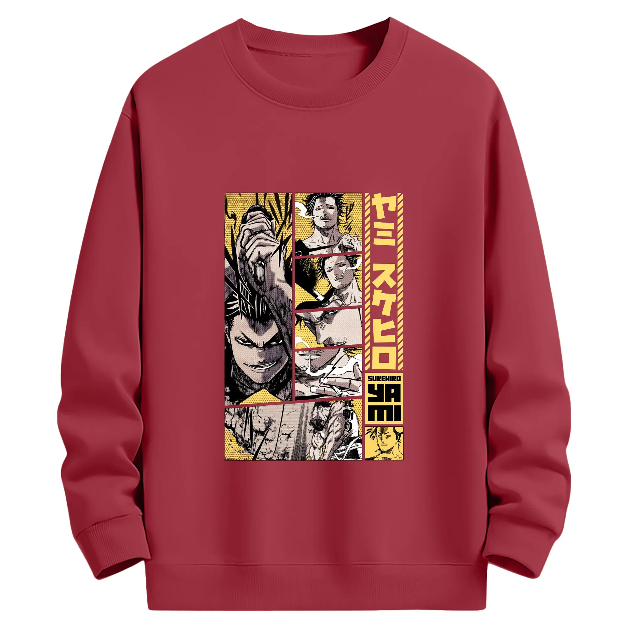 呪術廻戦 宿儺覚醒 両面宿儺 - 高品質 クルーネック スウェット ・ コットン59% ポリエステル41% ・ ユニセックス 長袖 トレーナー ・ カジュアル デイリー スポーツ 散歩用