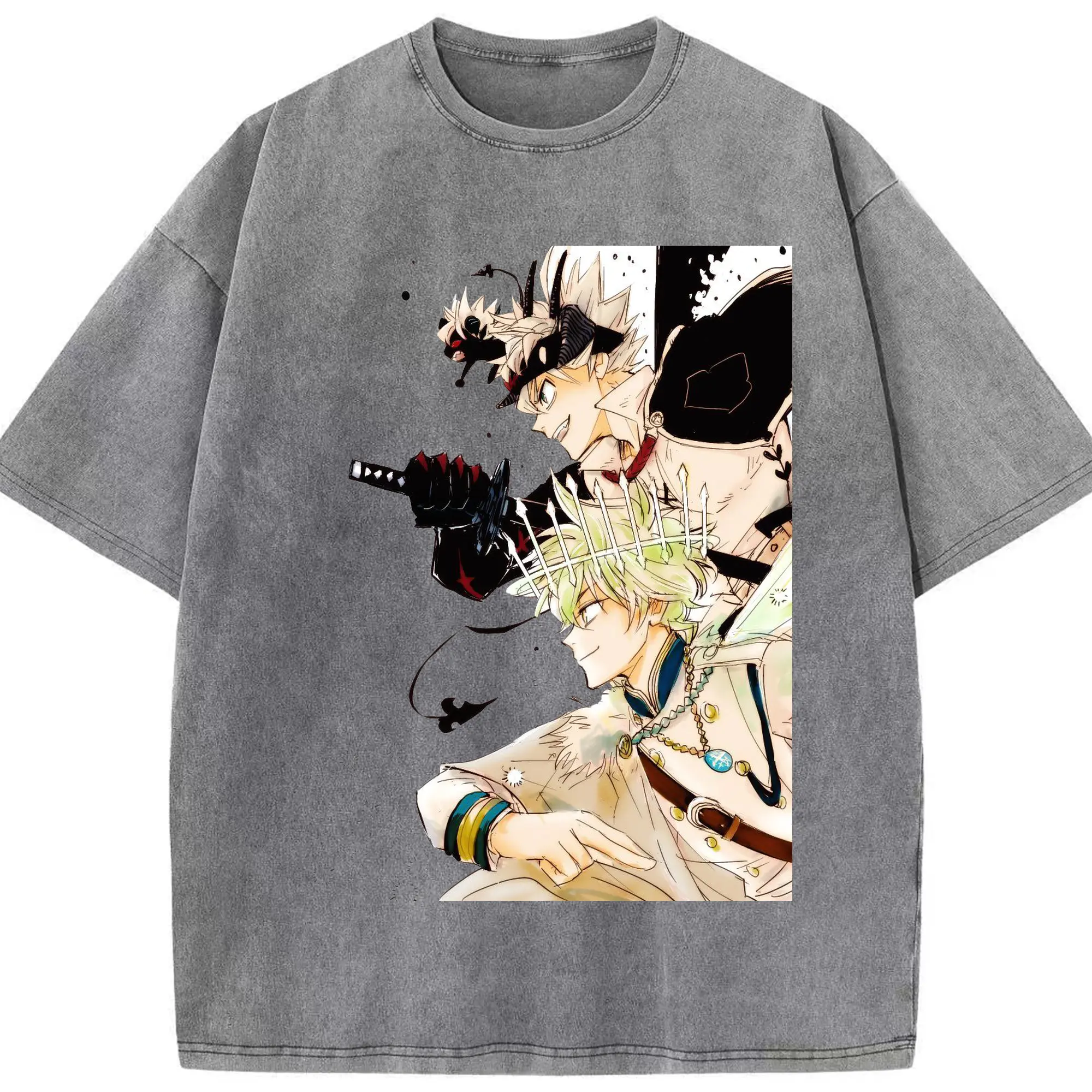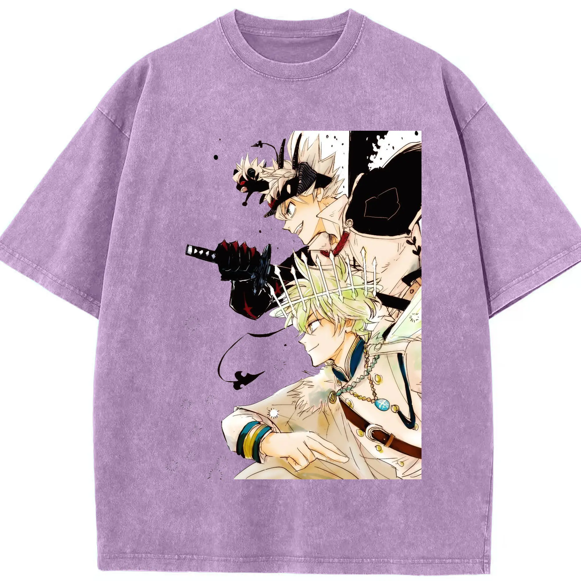 ブラッククローバー アスタ vs ユノ 決戦シーン プレイ - 綿100% 半袖Tシャツ ・ フロントプリント ・ 快適 通気性 ・ 日常使い 散歩 スポーツ用