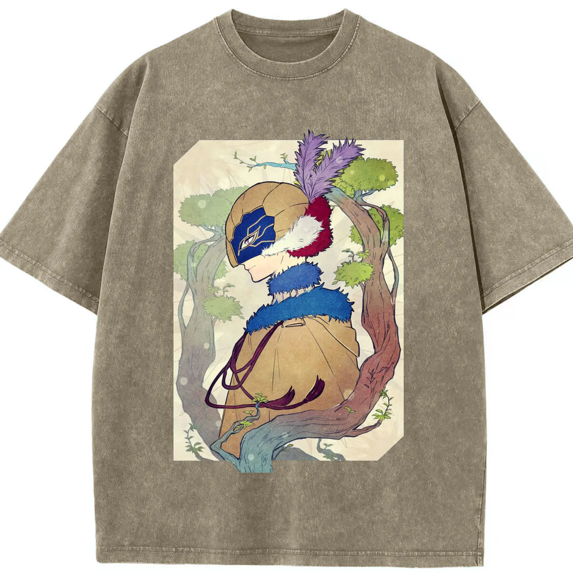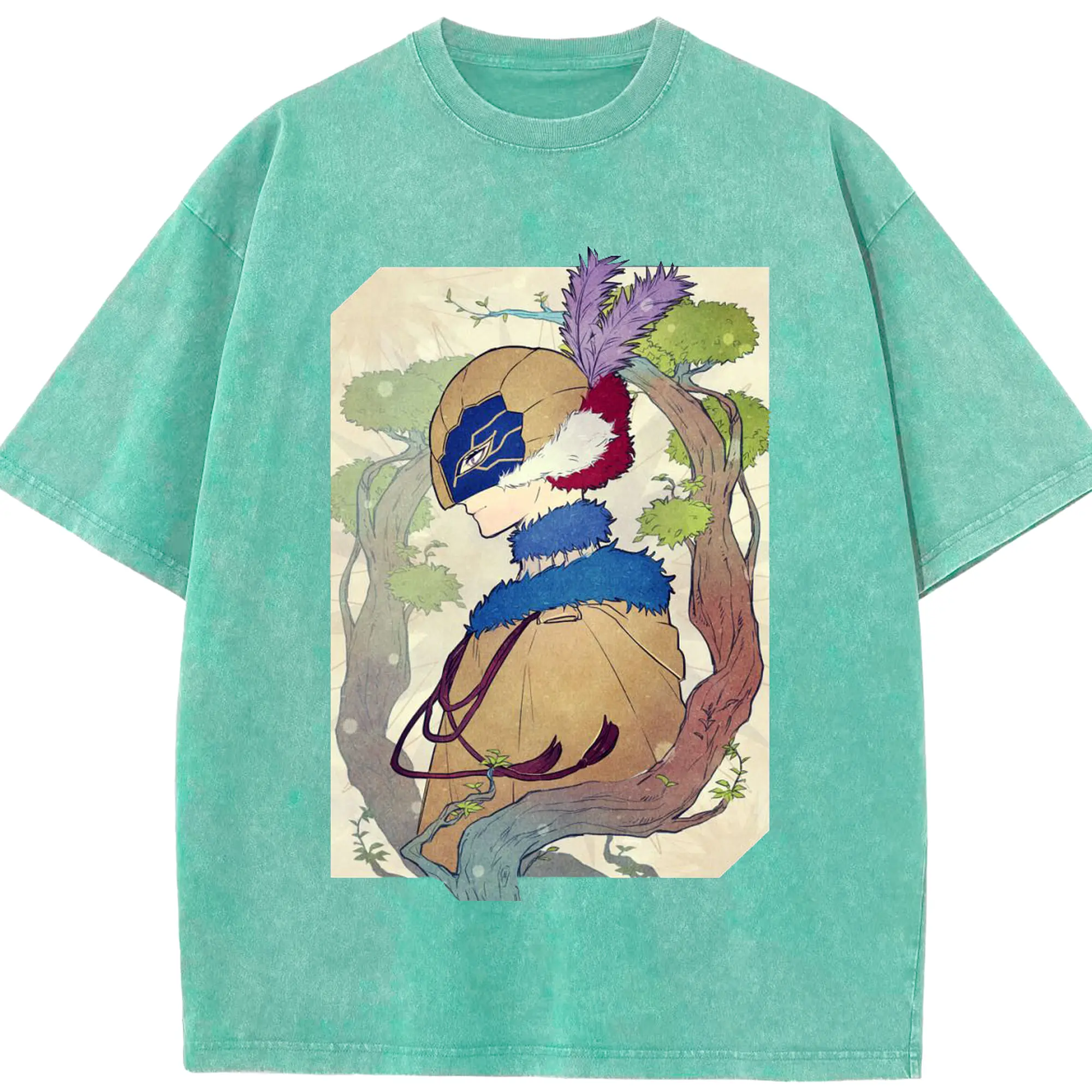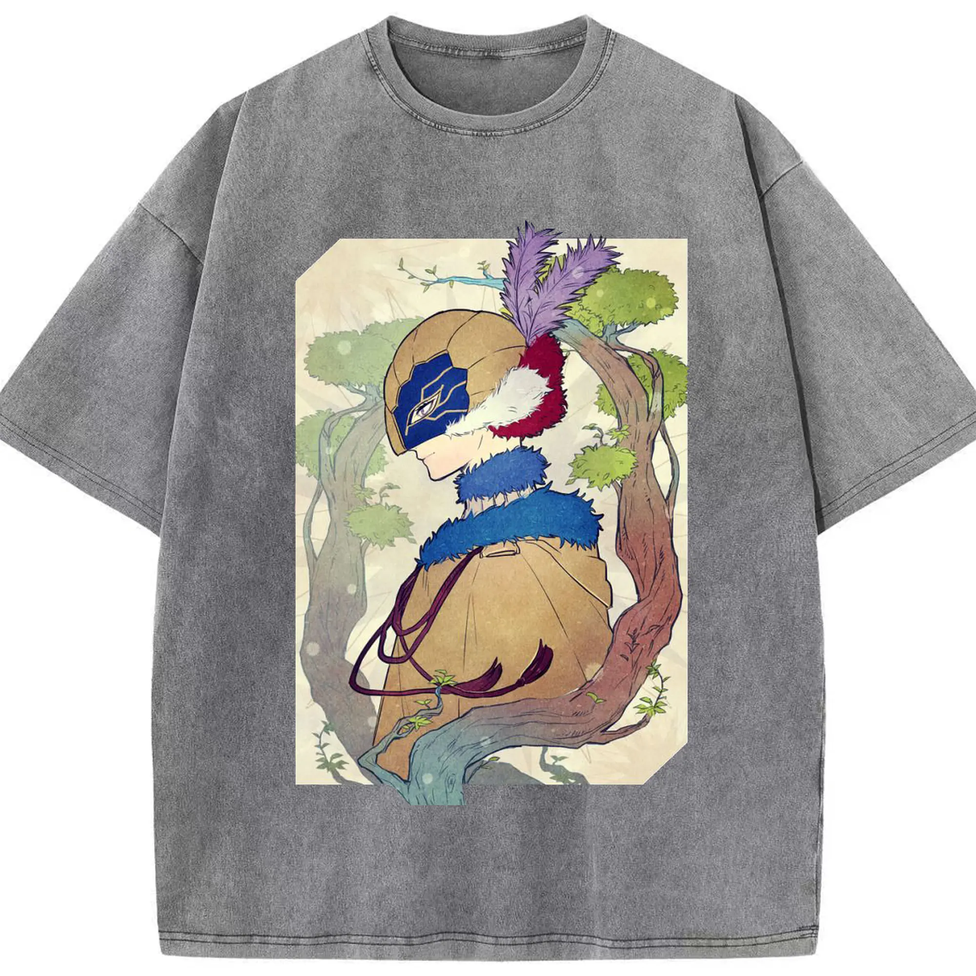 Genshin フォンテーヌネウヴィレット - 綿100% ヴィンテージ風 半袖Tシャツ ・ フロントプリント ・ 柔らか肌触り ・ 通気性 快適 ・ スポーツ カジュアル 外出用