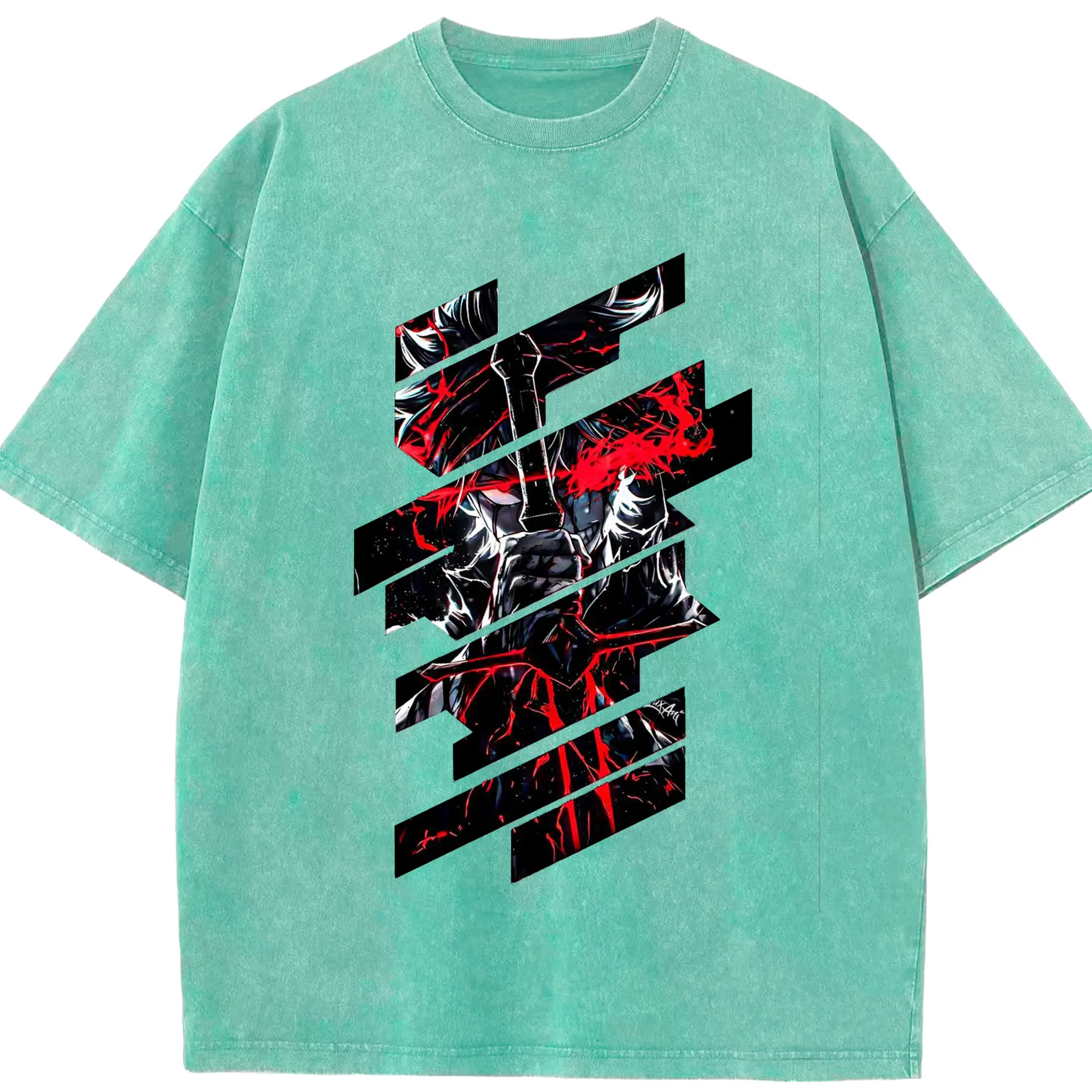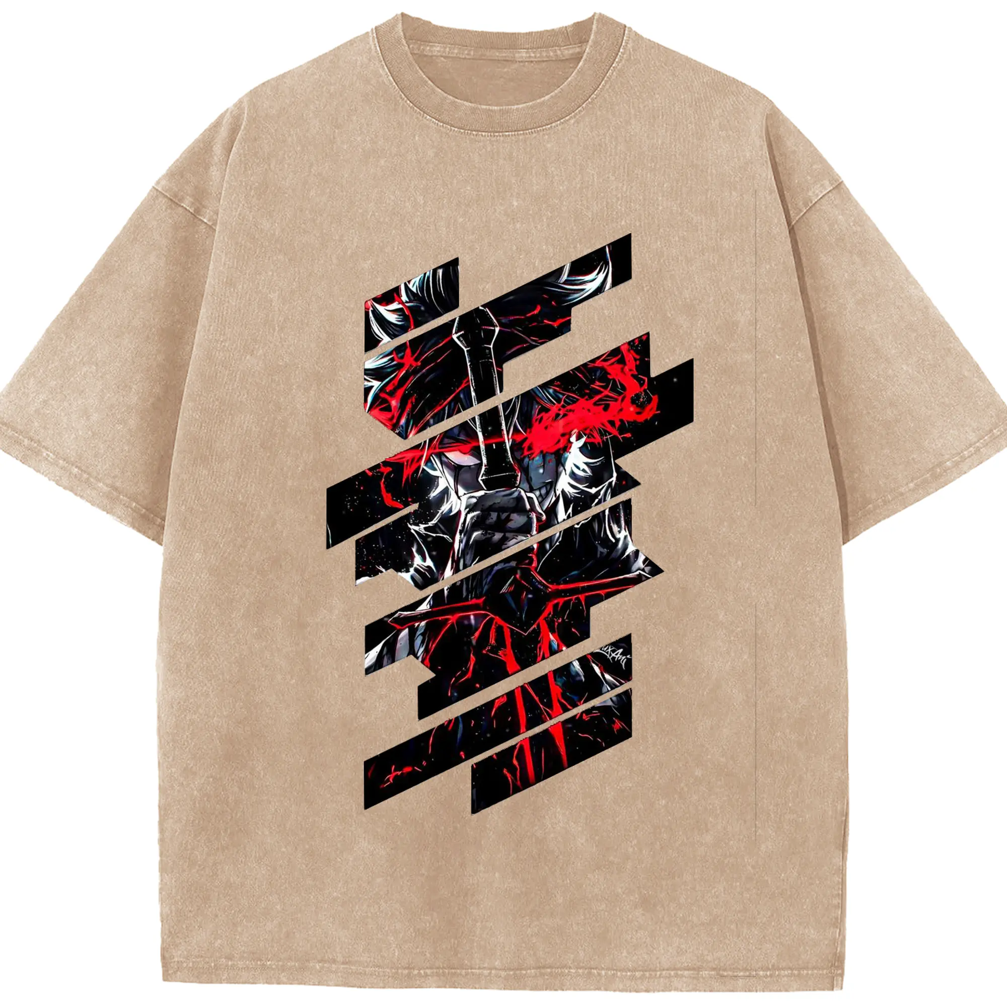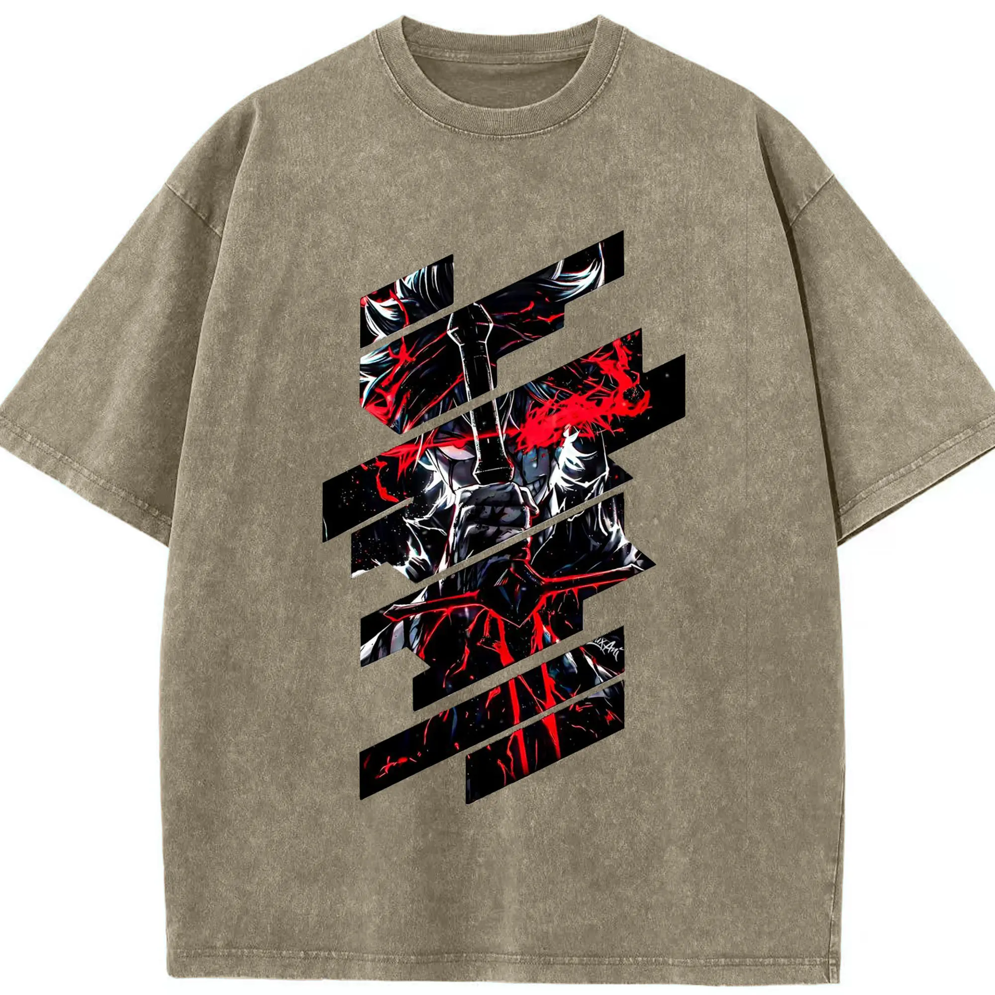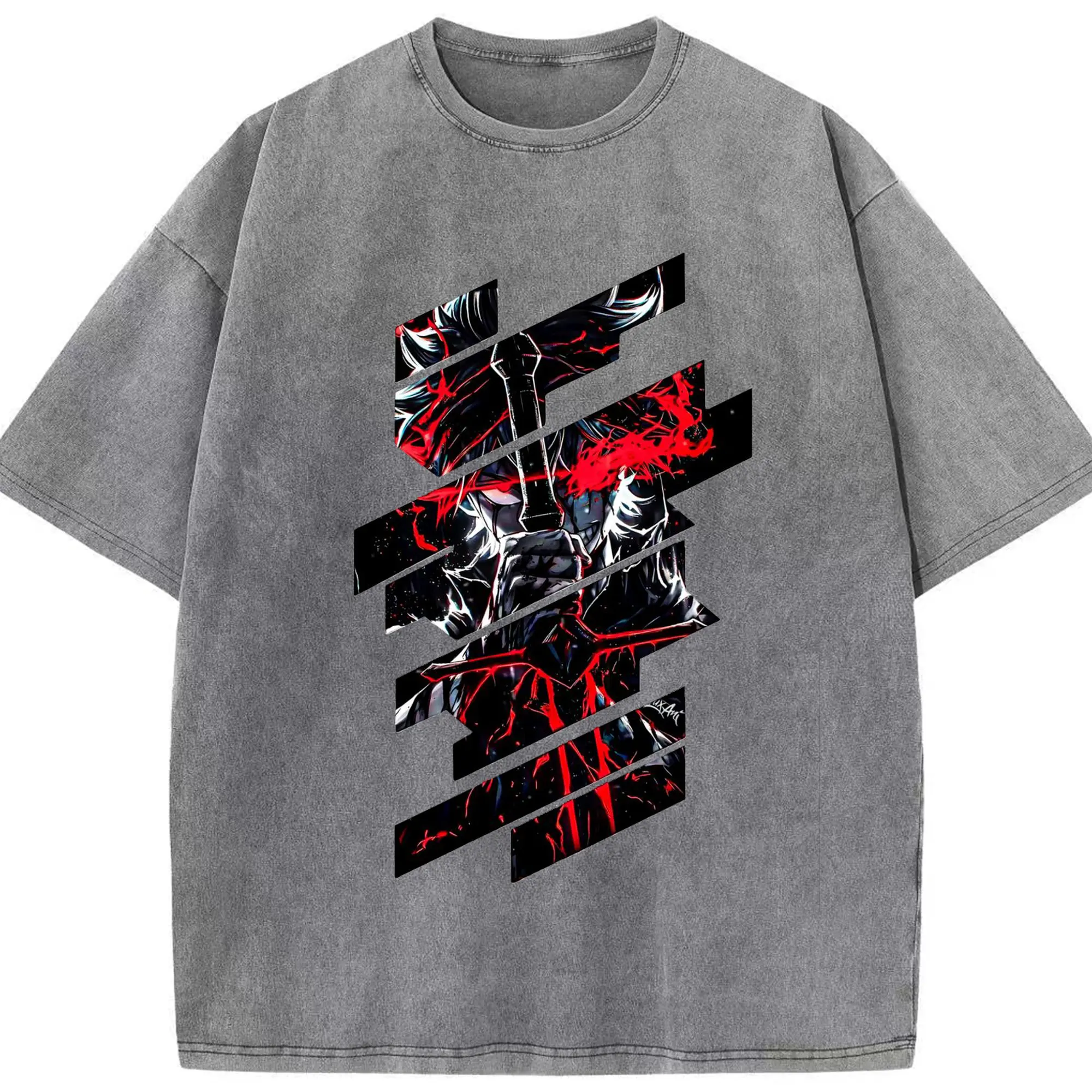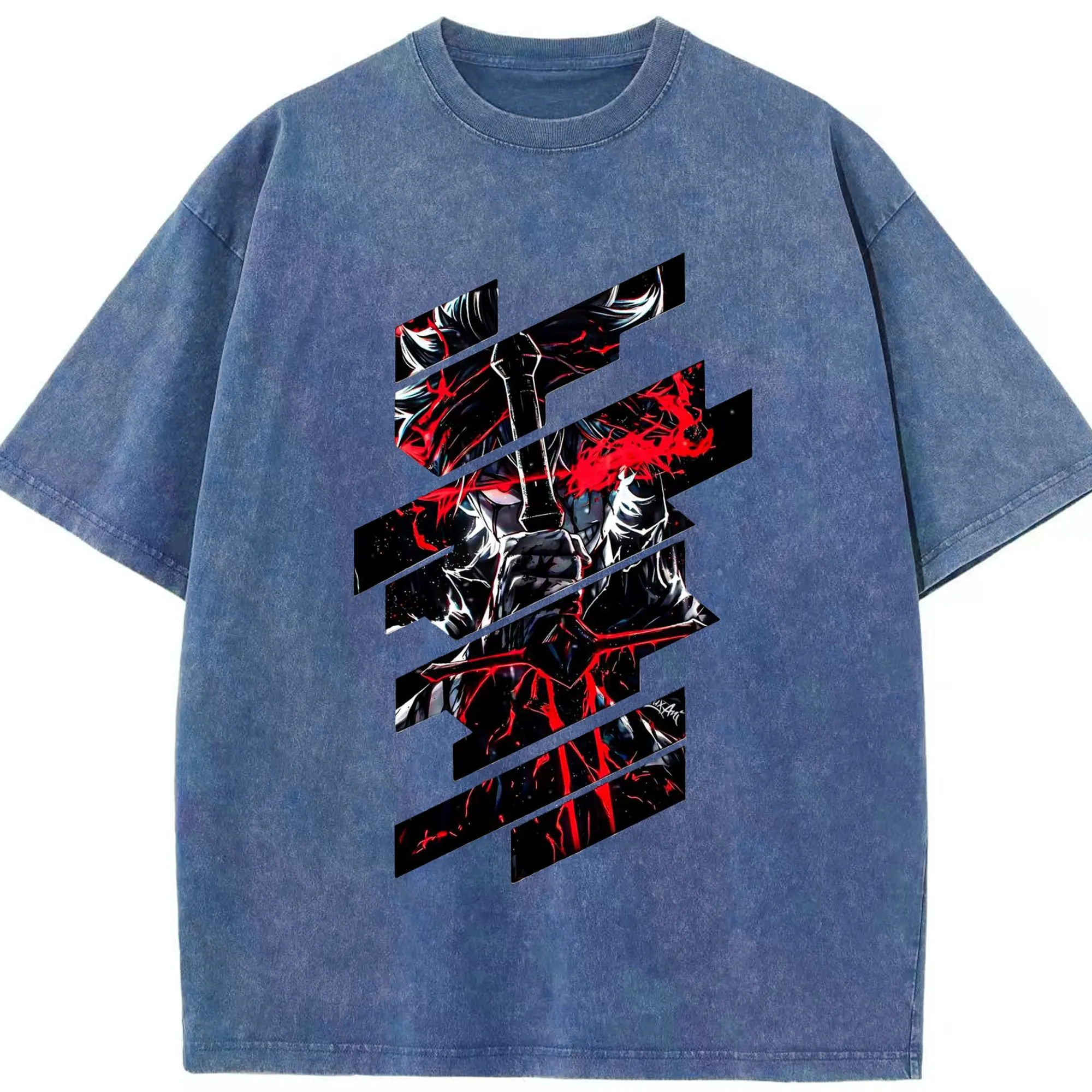 ブリーチ デフォルトデフォルト 更木剣八 - 綿100% ヴィンテージ風 半袖Tシャツ ・ フロントプリント ・ 柔らか肌触り ・ 通気性 快適 ・ スポーツ カジュアル 外出用