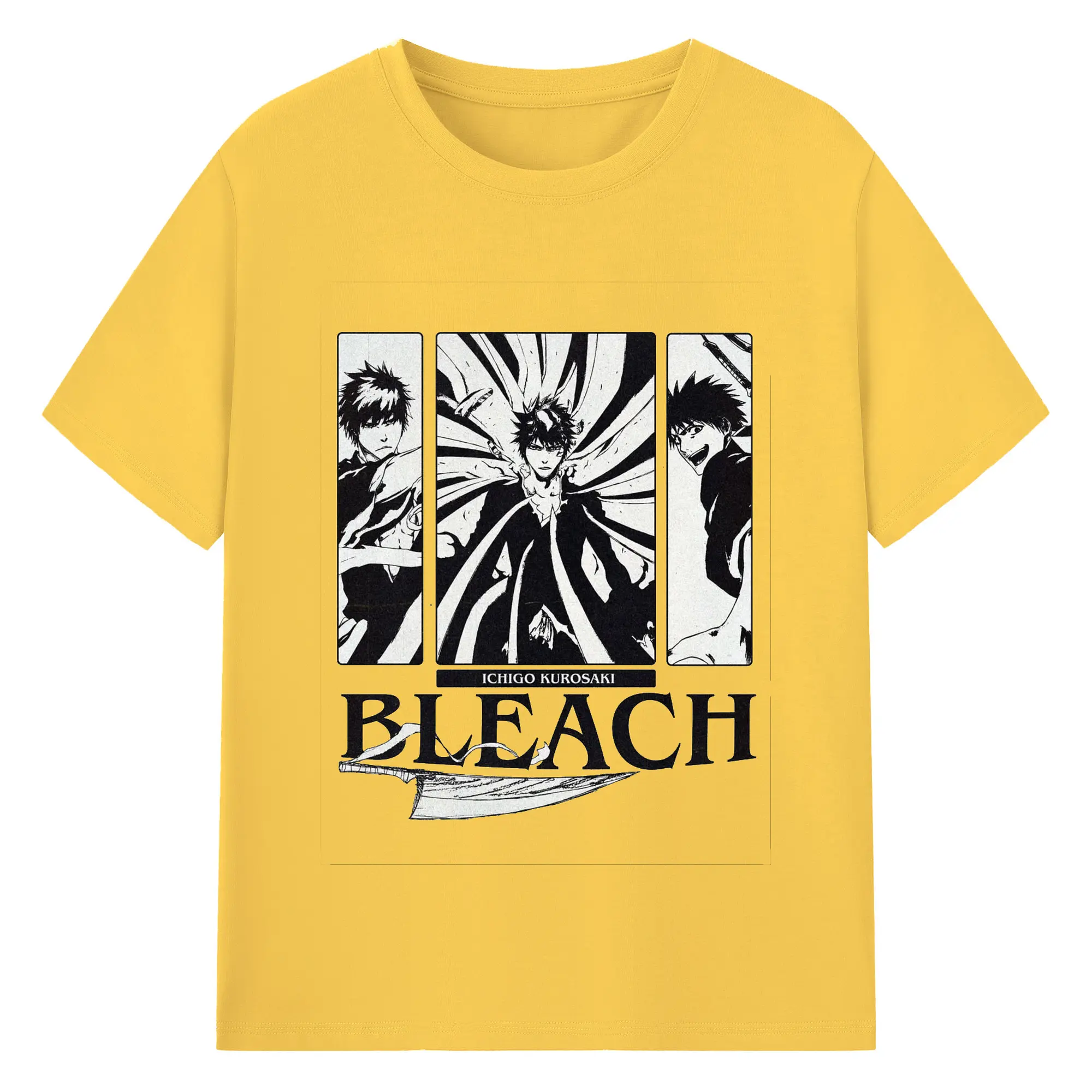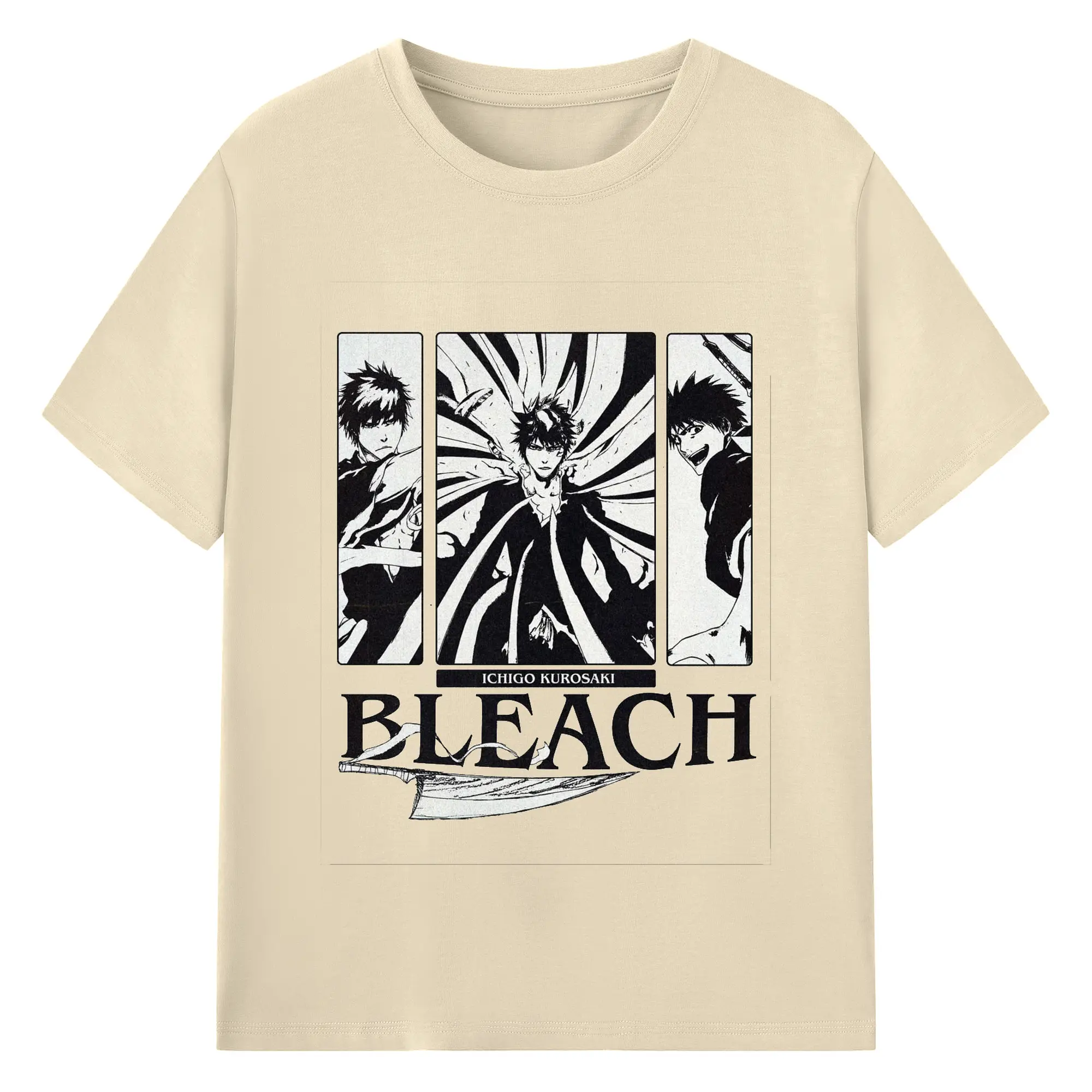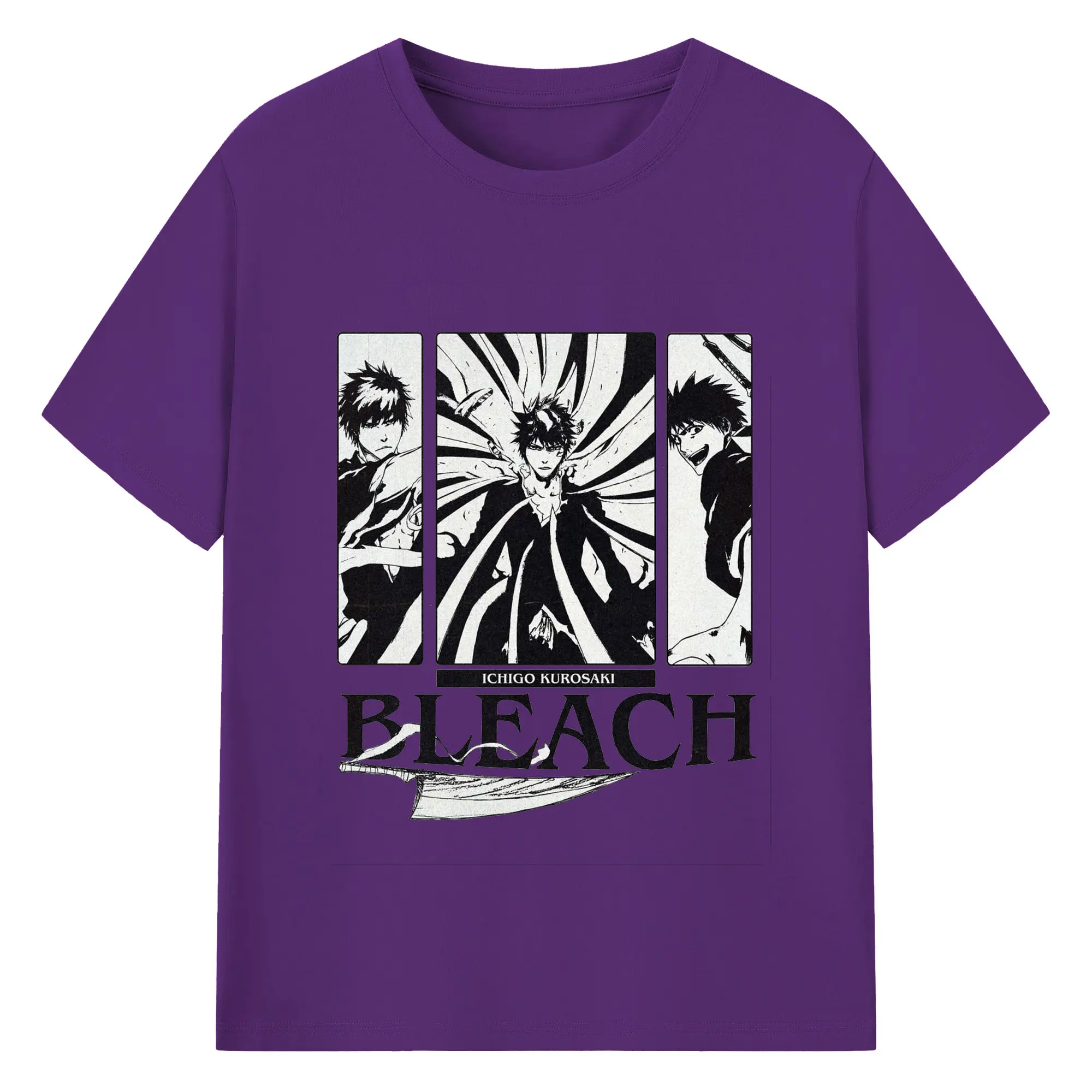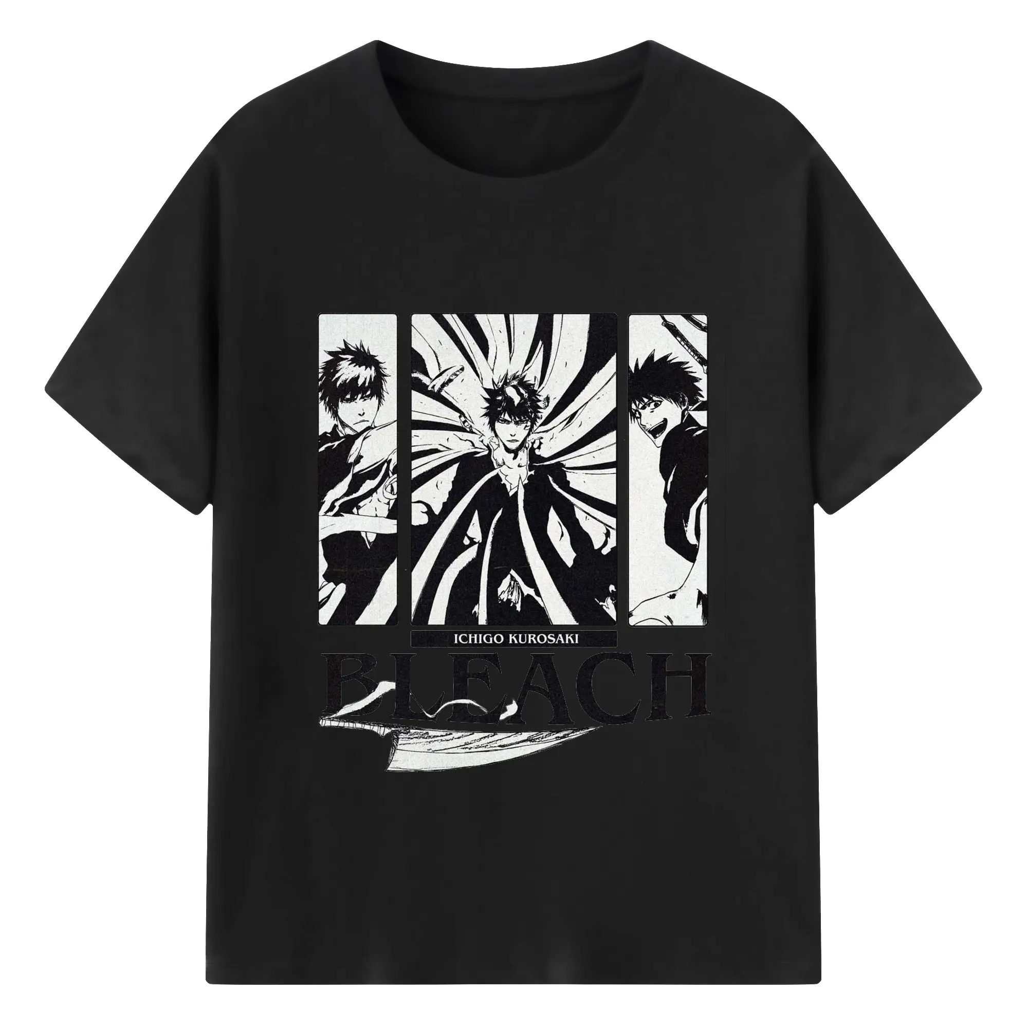 ブリーチ黒崎一護 斬魄刀 - 綿100% 半袖Tシャツ ・ フロントプリント ・ 快適 通気性 ・ 日常使い 散歩 スポーツ用
