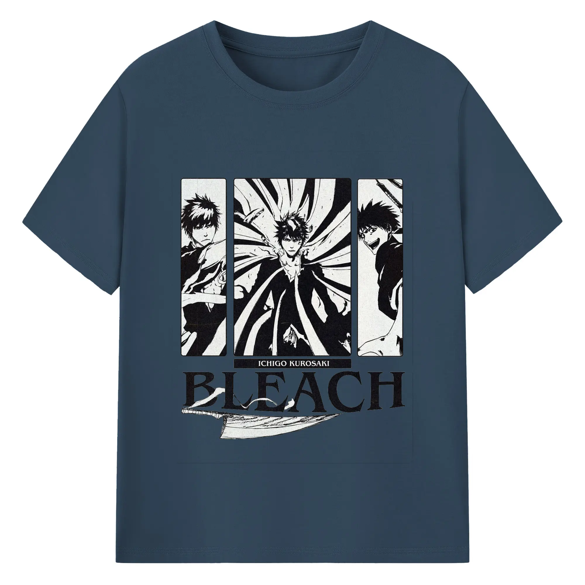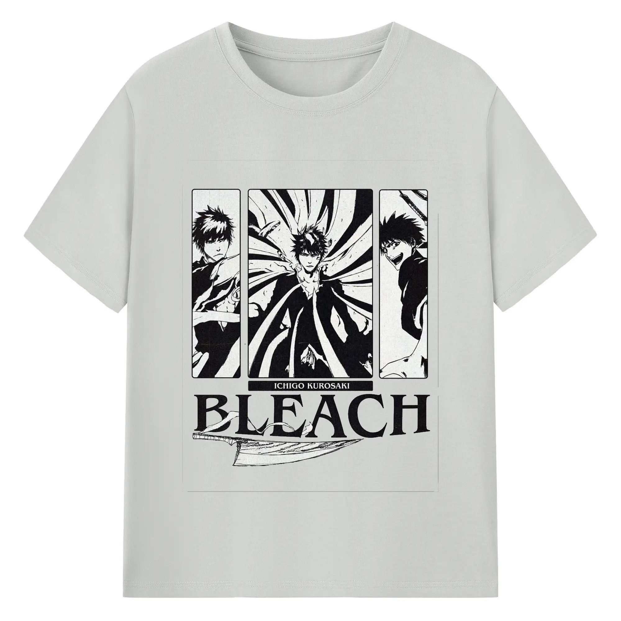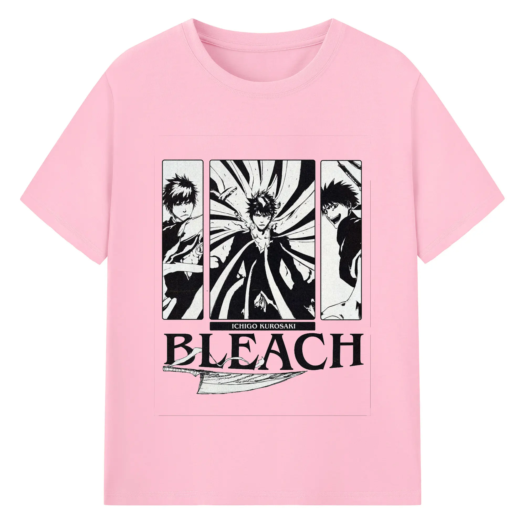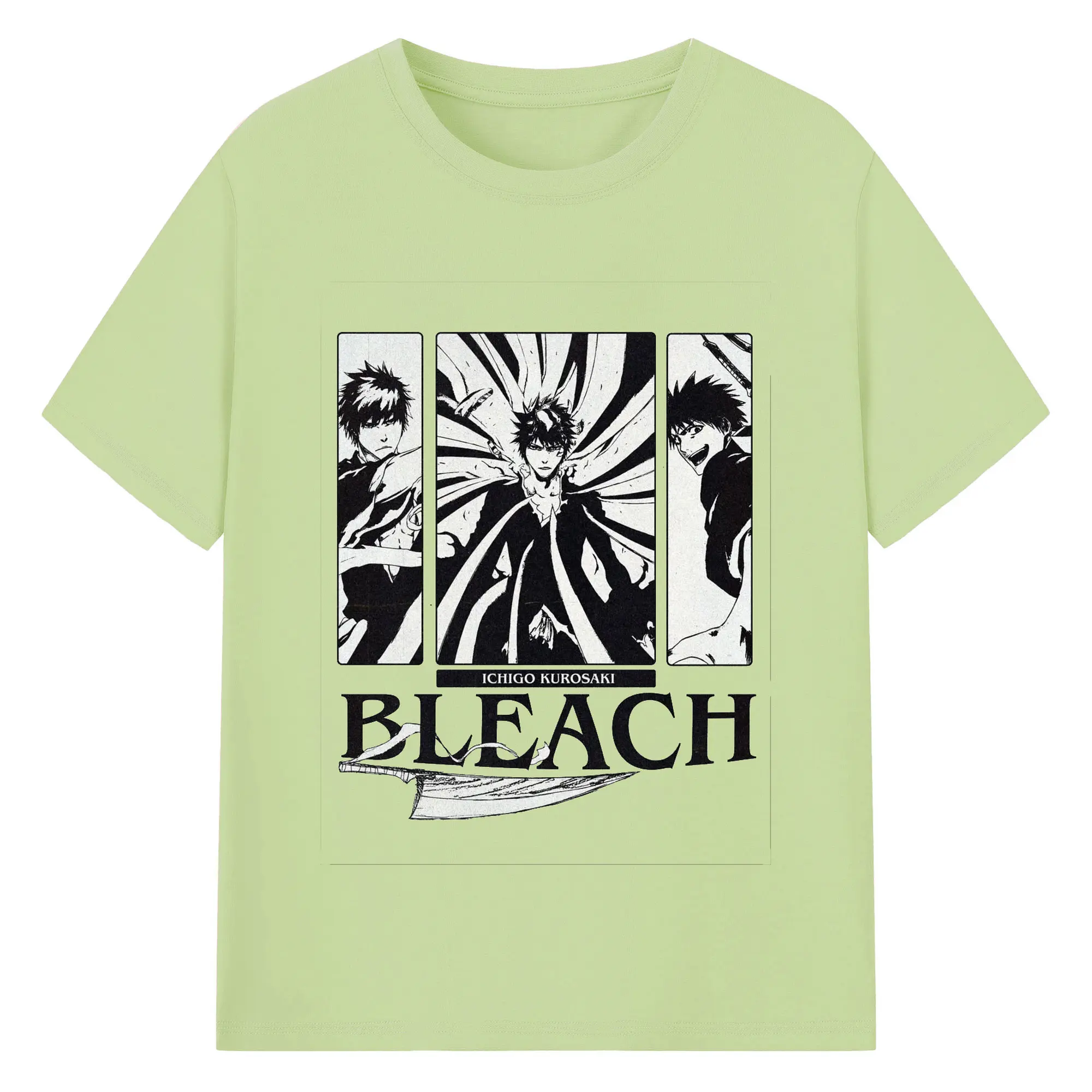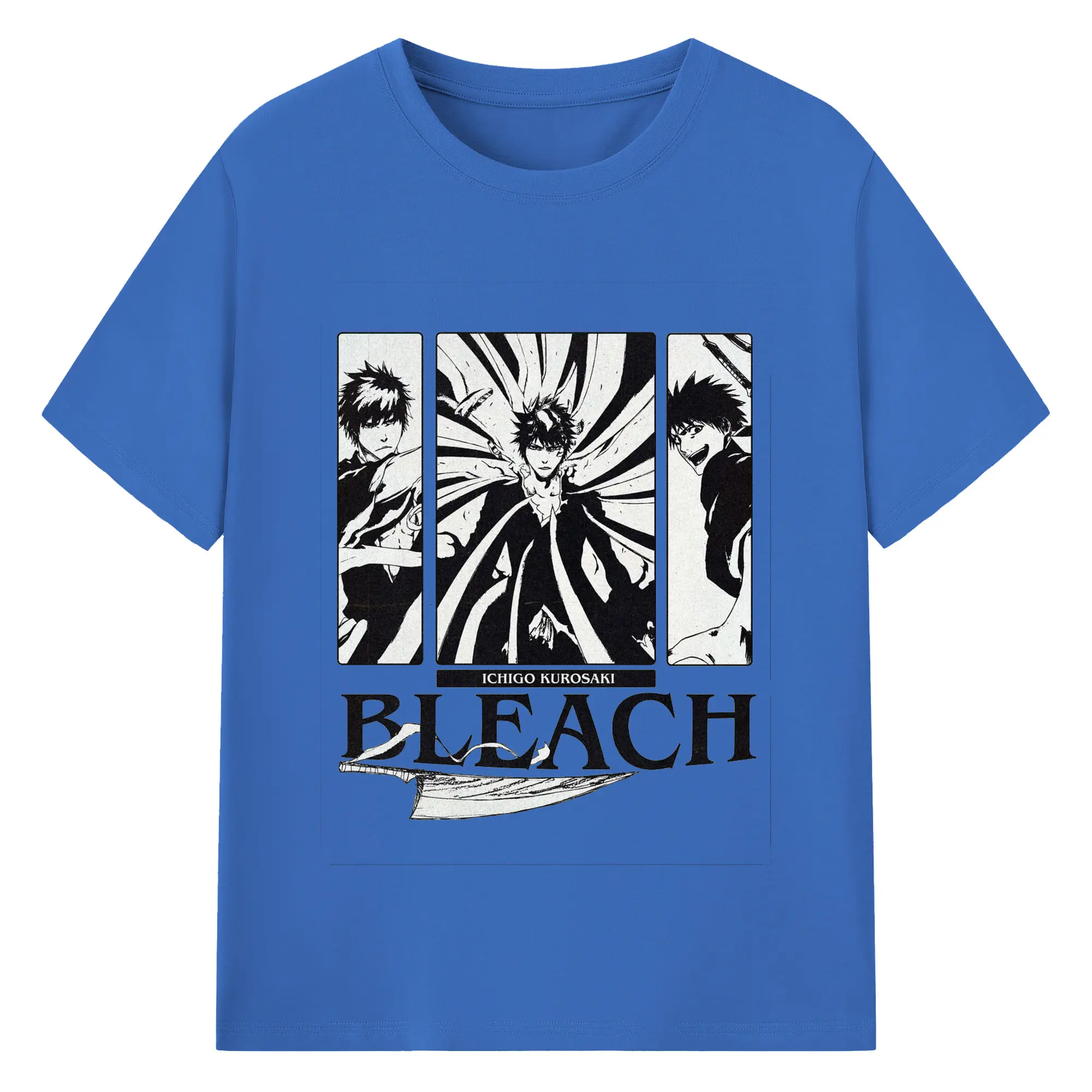ブリーチ黒崎一護 斬魄刀 - 綿100% 半袖Tシャツ ・ フロントプリント ・ 快適 通気性 ・ 日常使い 散歩 スポーツ用