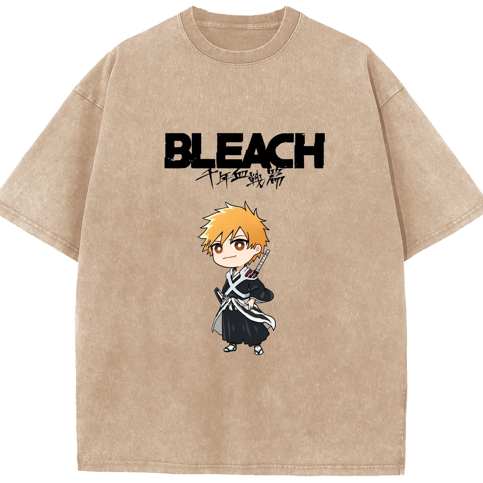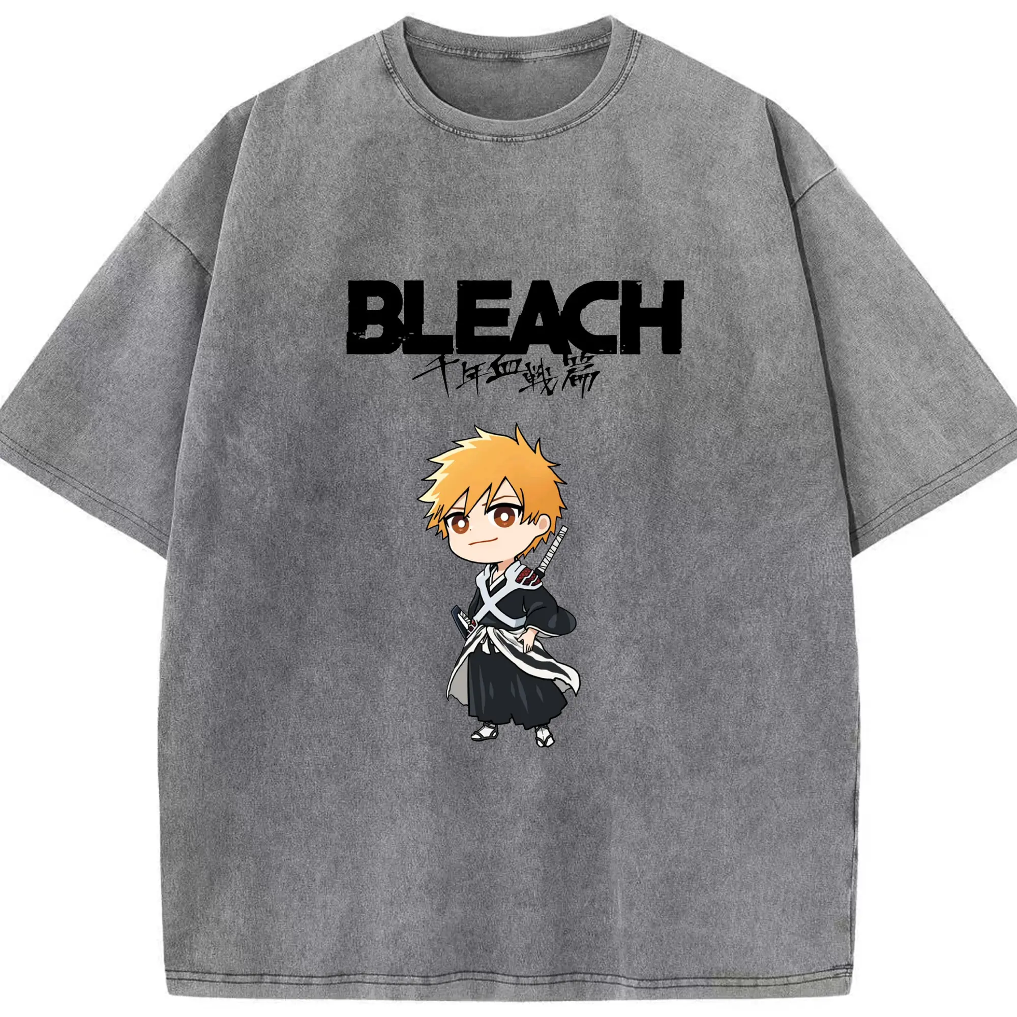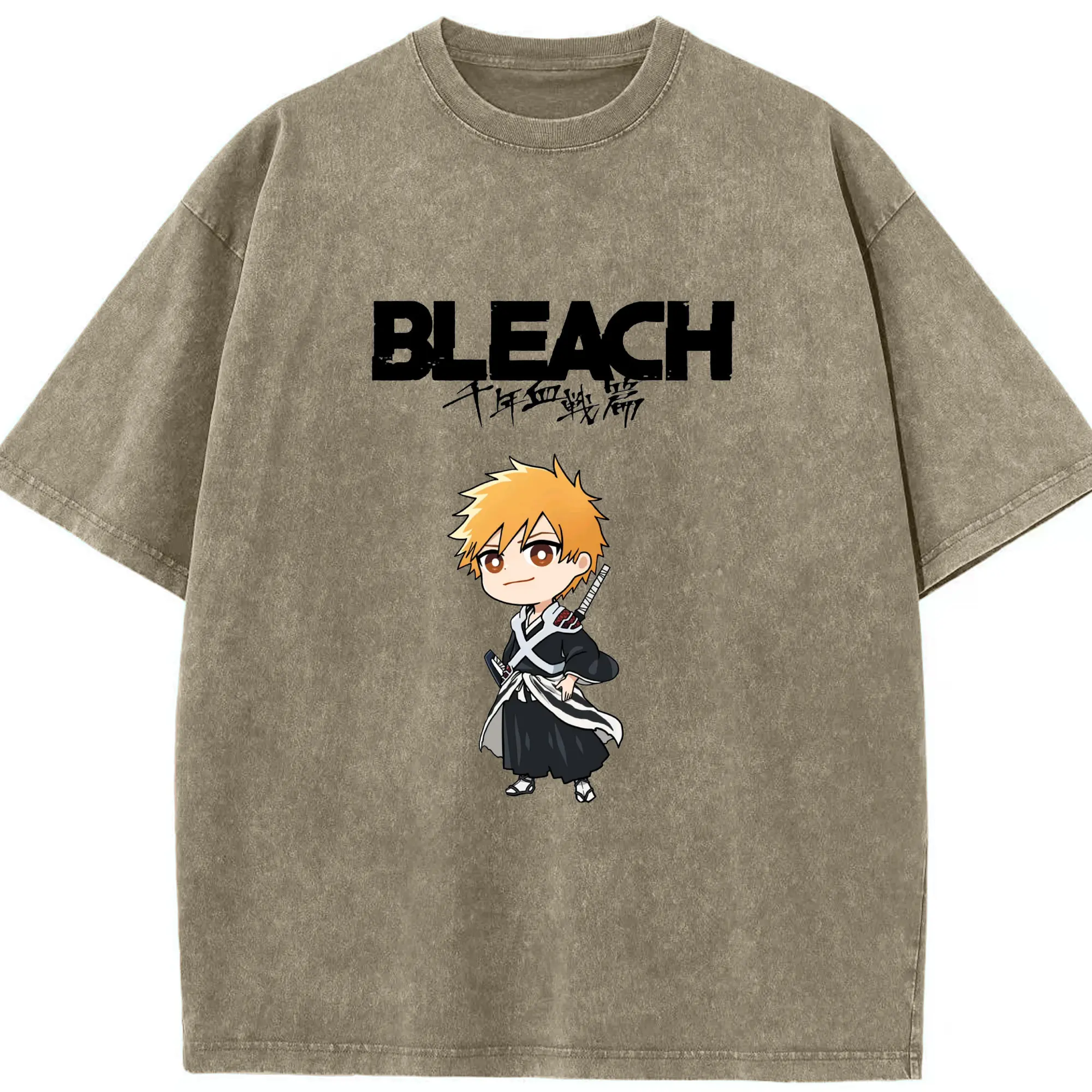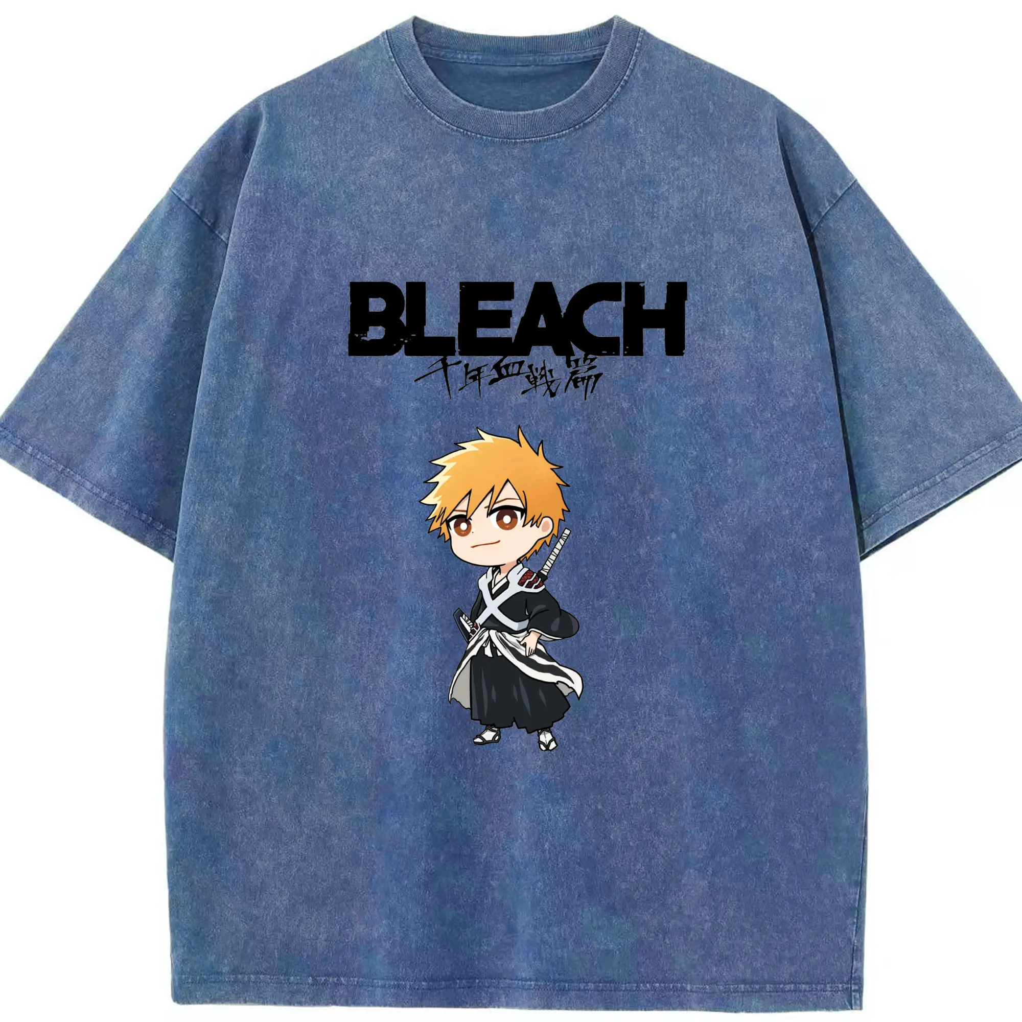 ブリーチ デフォルト 黒崎一護 - 綿100% ヴィンテージ風 半袖Tシャツ ・ フロントプリント ・ 柔らか肌触り ・ 通気性 快適 ・ スポーツ カジュアル 外出用