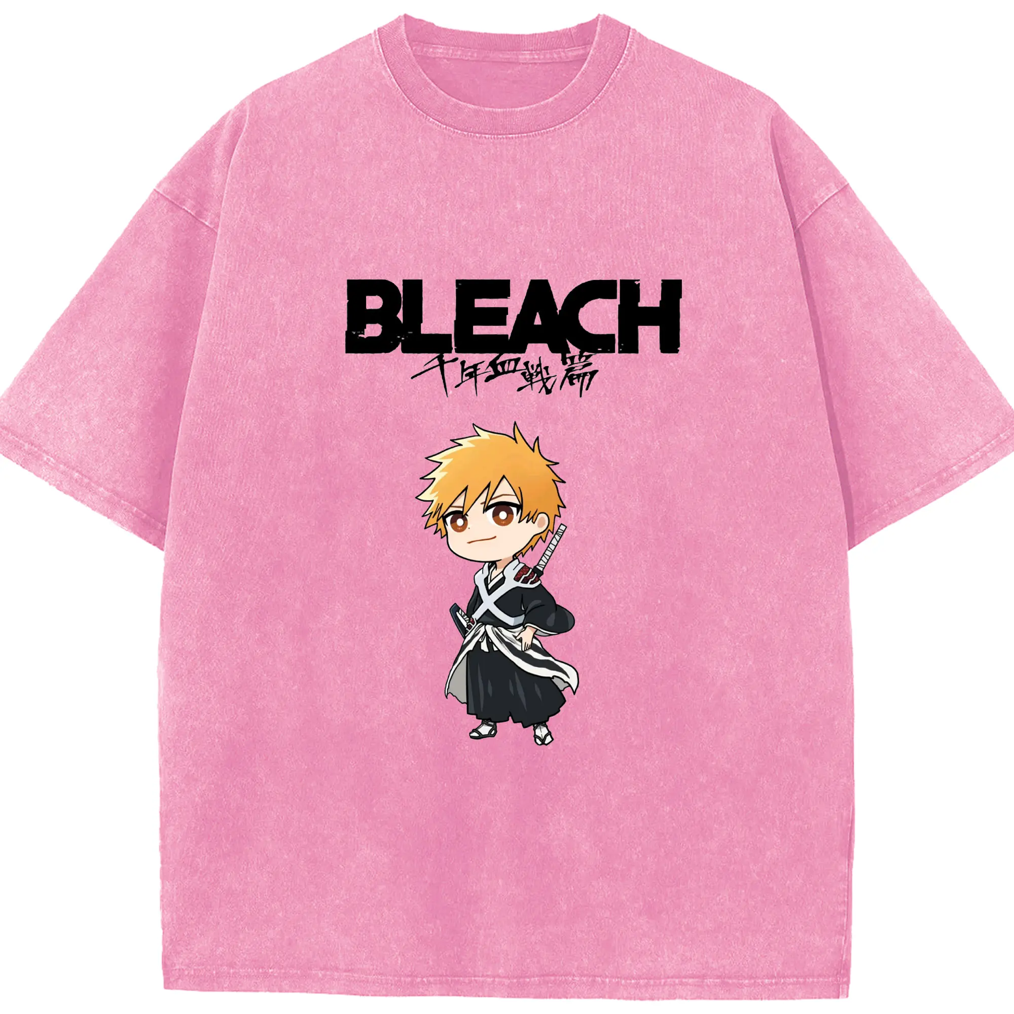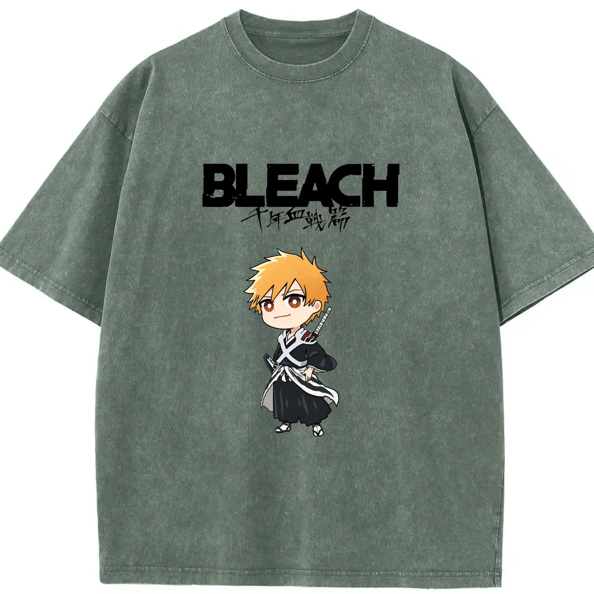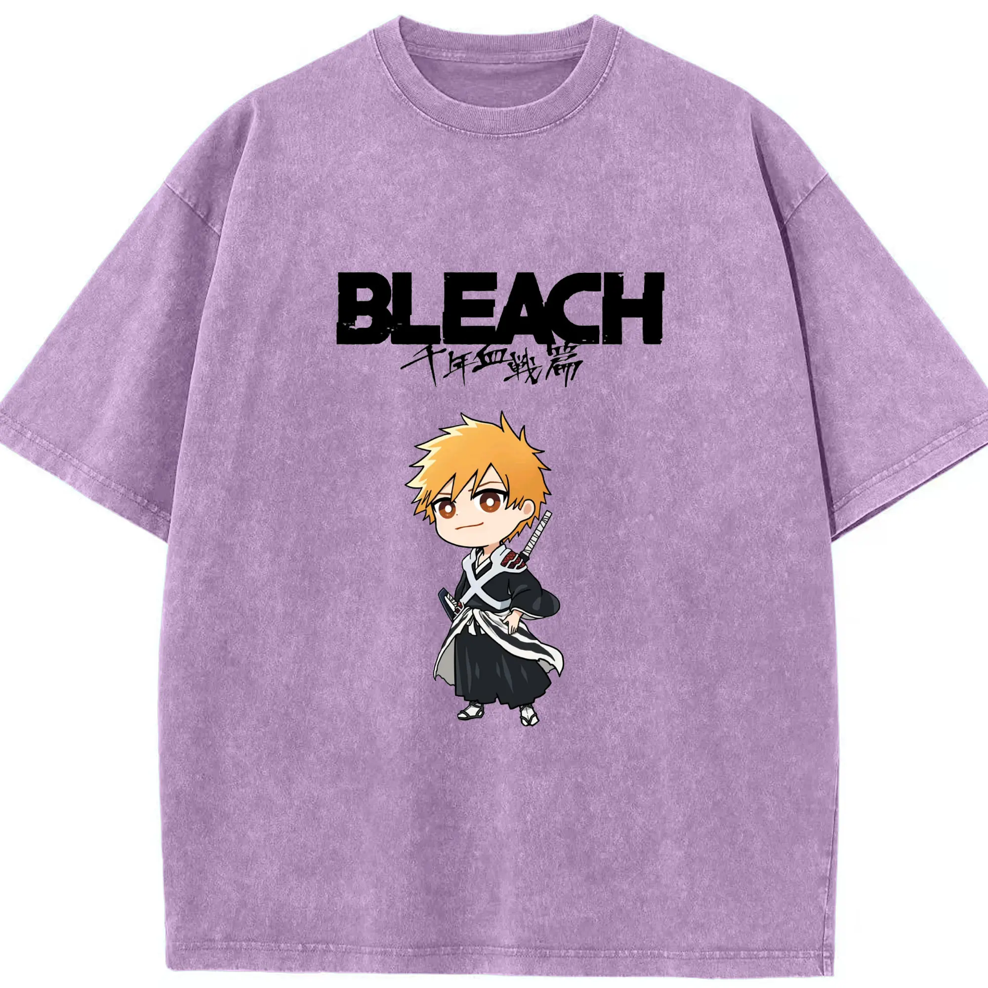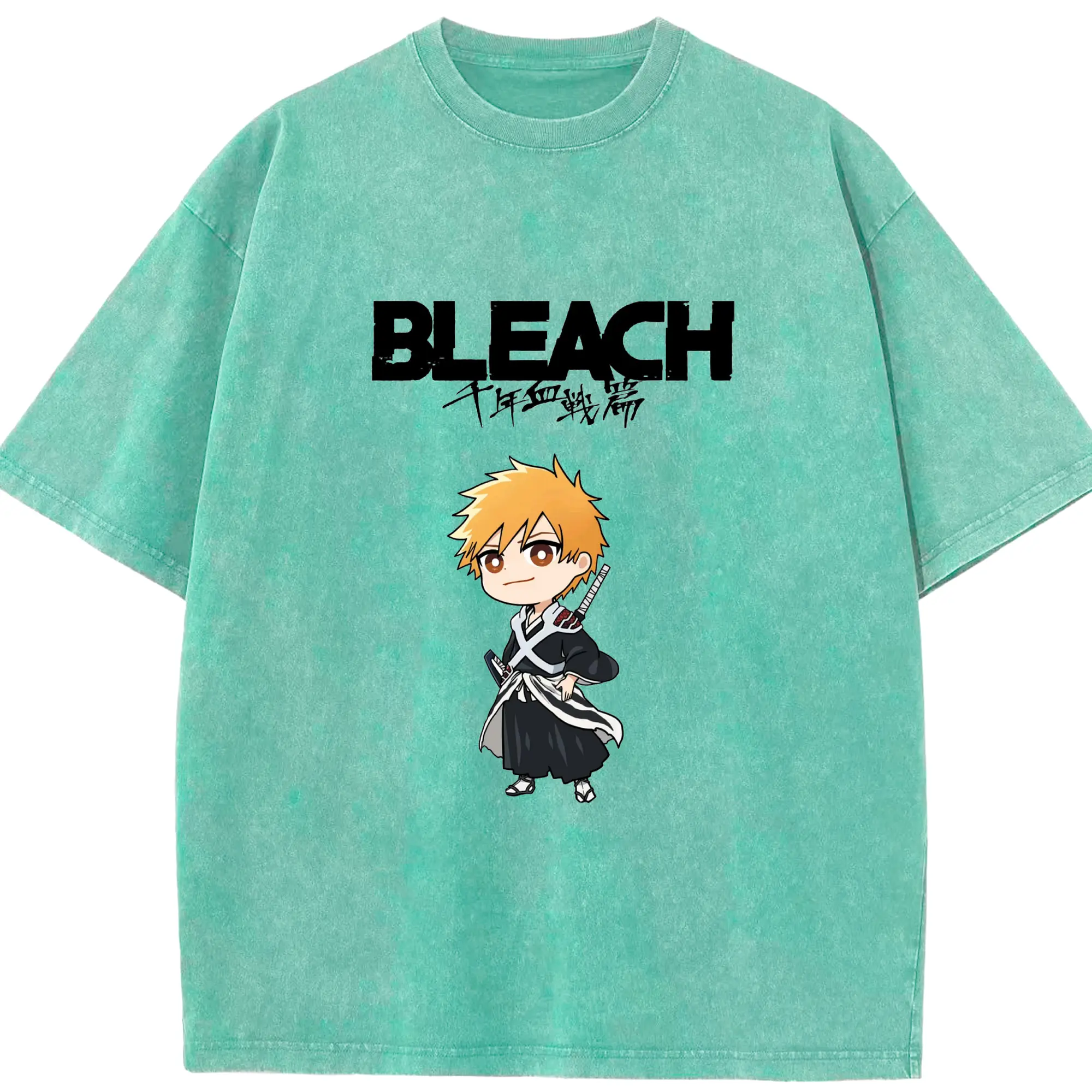 ブリーチ デフォルト 黒崎一護 - 綿100% ヴィンテージ風 半袖Tシャツ ・ フロントプリント ・ 柔らか肌触り ・ 通気性 快適 ・ スポーツ カジュアル 外出用