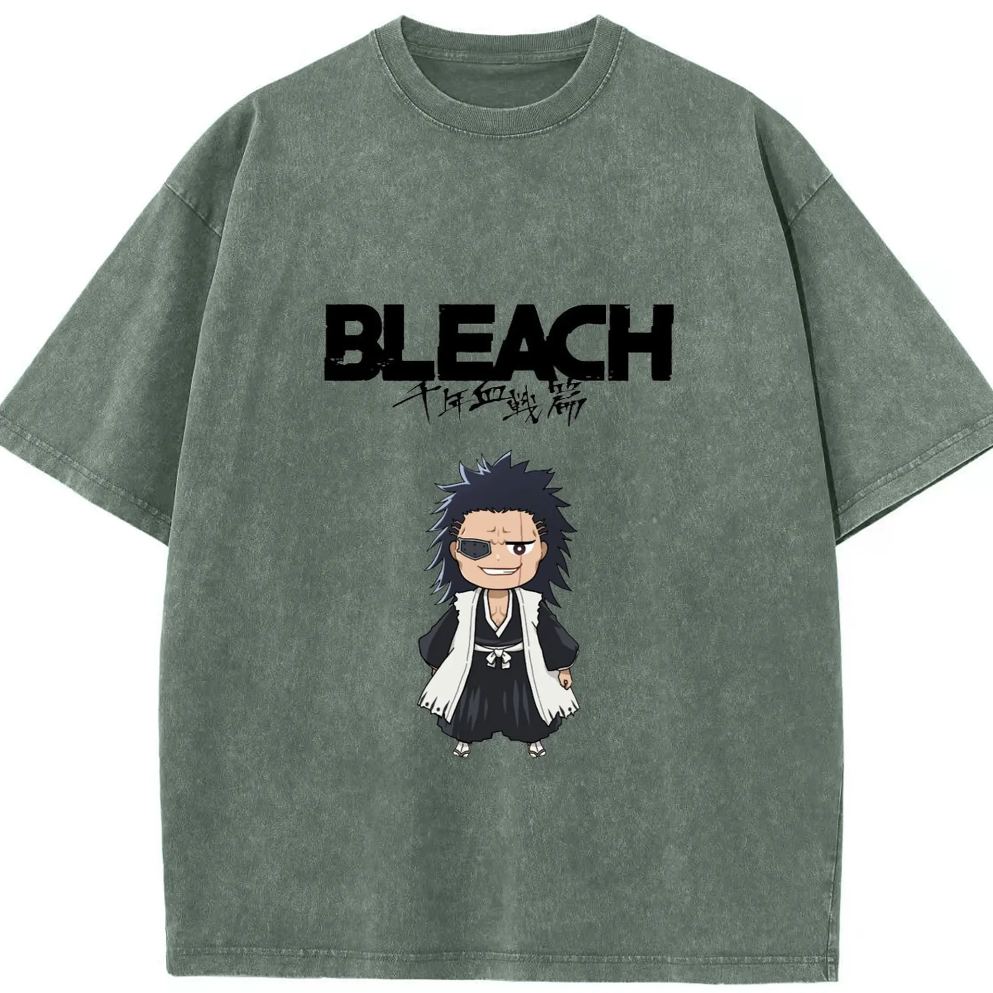 ブリーチ デフォルトデフォルト 更木剣八 - 綿100% ヴィンテージ風 半袖Tシャツ ・ フロントプリント ・ 柔らか肌触り ・ 通気性 快適 ・ スポーツ カジュアル 外出用