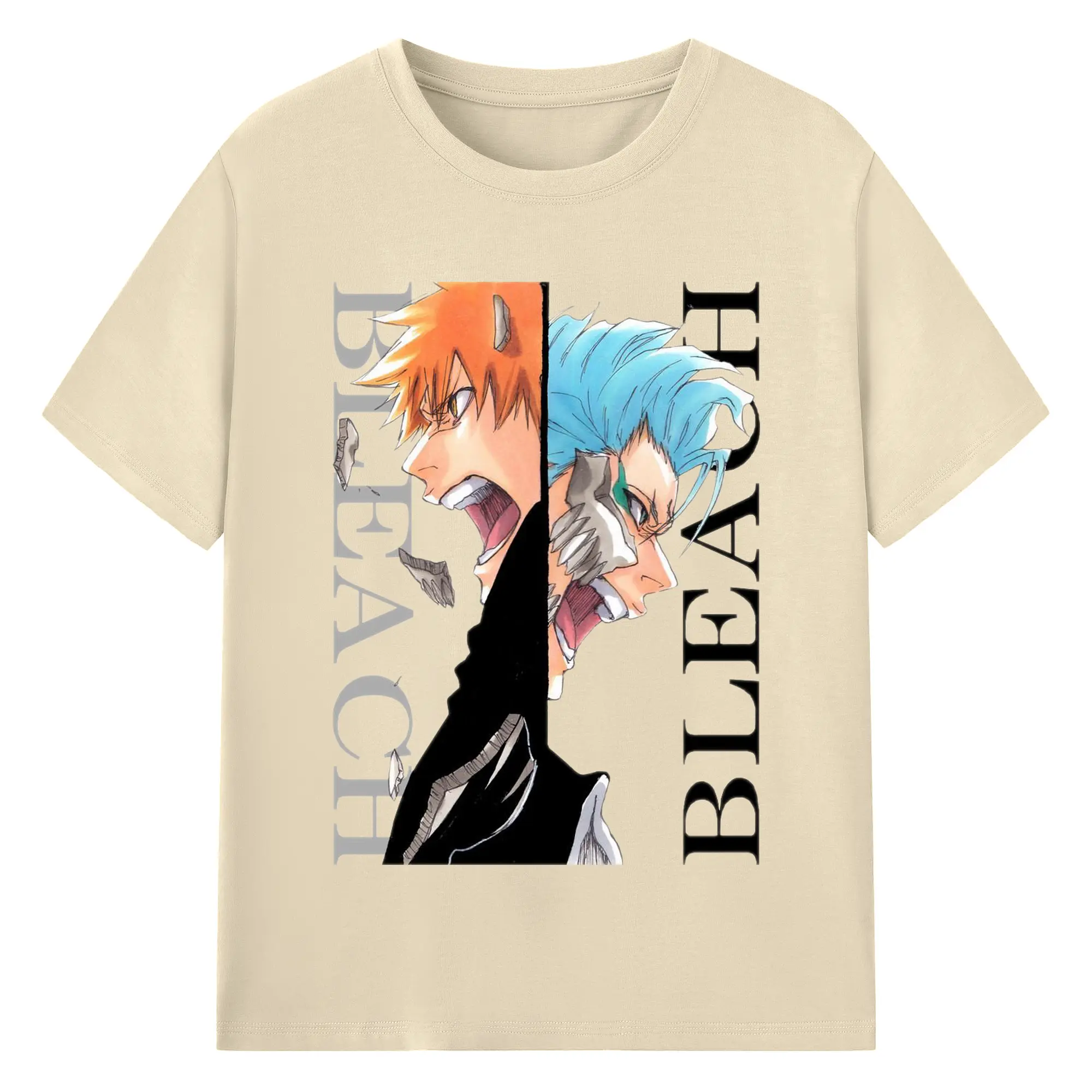 ブリーチ 一護覚醒 - 綿100% ヴィンテージ風 半袖Tシャツ ・ フロントプリント ・ 柔らか肌触り ・ 通気性 快適 ・ スポーツ カジュアル 外出用