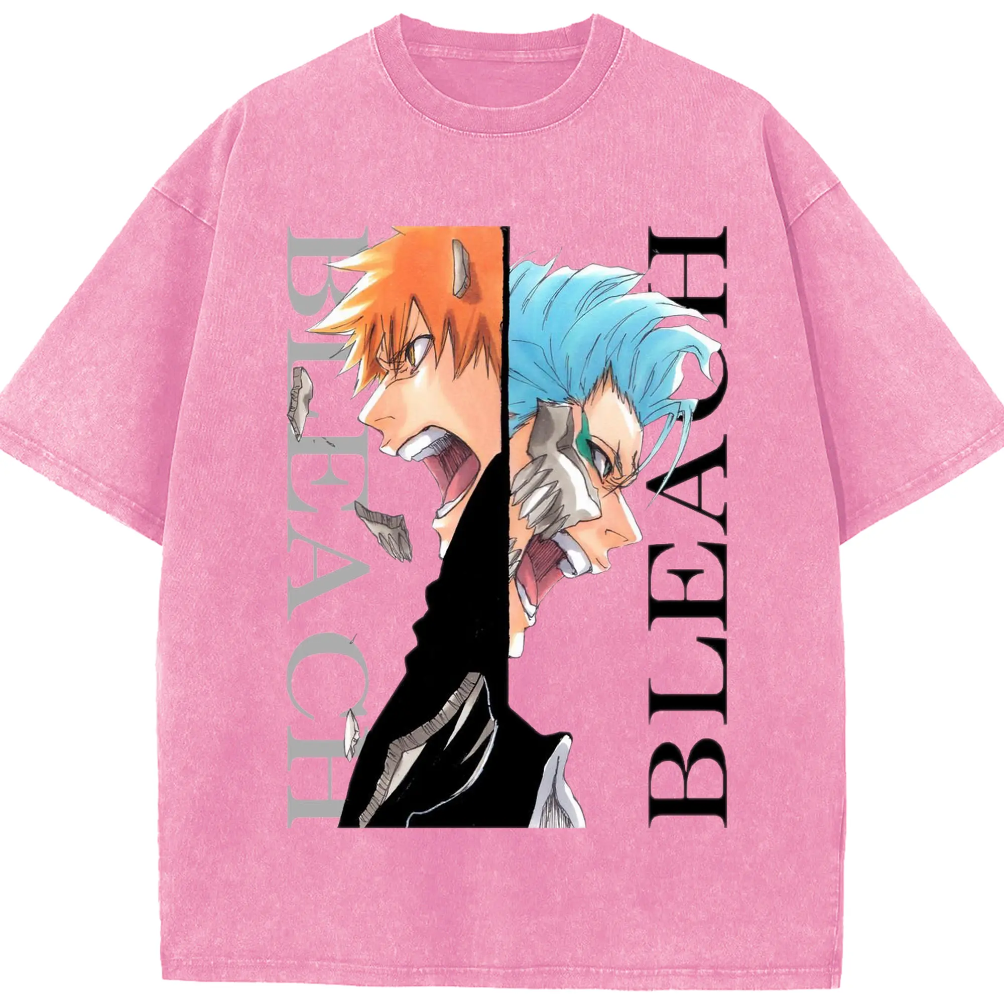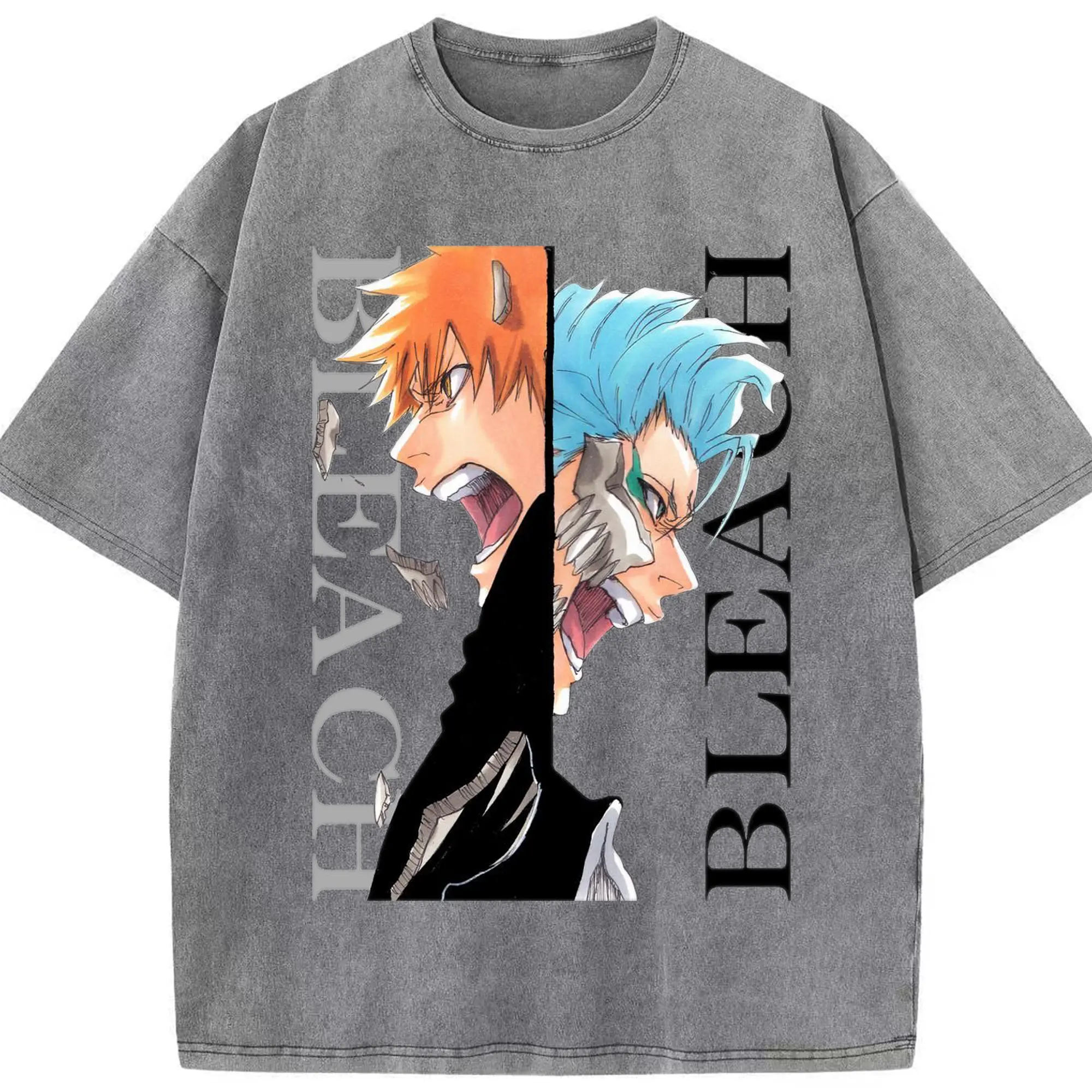 ブリーチ 一護覚醒 - 綿100% ヴィンテージ風 半袖Tシャツ ・ フロントプリント ・ 柔らか肌触り ・ 通気性 快適 ・ スポーツ カジュアル 外出用