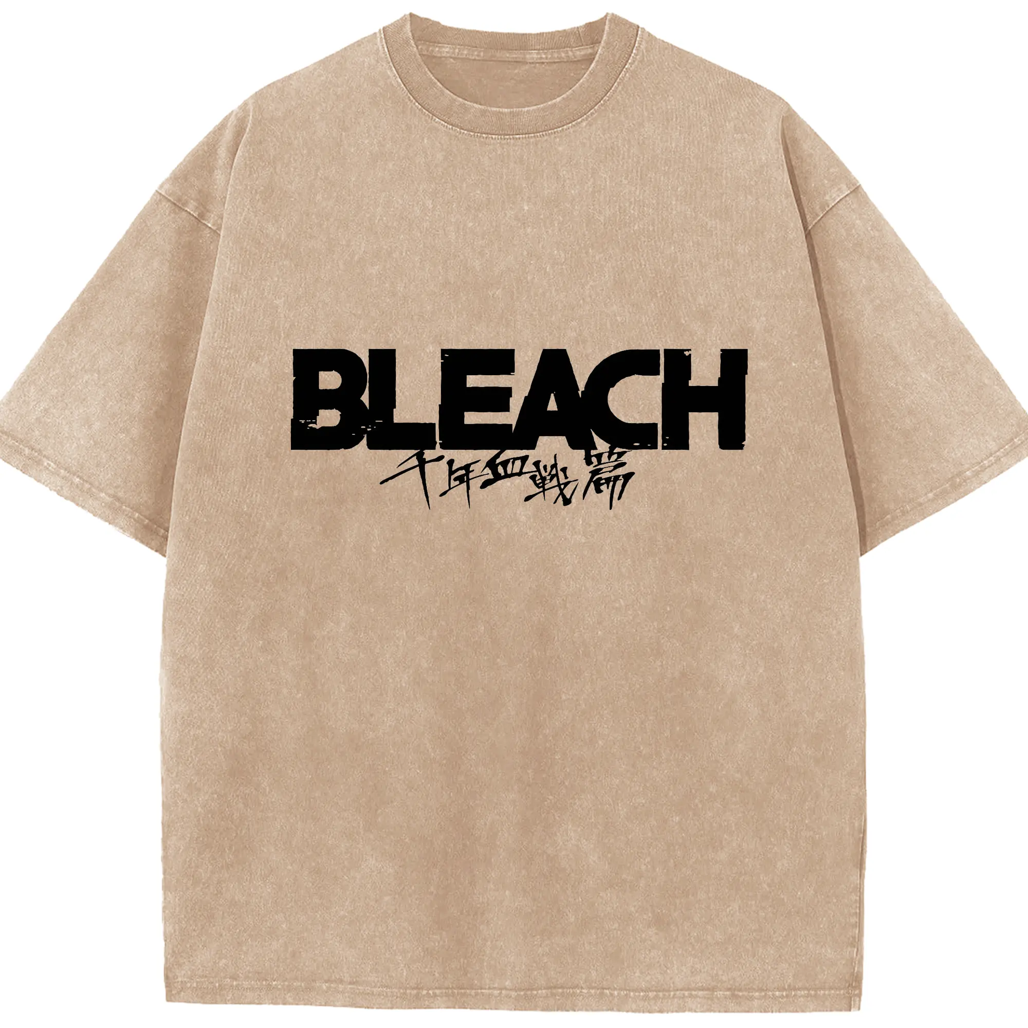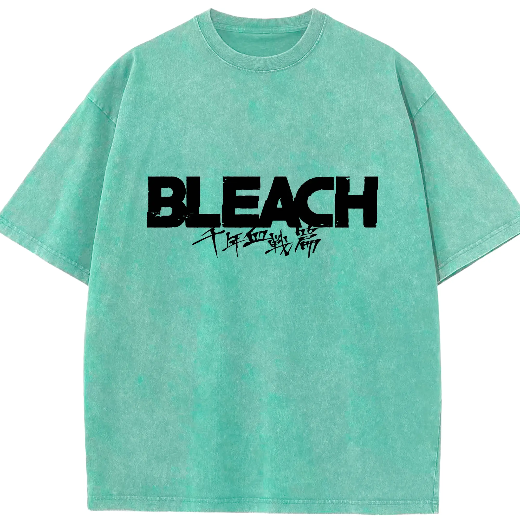 ブリーチ 千年血戦シンプルロゴ - 綿100% ヴィンテージ風 半袖Tシャツ ・ フロントプリント ・ 柔らか肌触り ・ 通気性 快適 ・ スポーツ カジュアル 外出用