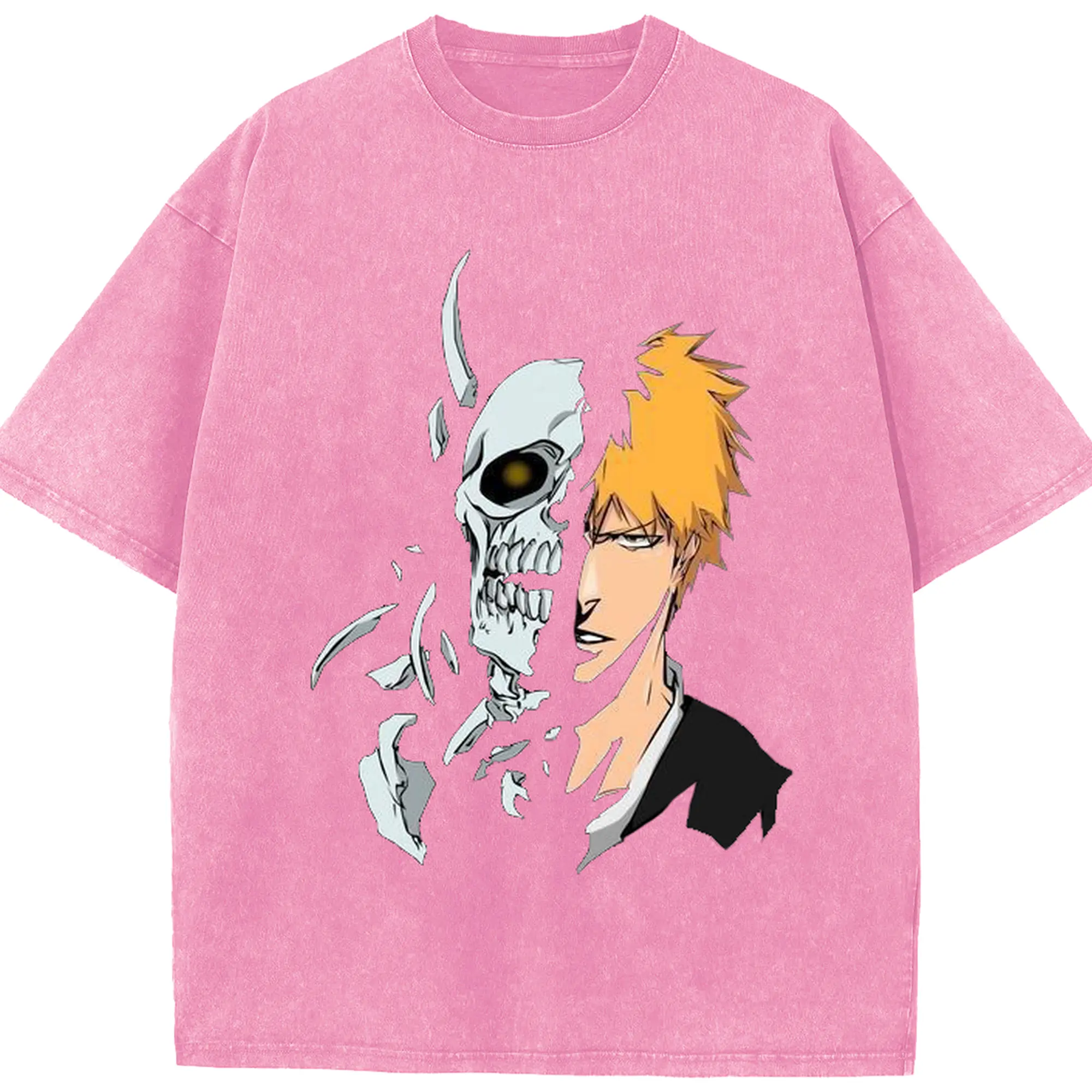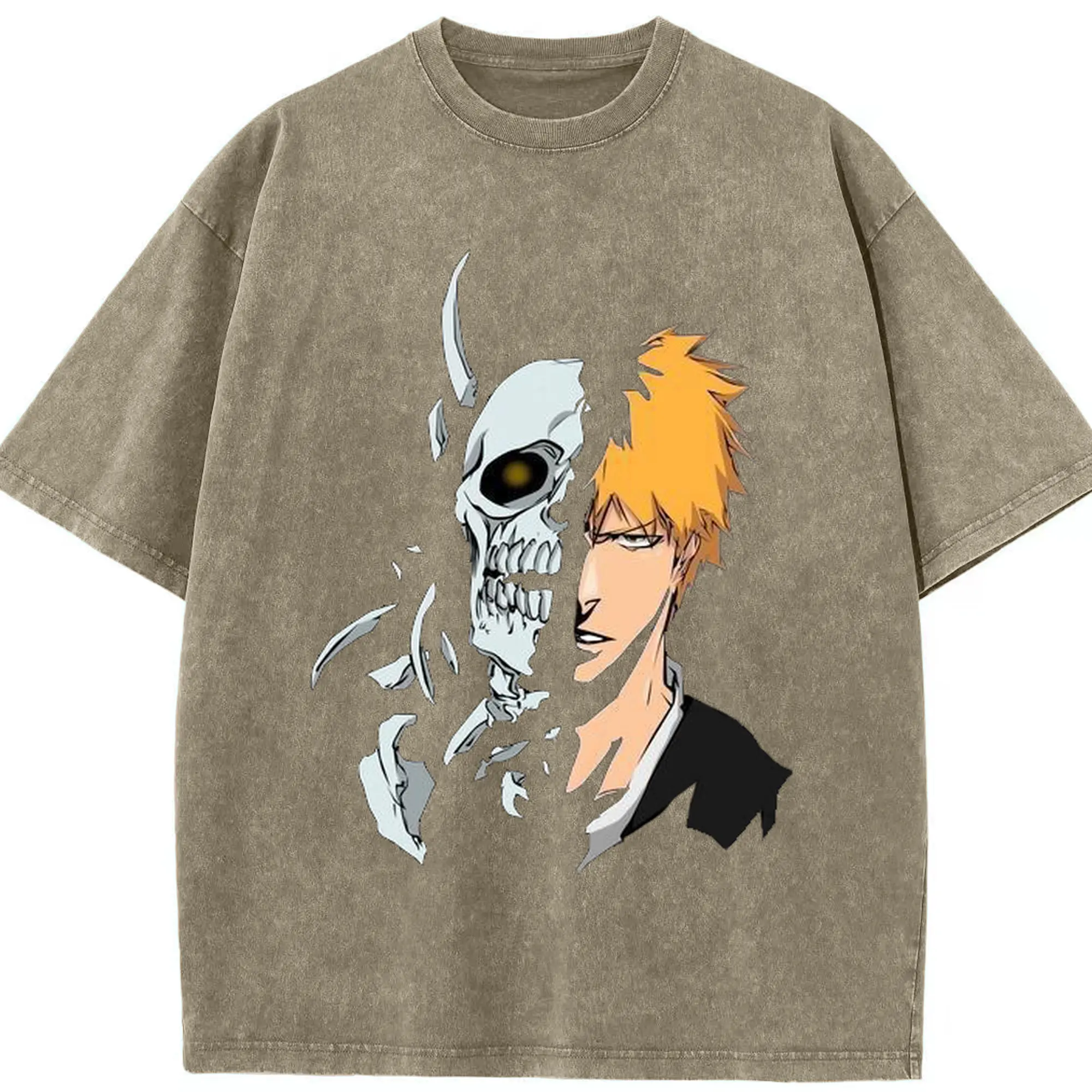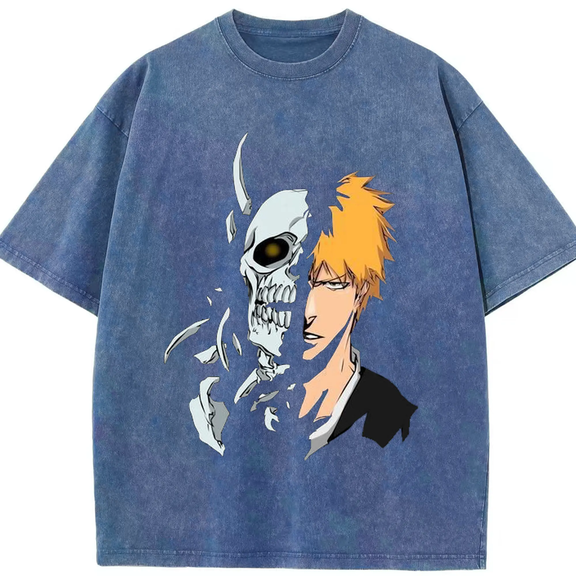 ブリーチ 黒崎一護 ヴァイザード - 綿100% ヴィンテージ風 半袖Tシャツ ・ フロントプリント ・ 柔らか肌触り ・ 通気性 快適 ・ スポーツ カジュアル 外出用