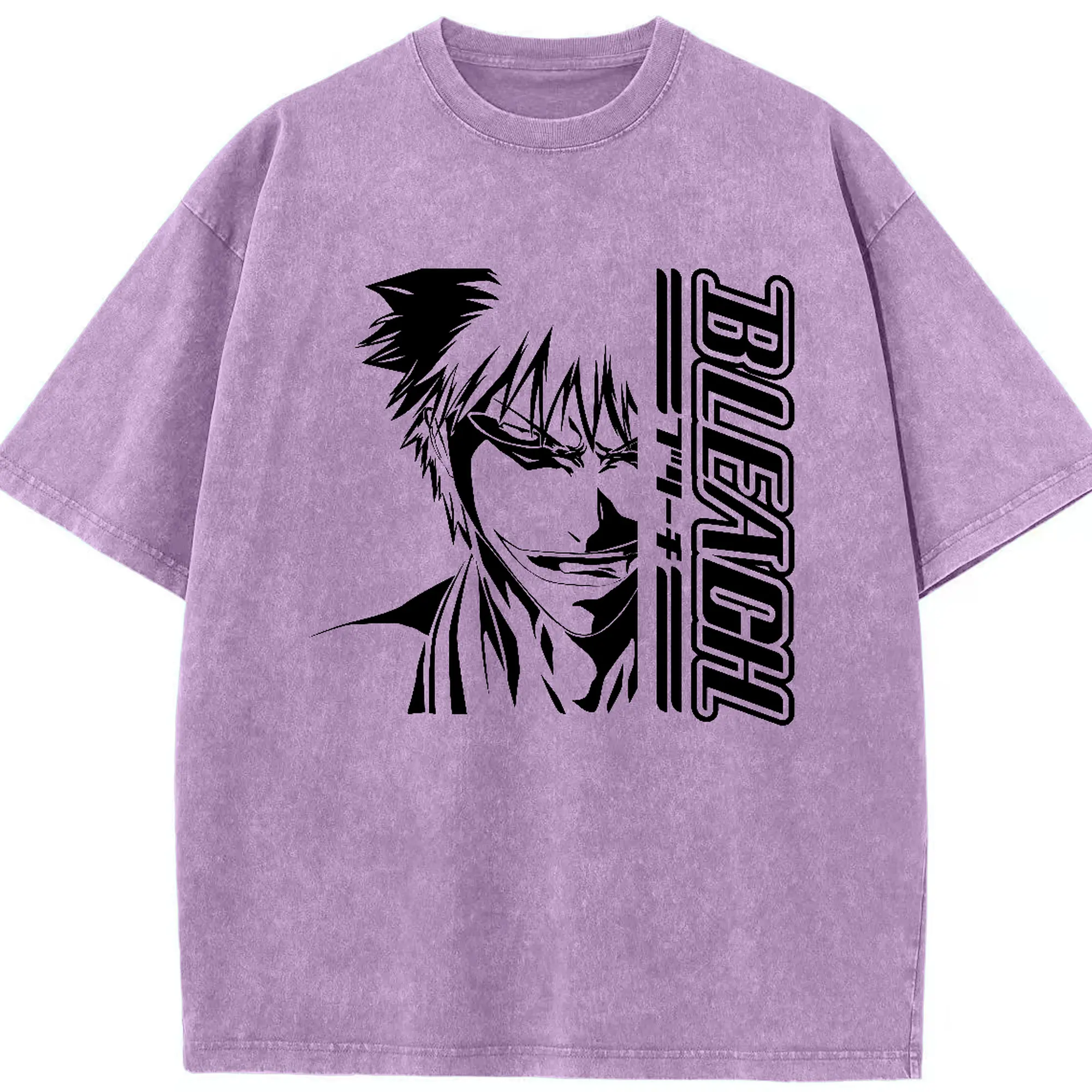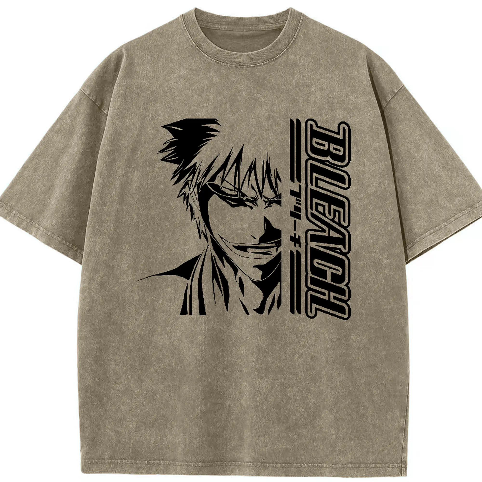 ブリーチ 黒崎一護BLEACH文字付け - 綿100% ヴィンテージ風 半袖Tシャツ ・ フロントプリント ・ 柔らか肌触り ・ 通気性 快適 ・ スポーツ カジュアル 外出用
