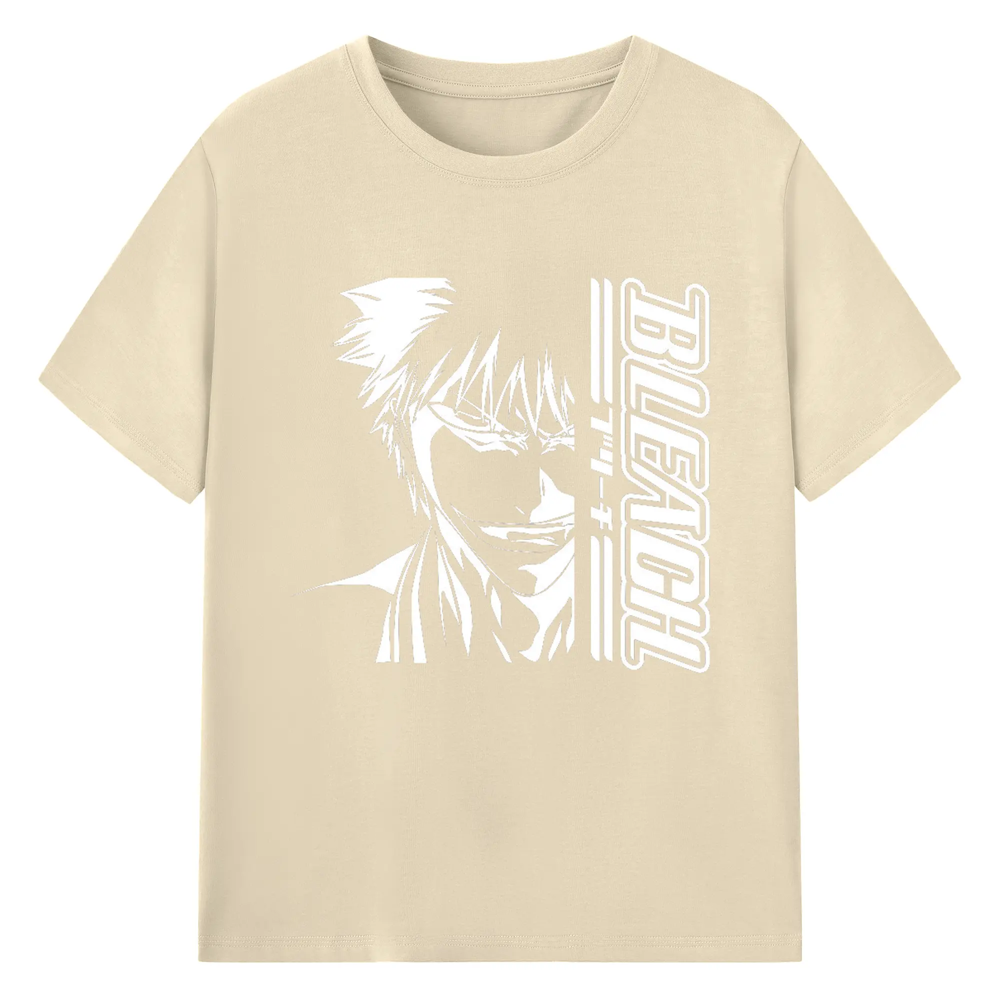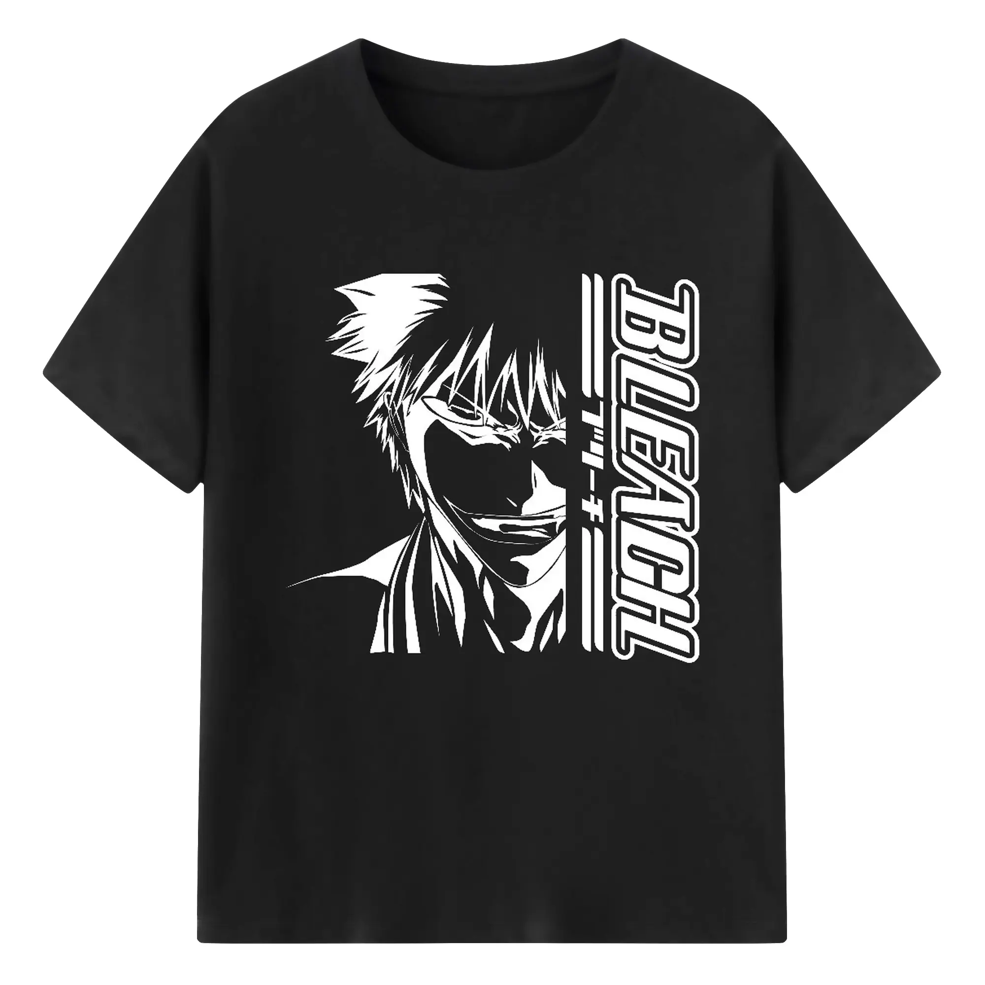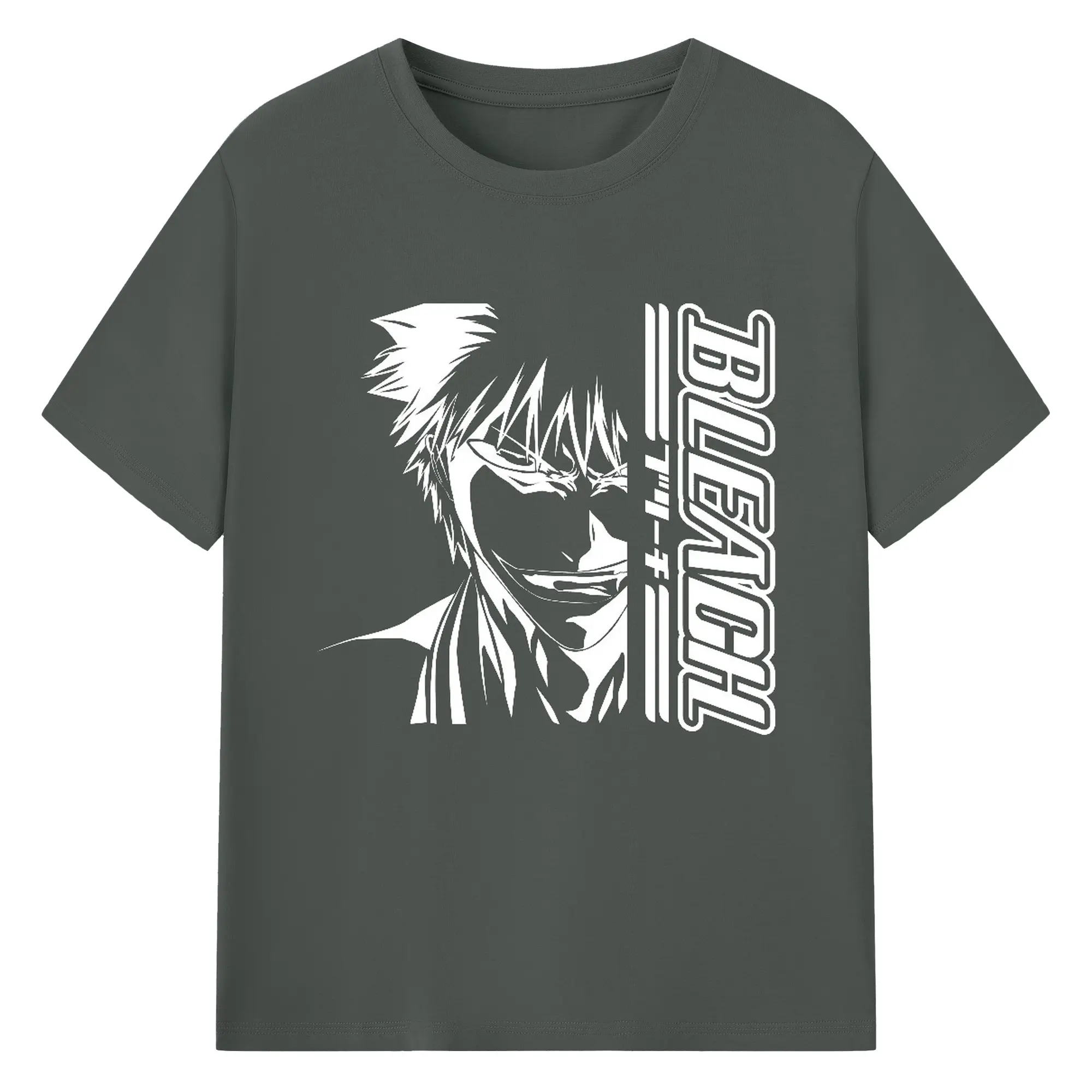 ブリーチ 黒崎一護BLEACH文字付け - 綿100% ヴィンテージ風 半袖Tシャツ ・ フロントプリント ・ 柔らか肌触り ・ 通気性 快適 ・ スポーツ カジュアル 外出用