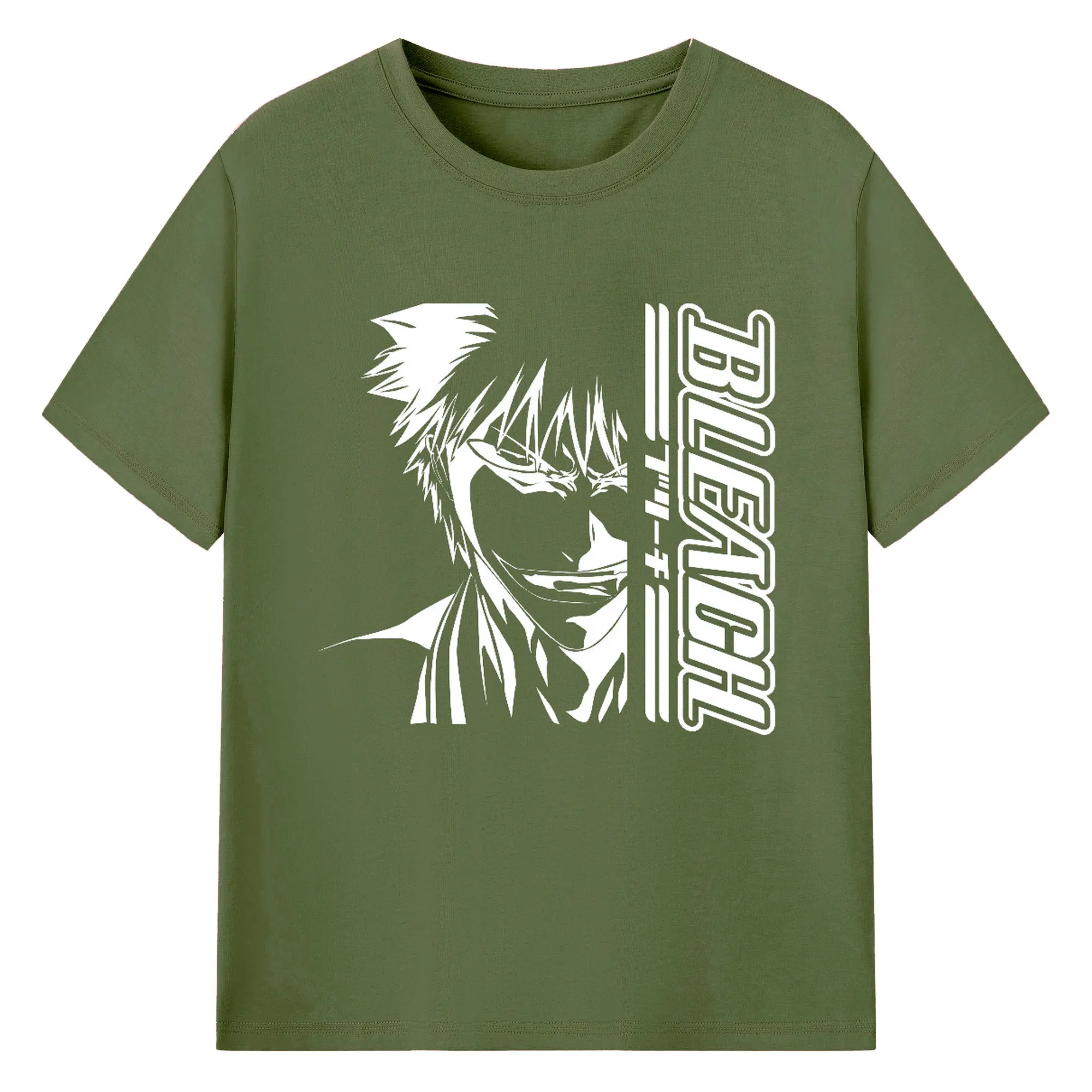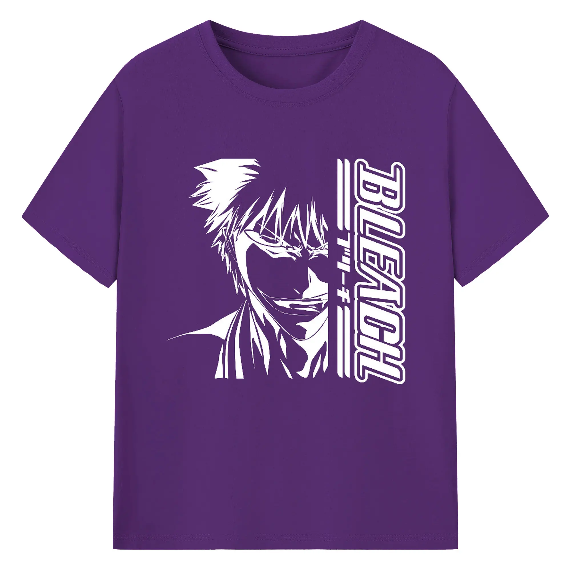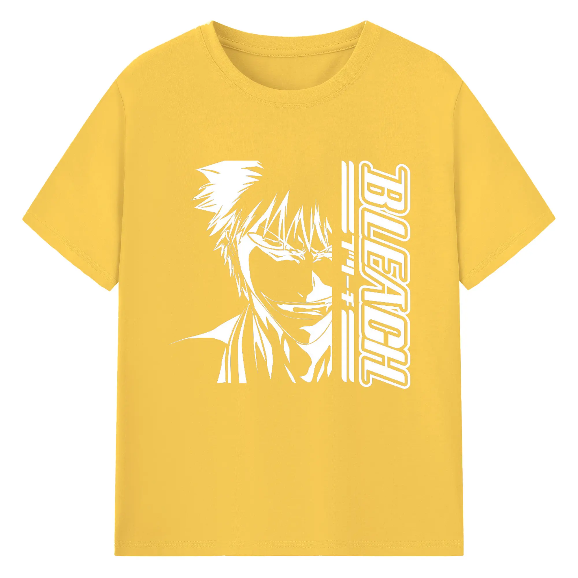 ブリーチ 黒崎一護BLEACH文字付け - 綿100% ヴィンテージ風 半袖Tシャツ ・ フロントプリント ・ 柔らか肌触り ・ 通気性 快適 ・ スポーツ カジュアル 外出用