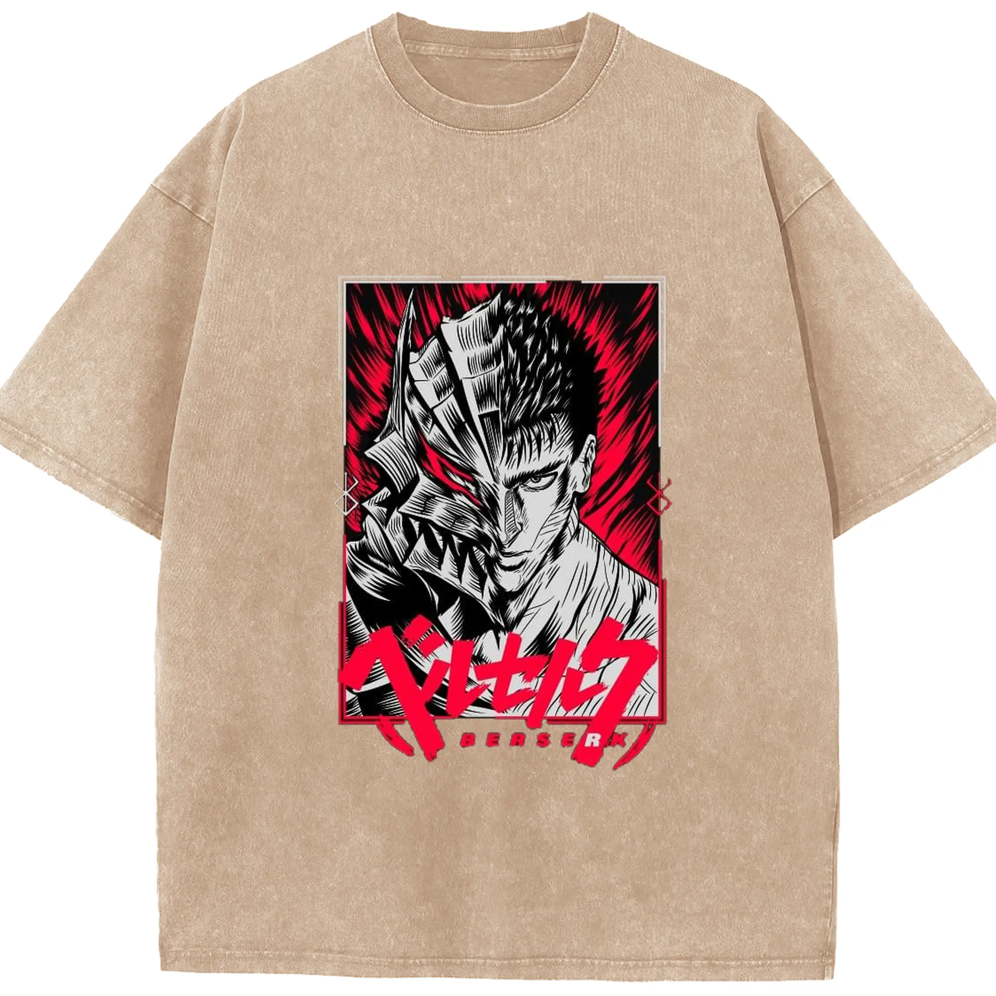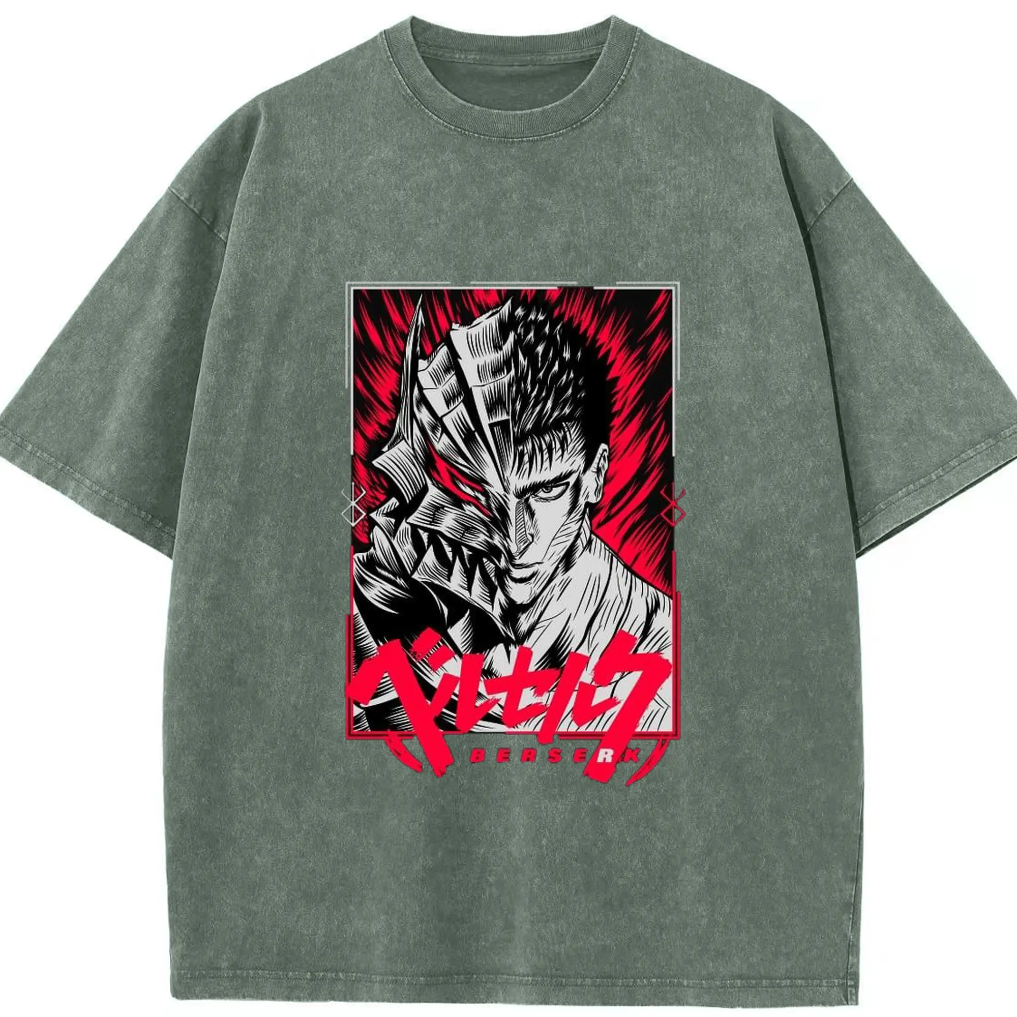 ベルセルク 狂戦士の甲冑ガッツ - 綿100% 半袖Tシャツ ・ フロントプリント ・ 快適 通気性 ・ 日常使い 散歩 スポーツ用