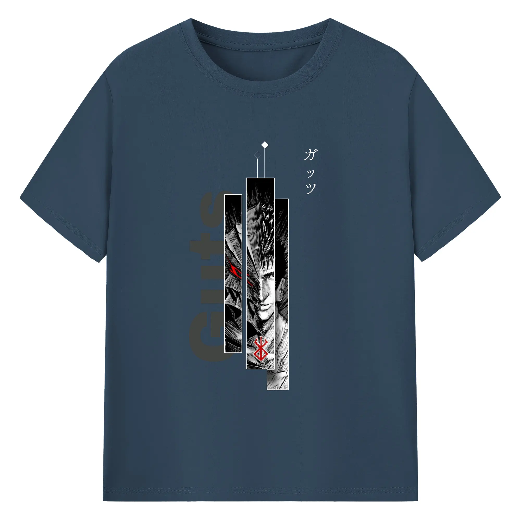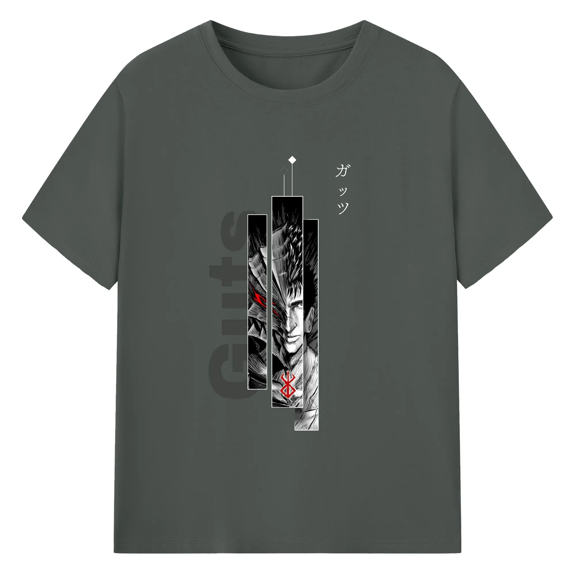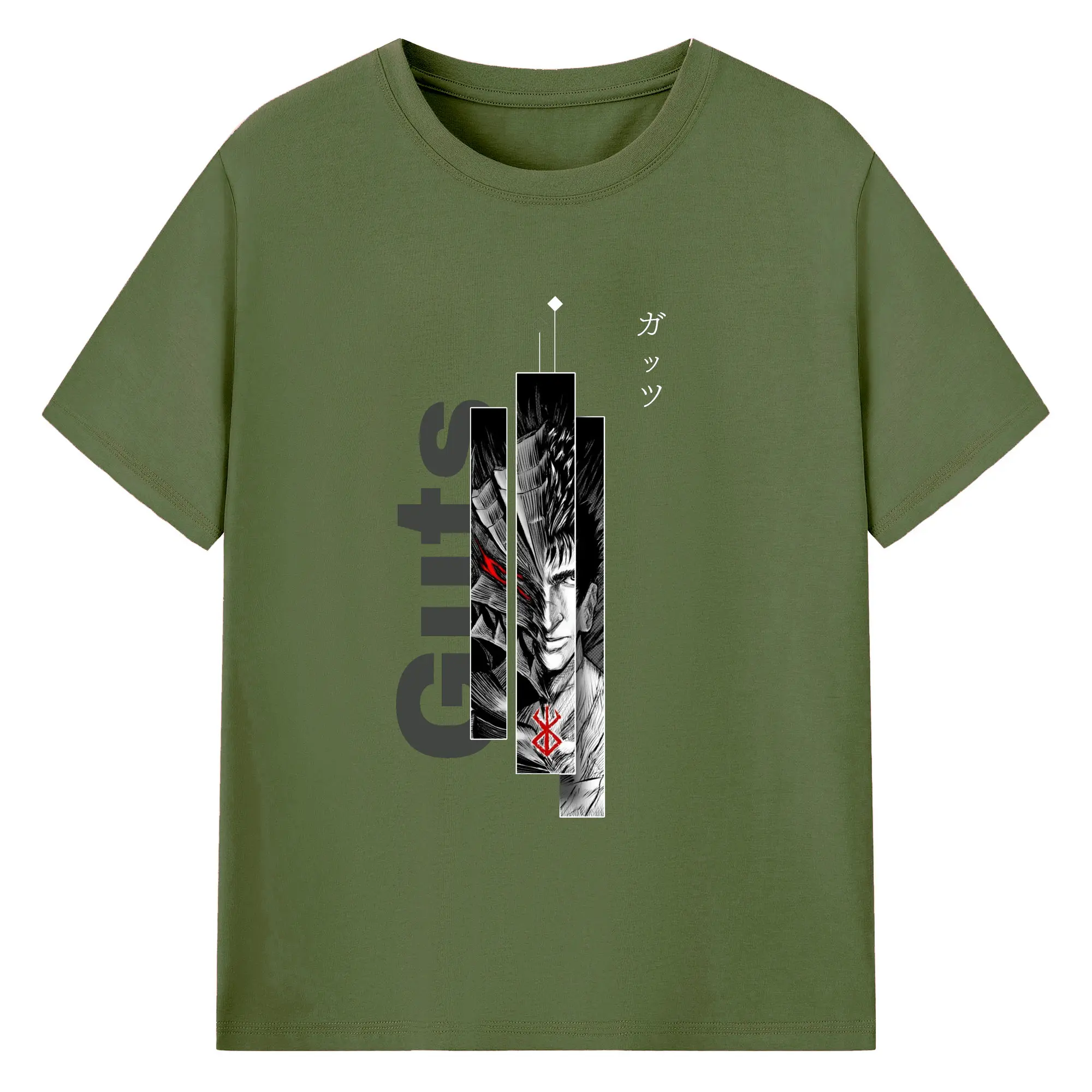 ベルセルク BERSERK ガッツ - 綿100% ヴィンテージ風 半袖Tシャツ ・ フロントプリント ・ 柔らか肌触り ・ 通気性 快適 ・ スポーツ カジュアル 外出用