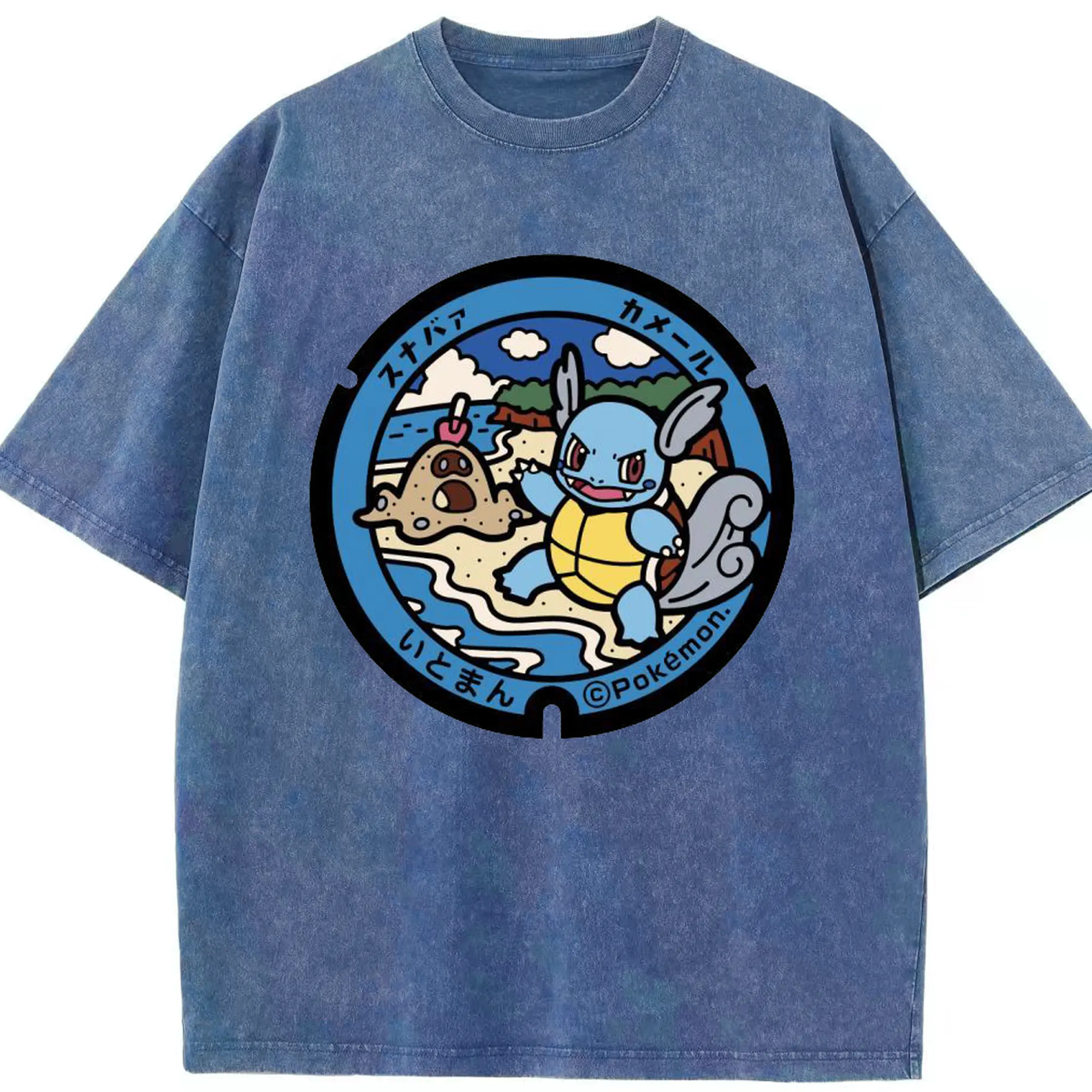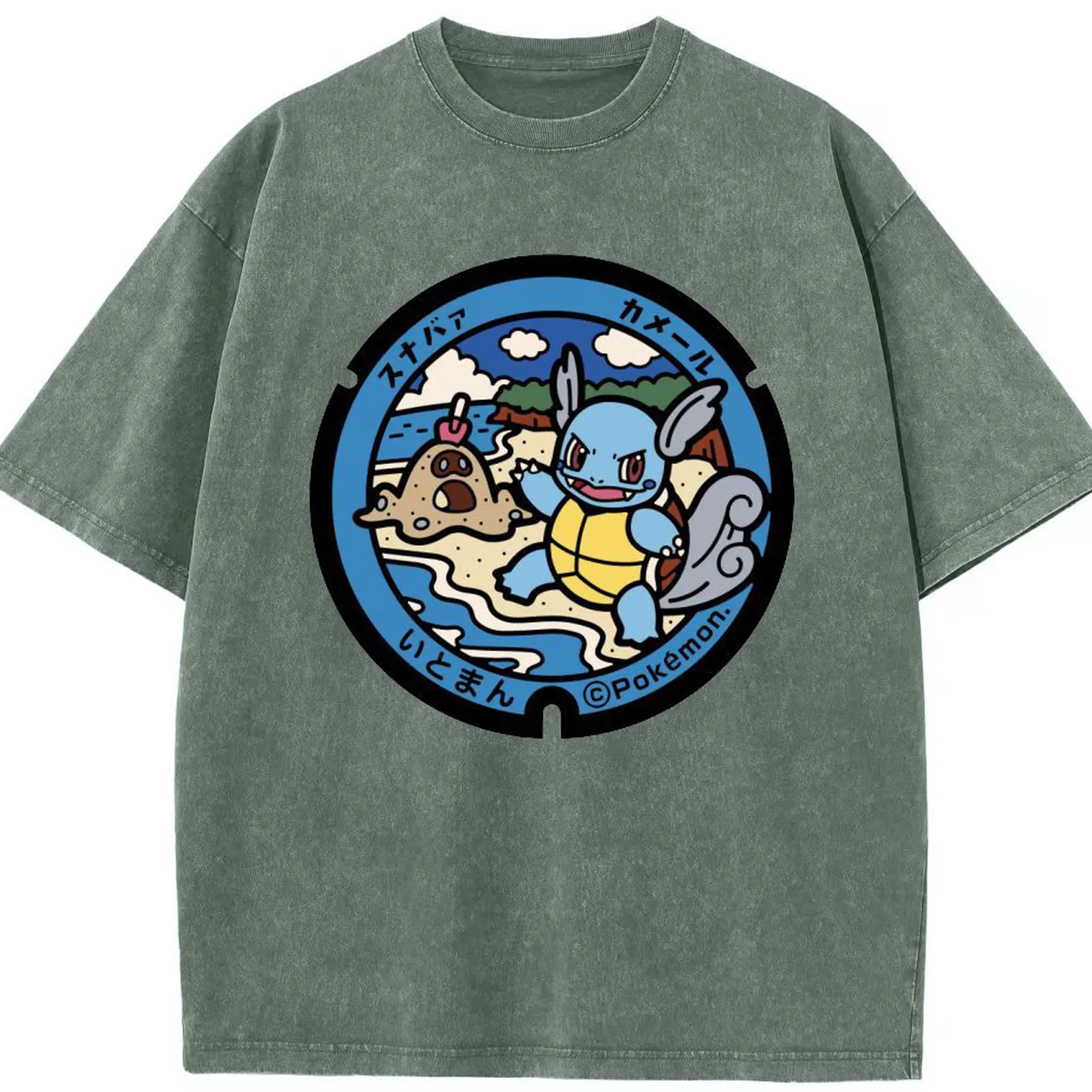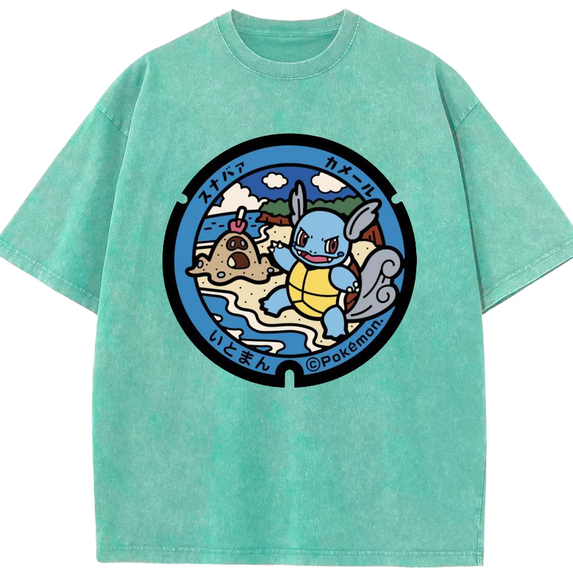 ポケモン カメール - 綿100% 半袖Tシャツ ・ フロントプリント ・ 快適 通気性 ・ 日常使い 散歩 スポーツ用
