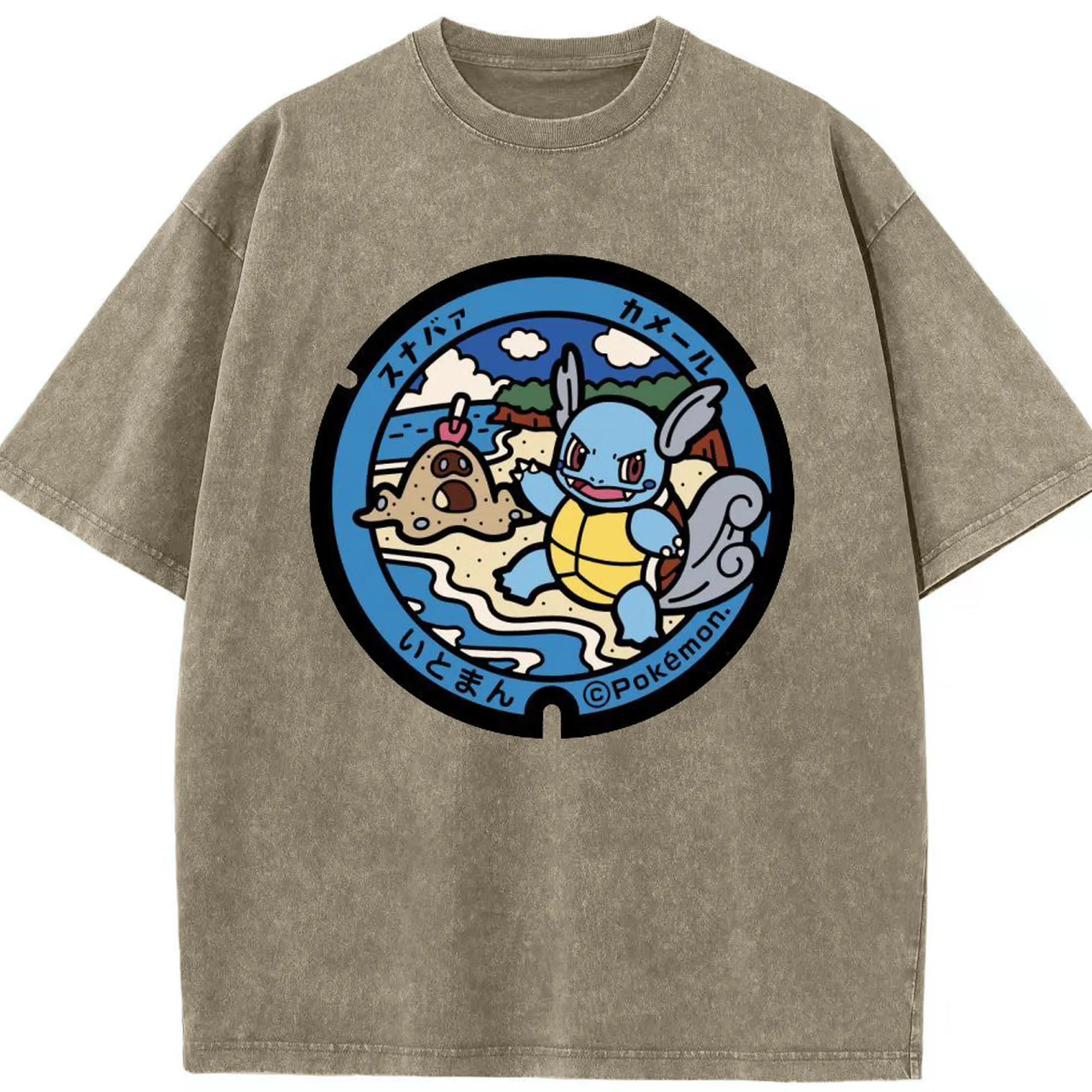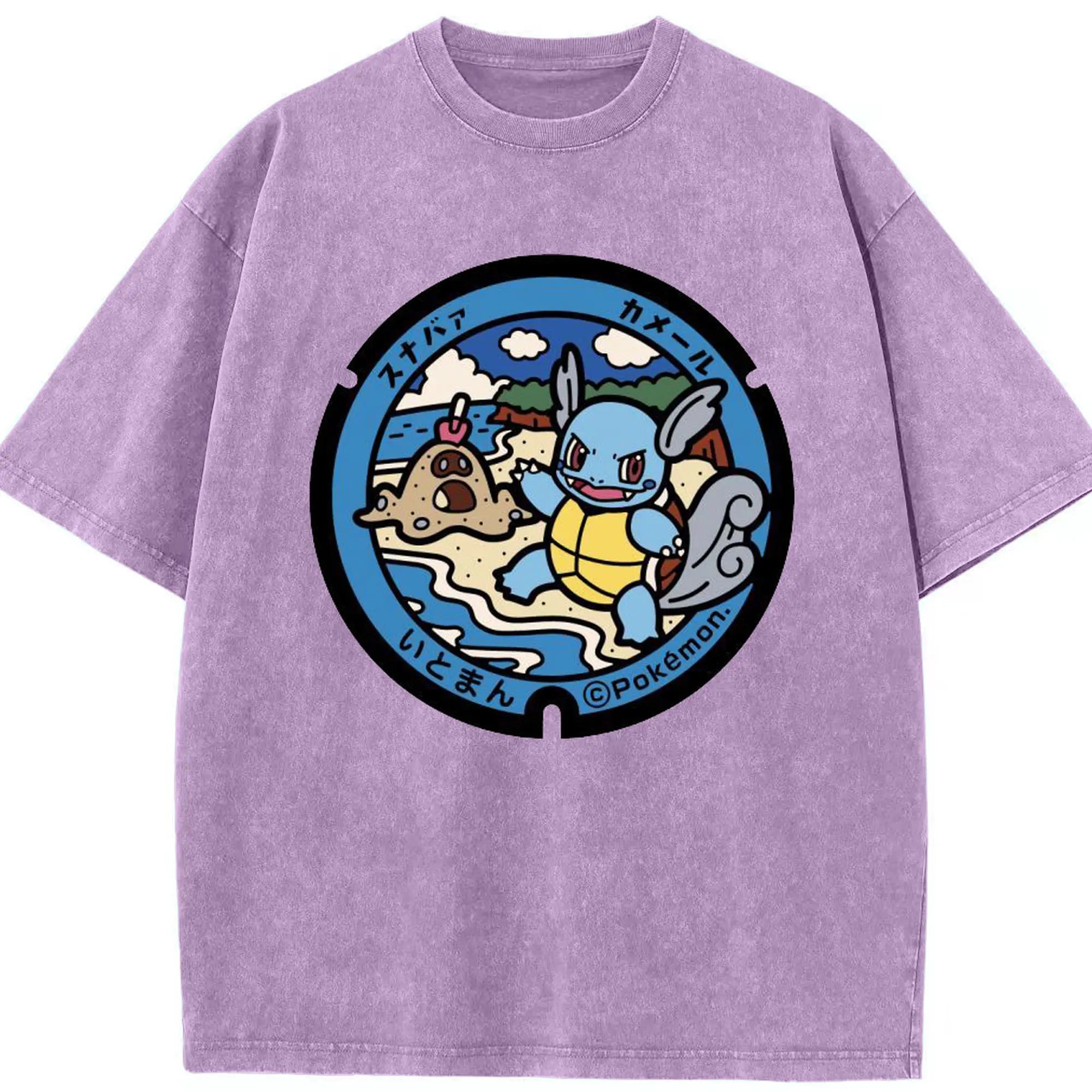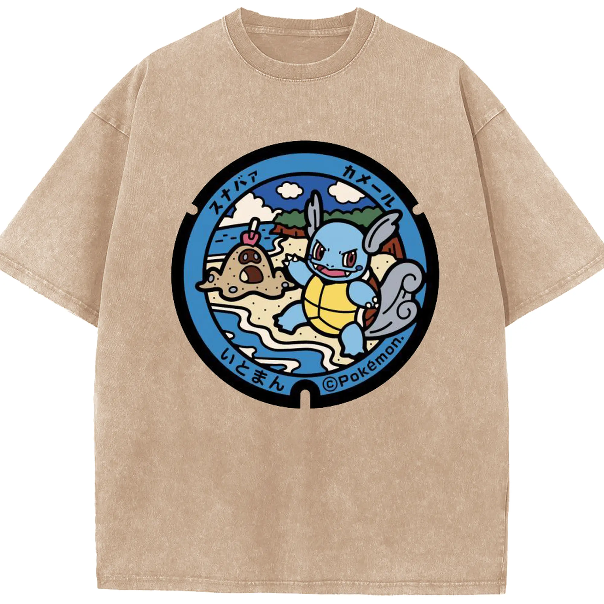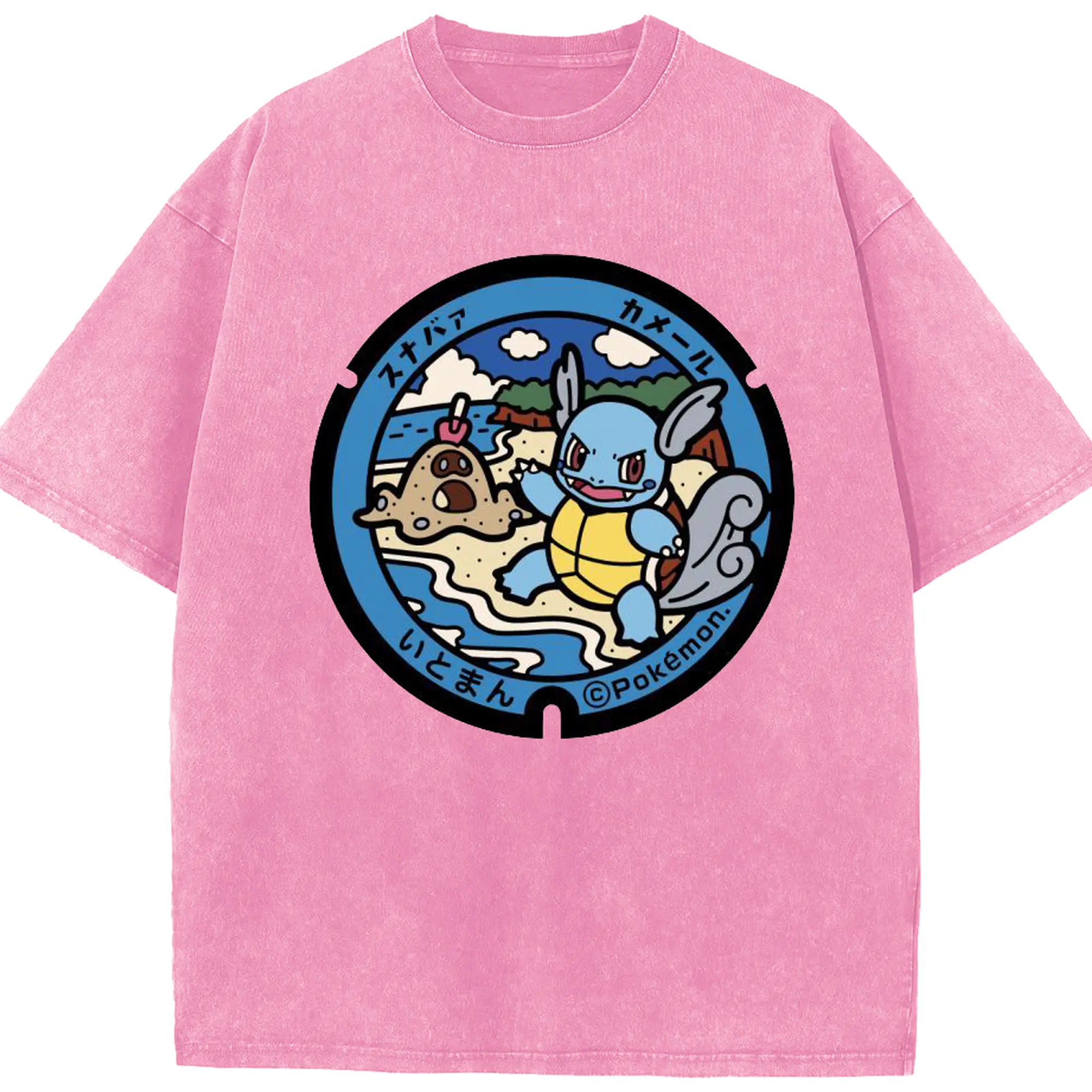 ポケモン カメール - 綿100% 半袖Tシャツ ・ フロントプリント ・ 快適 通気性 ・ 日常使い 散歩 スポーツ用