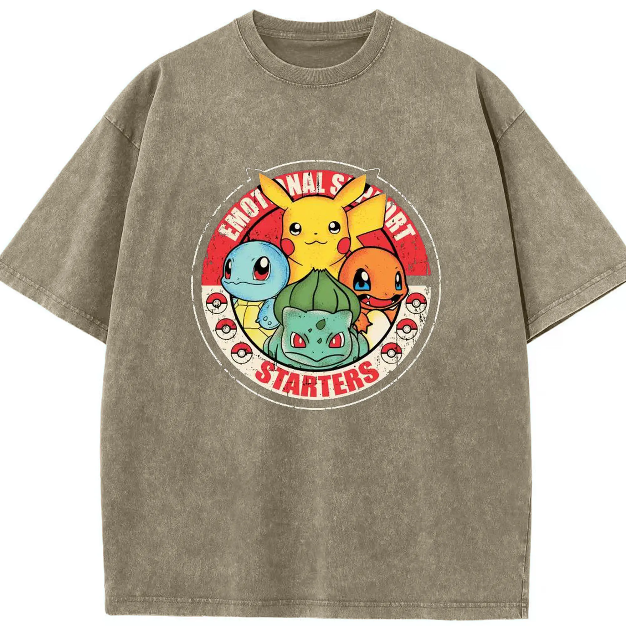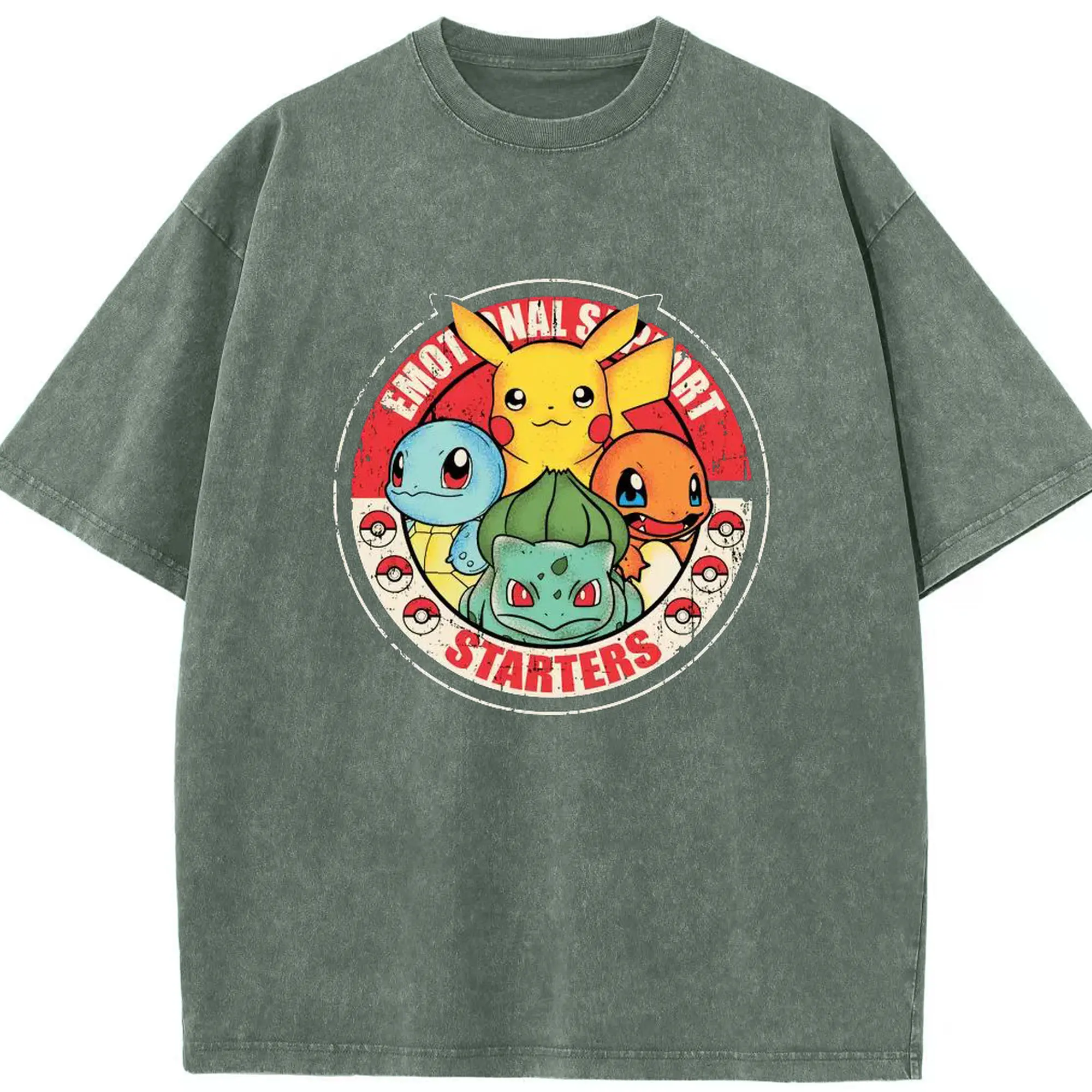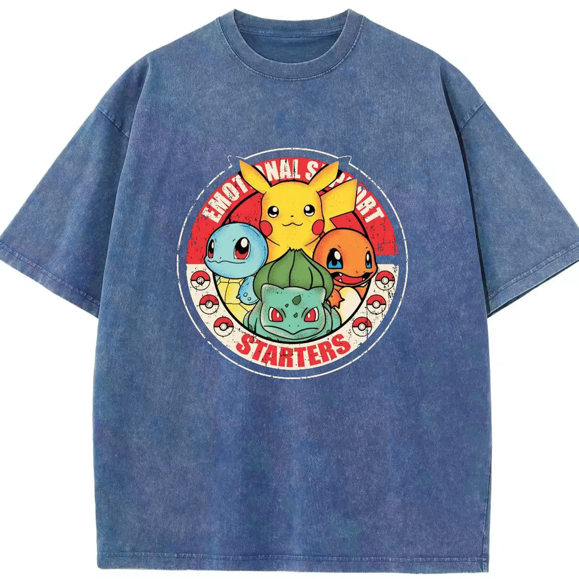 ポケモン ピカチュウ - 綿100% ヴィンテージ風 半袖Tシャツ ・ フロントプリント ・ 柔らか肌触り ・ 通気性 快適 ・ スポーツ カジュアル 外出用
