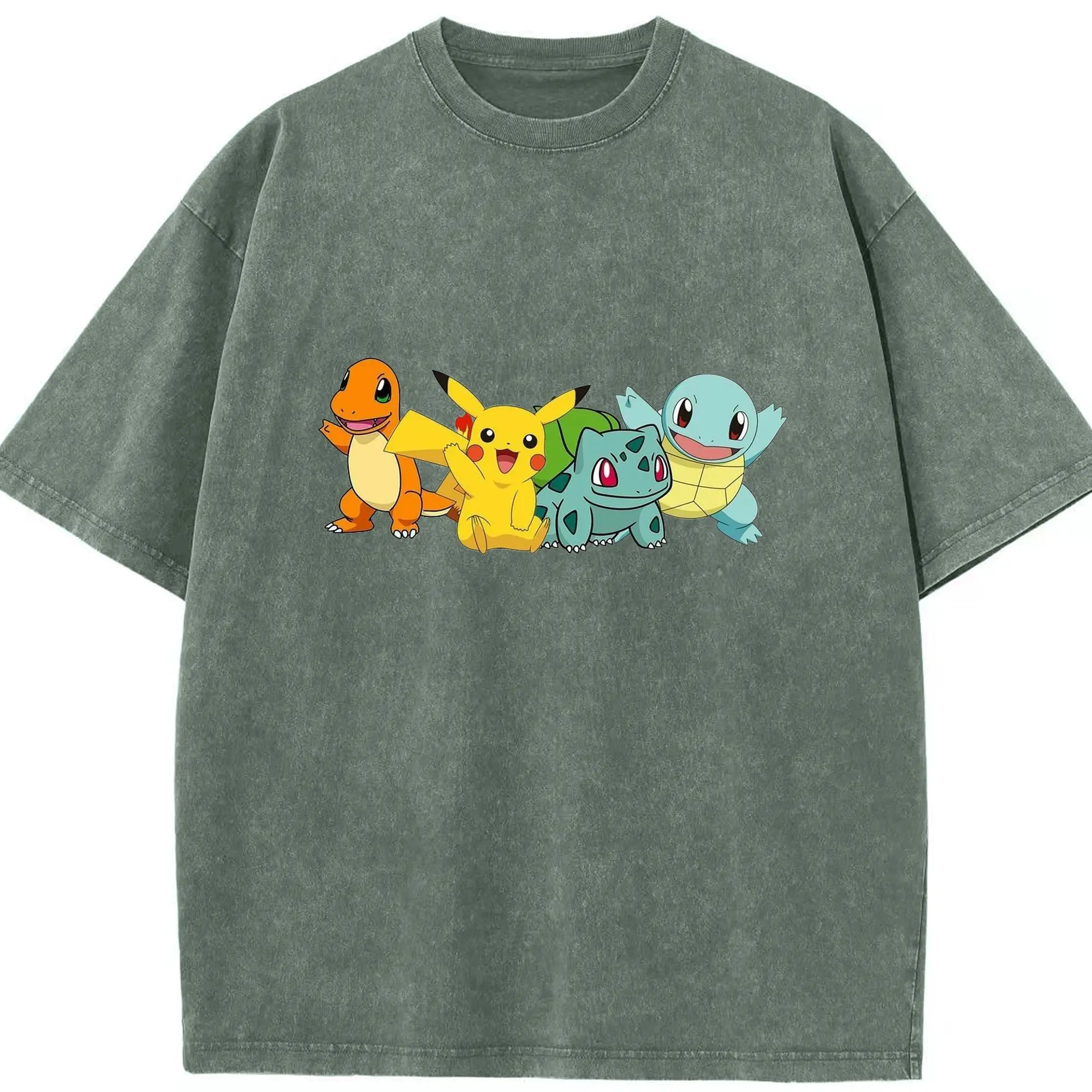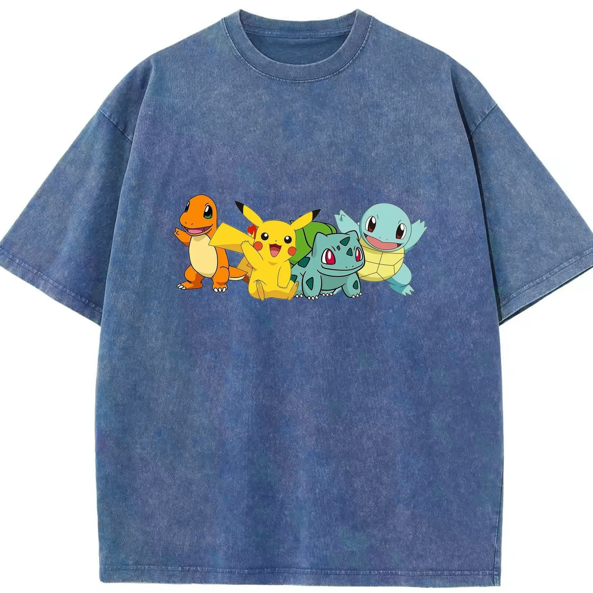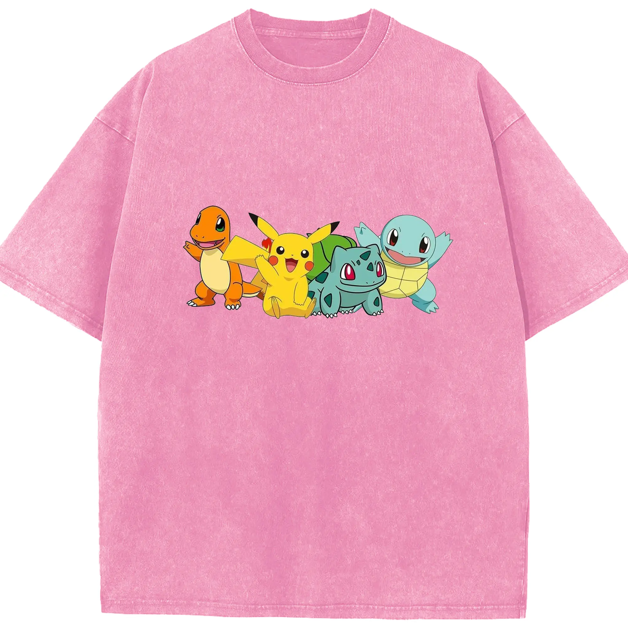 ポケモンピカチュウと仲間たち - 綿100% 半袖Tシャツ ・ フロントプリント ・ 快適 通気性 ・ 日常使い 散歩 スポーツ用