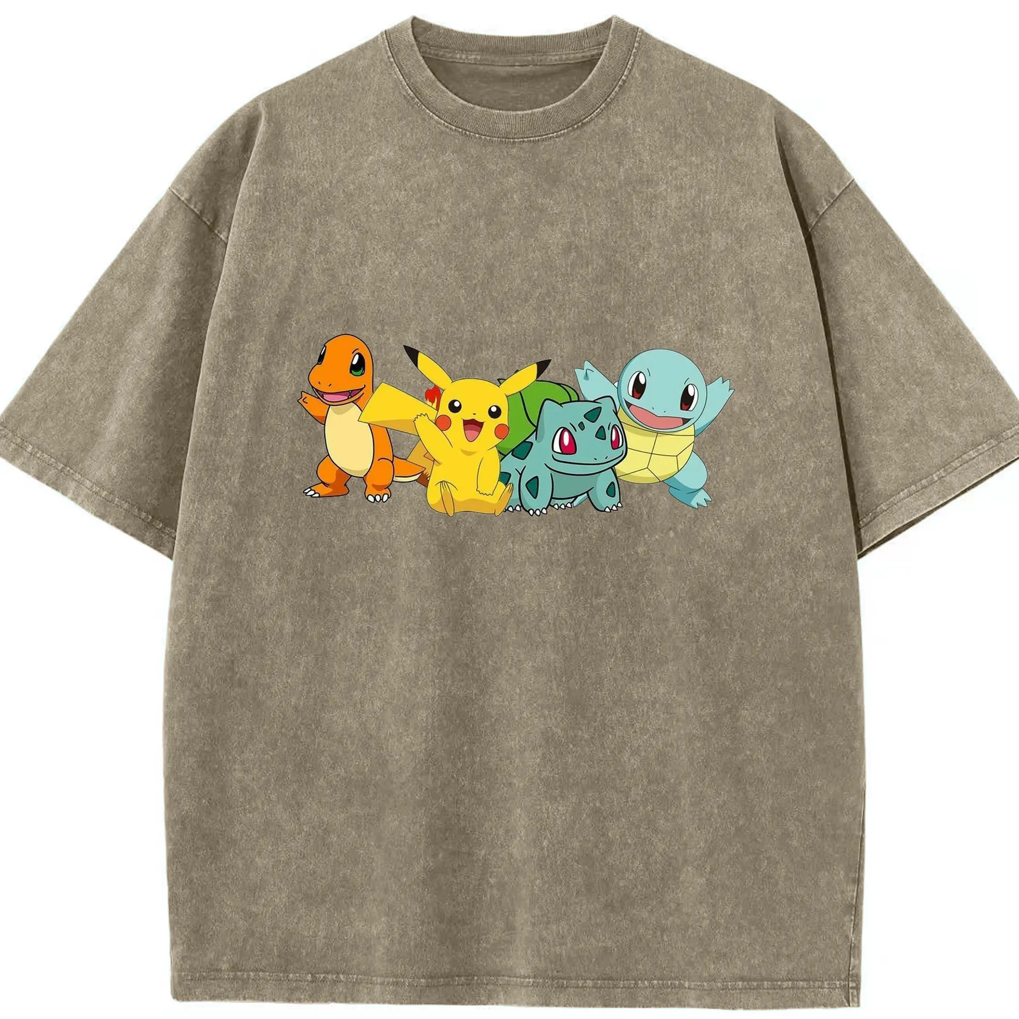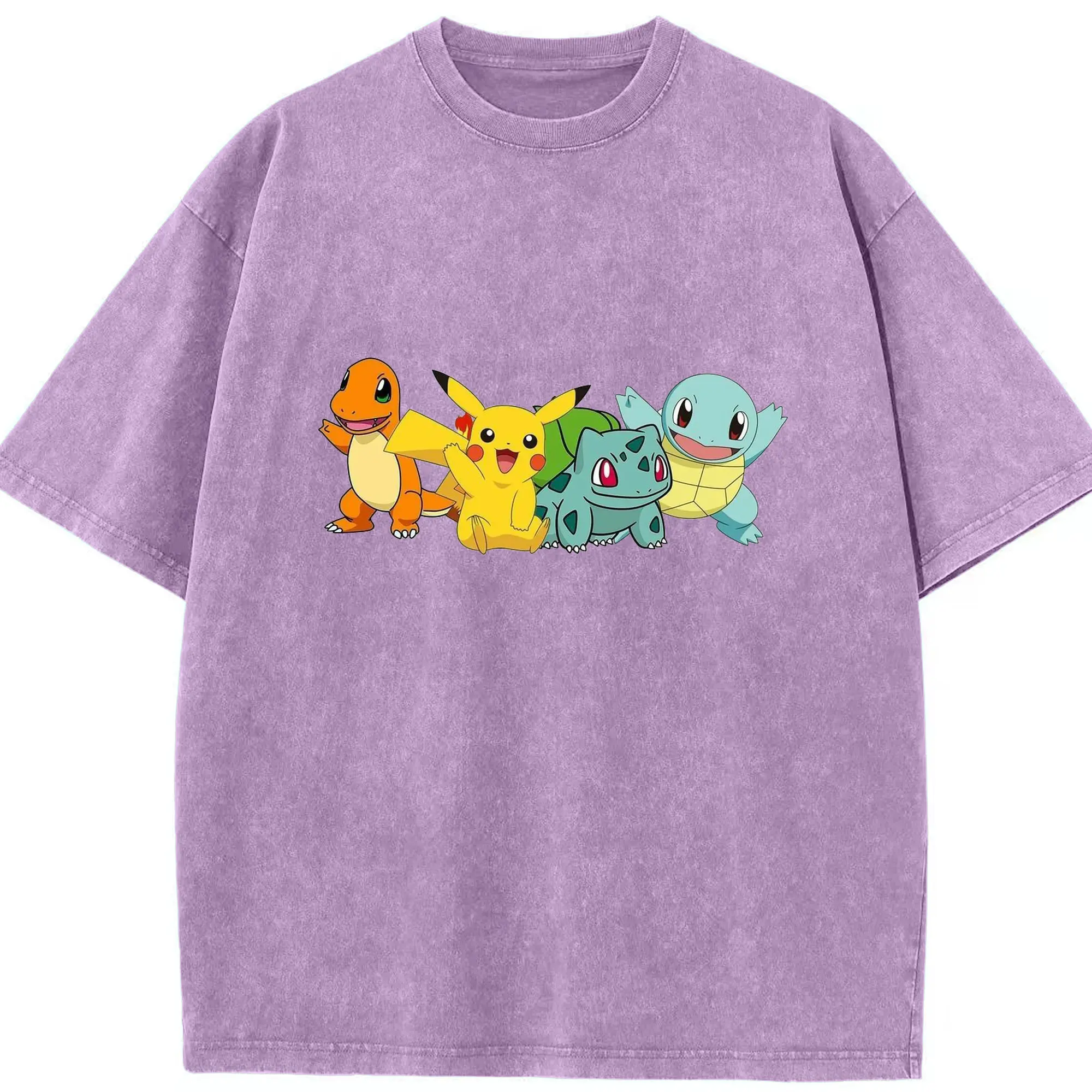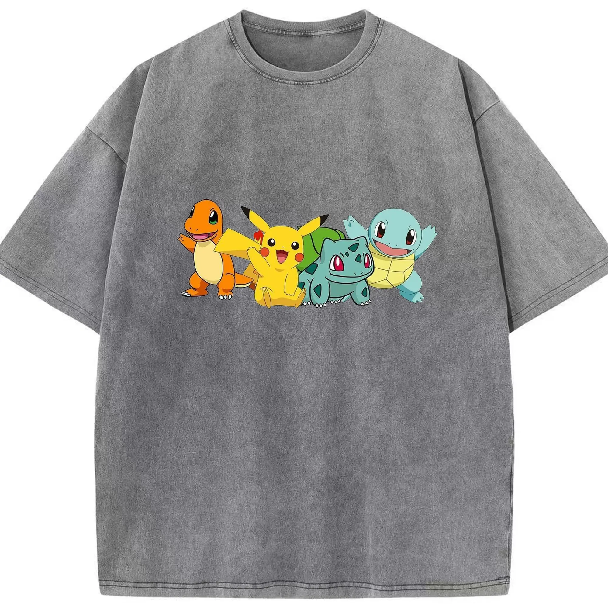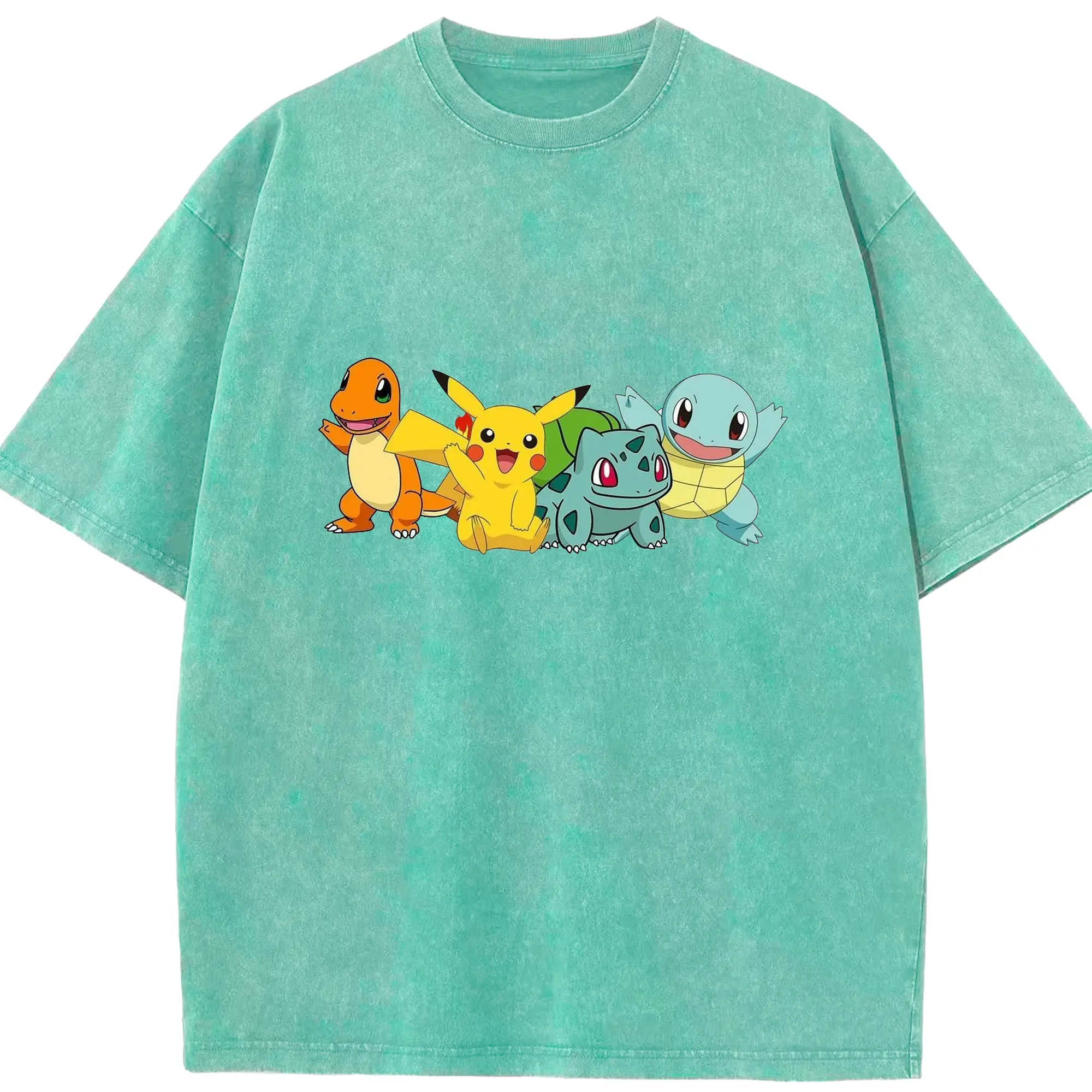 ポケモンピカチュウと仲間たち - 綿100% 半袖Tシャツ ・ フロントプリント ・ 快適 通気性 ・ 日常使い 散歩 スポーツ用