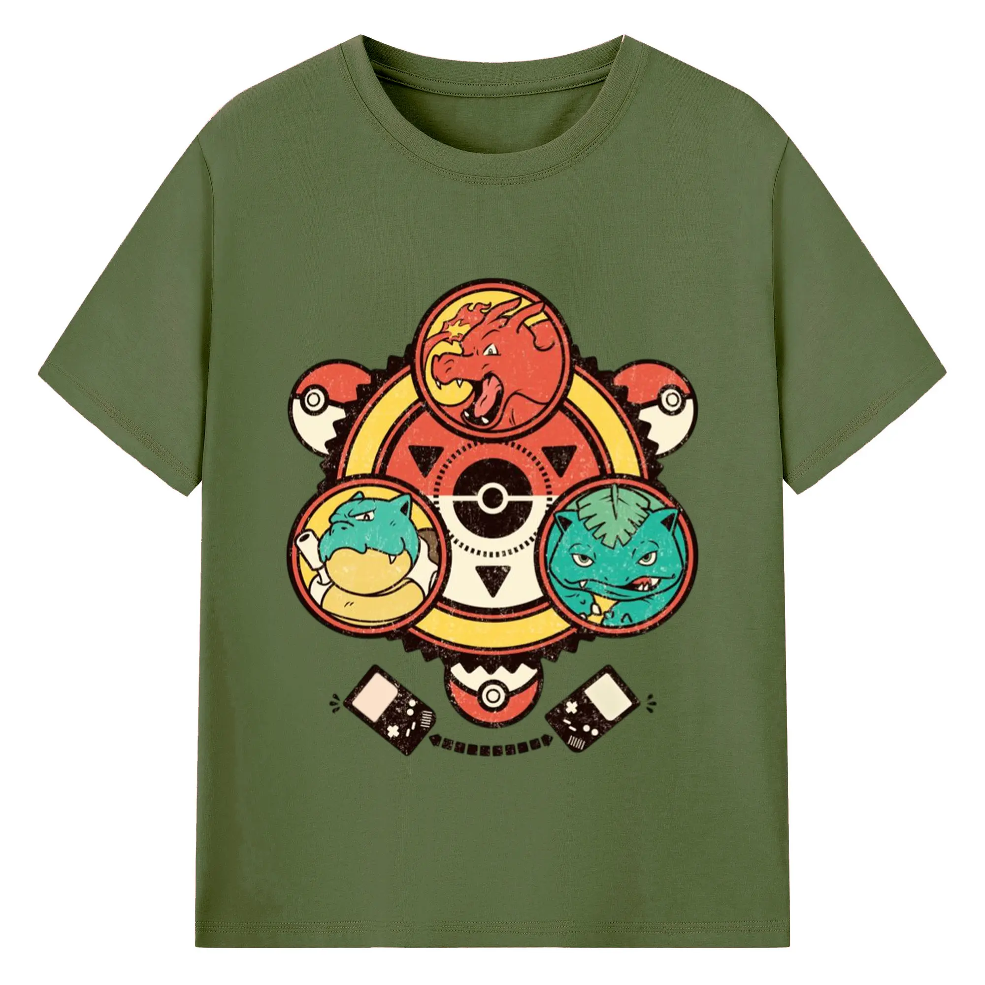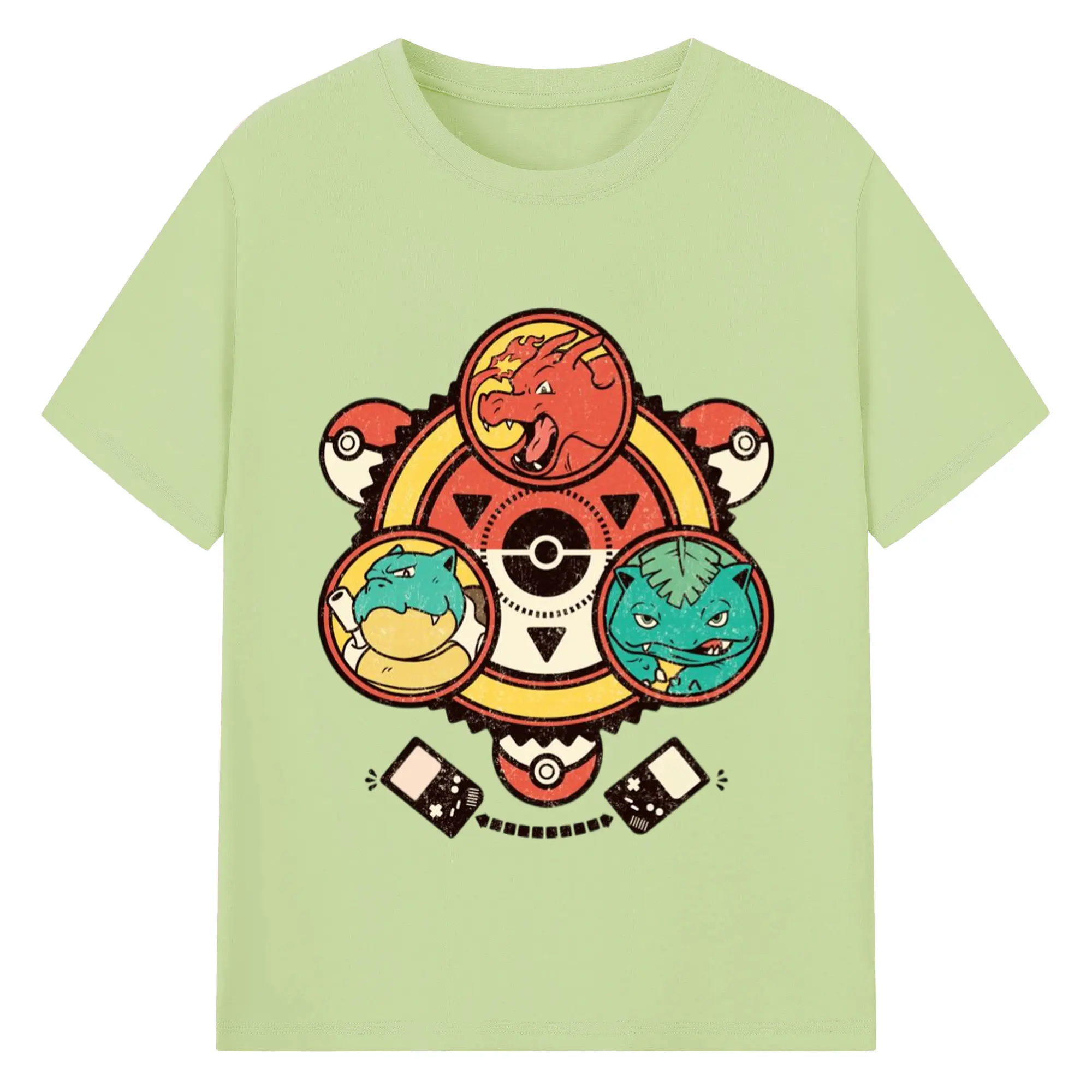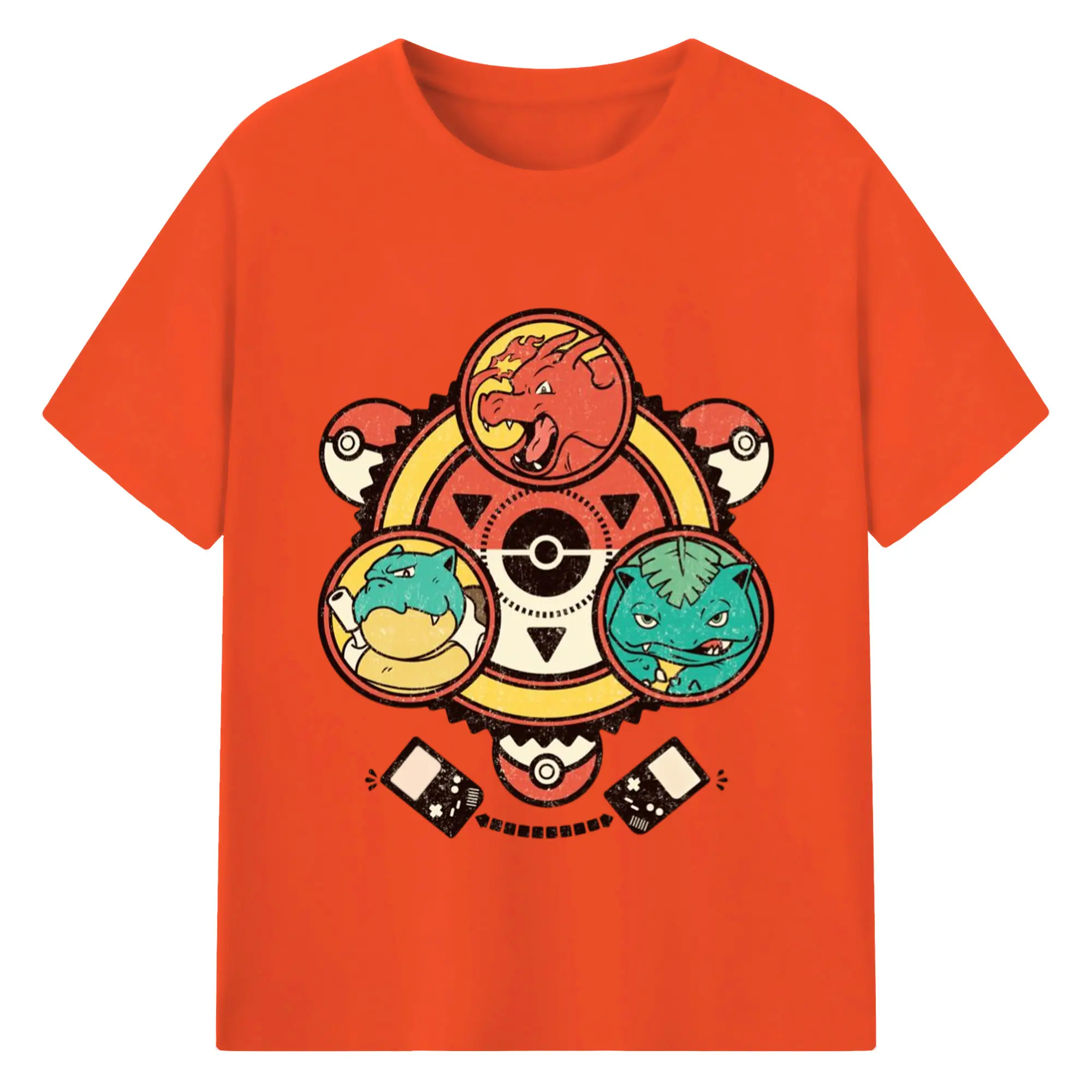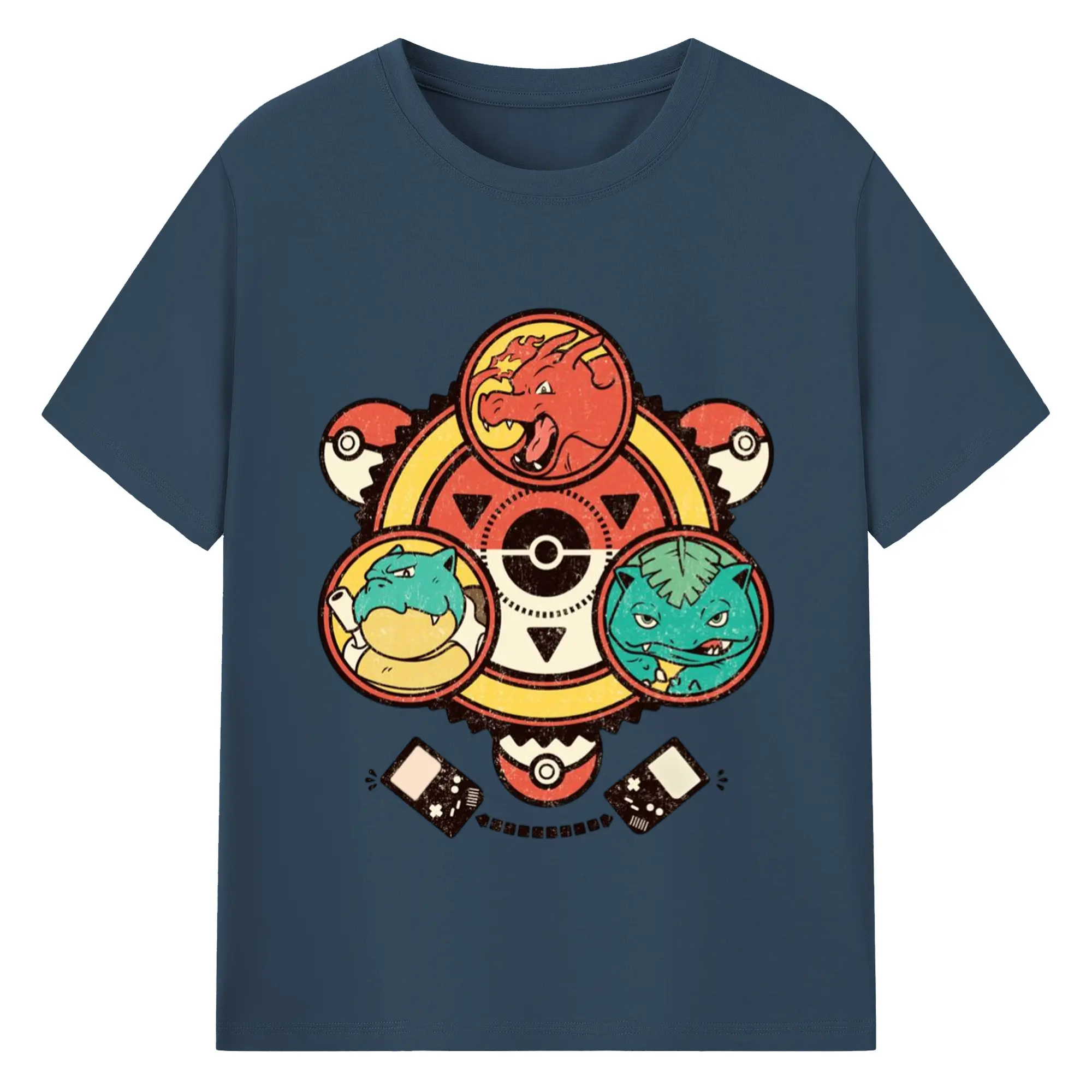ポケモンフシギダネ進化コンプリート - 綿100% ヴィンテージ風 半袖Tシャツ ・ フロントプリント ・ 柔らか肌触り ・ 通気性 快適 ・ スポーツ カジュアル 外出用