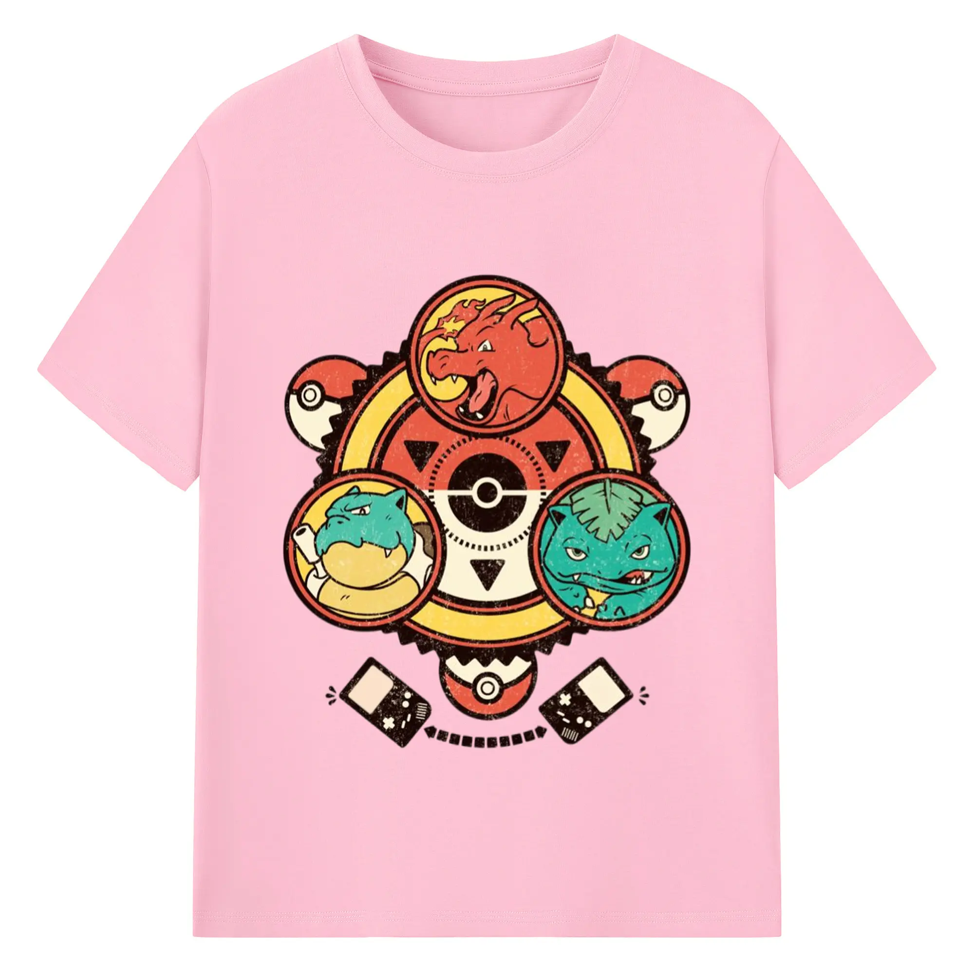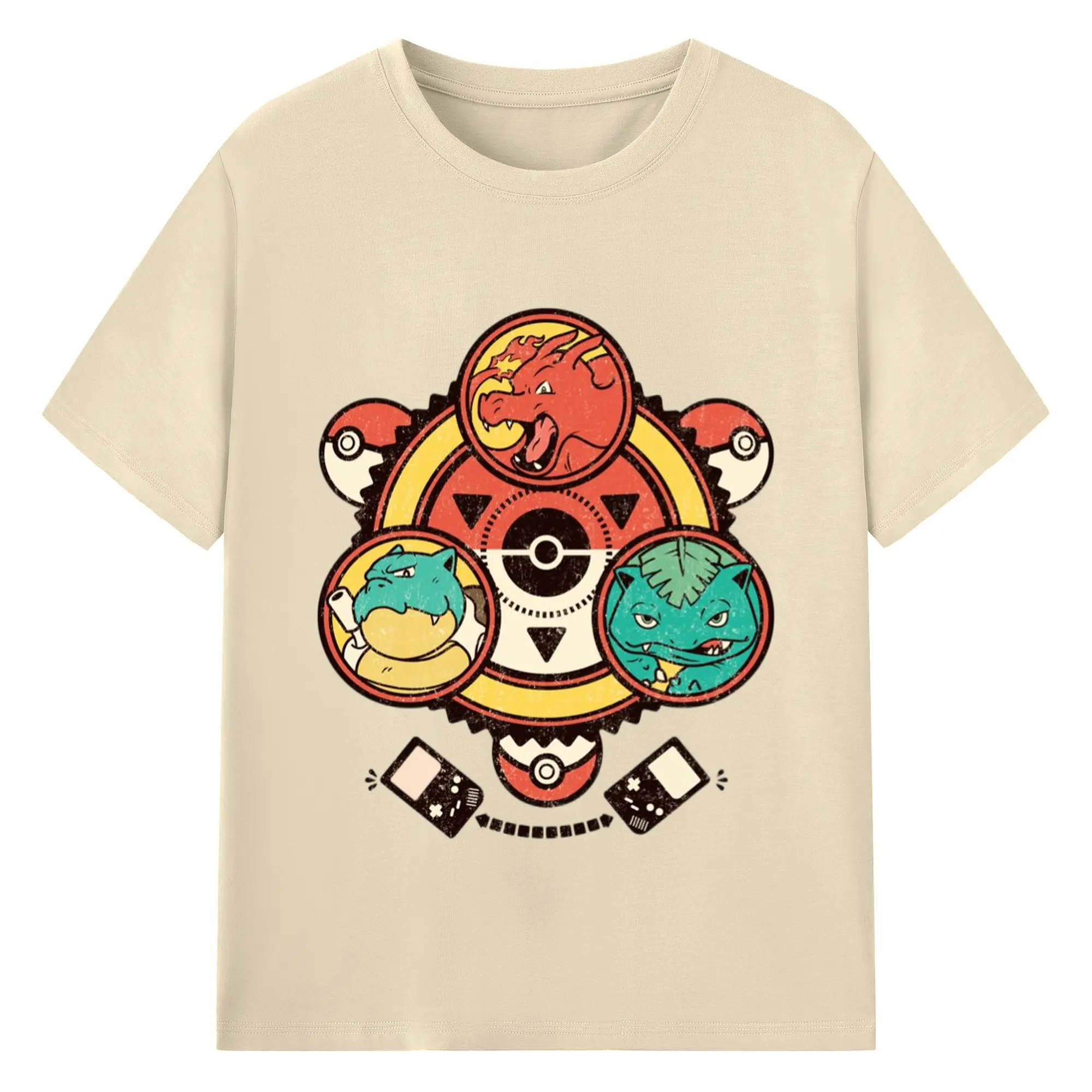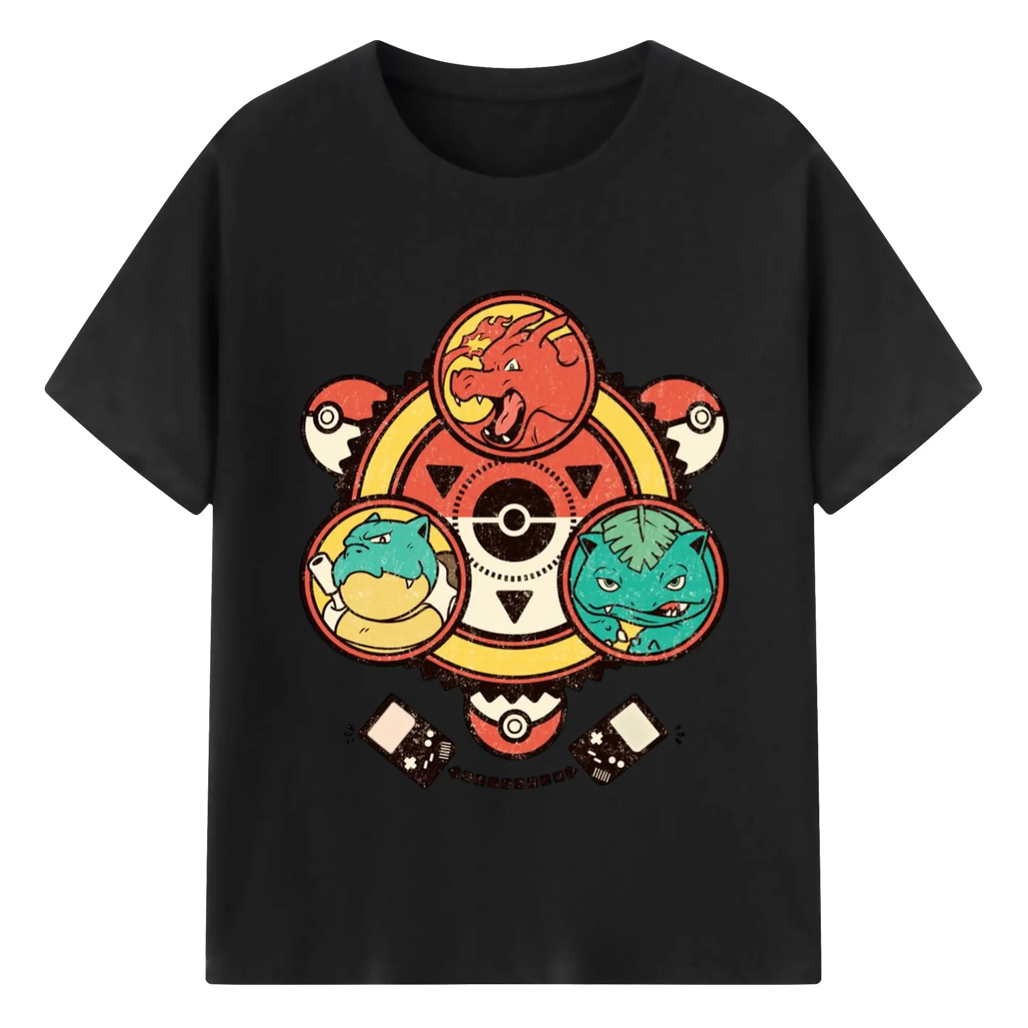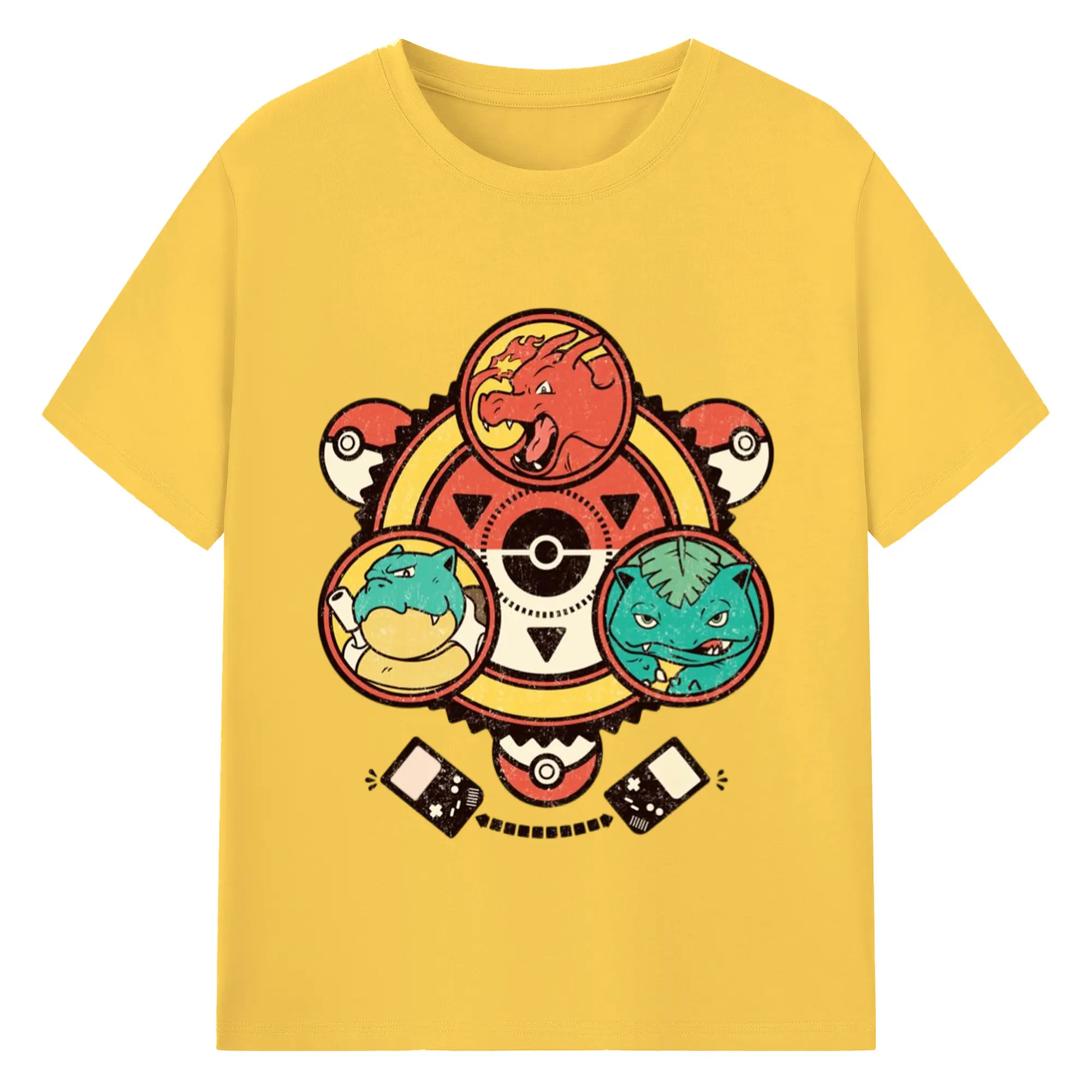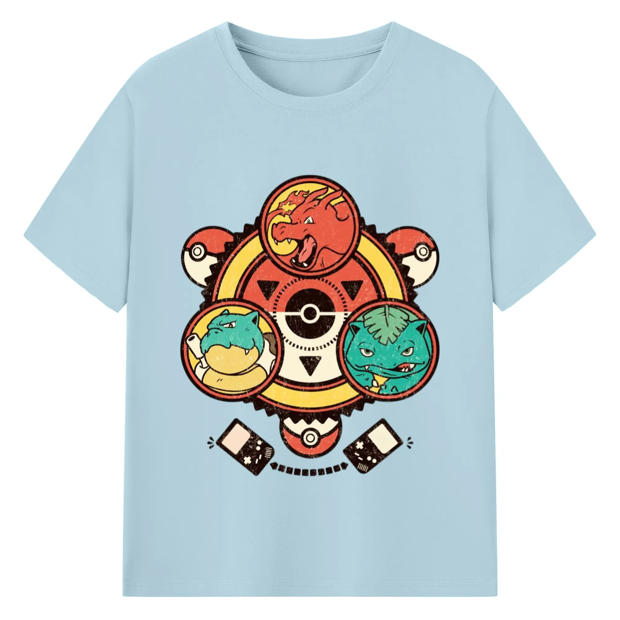 ポケモンフシギダネ進化コンプリート - 綿100% ヴィンテージ風 半袖Tシャツ ・ フロントプリント ・ 柔らか肌触り ・ 通気性 快適 ・ スポーツ カジュアル 外出用