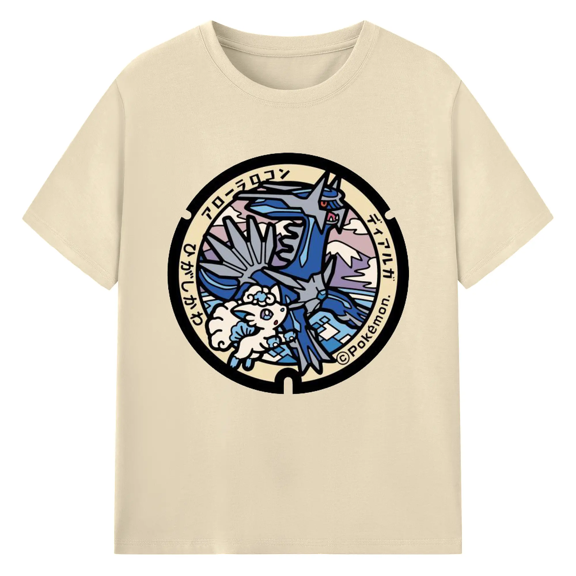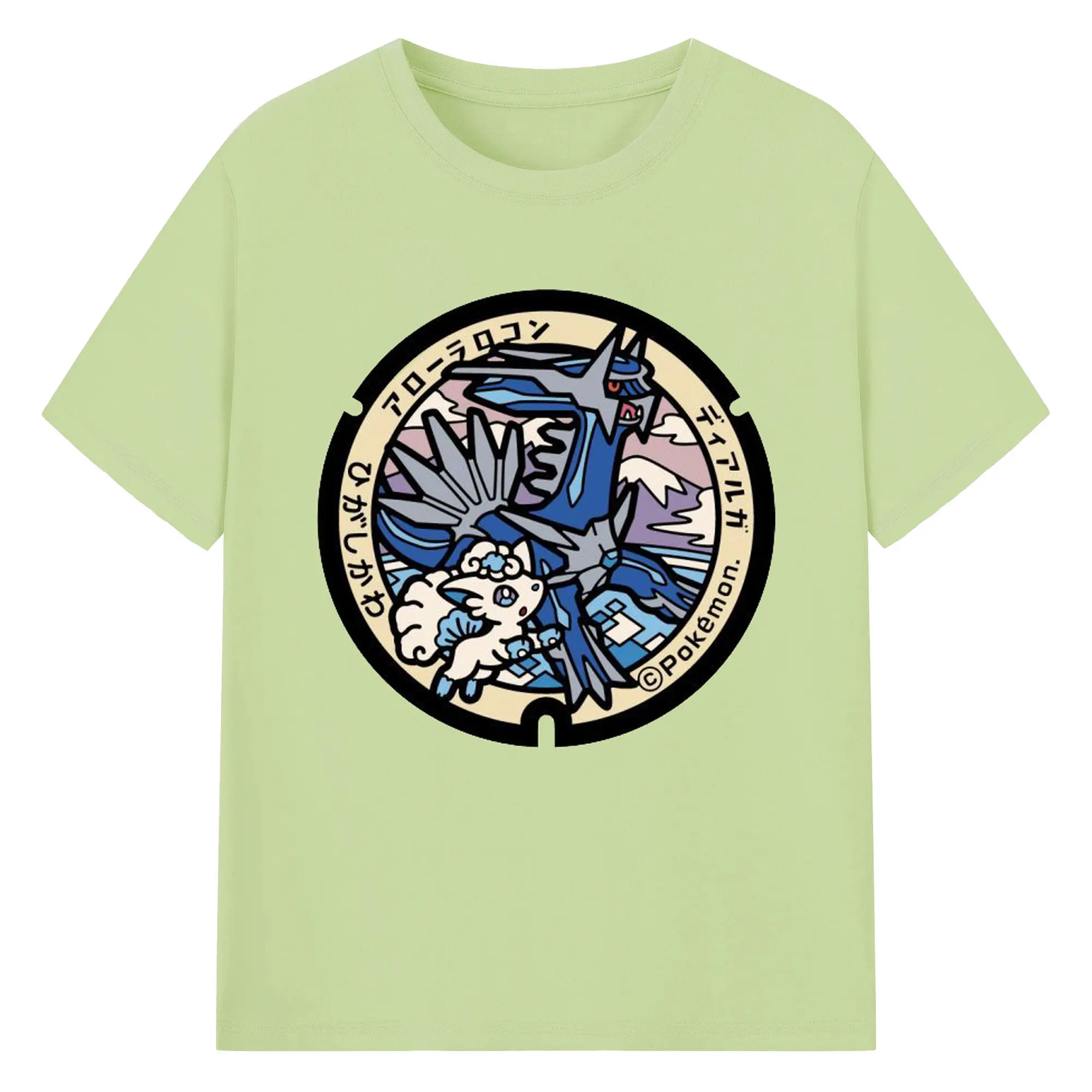 ポケモン アローラロコ - 綿100% ヴィンテージ風 半袖Tシャツ ・ フロントプリント ・ 柔らか肌触り ・ 通気性 快適 ・ スポーツ カジュアル 外出用