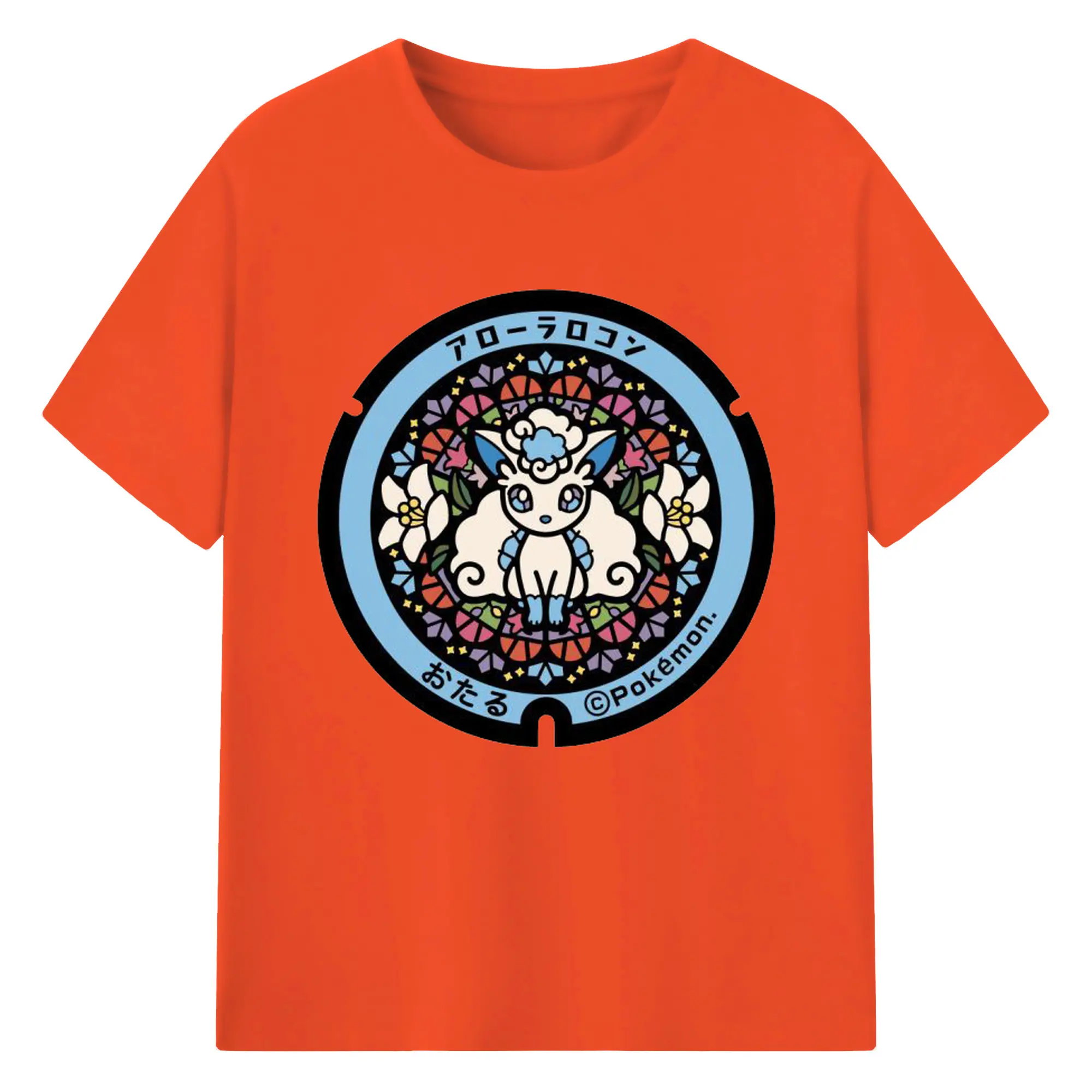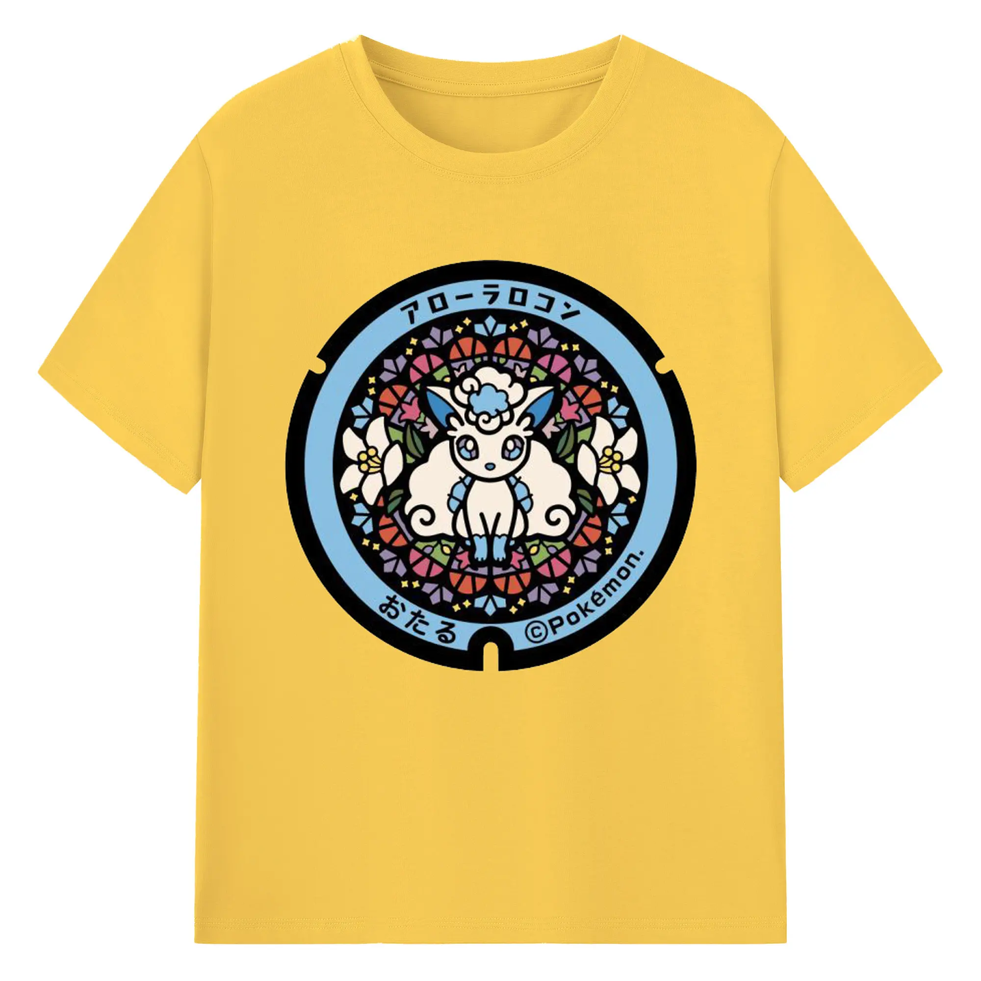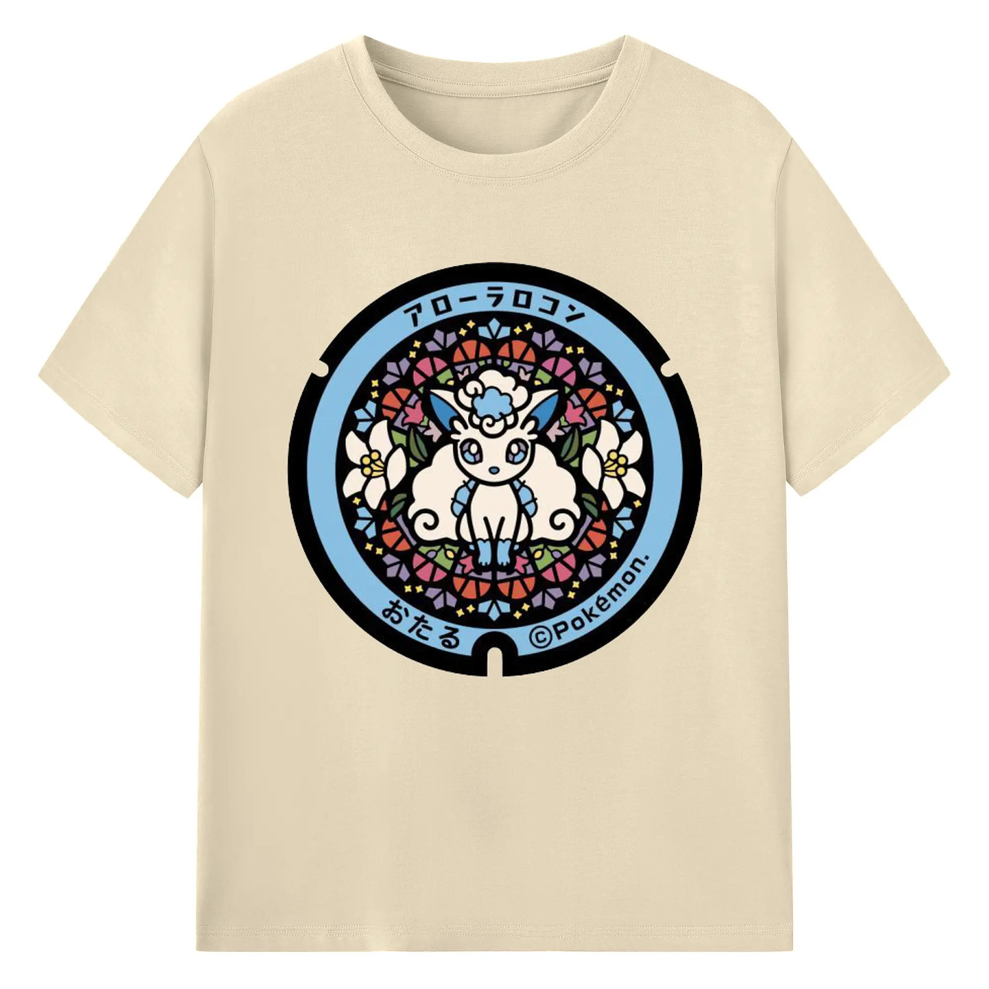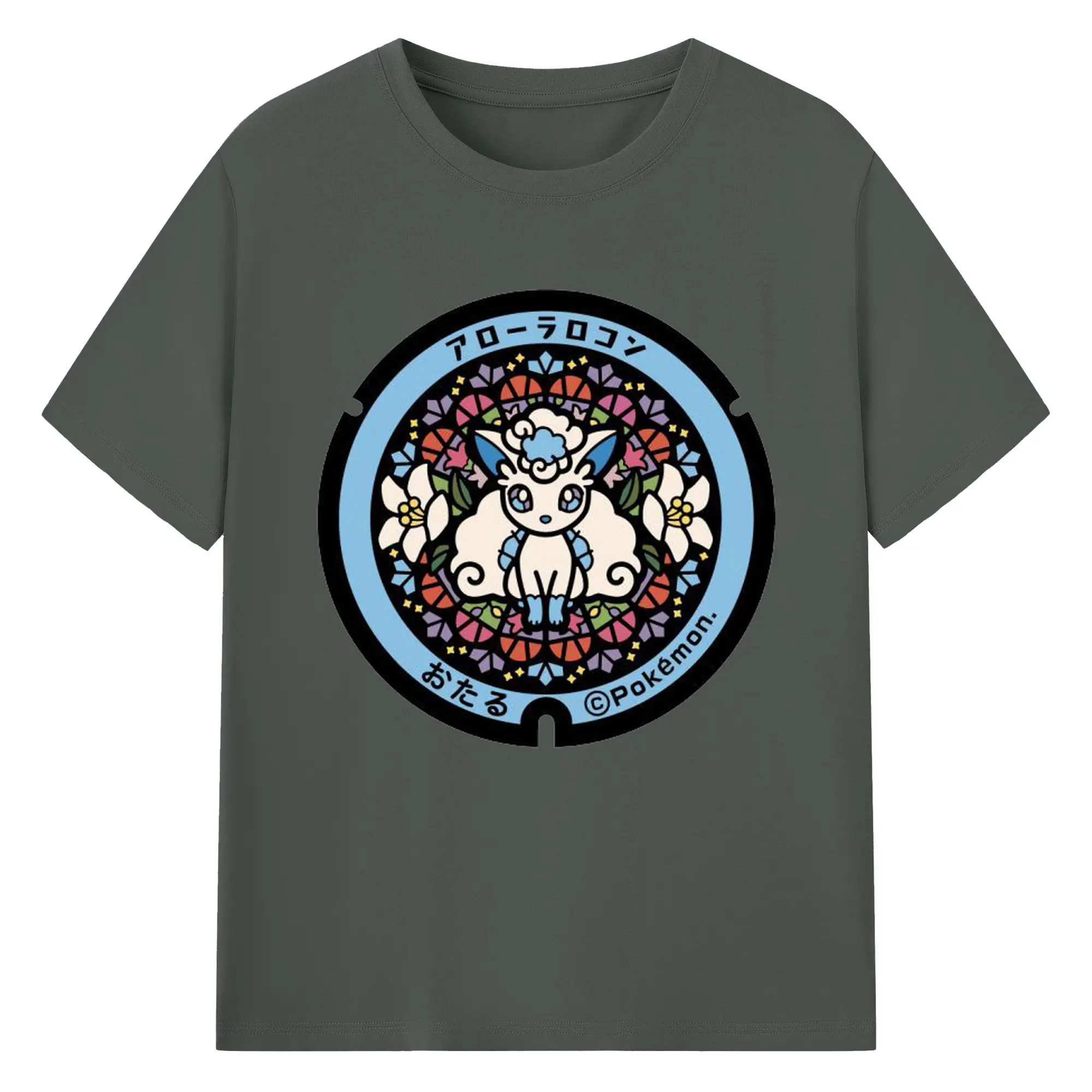 ポケモン アローラロコン デフォルメ - 綿100% ヴィンテージ風 半袖Tシャツ ・ フロントプリント ・ 柔らか肌触り ・ 通気性 快適 ・ スポーツ カジュアル 外出用