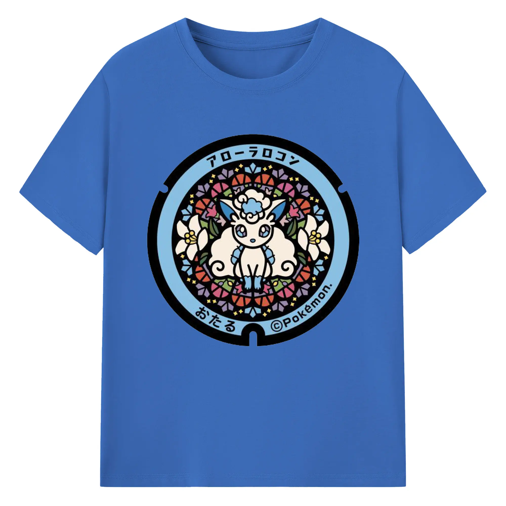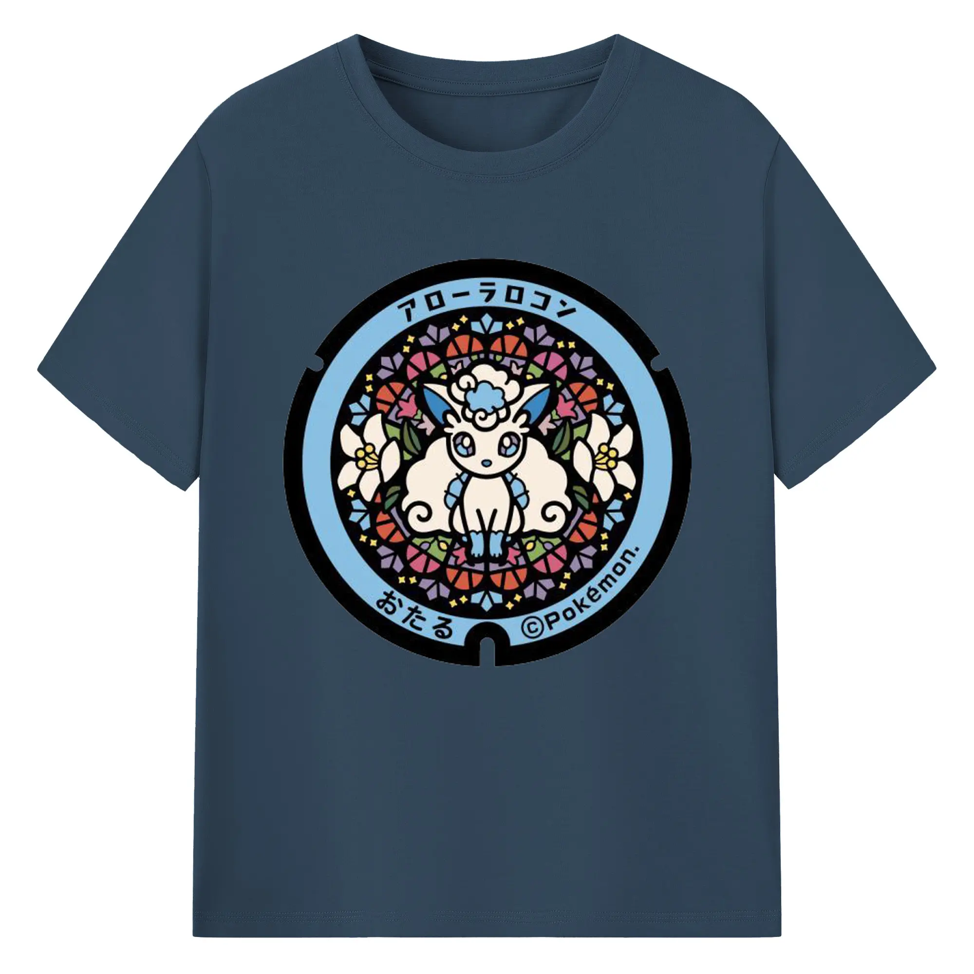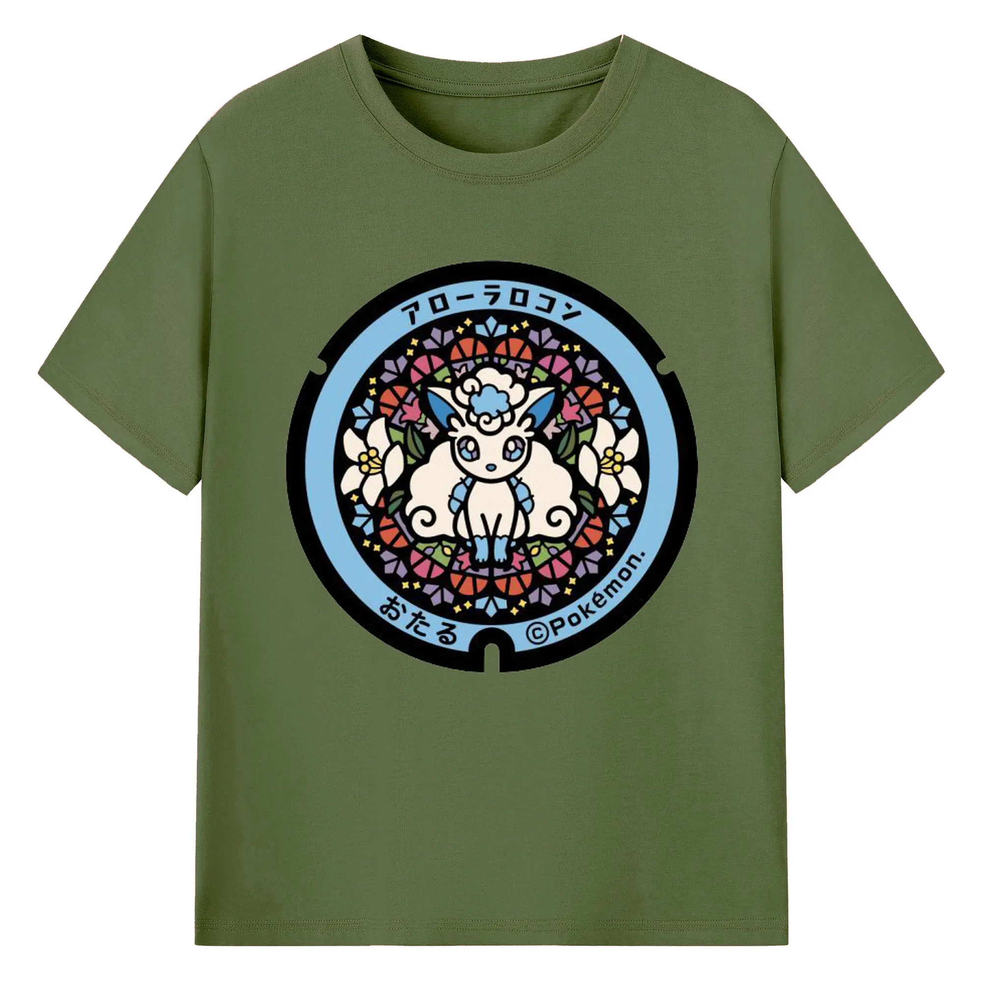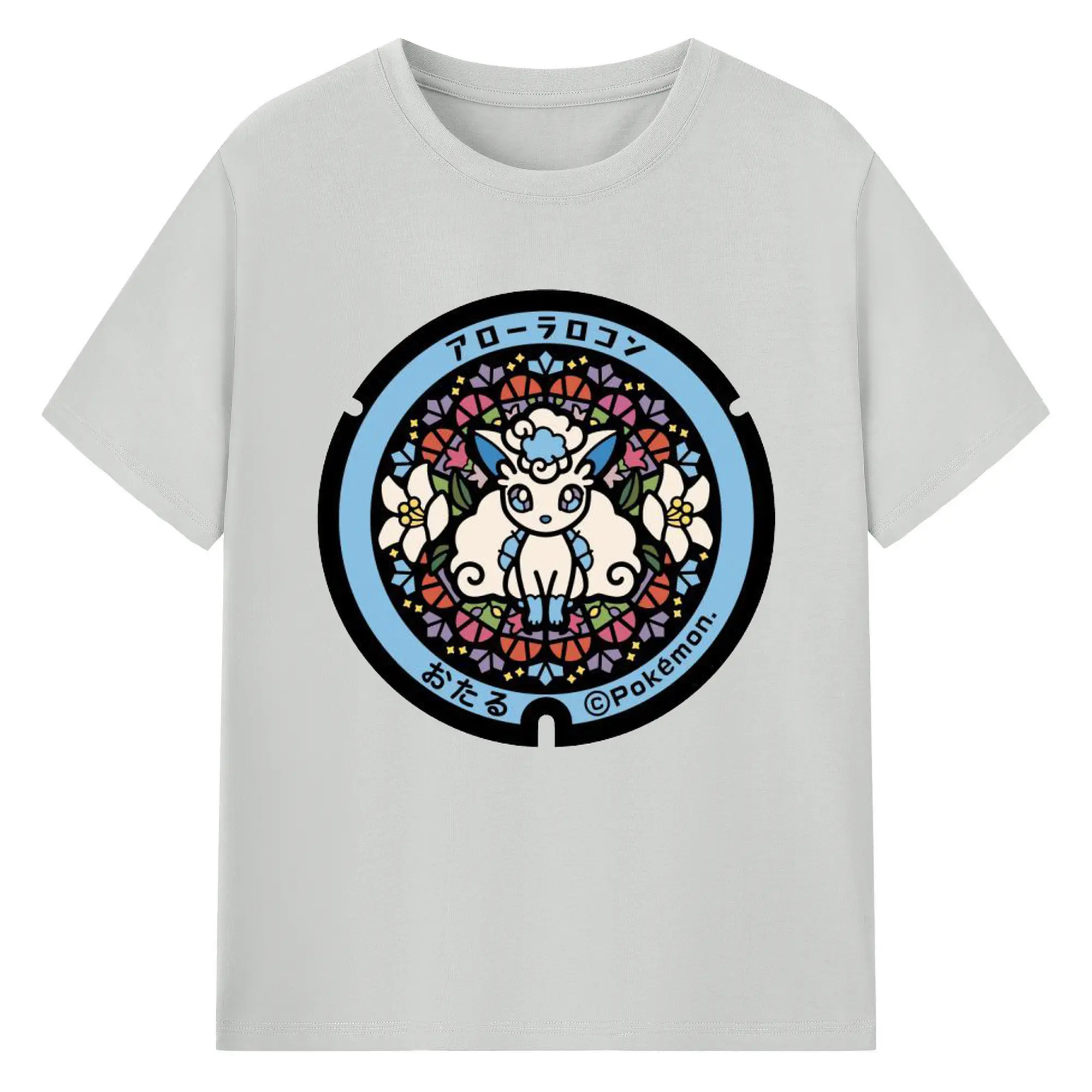 ポケモン アローラロコン デフォルメ - 綿100% ヴィンテージ風 半袖Tシャツ ・ フロントプリント ・ 柔らか肌触り ・ 通気性 快適 ・ スポーツ カジュアル 外出用