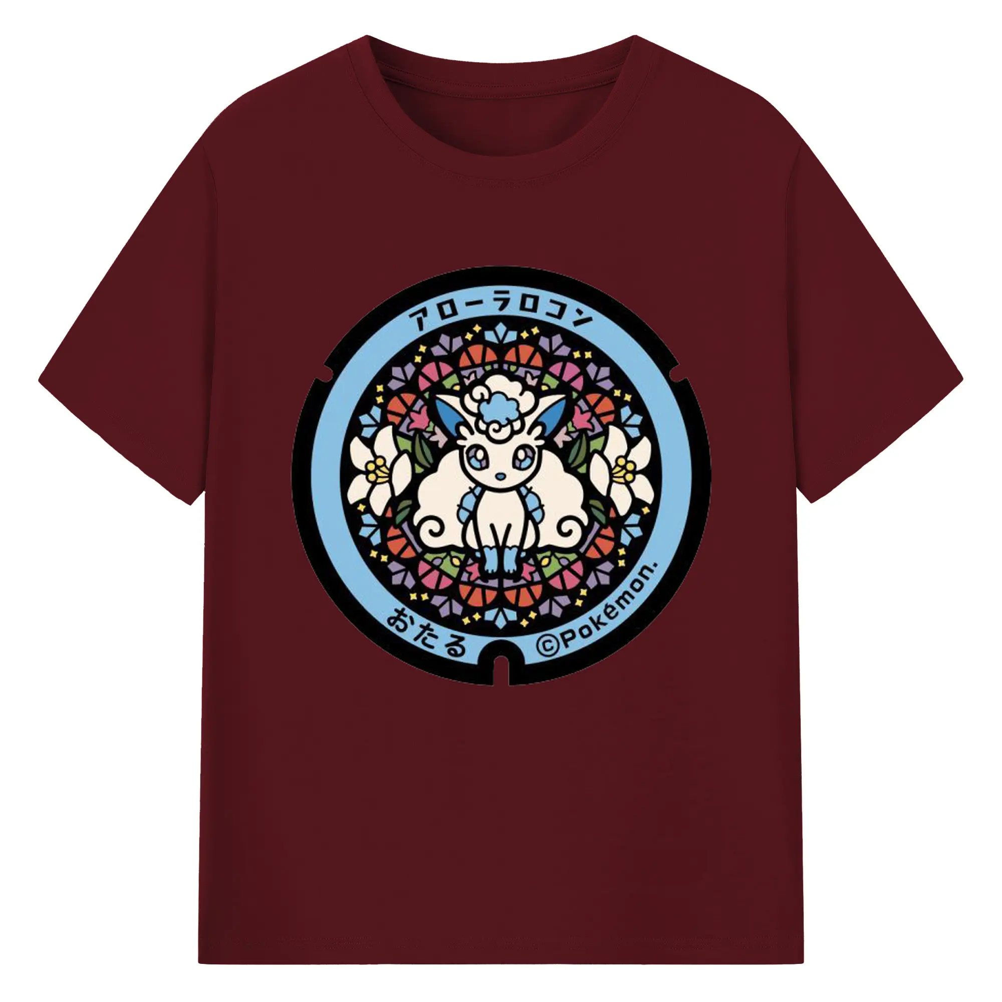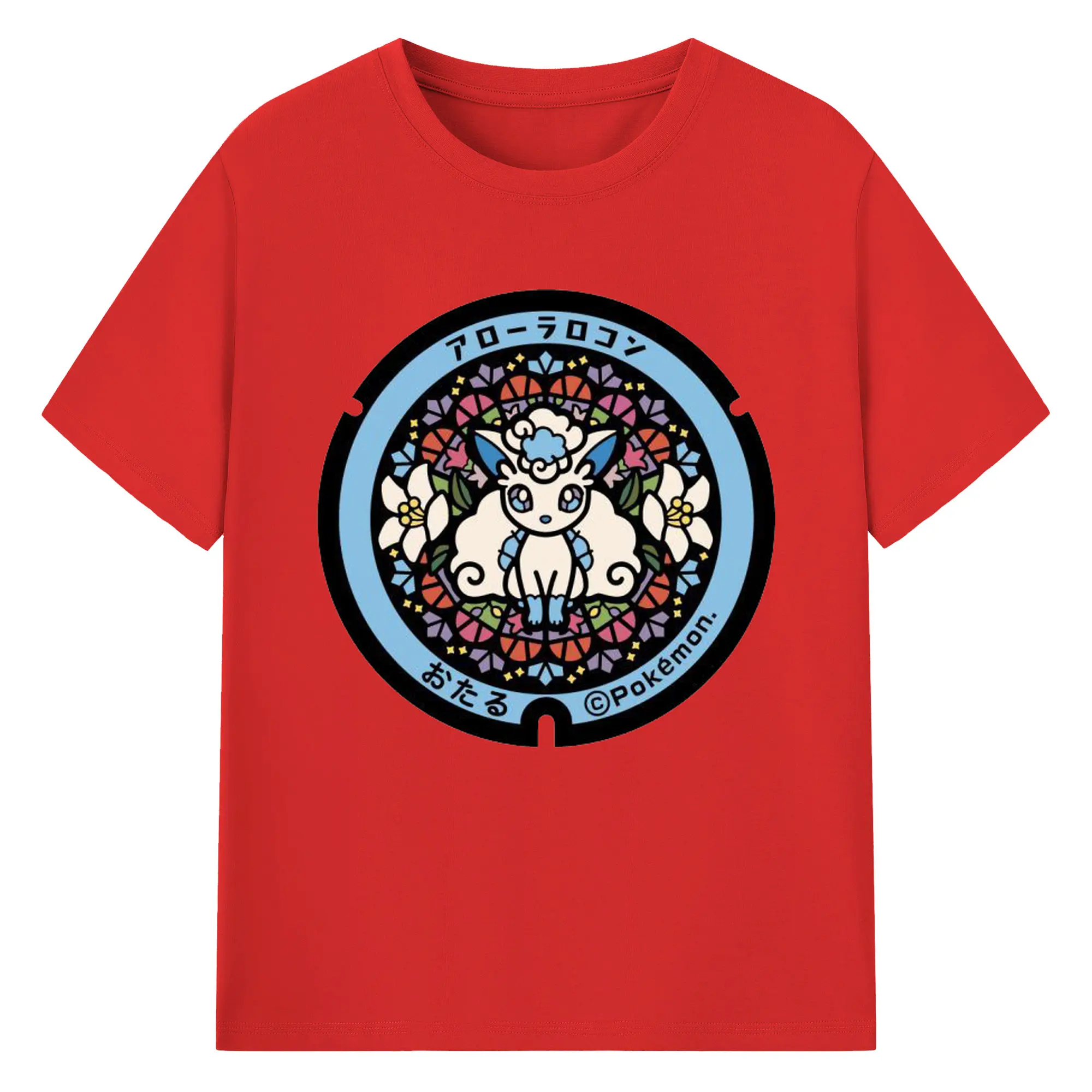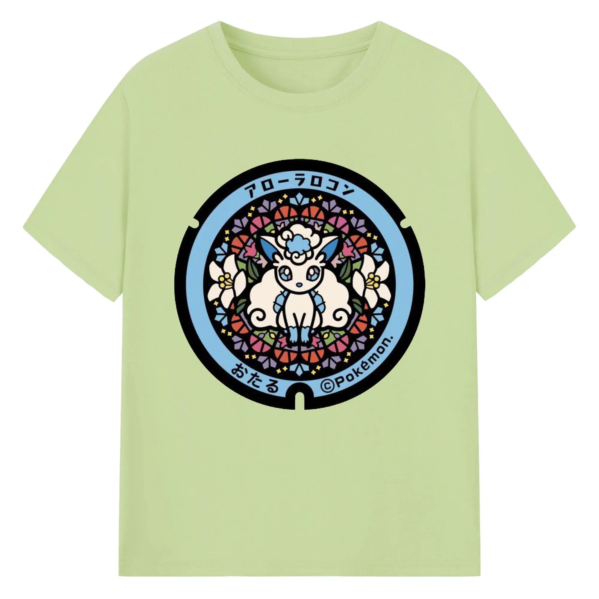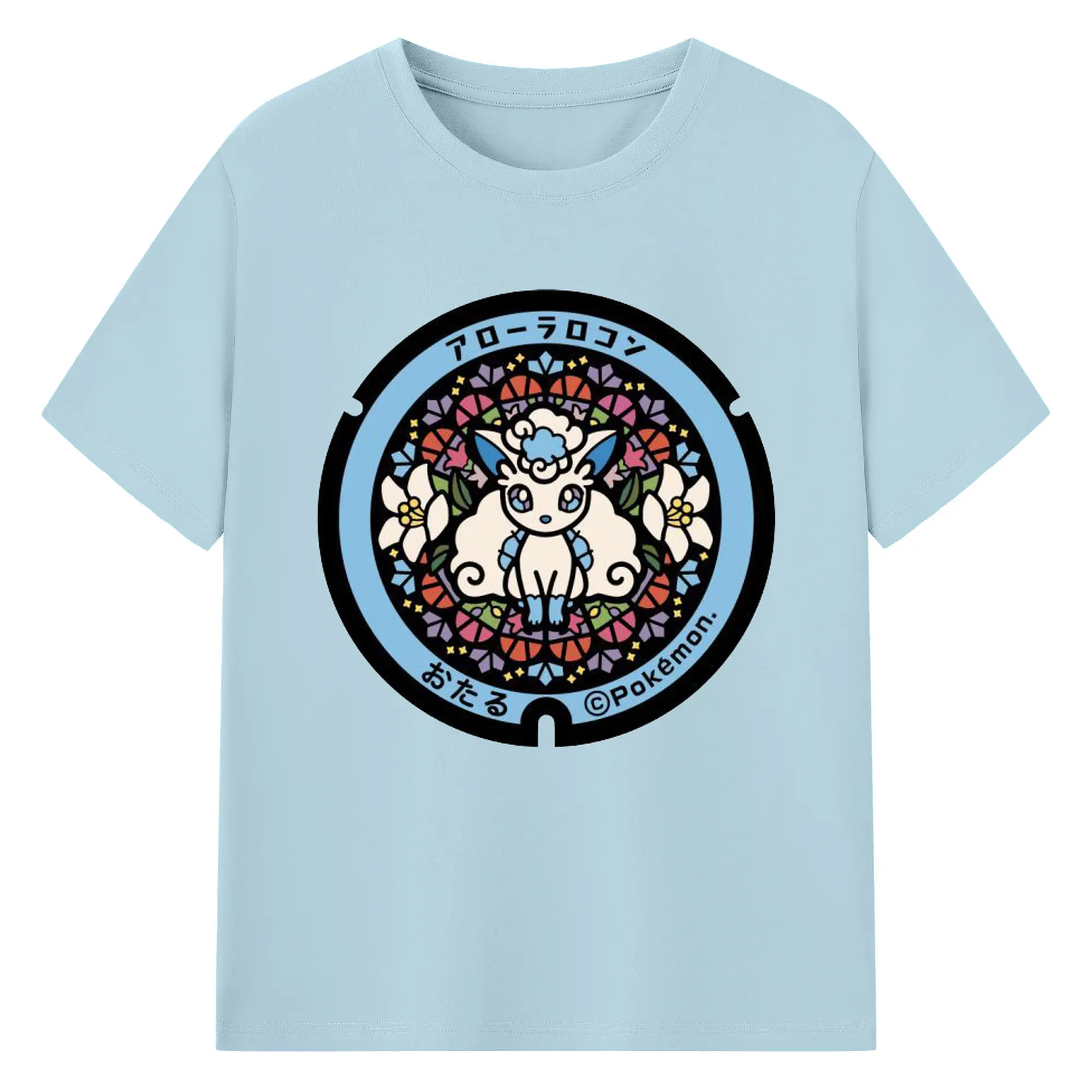 ポケモン アローラロコン デフォルメ - 綿100% ヴィンテージ風 半袖Tシャツ ・ フロントプリント ・ 柔らか肌触り ・ 通気性 快適 ・ スポーツ カジュアル 外出用