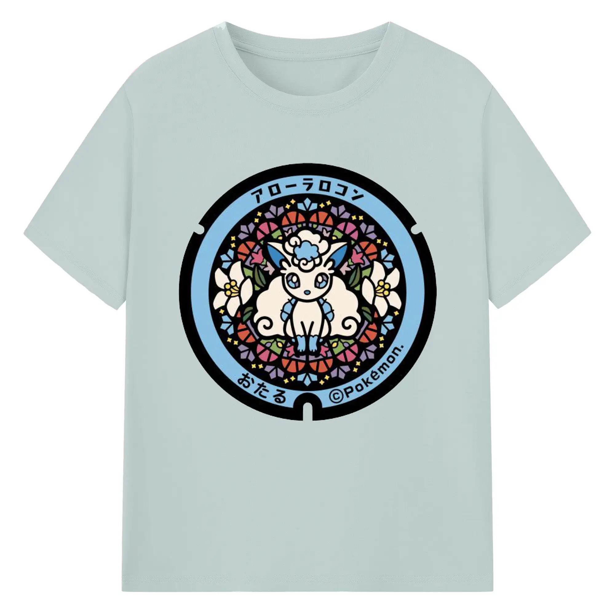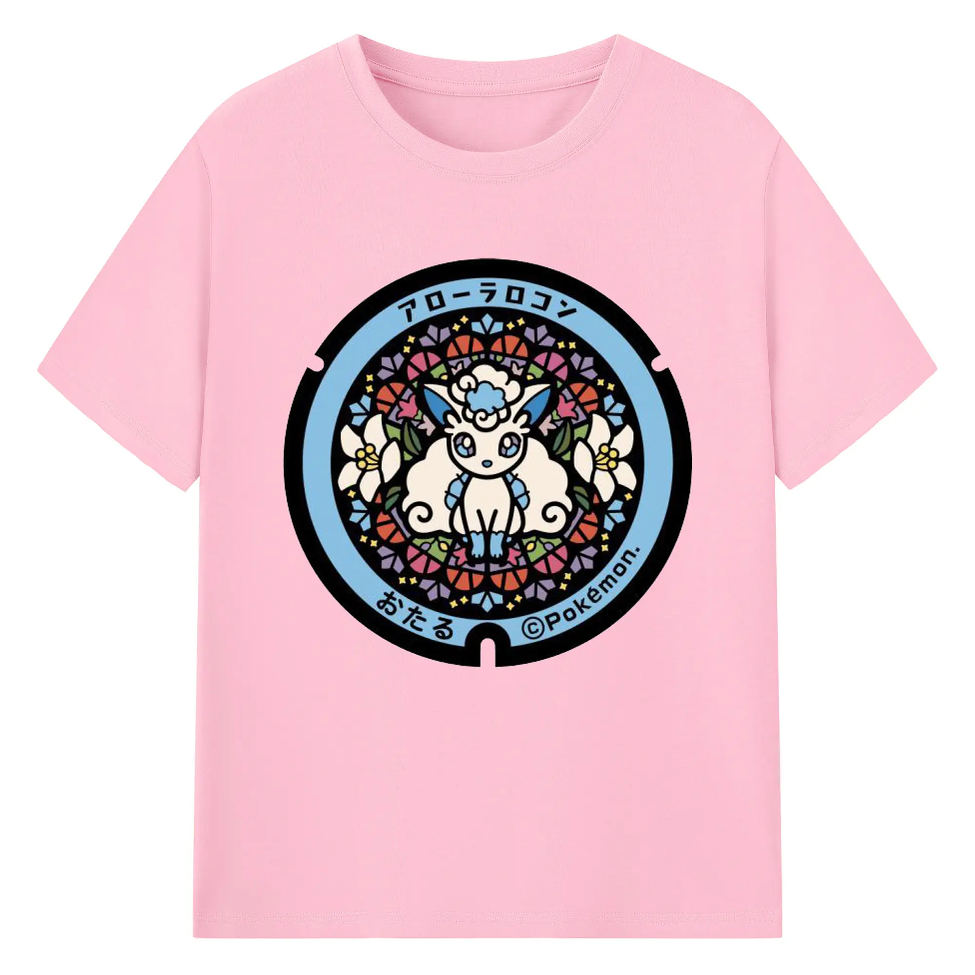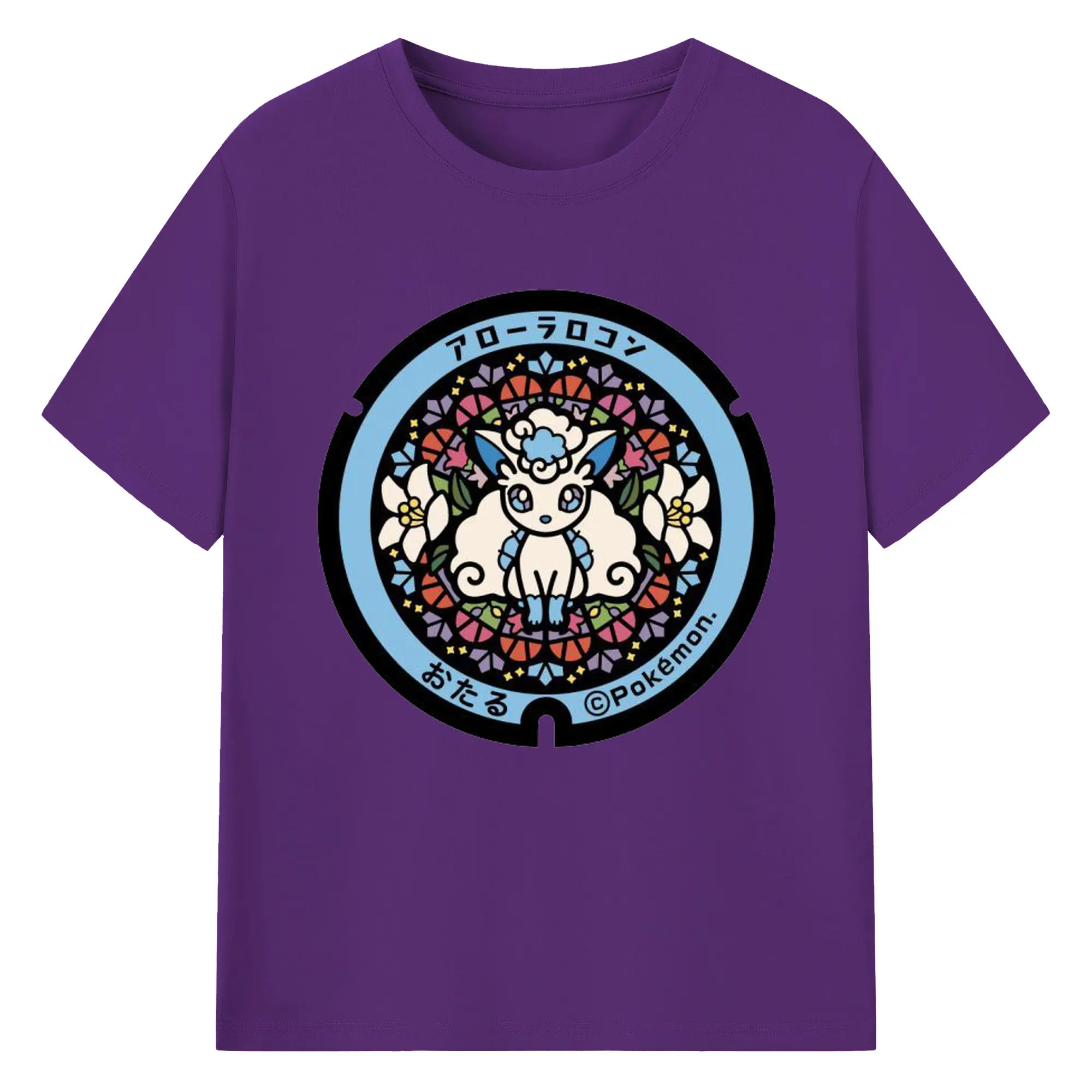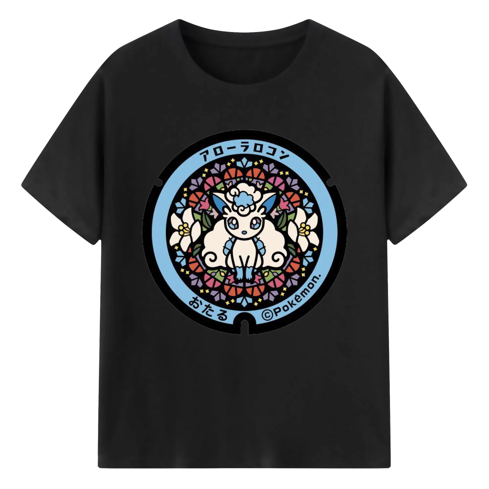 ポケモン アローラロコン デフォルメ - 綿100% ヴィンテージ風 半袖Tシャツ ・ フロントプリント ・ 柔らか肌触り ・ 通気性 快適 ・ スポーツ カジュアル 外出用