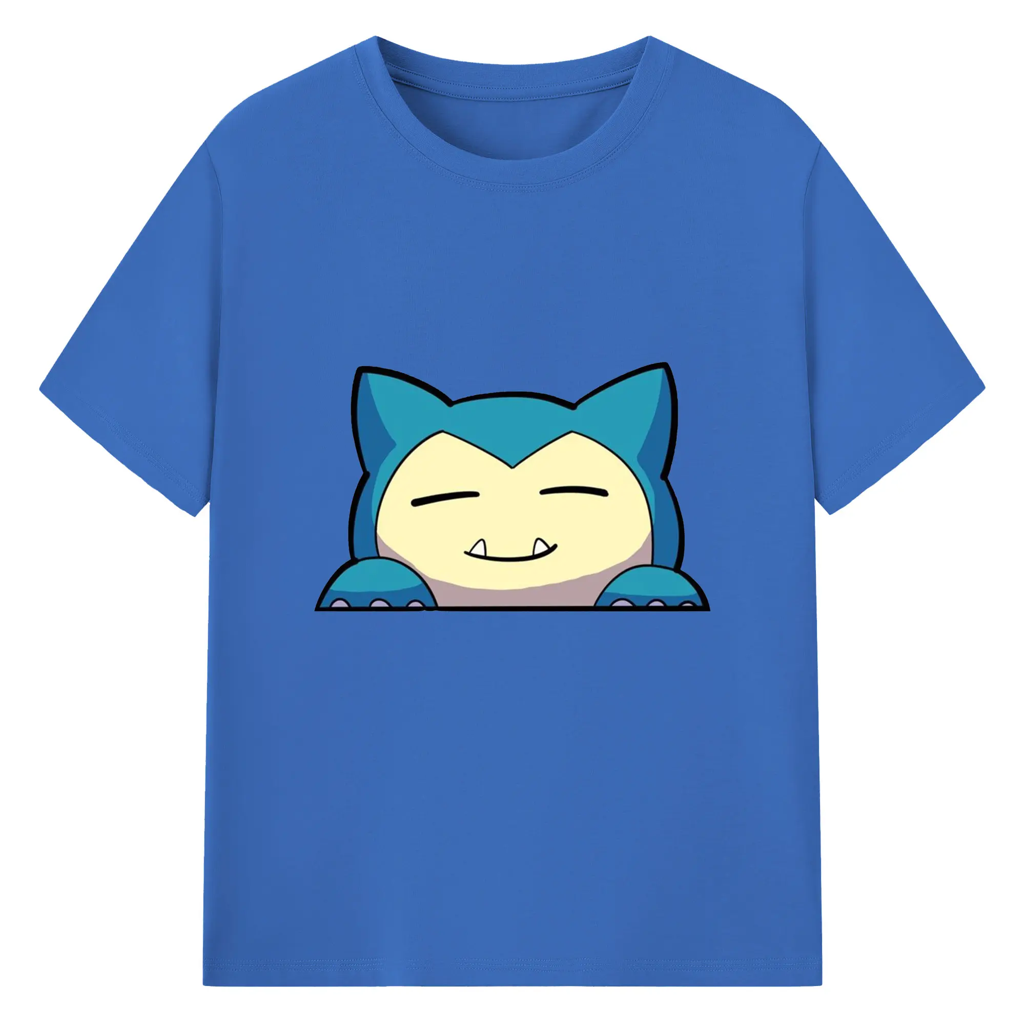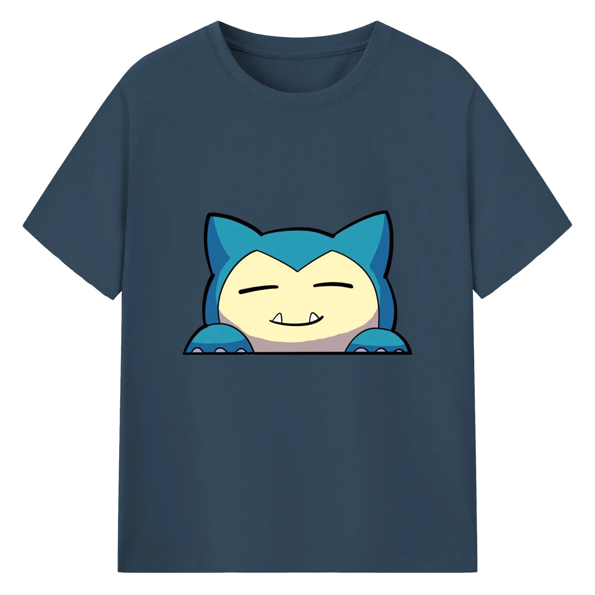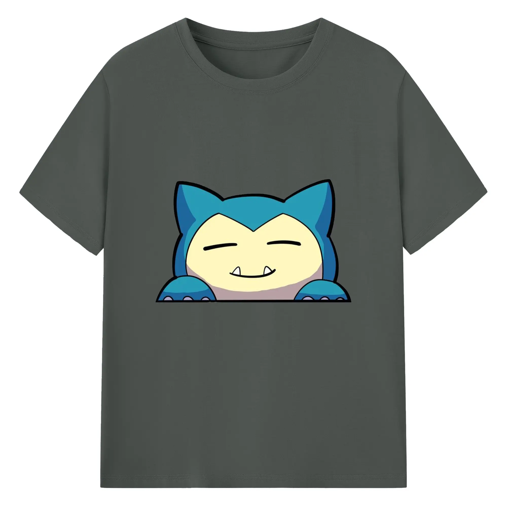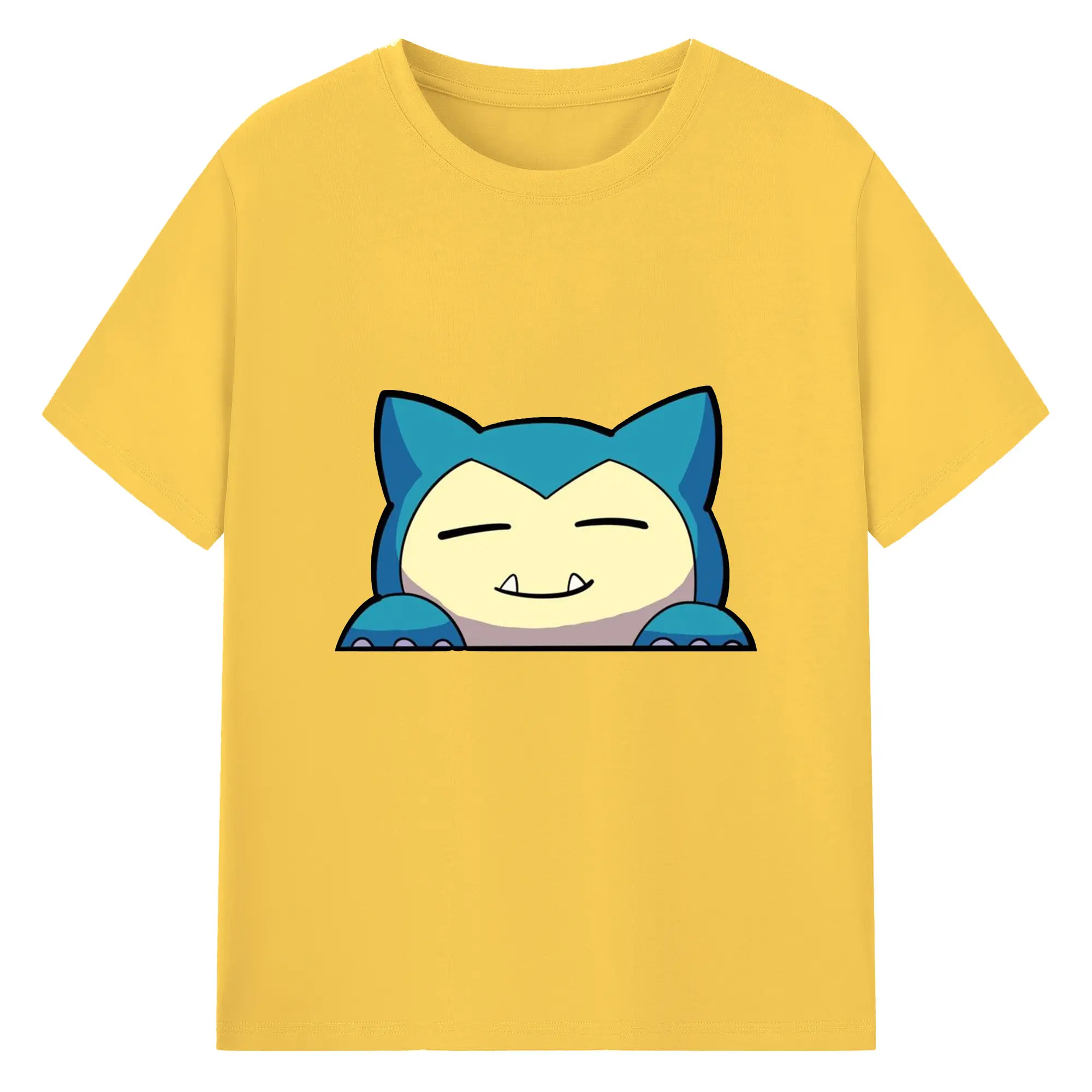 ポケモン カビゴン - 綿100% ヴィンテージ風 半袖Tシャツ ・ フロントプリント ・ 柔らか肌触り ・ 通気性 快適 ・ スポーツ カジュアル 外出用