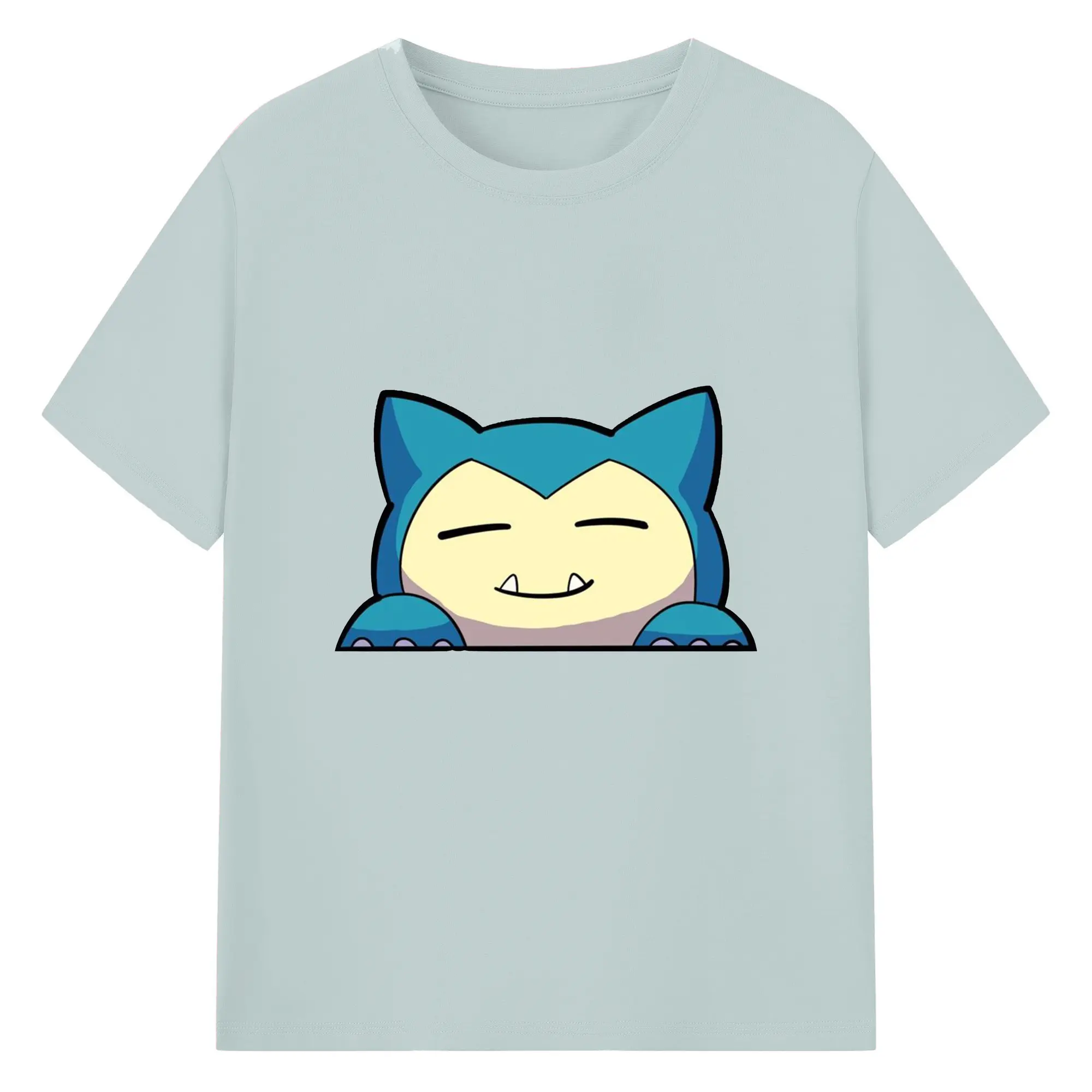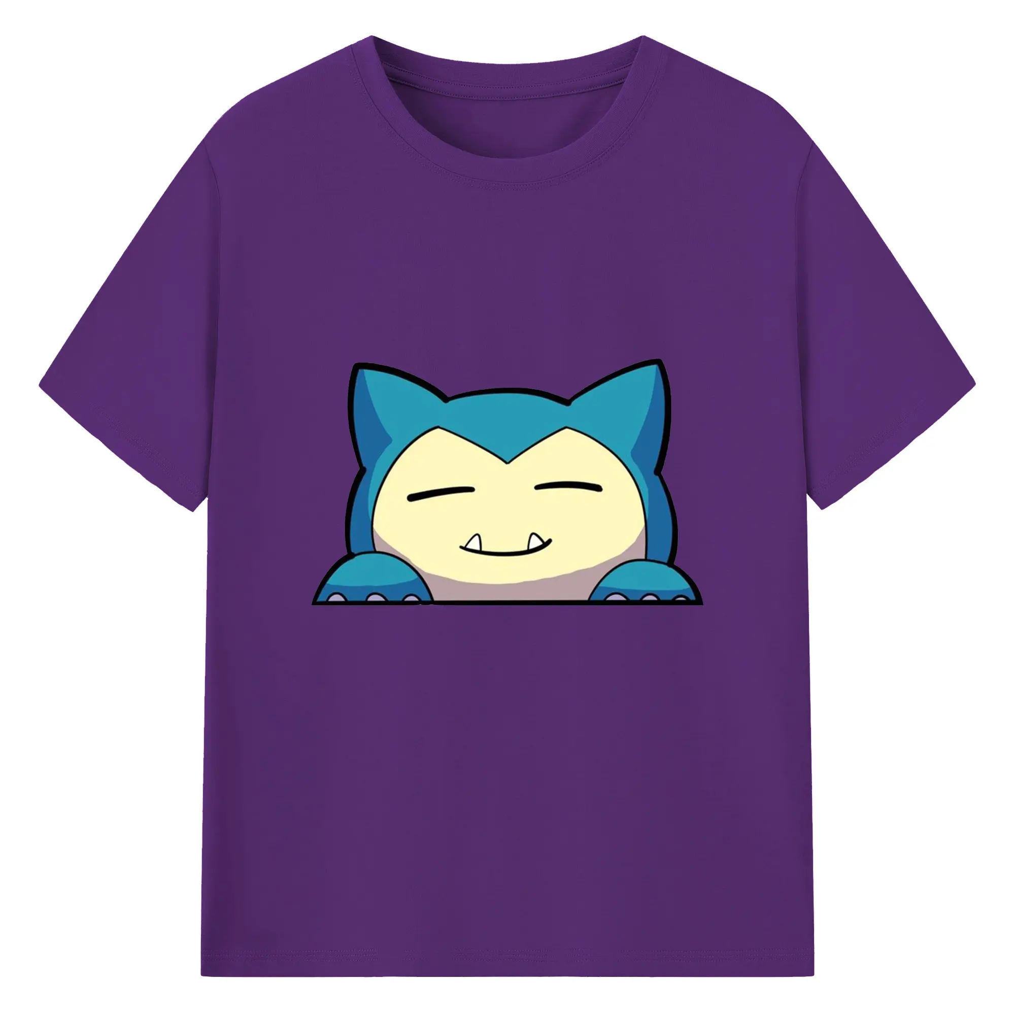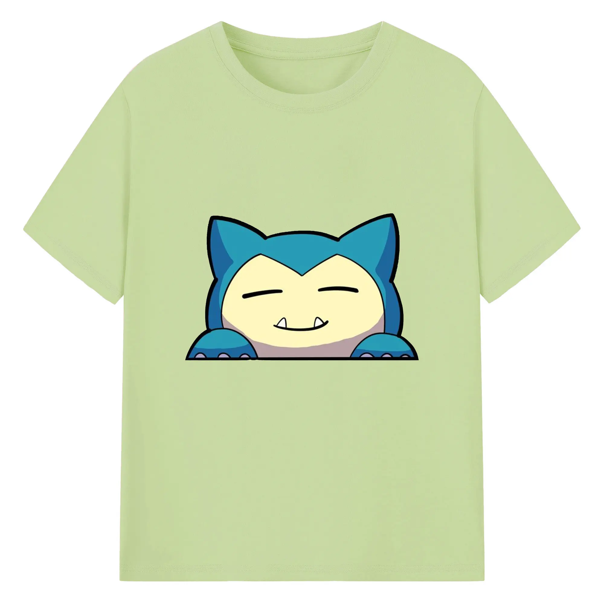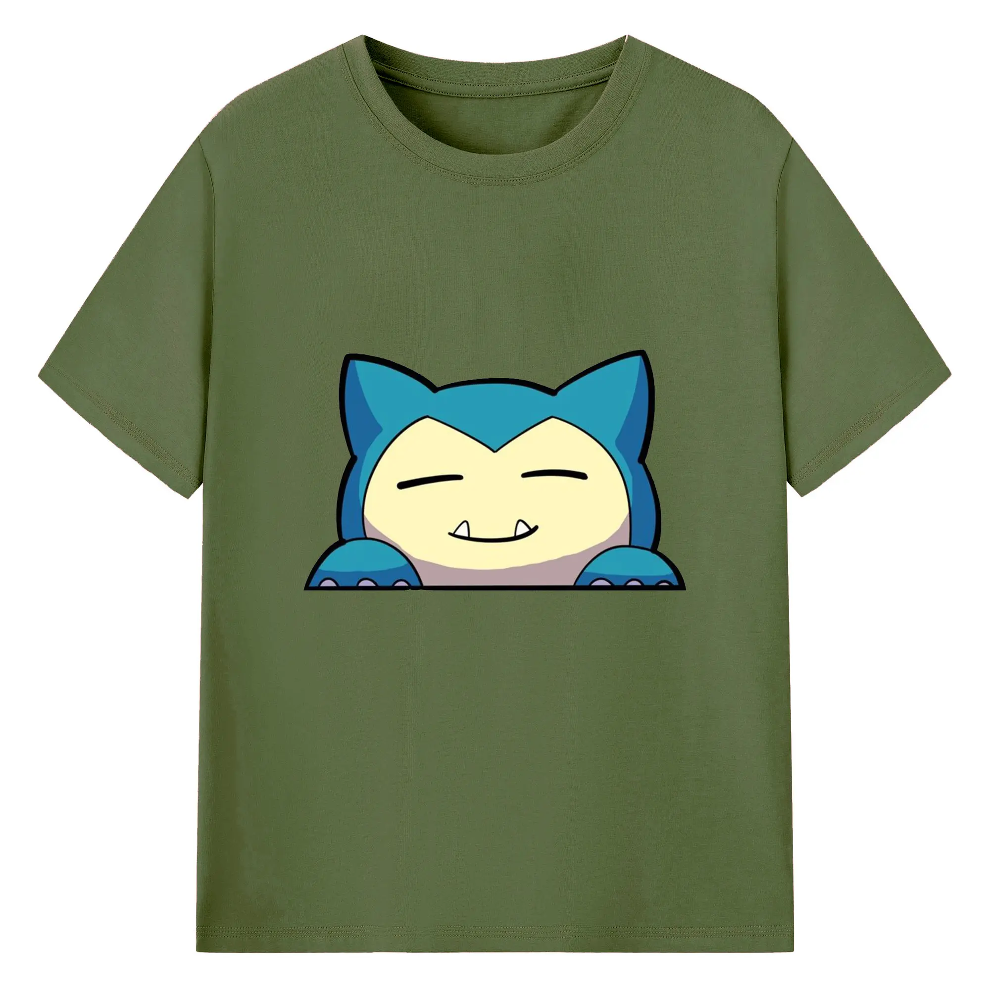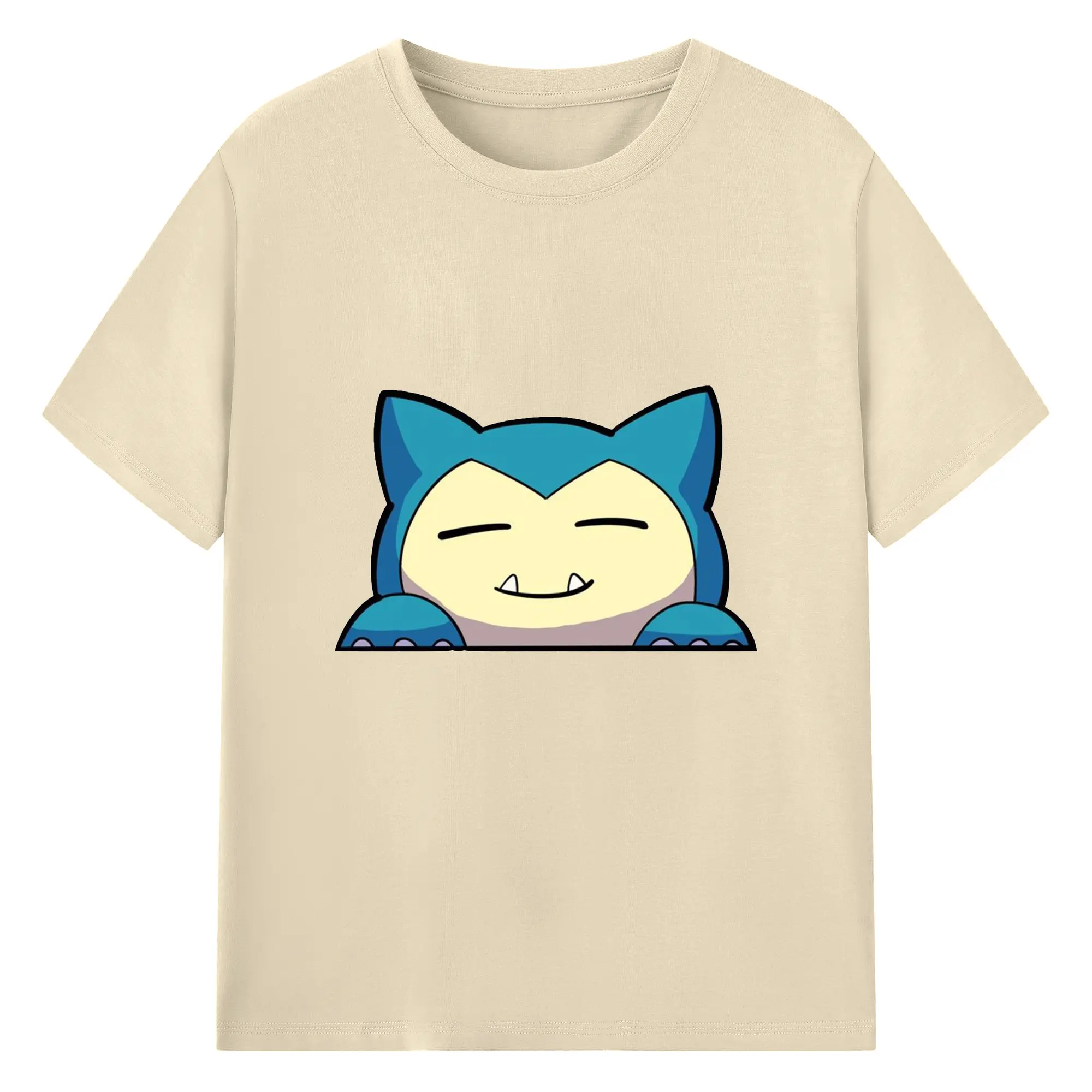 ポケモン カビゴン - 綿100% ヴィンテージ風 半袖Tシャツ ・ フロントプリント ・ 柔らか肌触り ・ 通気性 快適 ・ スポーツ カジュアル 外出用