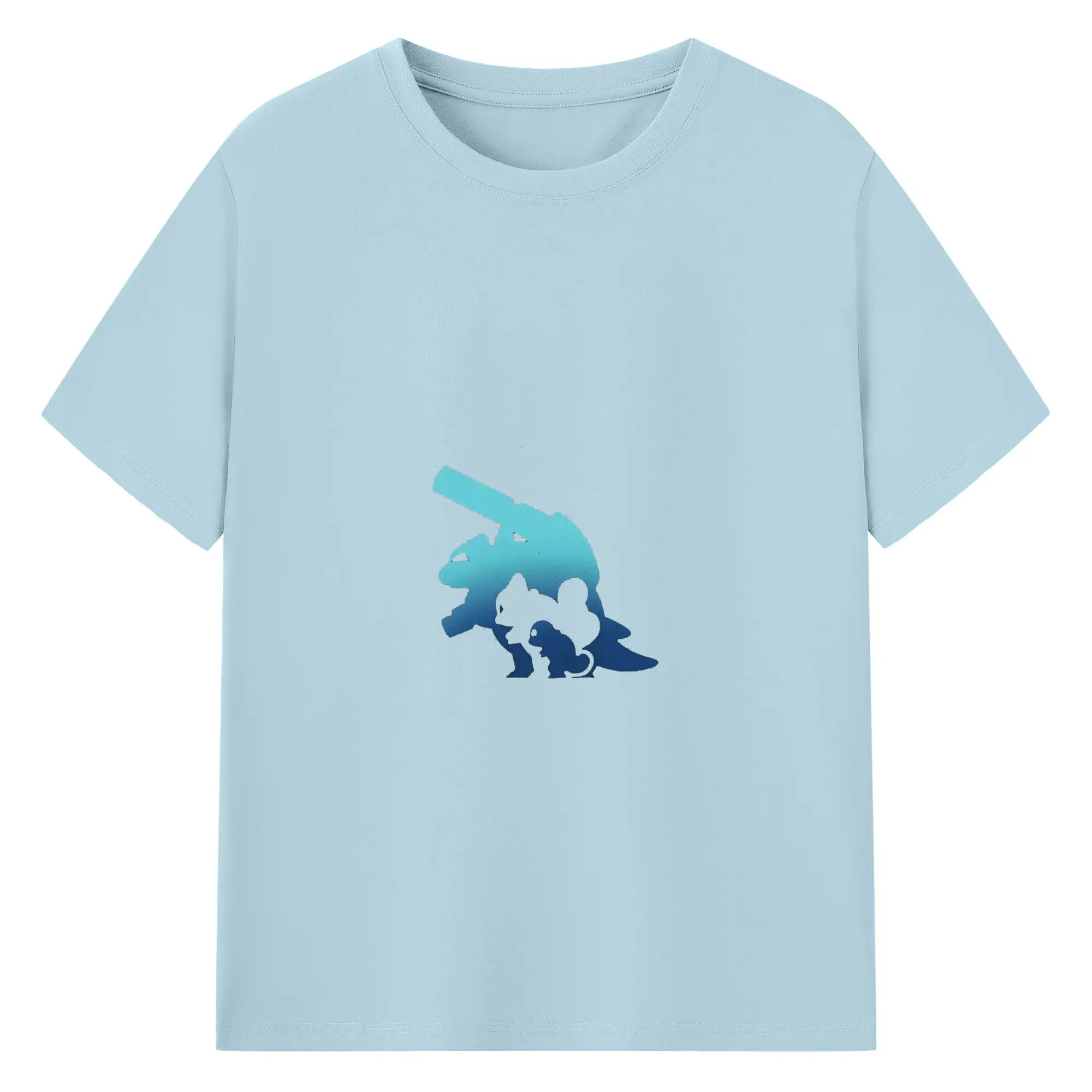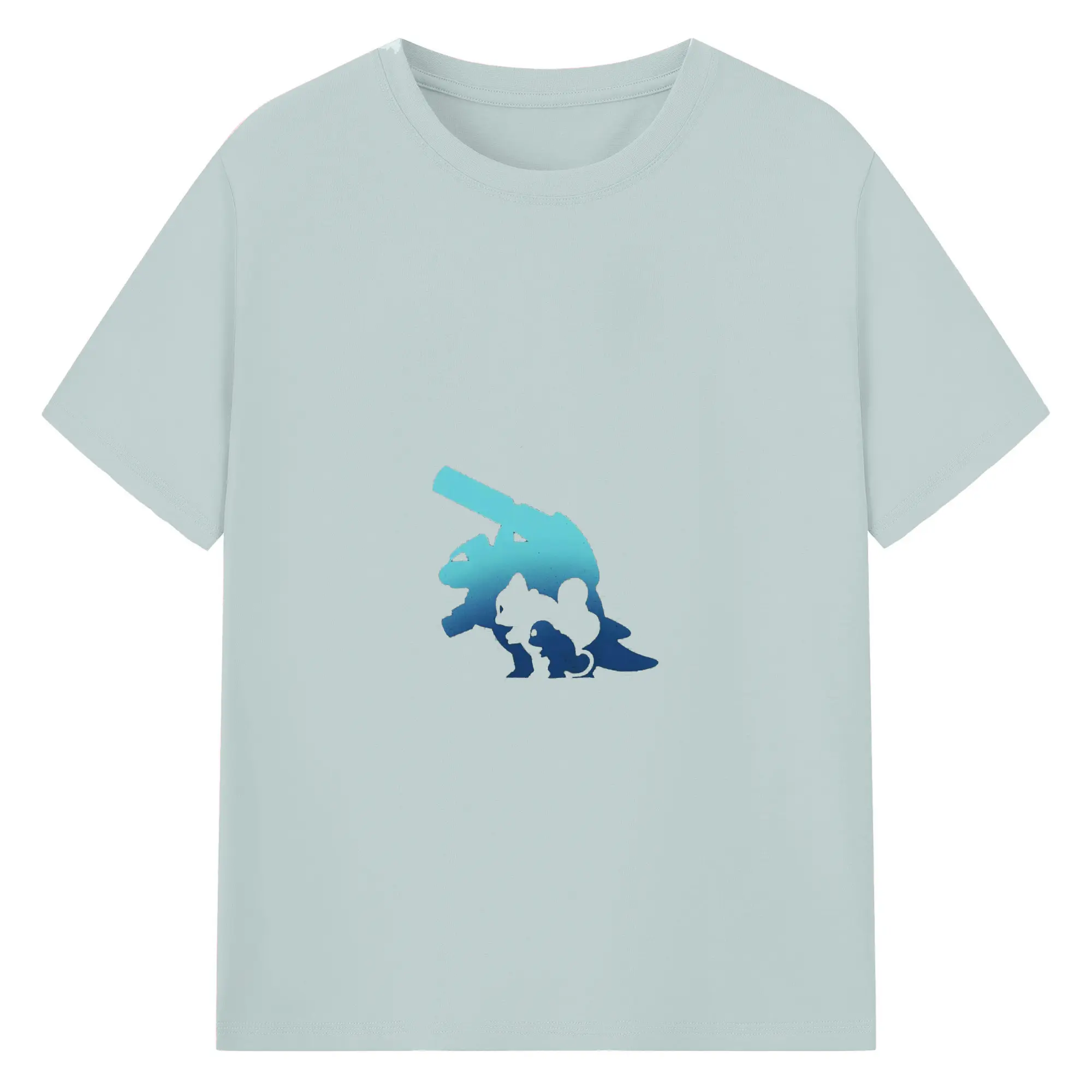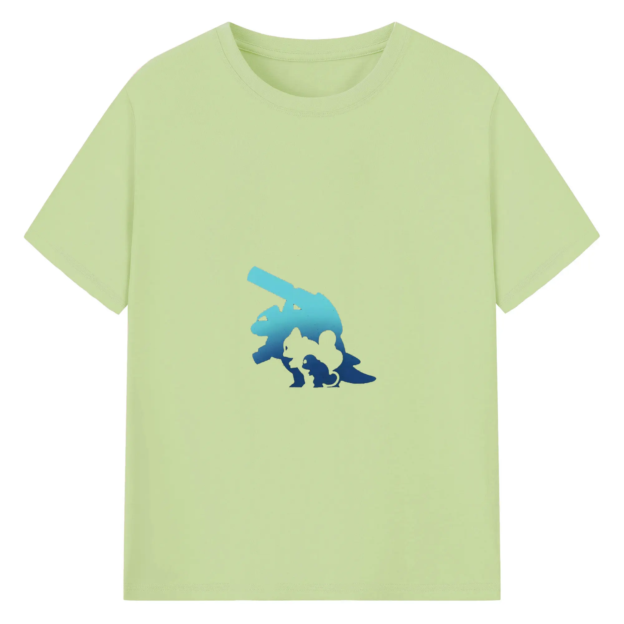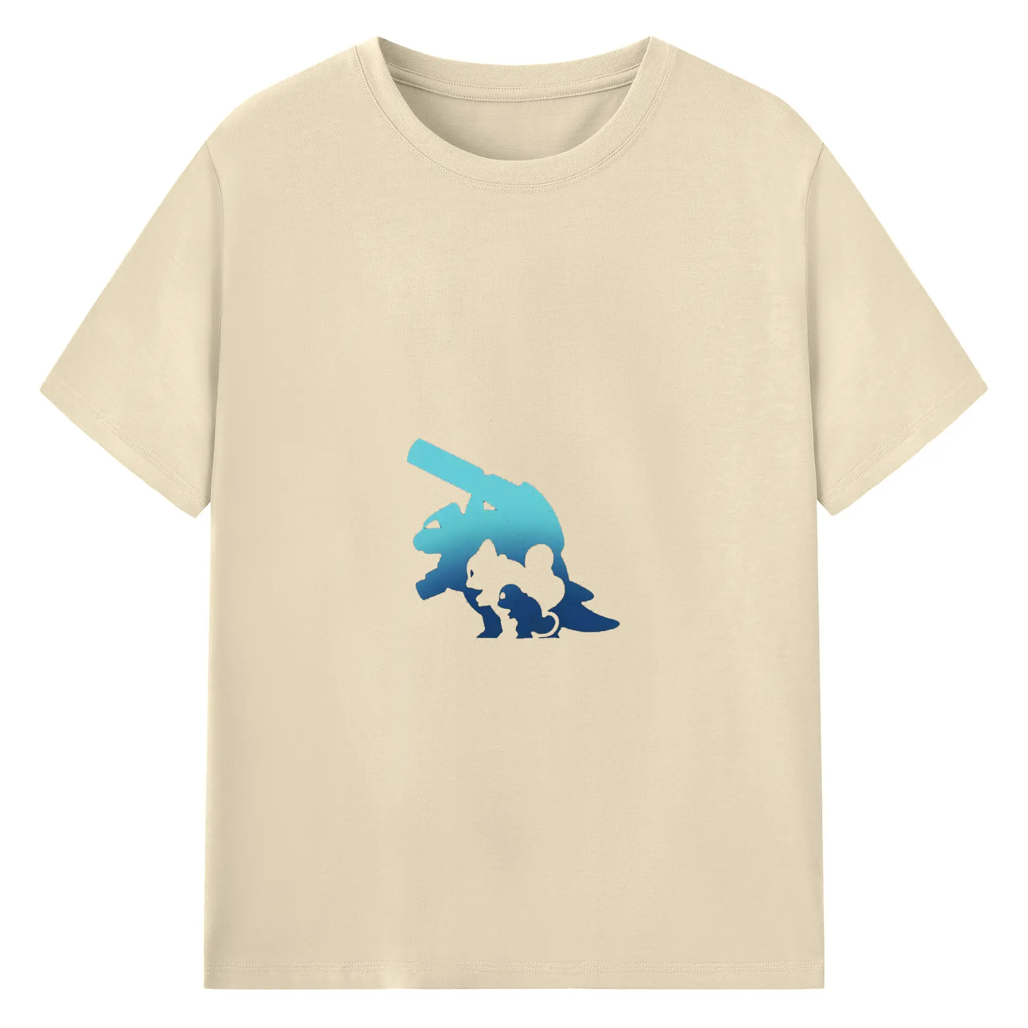 ポケモン カメックス - 綿100% ヴィンテージ風 半袖Tシャツ ・ フロントプリント ・ 柔らか肌触り ・ 通気性 快適 ・ スポーツ カジュアル 外出用