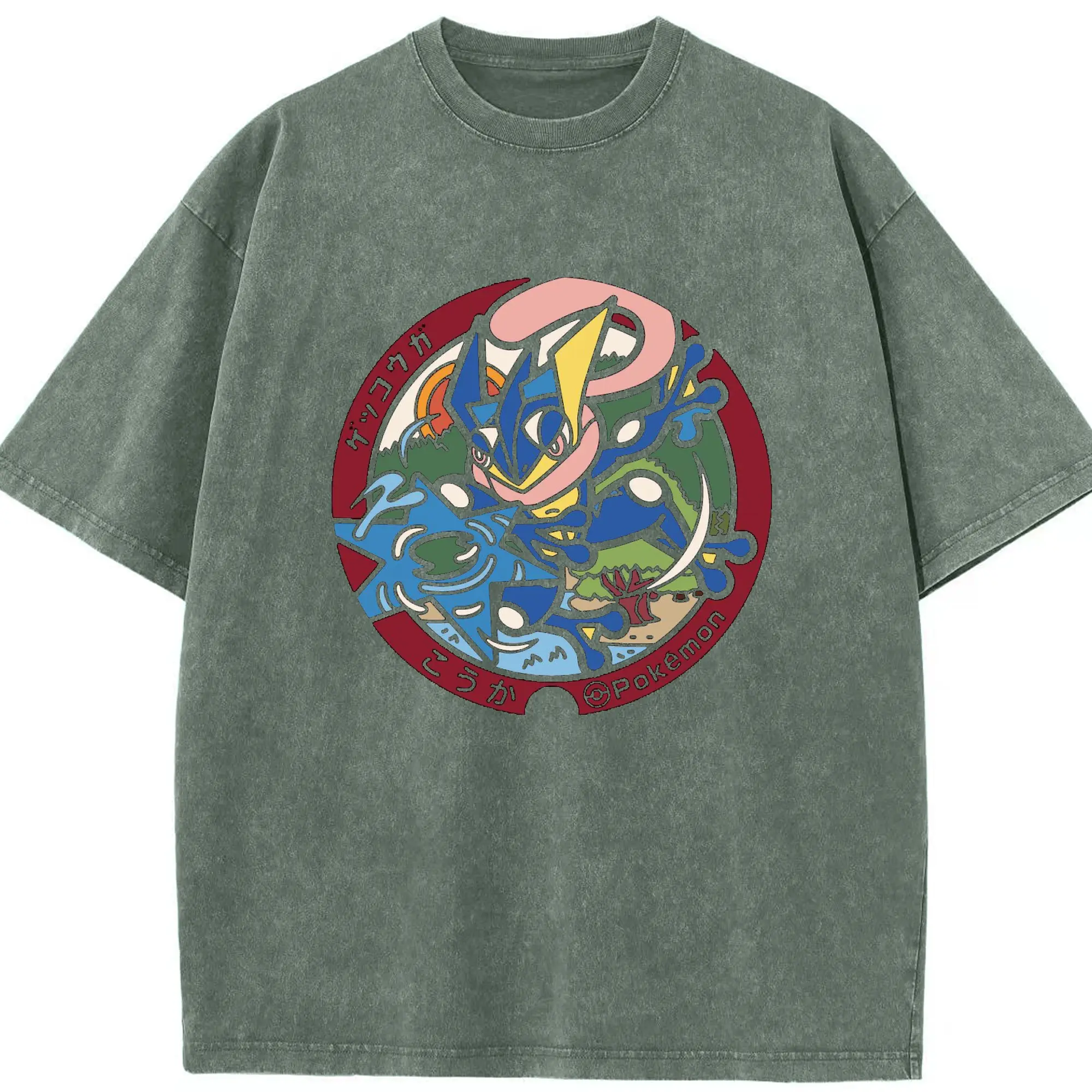 ポケモン ゲッコウガ - 綿100% 半袖Tシャツ ・ フロントプリント ・ 快適 通気性 ・ 日常使い 散歩 スポーツ用