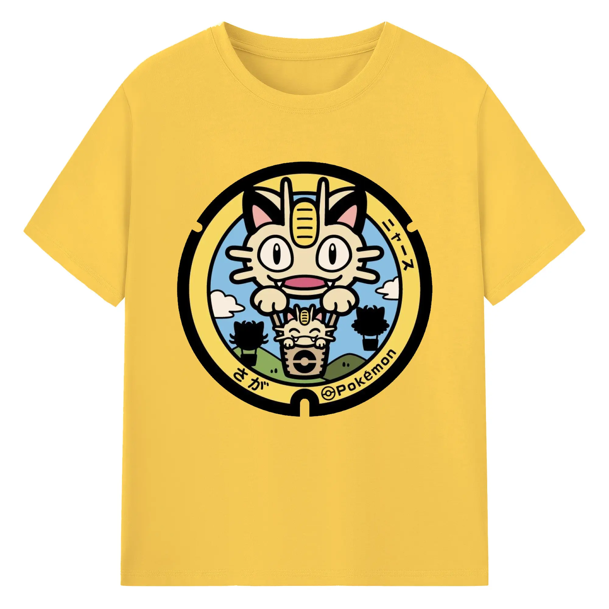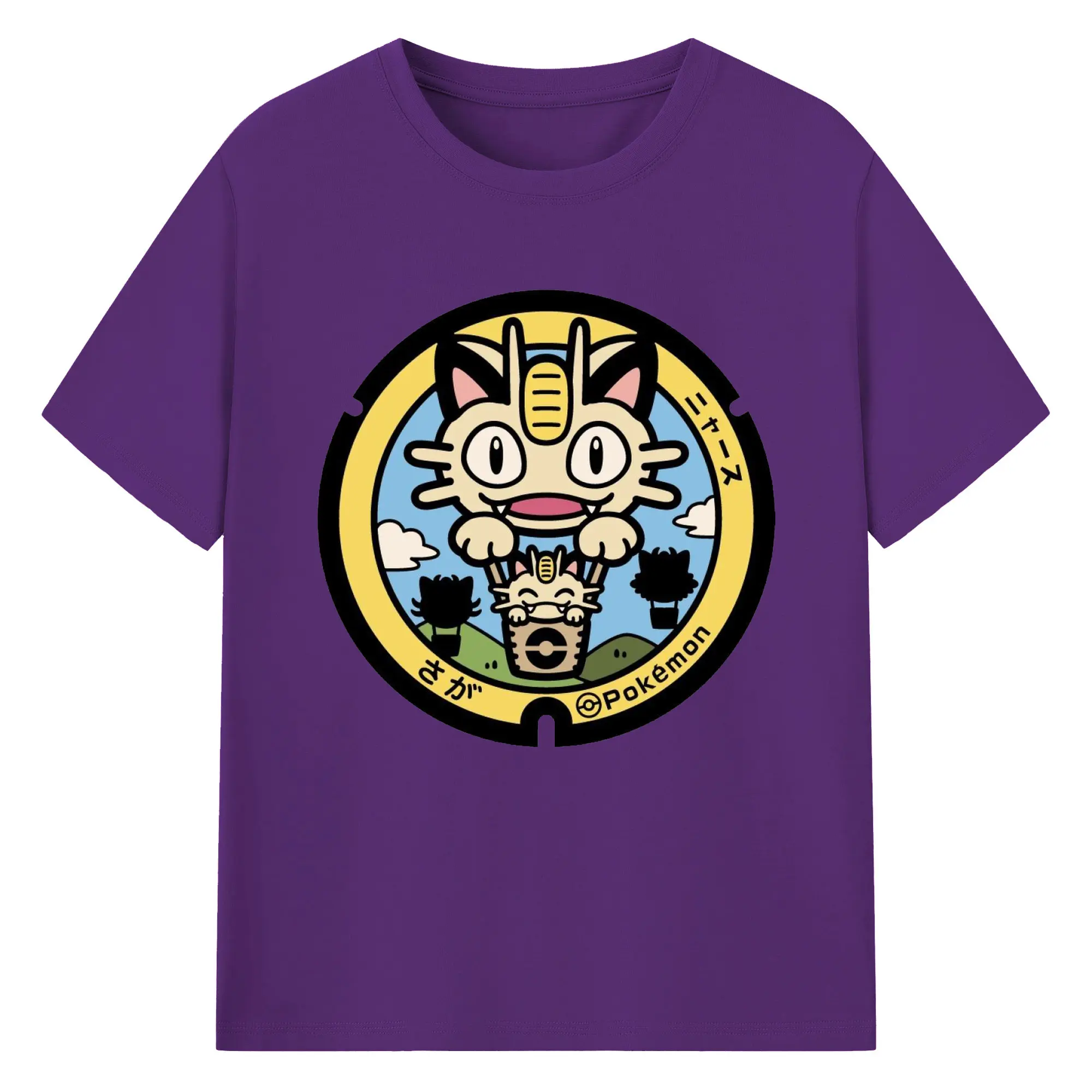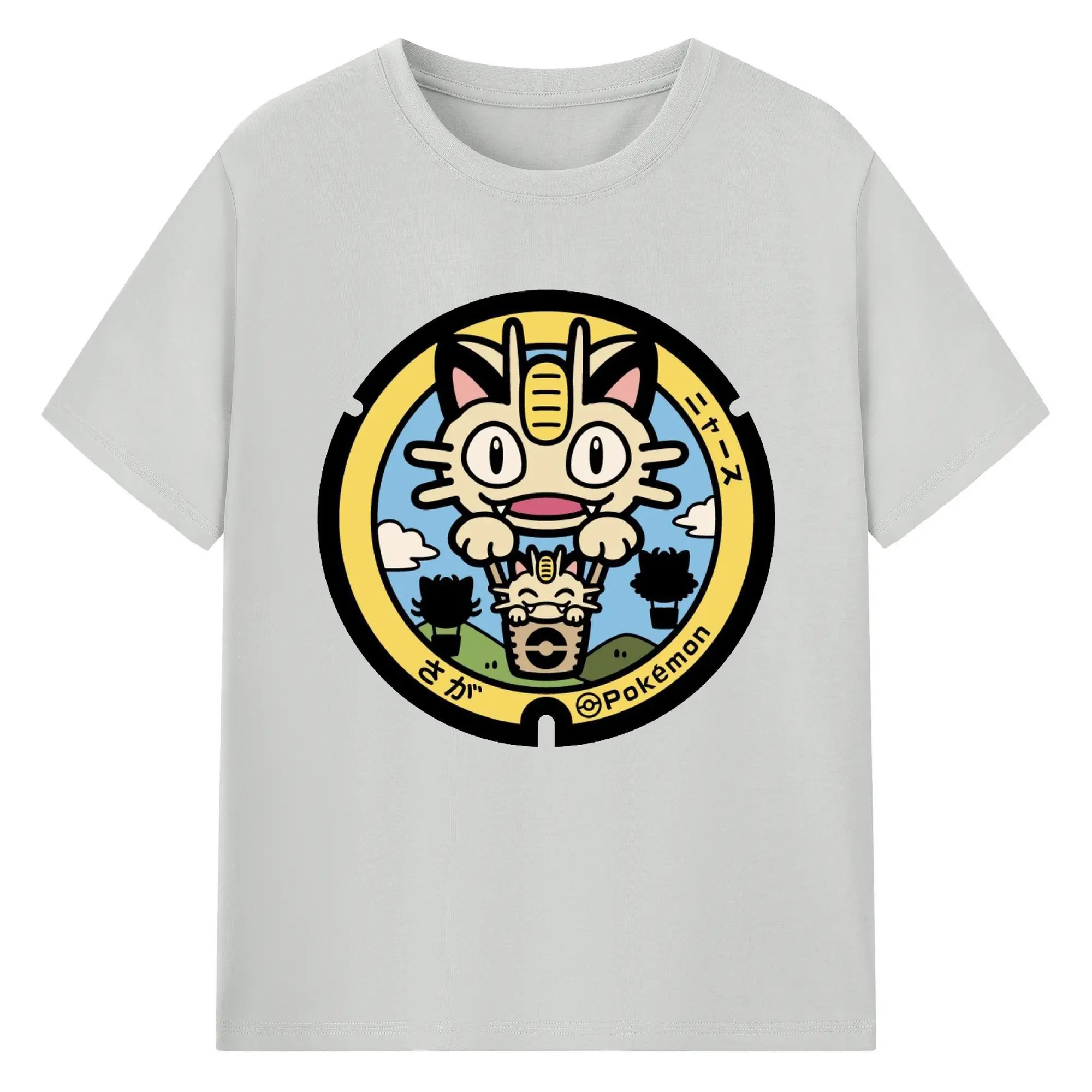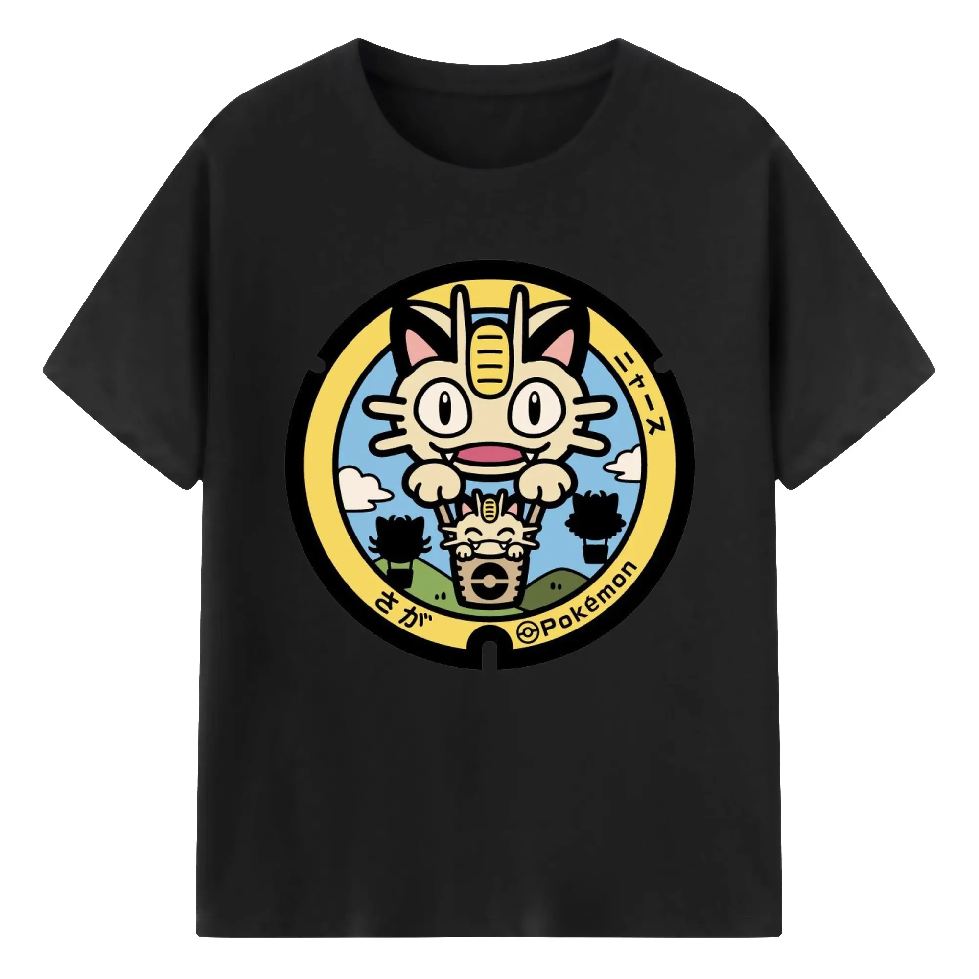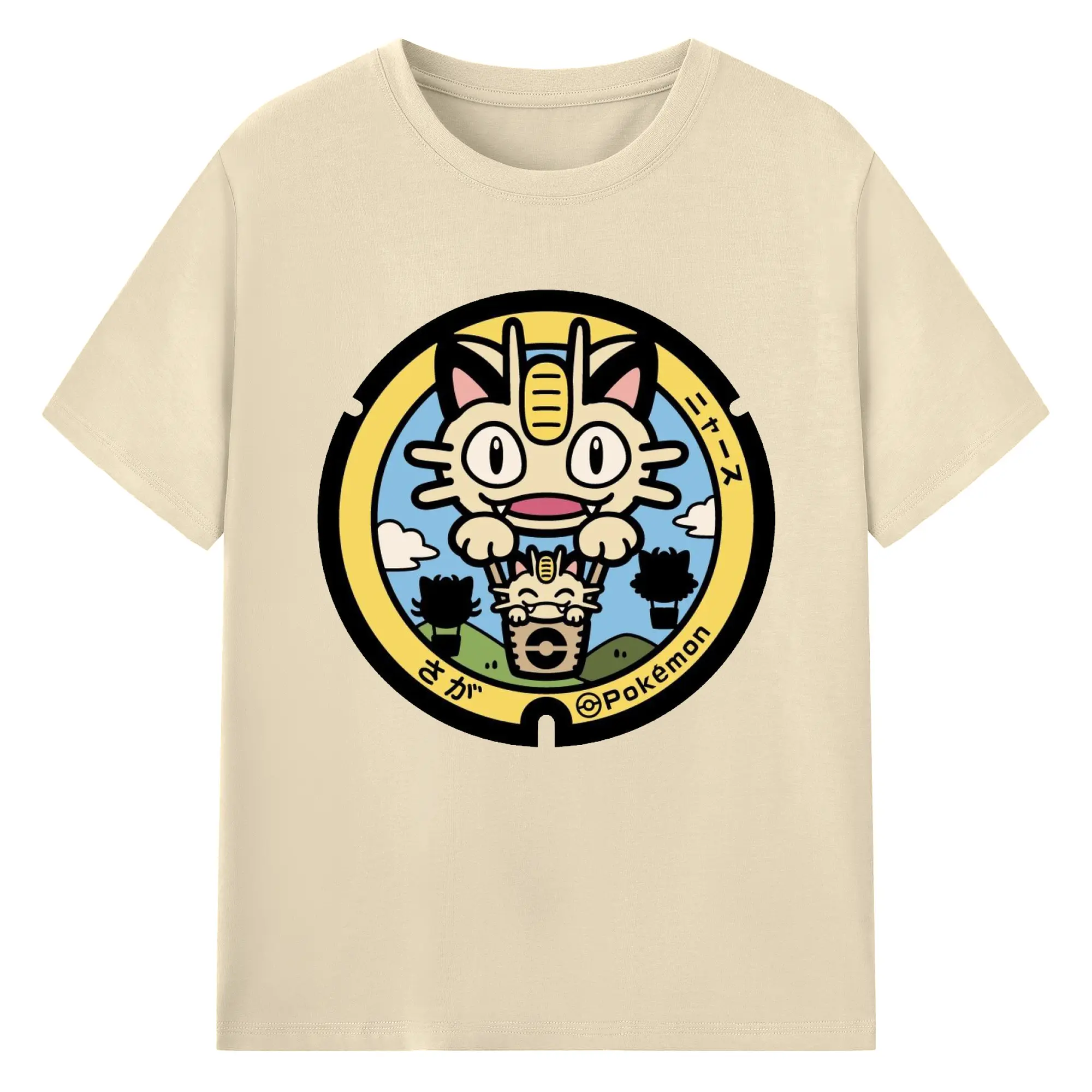 ポケモン ニャース - 綿100% ヴィンテージ風 半袖Tシャツ ・ フロントプリント ・ 柔らか肌触り ・ 通気性 快適 ・ スポーツ カジュアル 外出用