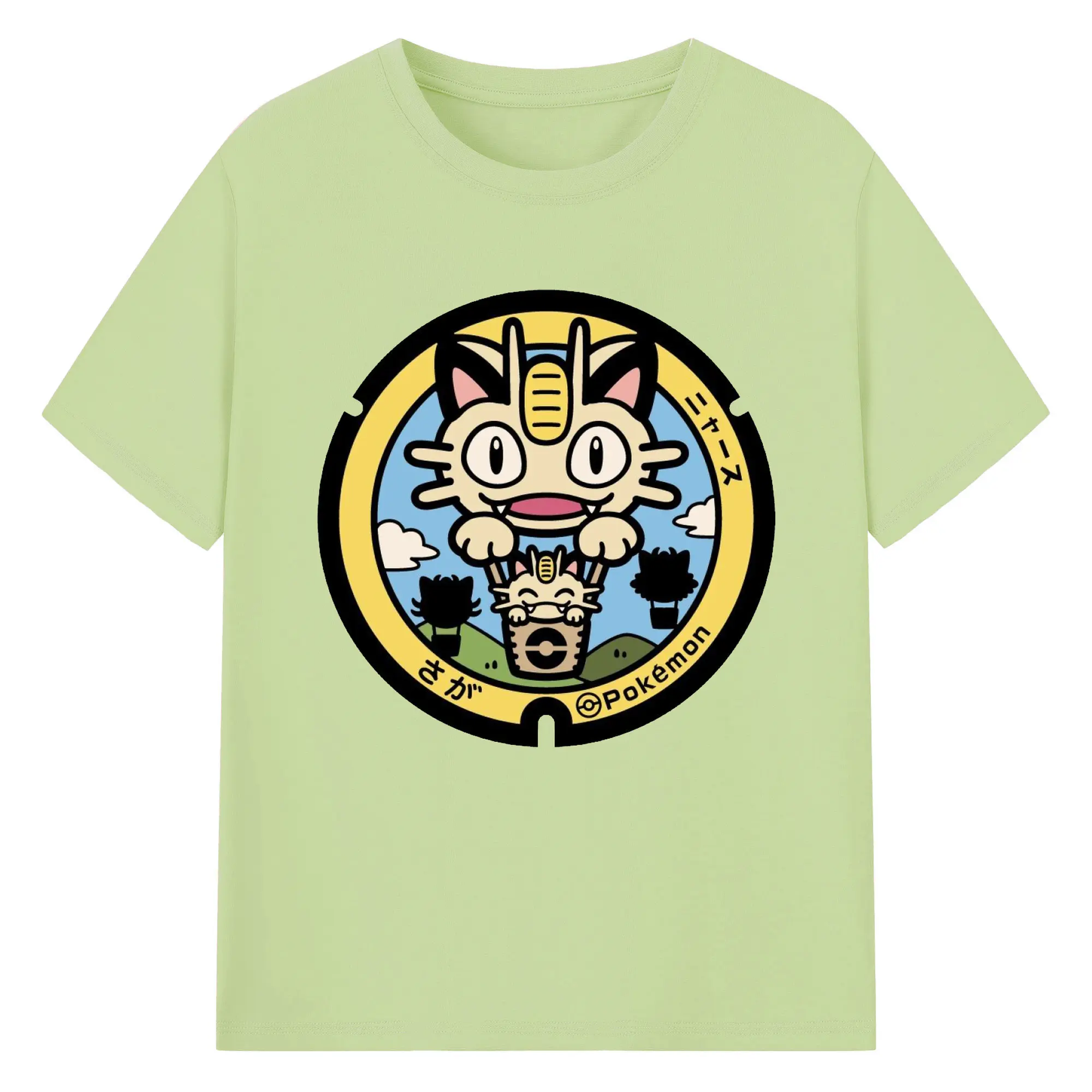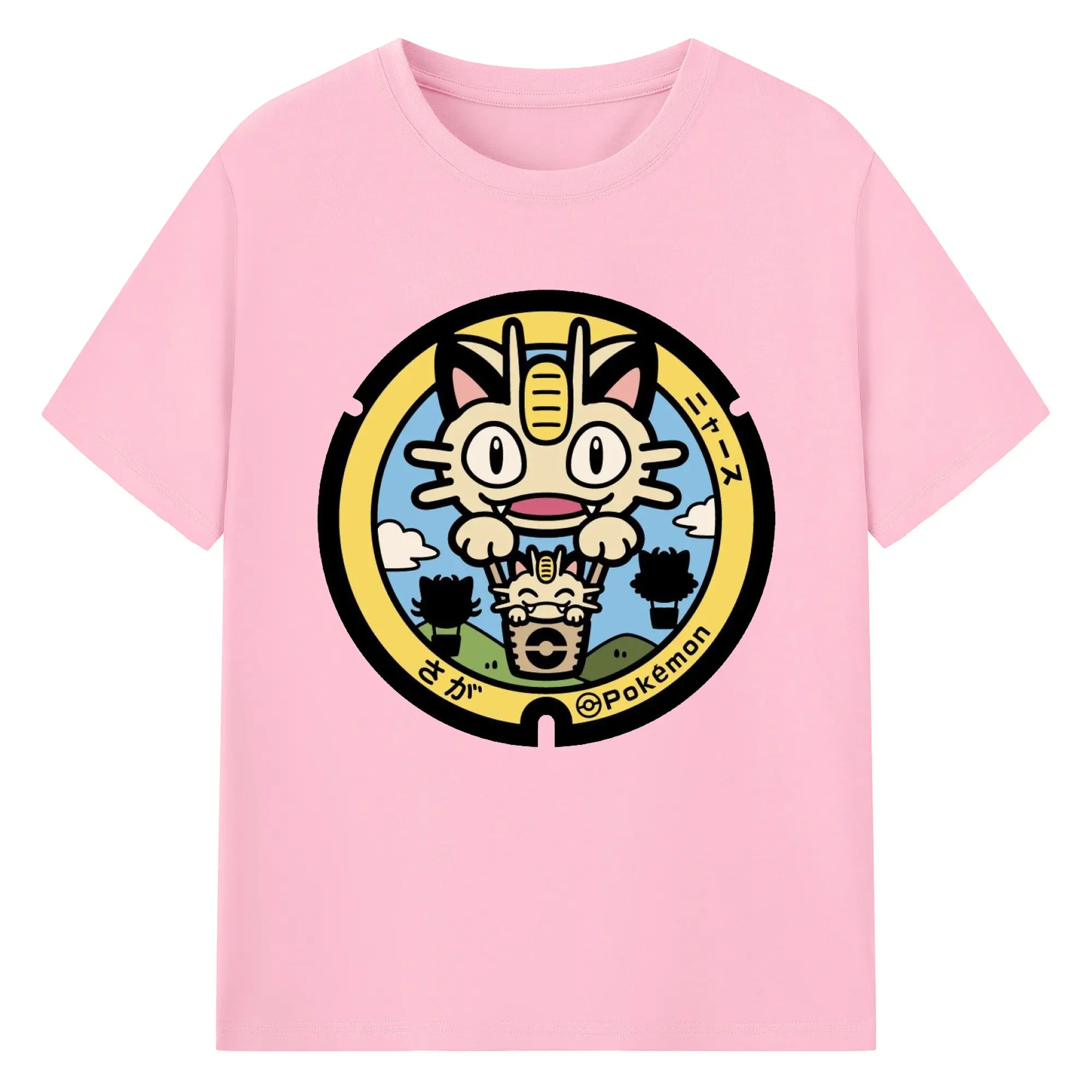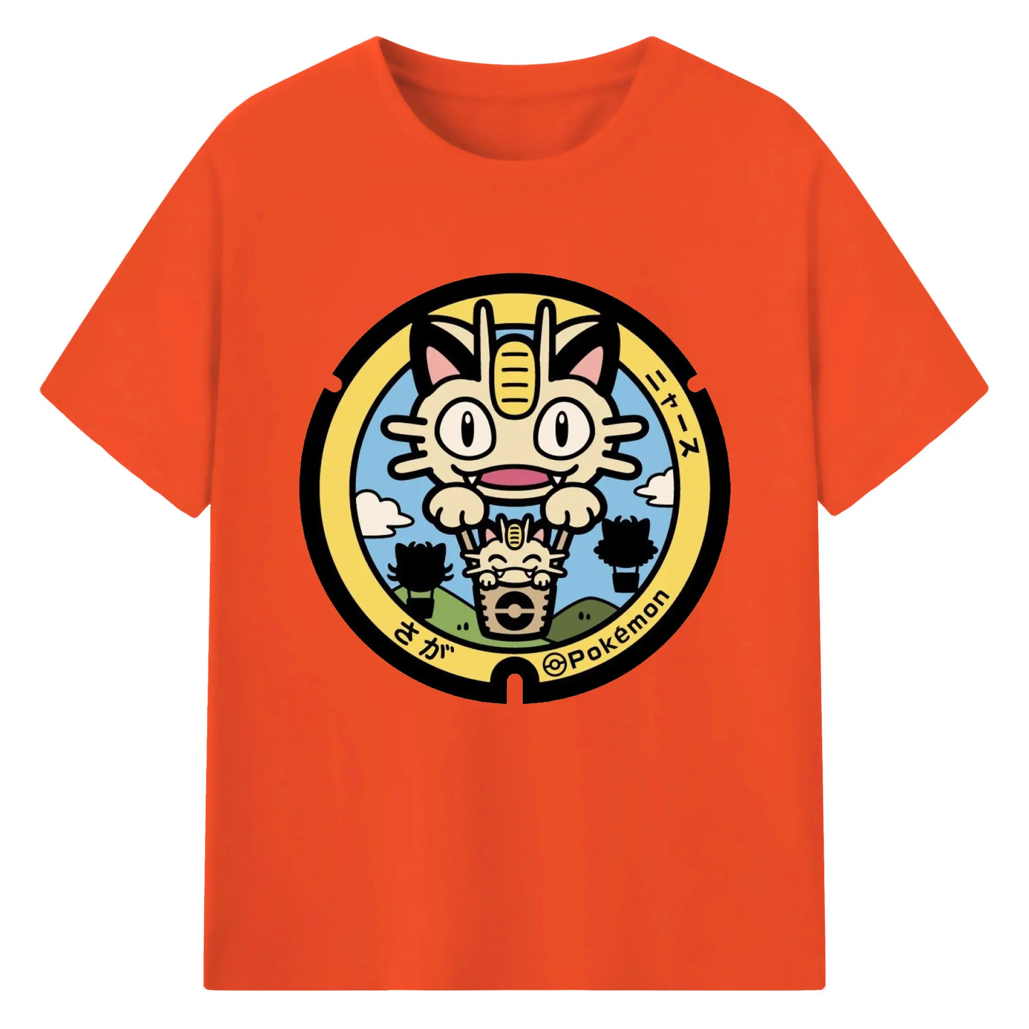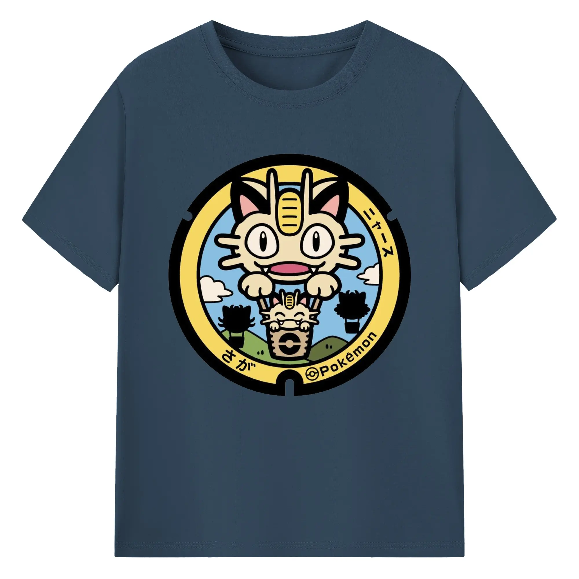 ポケモン ニャース - 綿100% ヴィンテージ風 半袖Tシャツ ・ フロントプリント ・ 柔らか肌触り ・ 通気性 快適 ・ スポーツ カジュアル 外出用