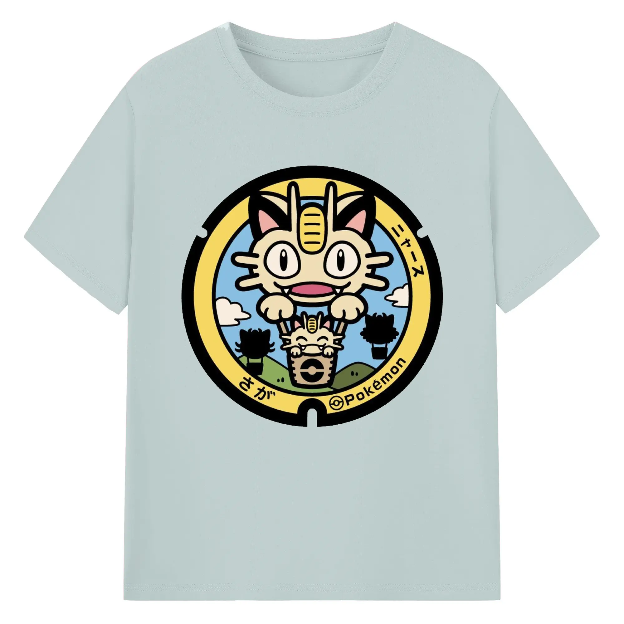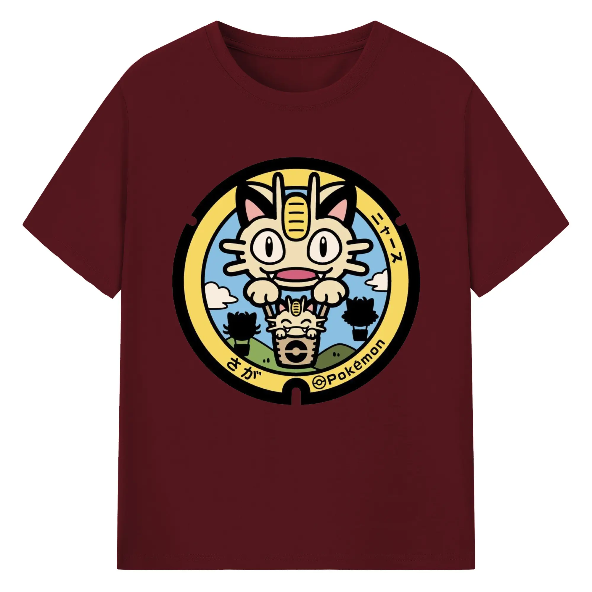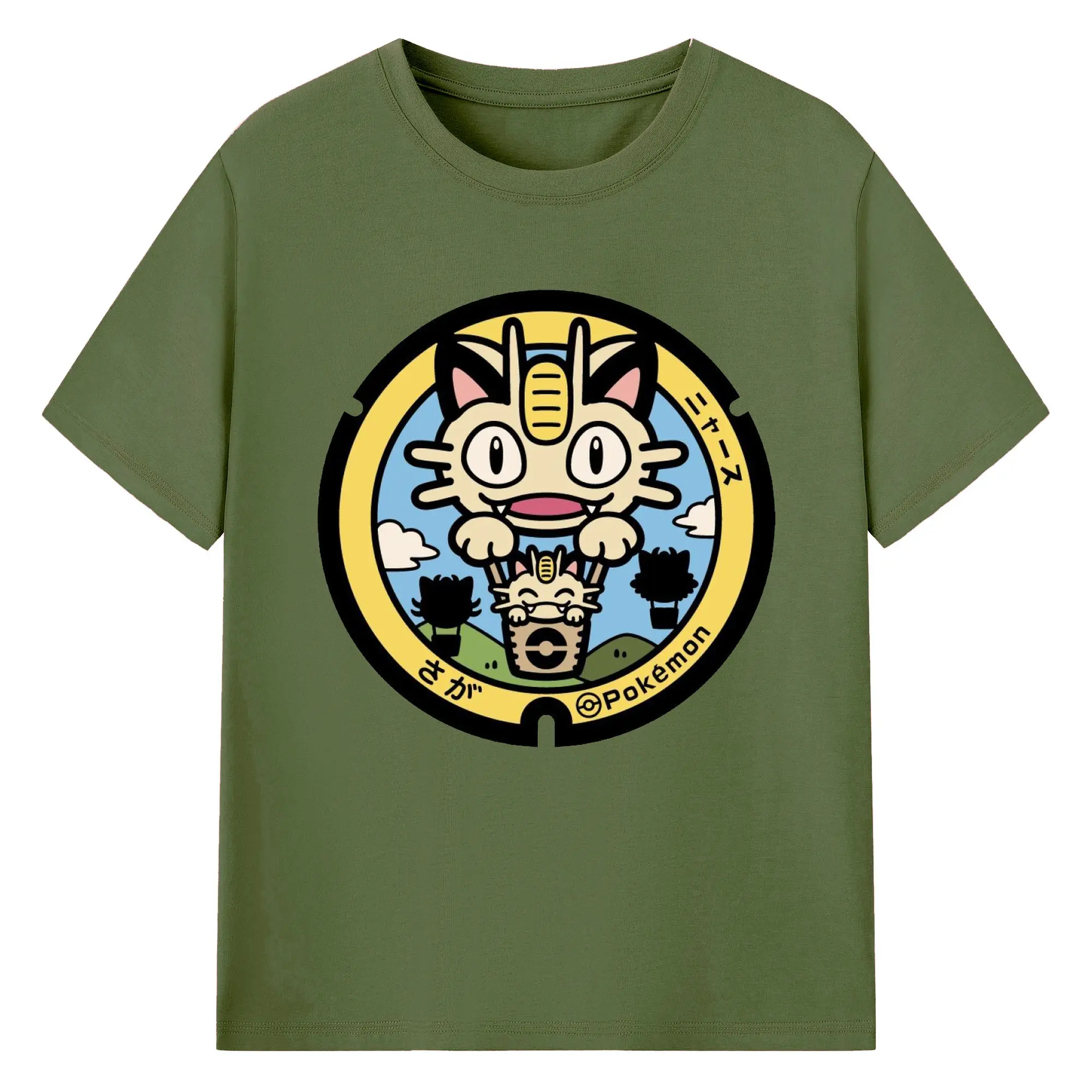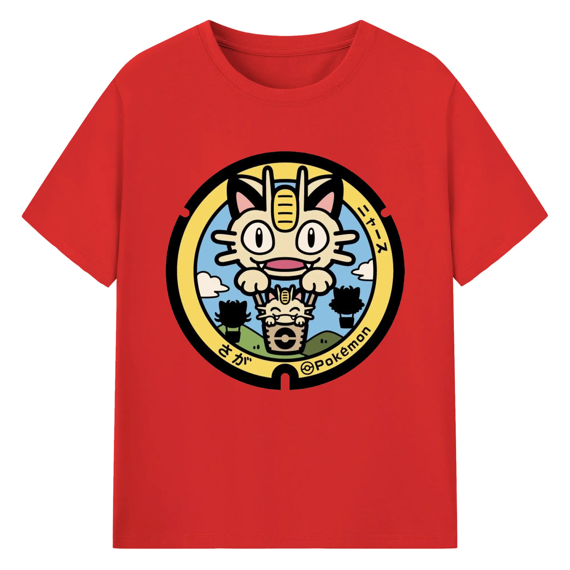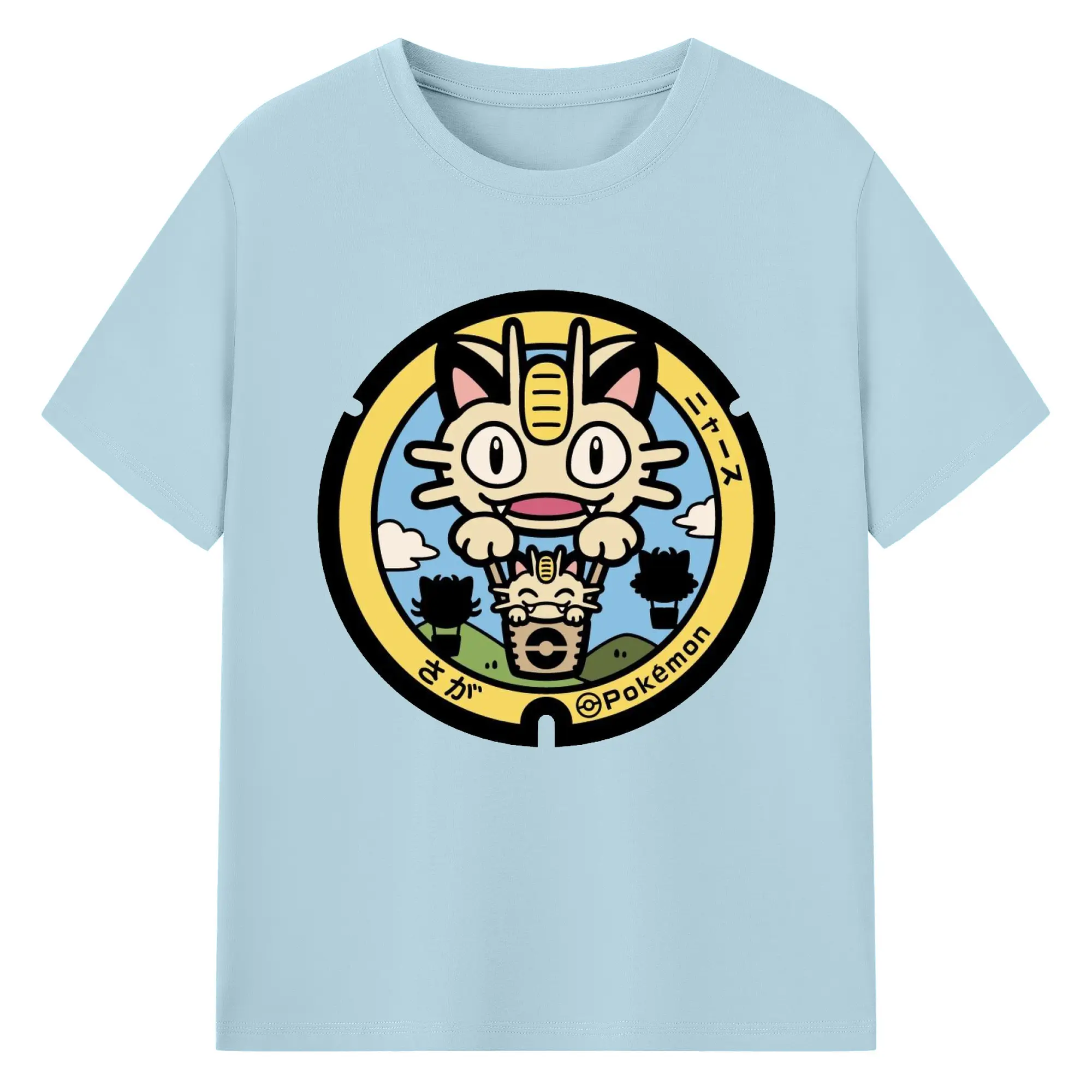 ポケモン ニャース - 綿100% ヴィンテージ風 半袖Tシャツ ・ フロントプリント ・ 柔らか肌触り ・ 通気性 快適 ・ スポーツ カジュアル 外出用