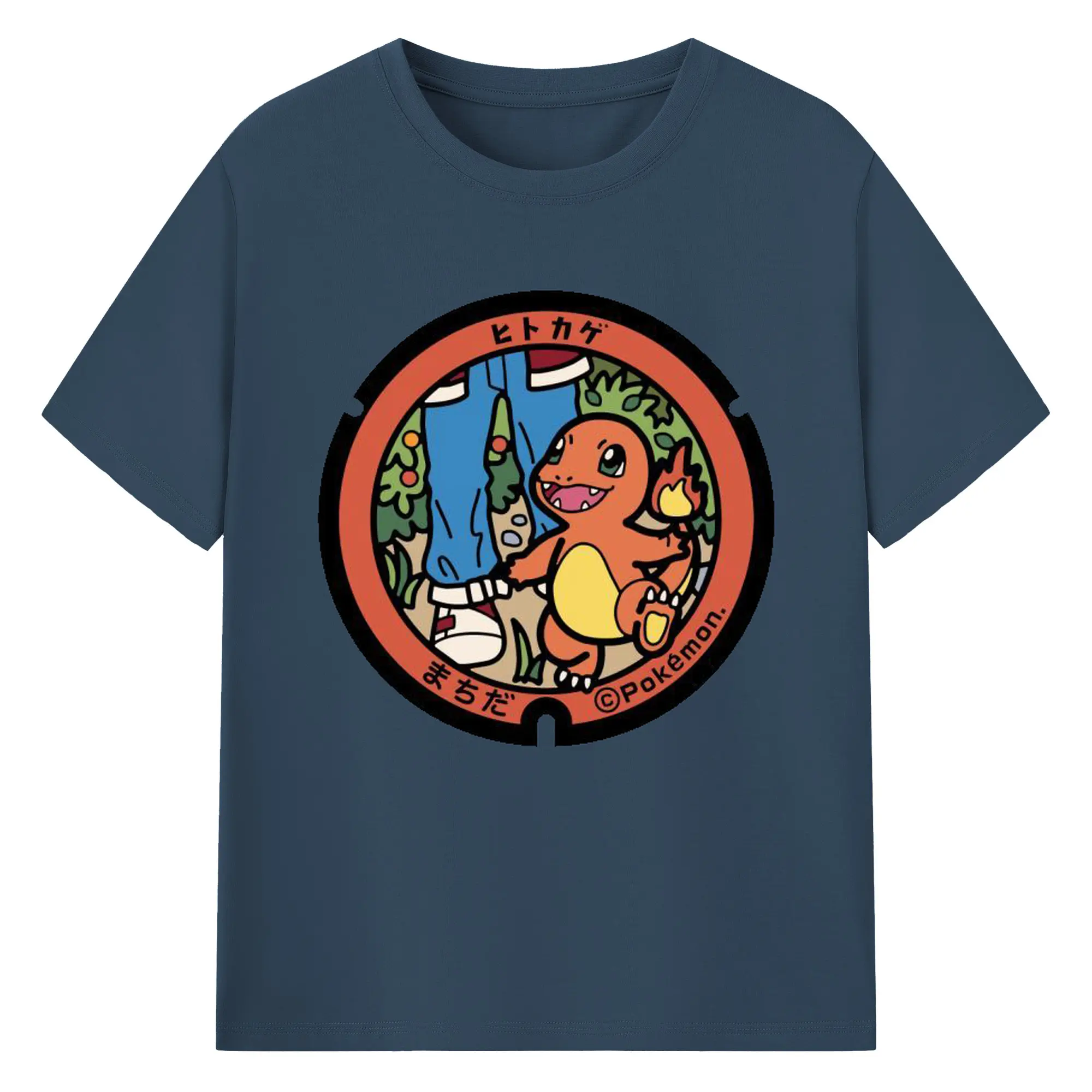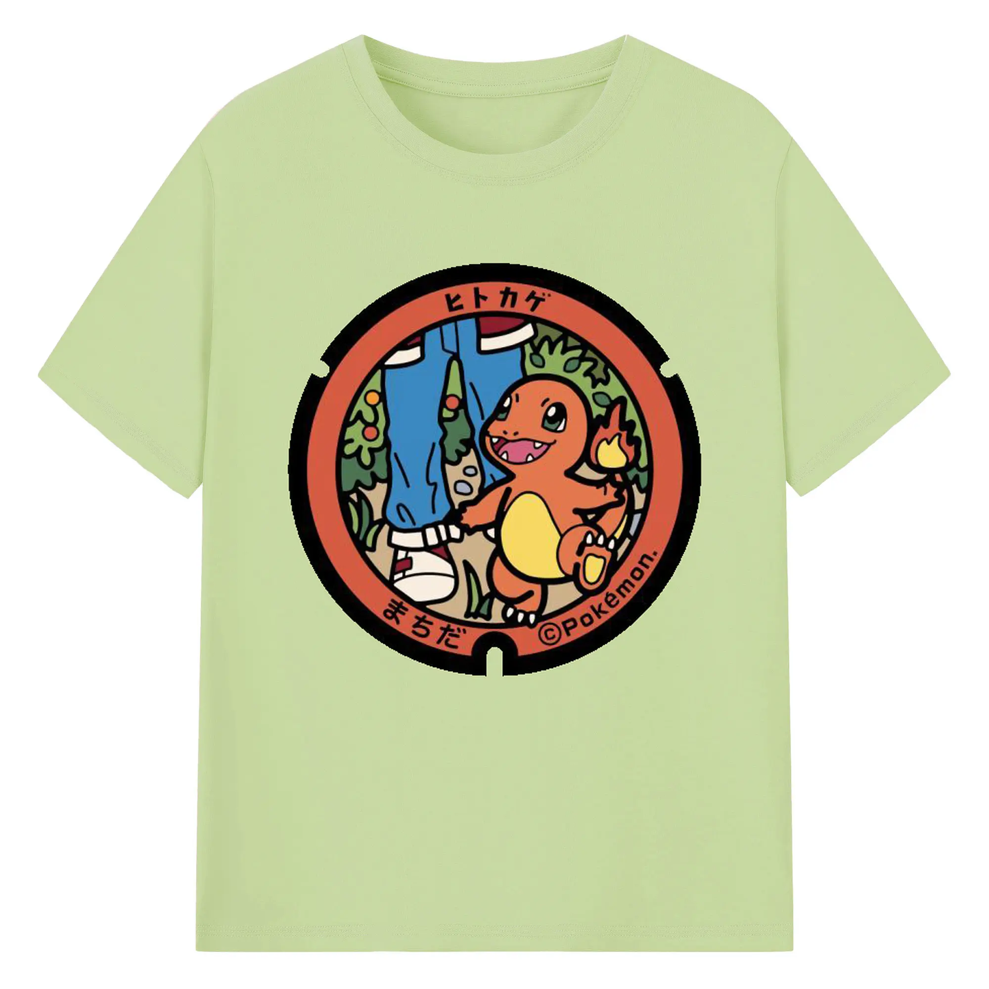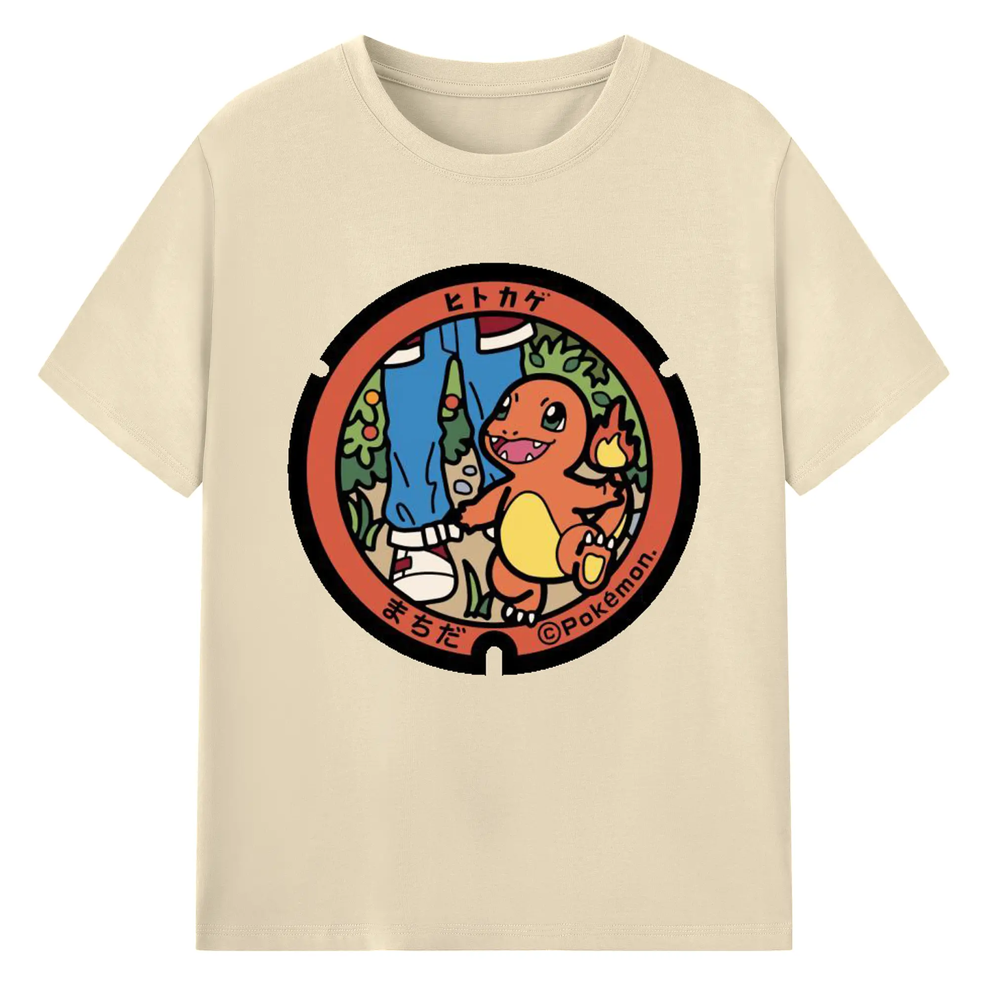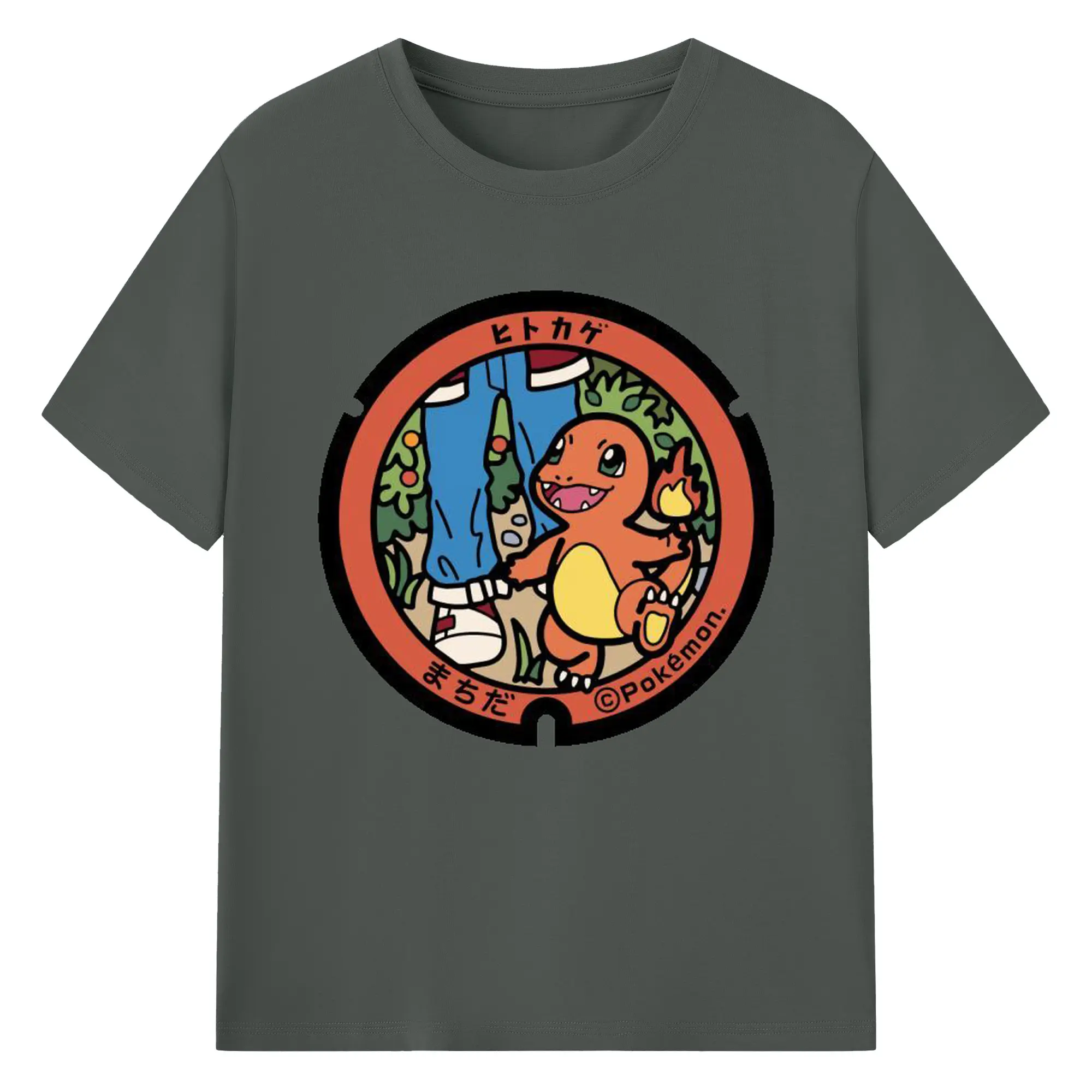 ポケモン ヒトカゲ - 綿100% ヴィンテージ風 半袖Tシャツ ・ フロントプリント ・ 柔らか肌触り ・ 通気性 快適 ・ スポーツ カジュアル 外出用