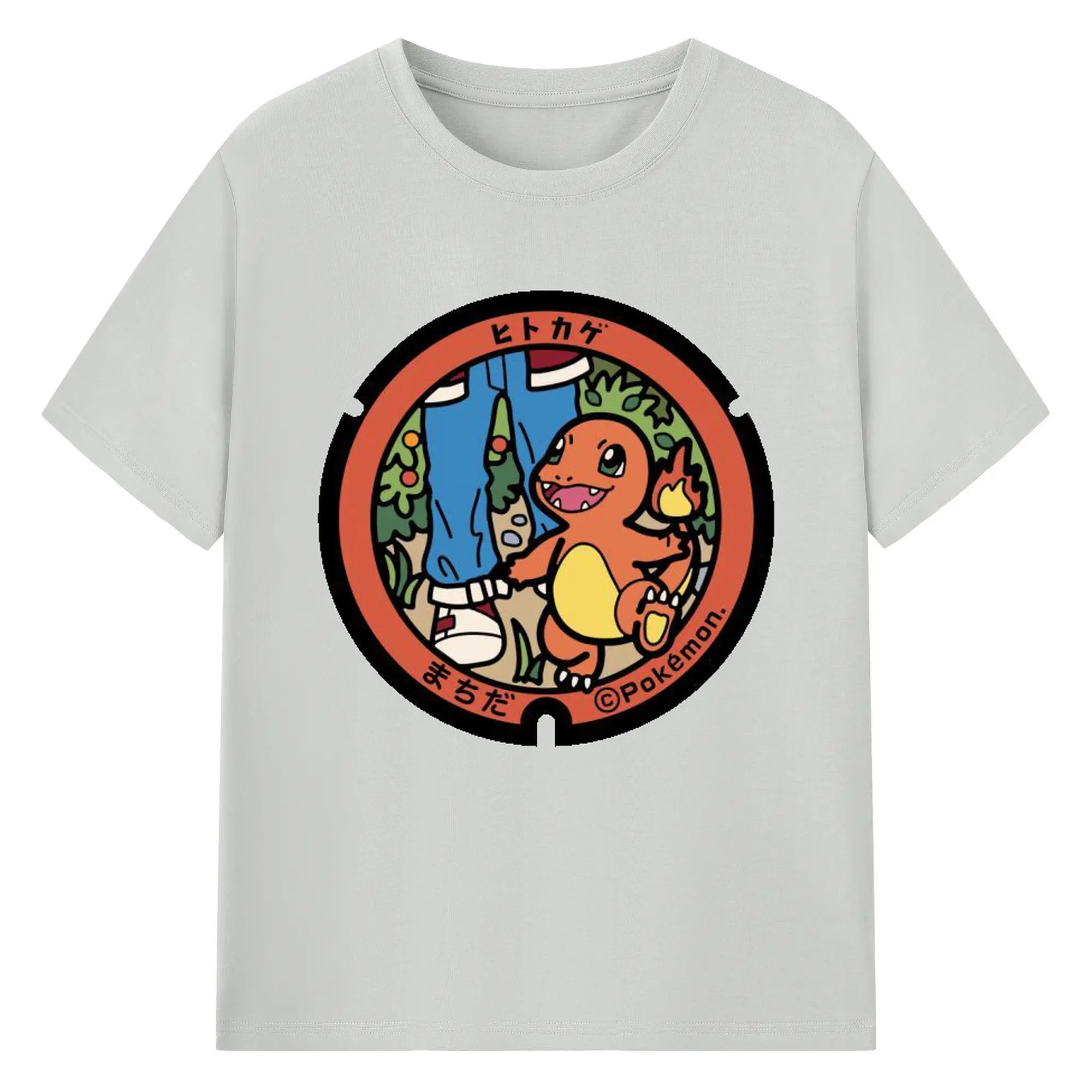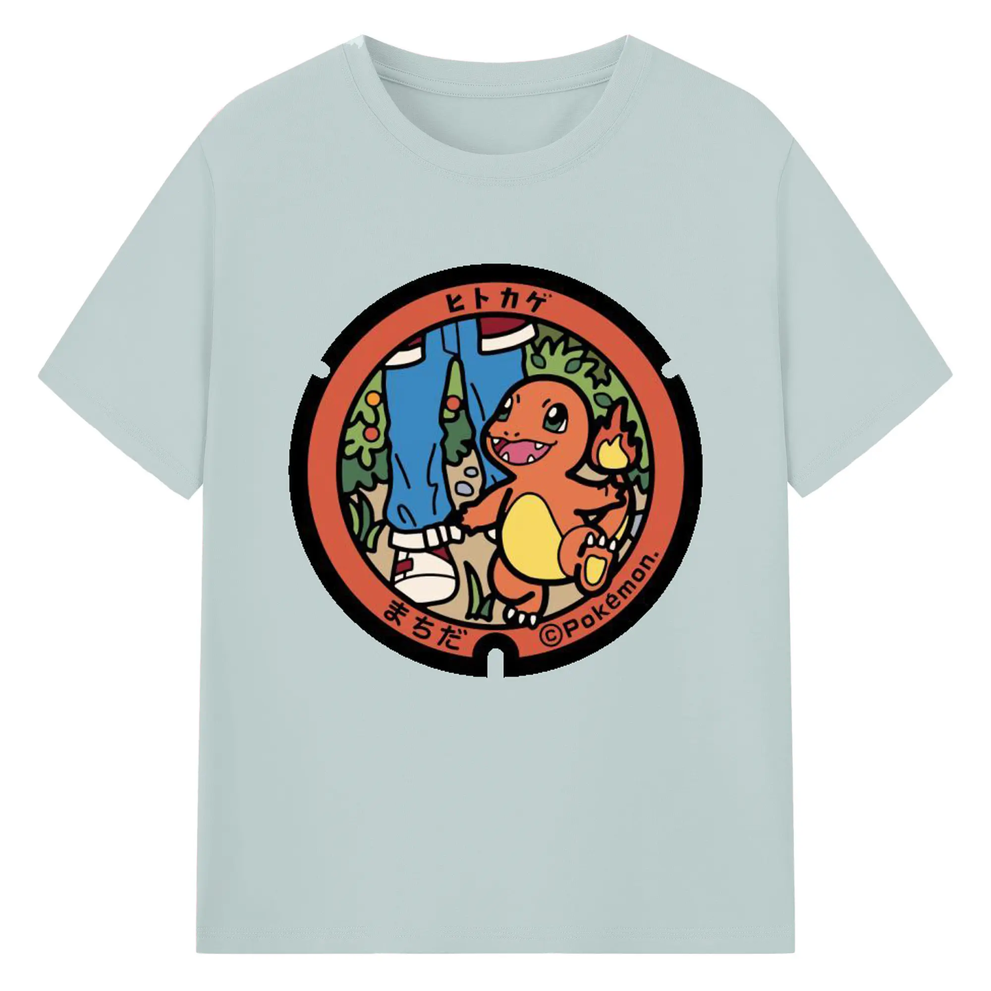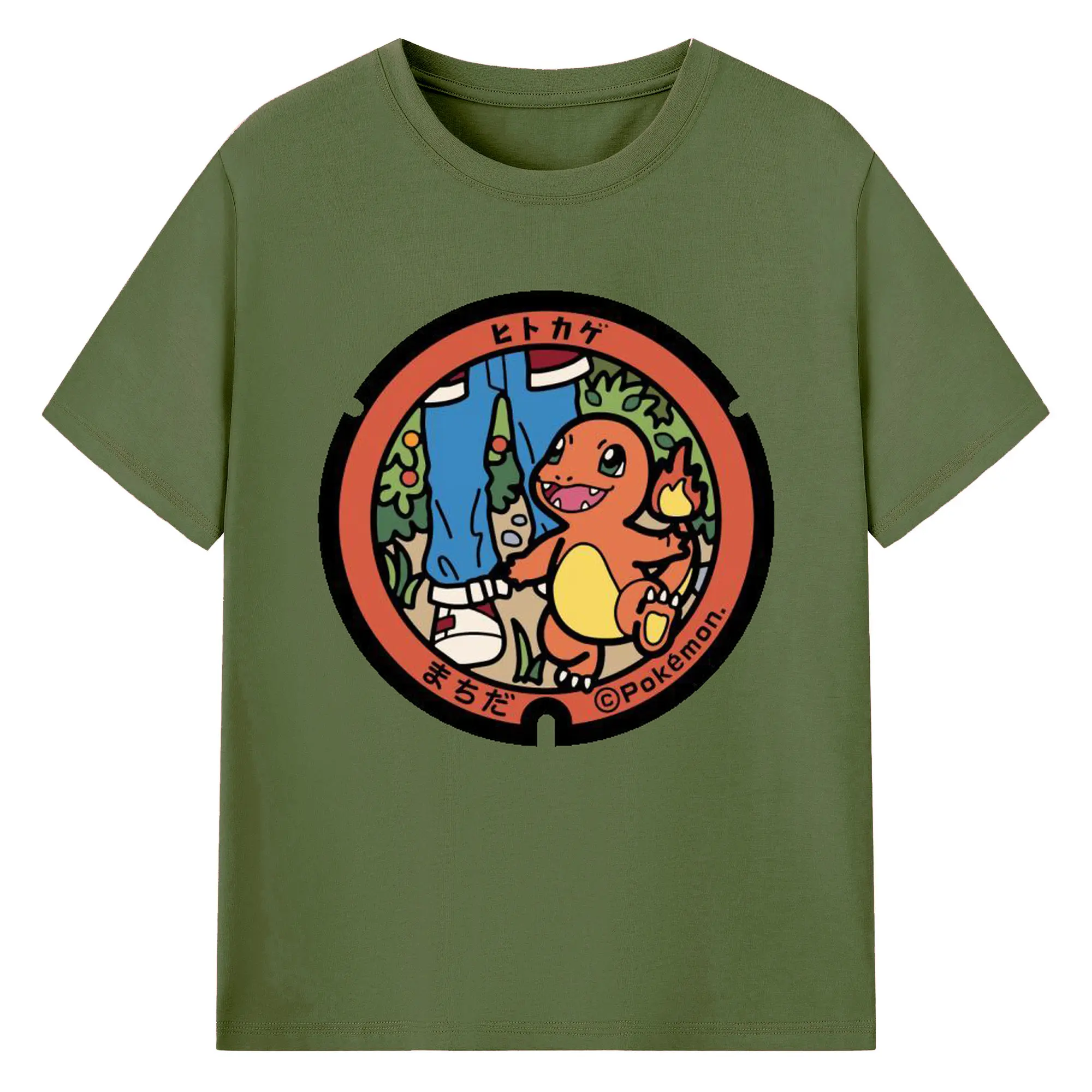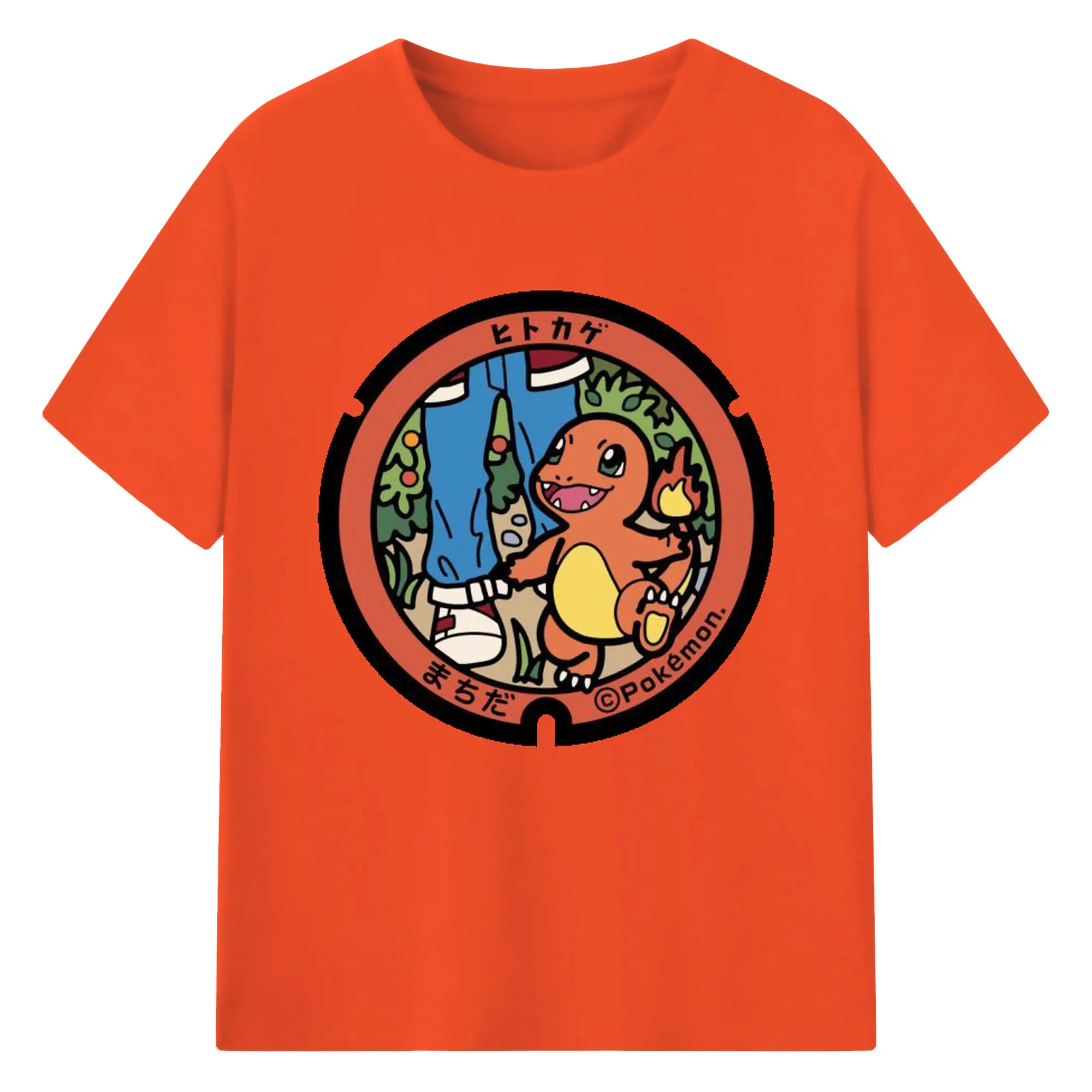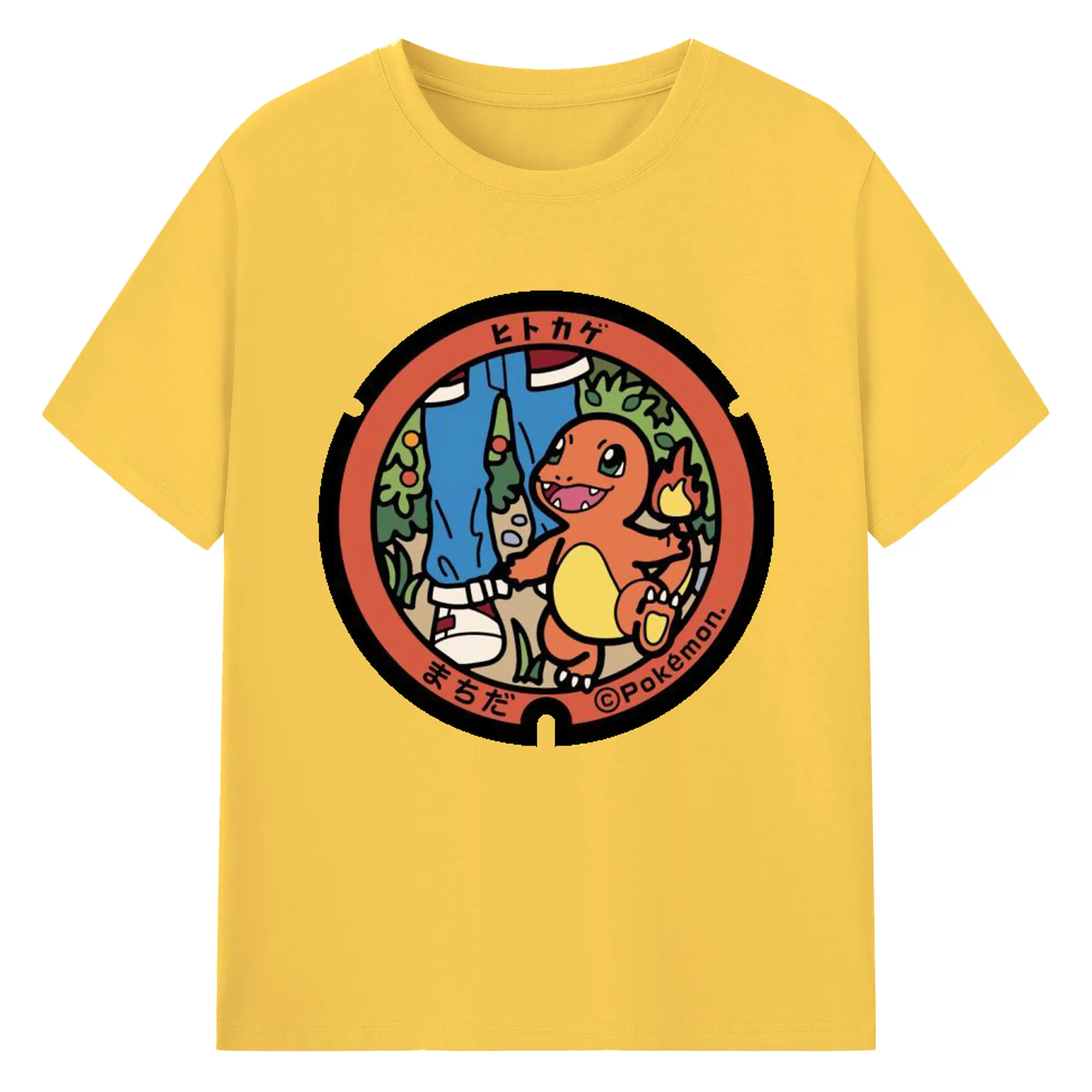 ポケモン ヒトカゲ - 綿100% ヴィンテージ風 半袖Tシャツ ・ フロントプリント ・ 柔らか肌触り ・ 通気性 快適 ・ スポーツ カジュアル 外出用