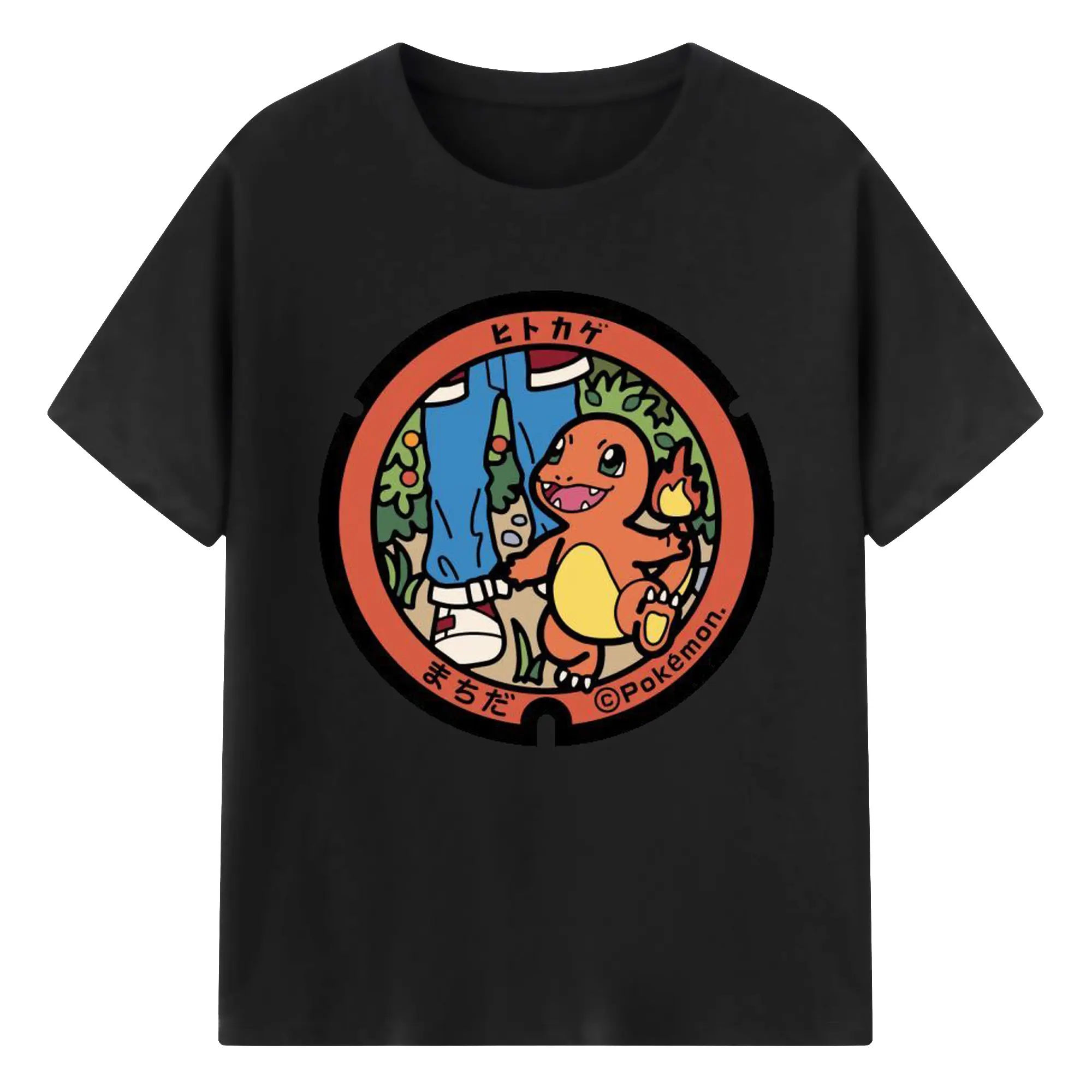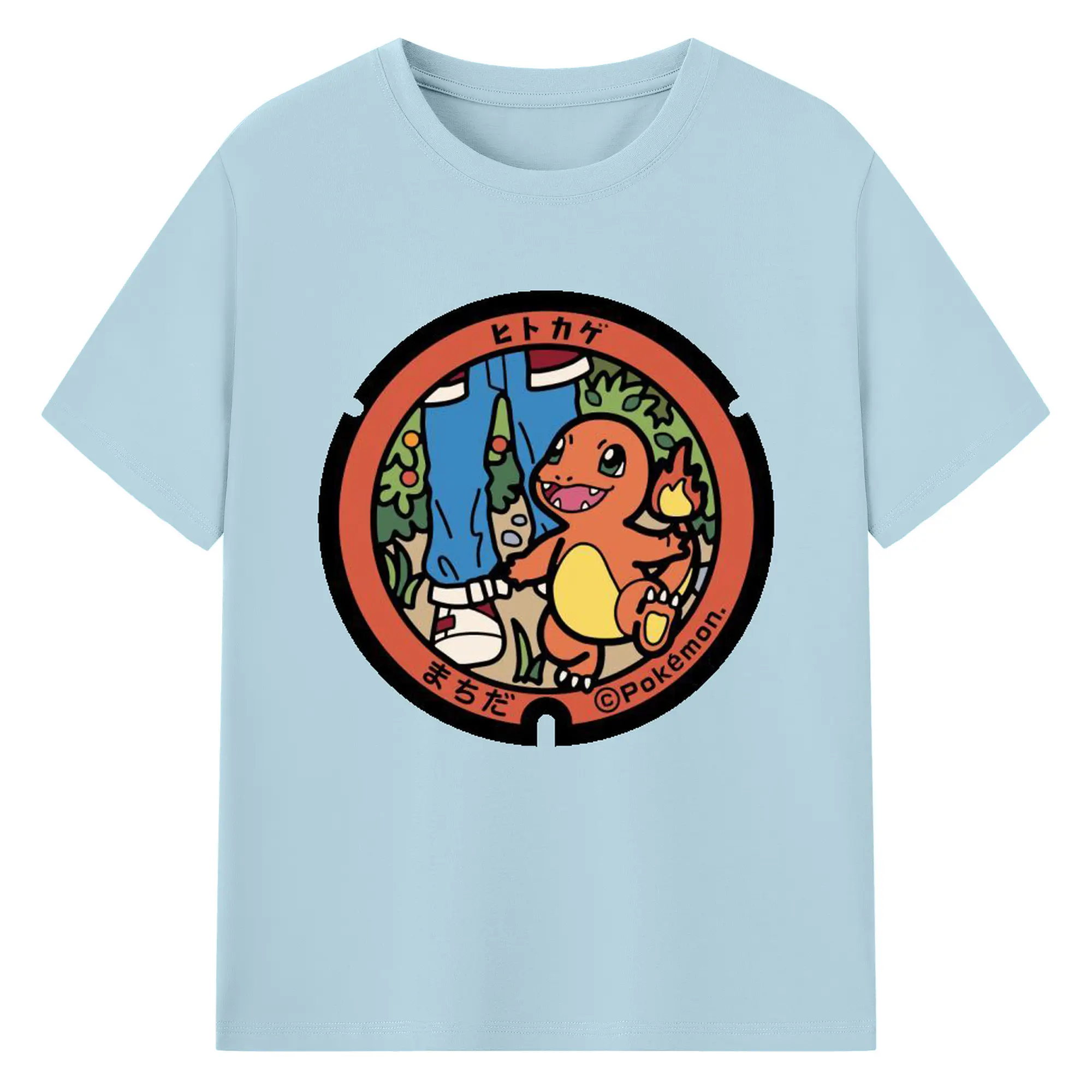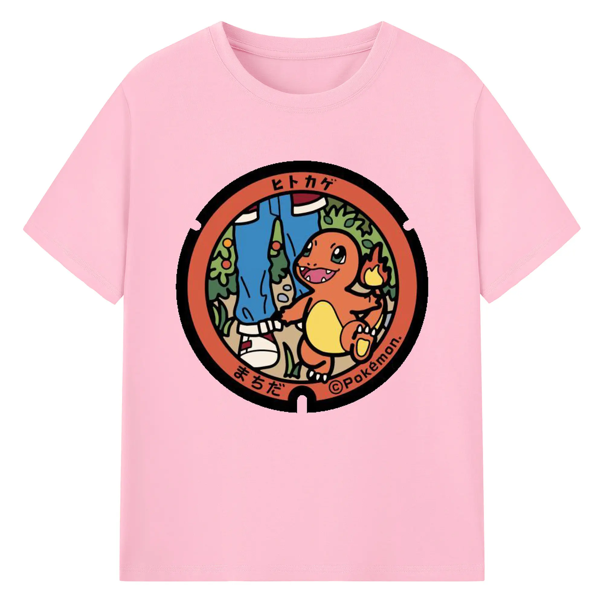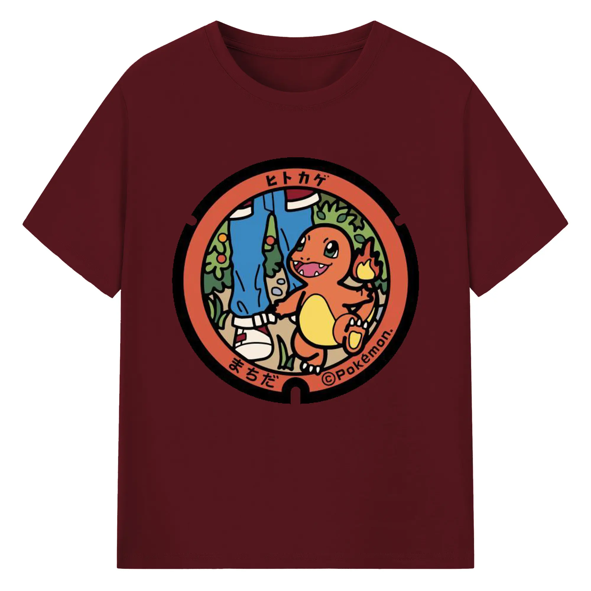 ポケモン ヒトカゲ - 綿100% ヴィンテージ風 半袖Tシャツ ・ フロントプリント ・ 柔らか肌触り ・ 通気性 快適 ・ スポーツ カジュアル 外出用