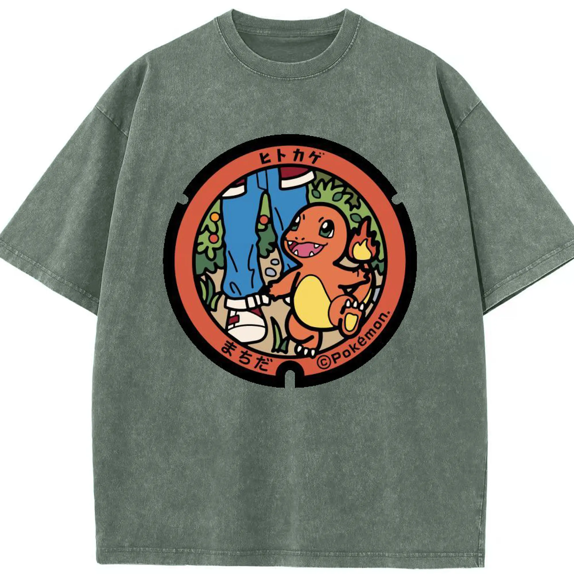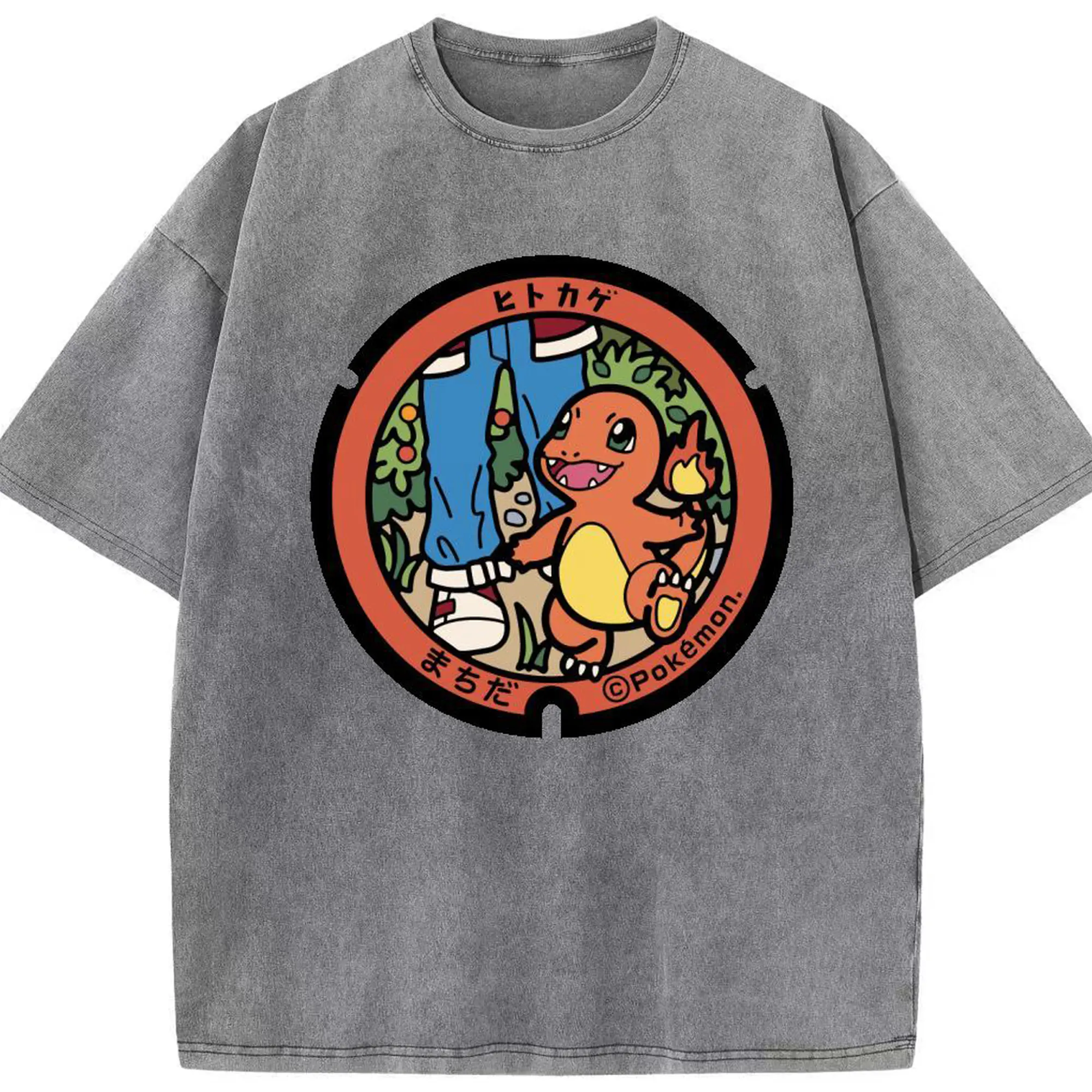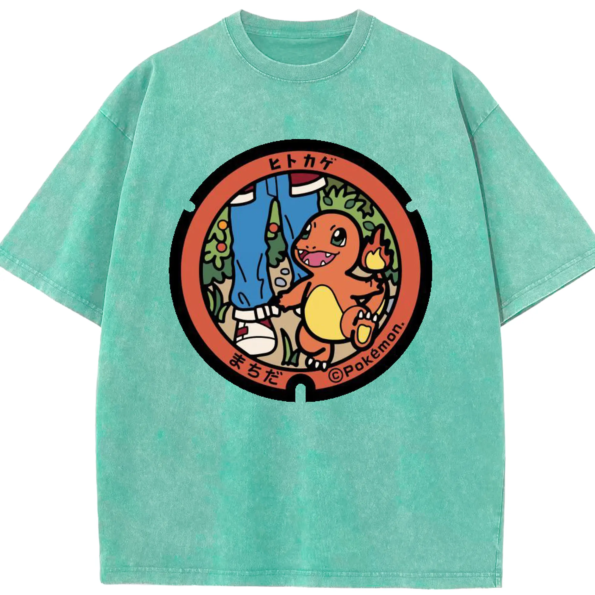 ポケモン ヒトカゲ - 綿100% 半袖Tシャツ ・ フロントプリント ・ 快適 通気性 ・ 日常使い 散歩 スポーツ用