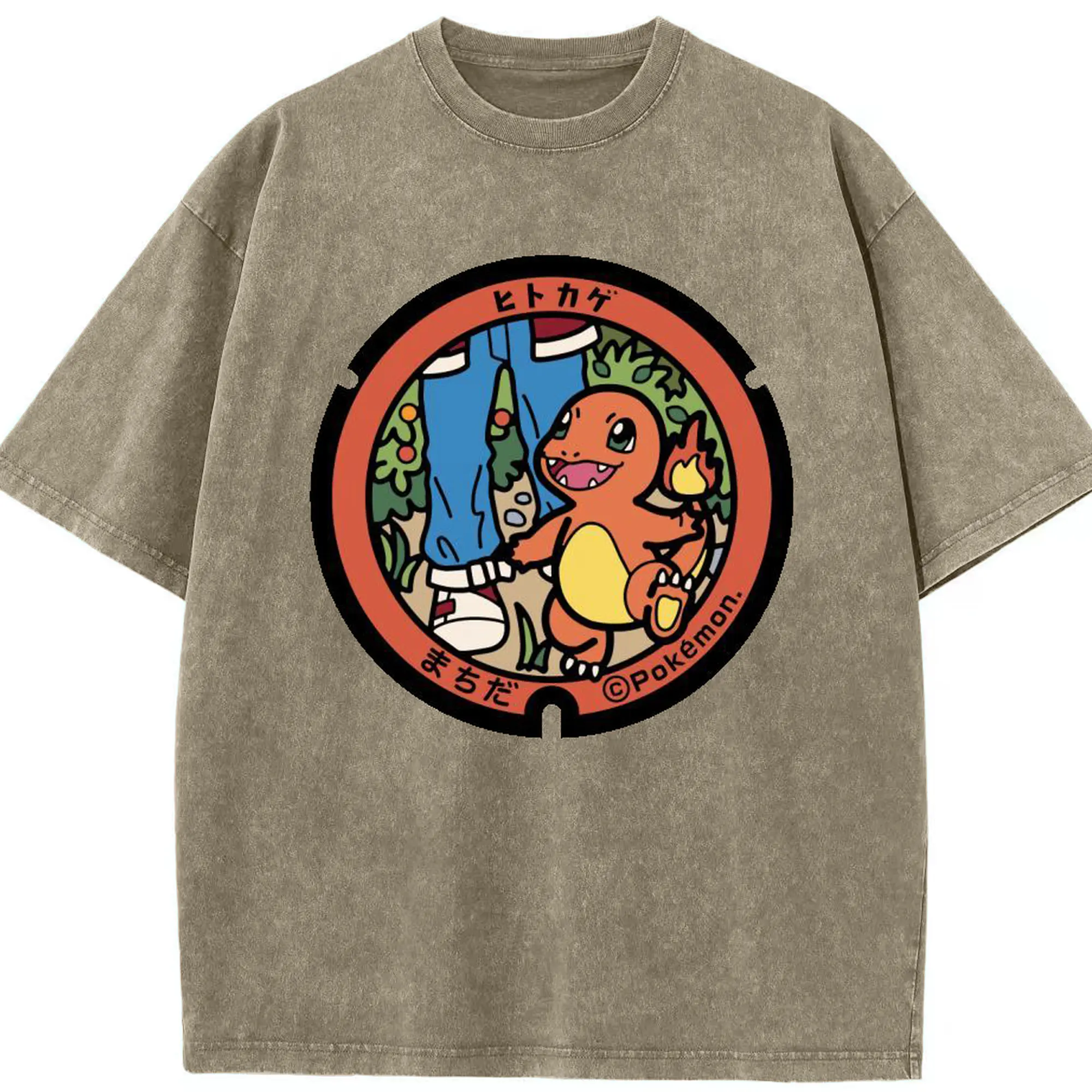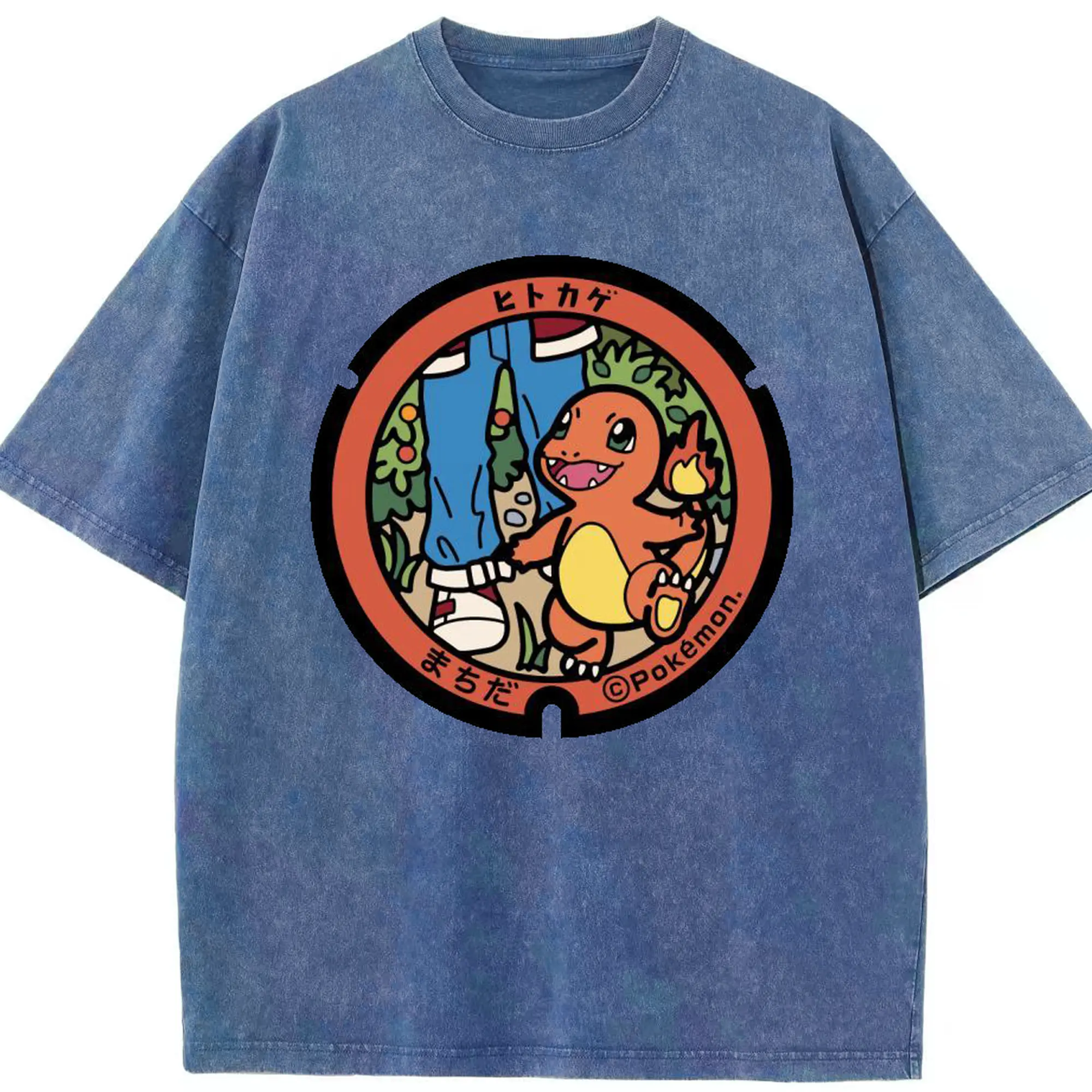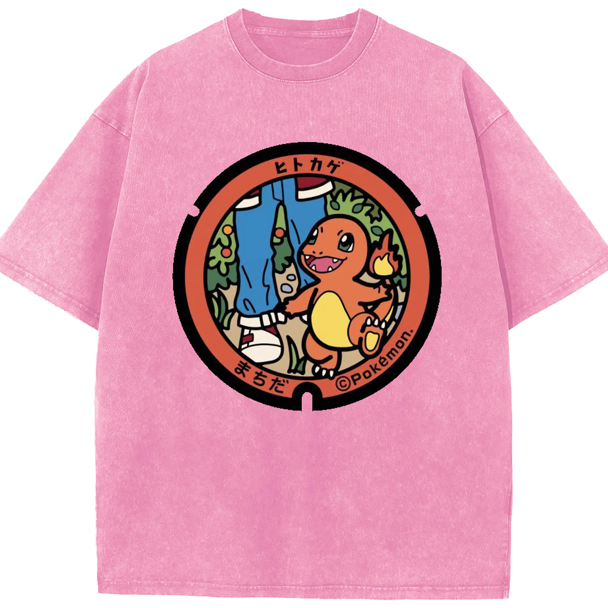 ポケモン ヒトカゲ - 綿100% 半袖Tシャツ ・ フロントプリント ・ 快適 通気性 ・ 日常使い 散歩 スポーツ用