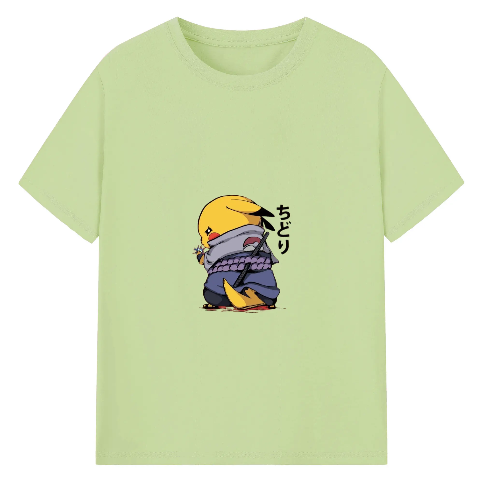 ポケモン ピカチュウサスケコラボ - 綿100% ヴィンテージ風 半袖Tシャツ ・ フロントプリント ・ 柔らか肌触り ・ 通気性 快適 ・ スポーツ カジュアル 外出用