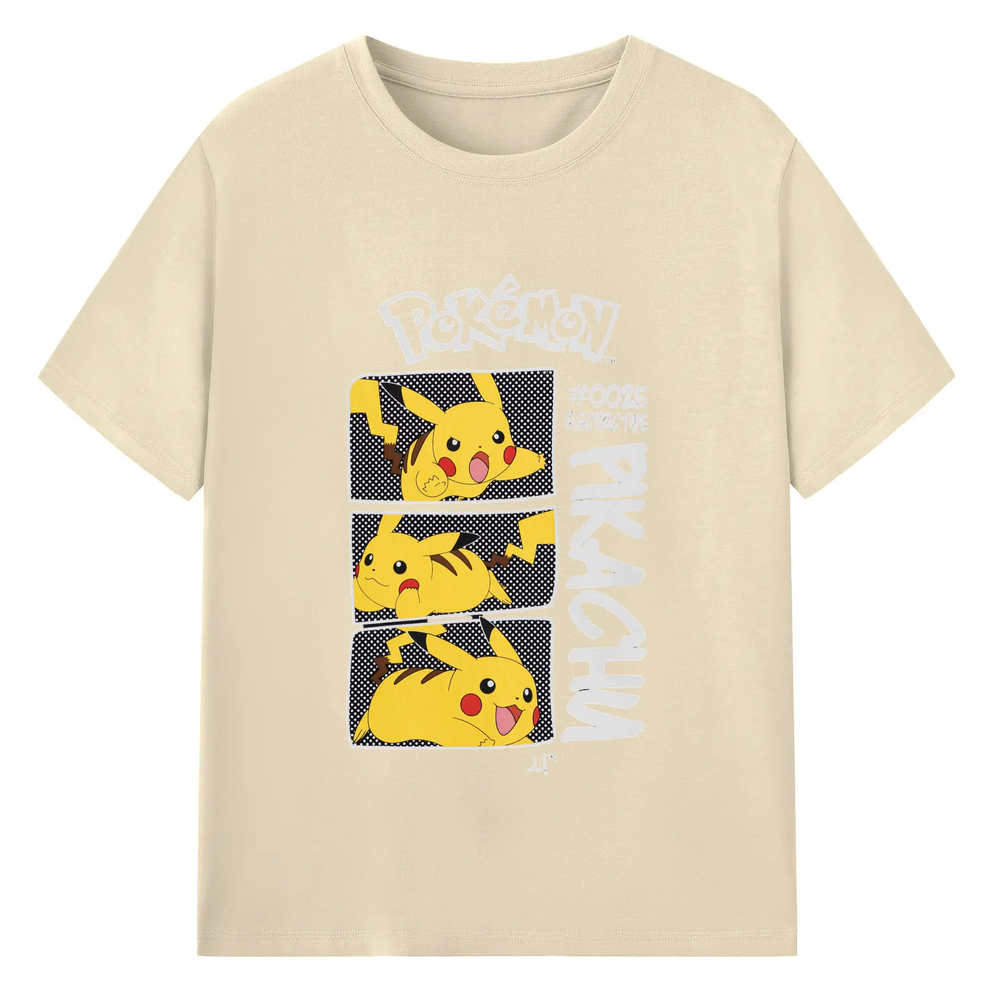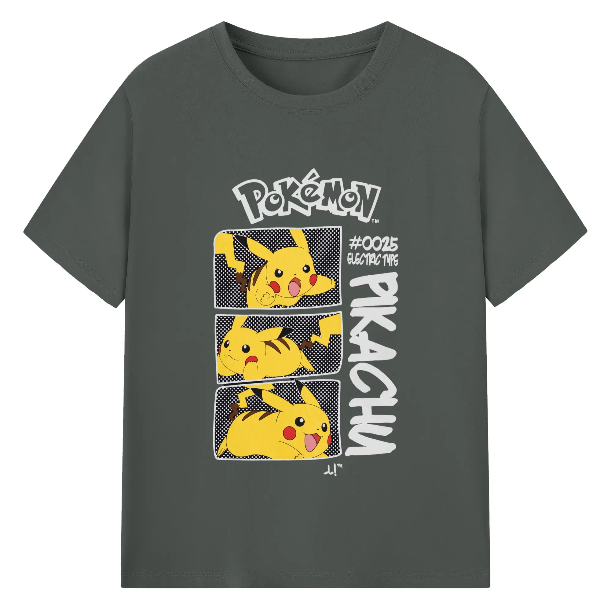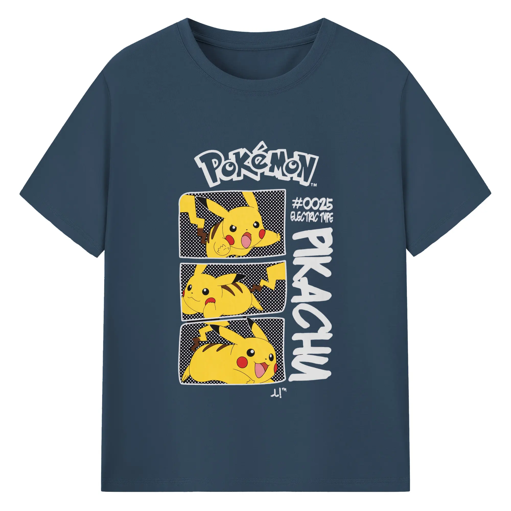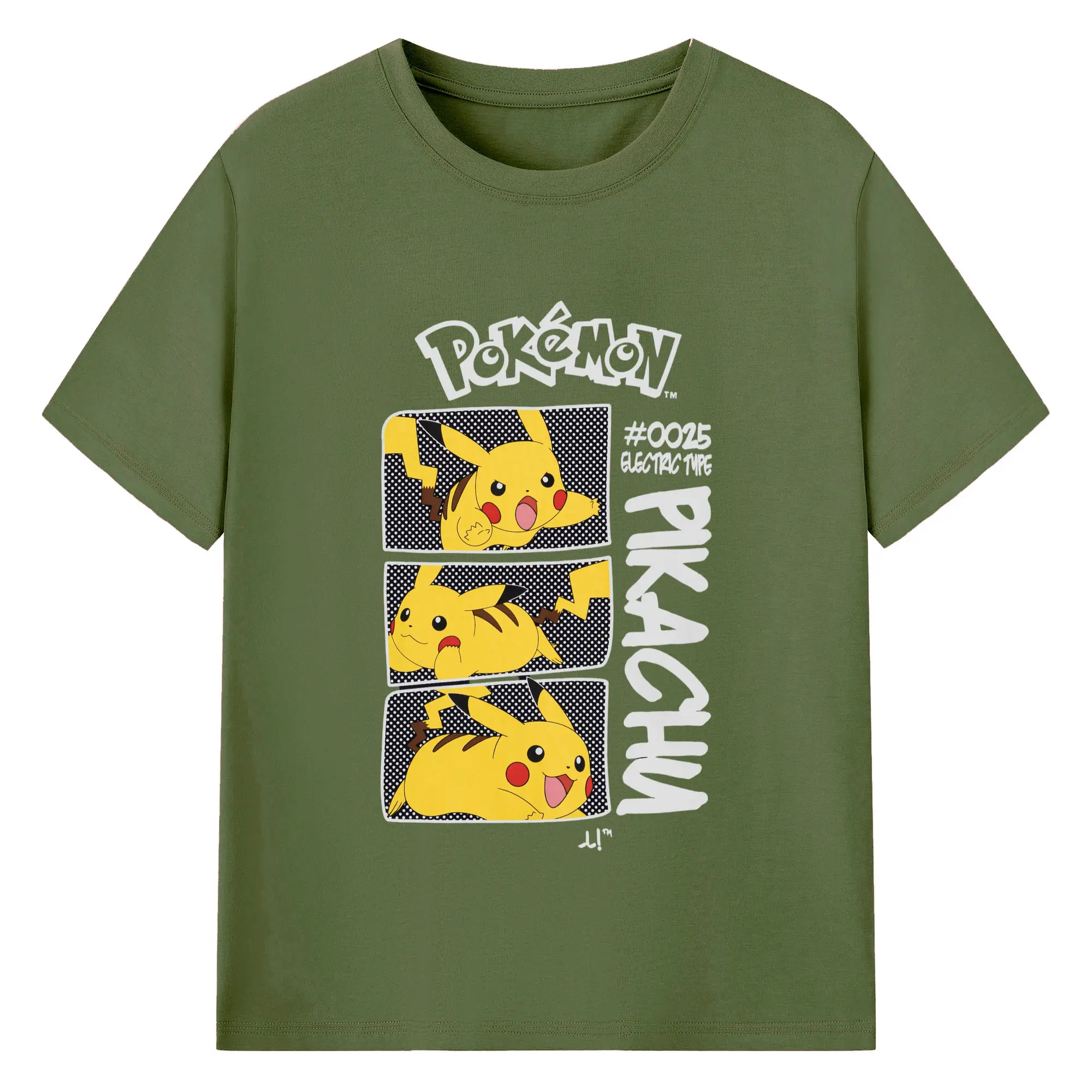 ポケモン ピカチュウ推し - 綿100% ヴィンテージ風 半袖Tシャツ ・ フロントプリント ・ 柔らか肌触り ・ 通気性 快適 ・ スポーツ カジュアル 外出用