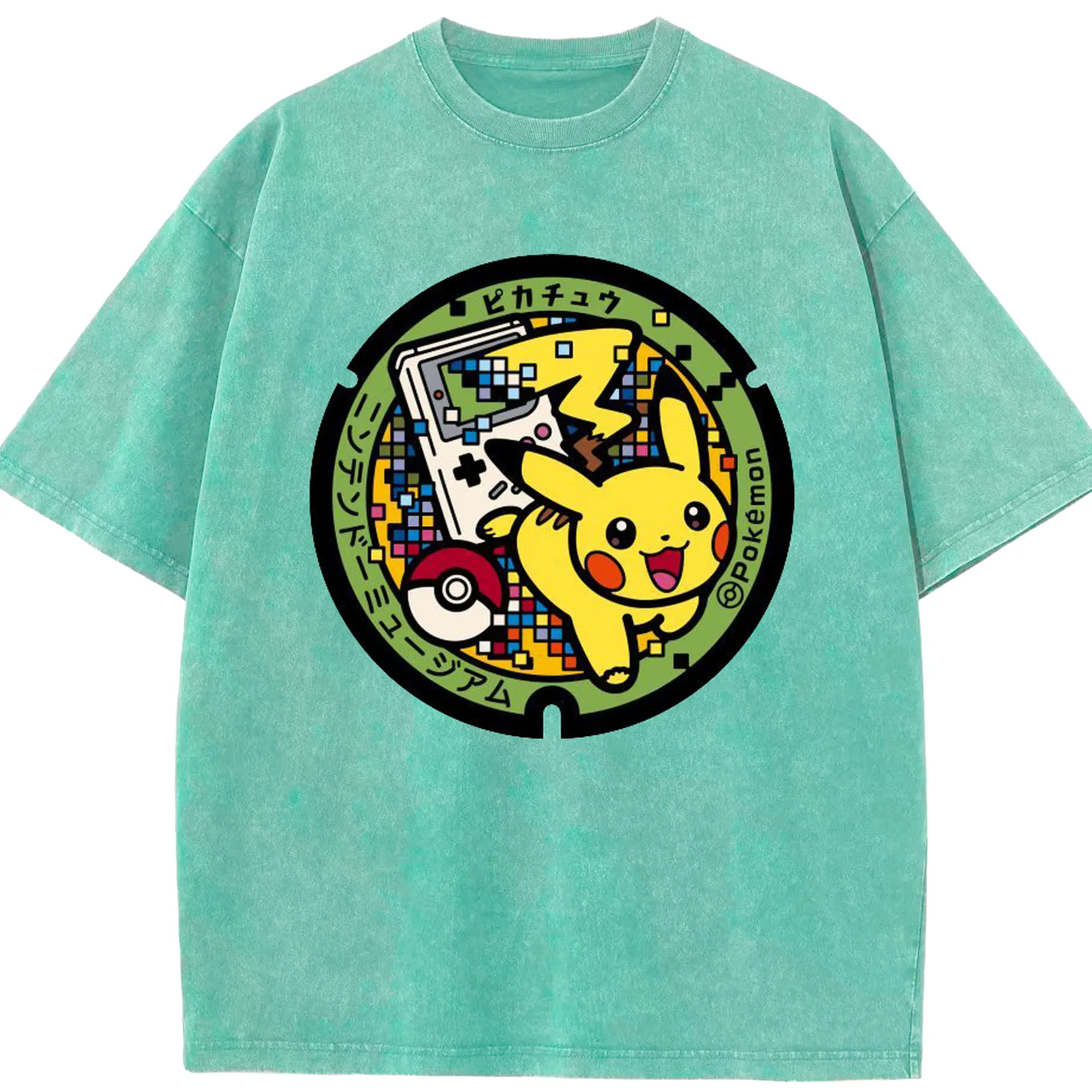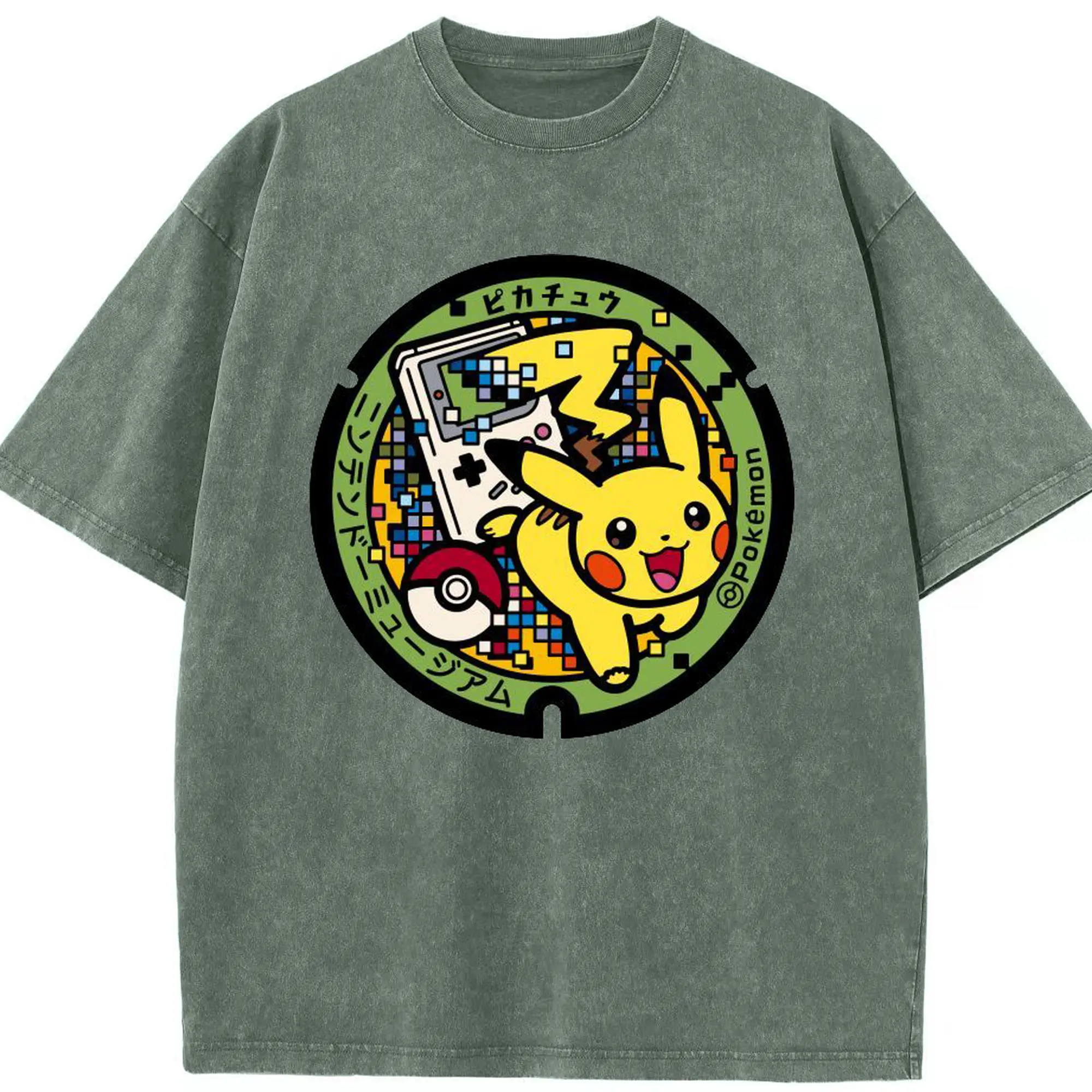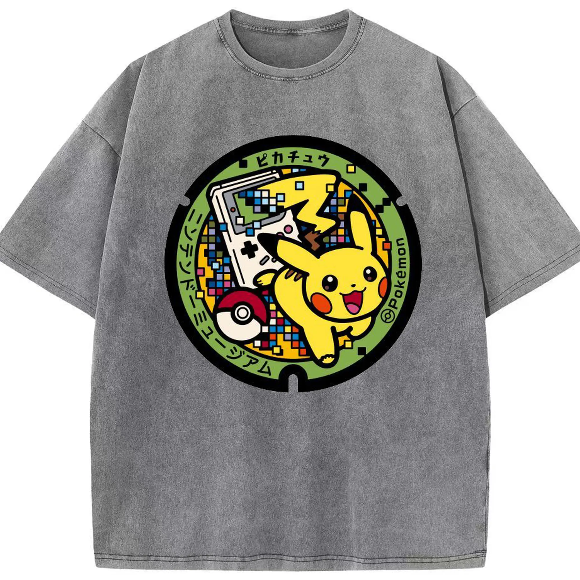 ポケモン ポケモン - 綿100% ヴィンテージ風 半袖Tシャツ ・ フロントプリント ・ 柔らか肌触り ・ 通気性 快適 ・ スポーツ カジュアル 外出用